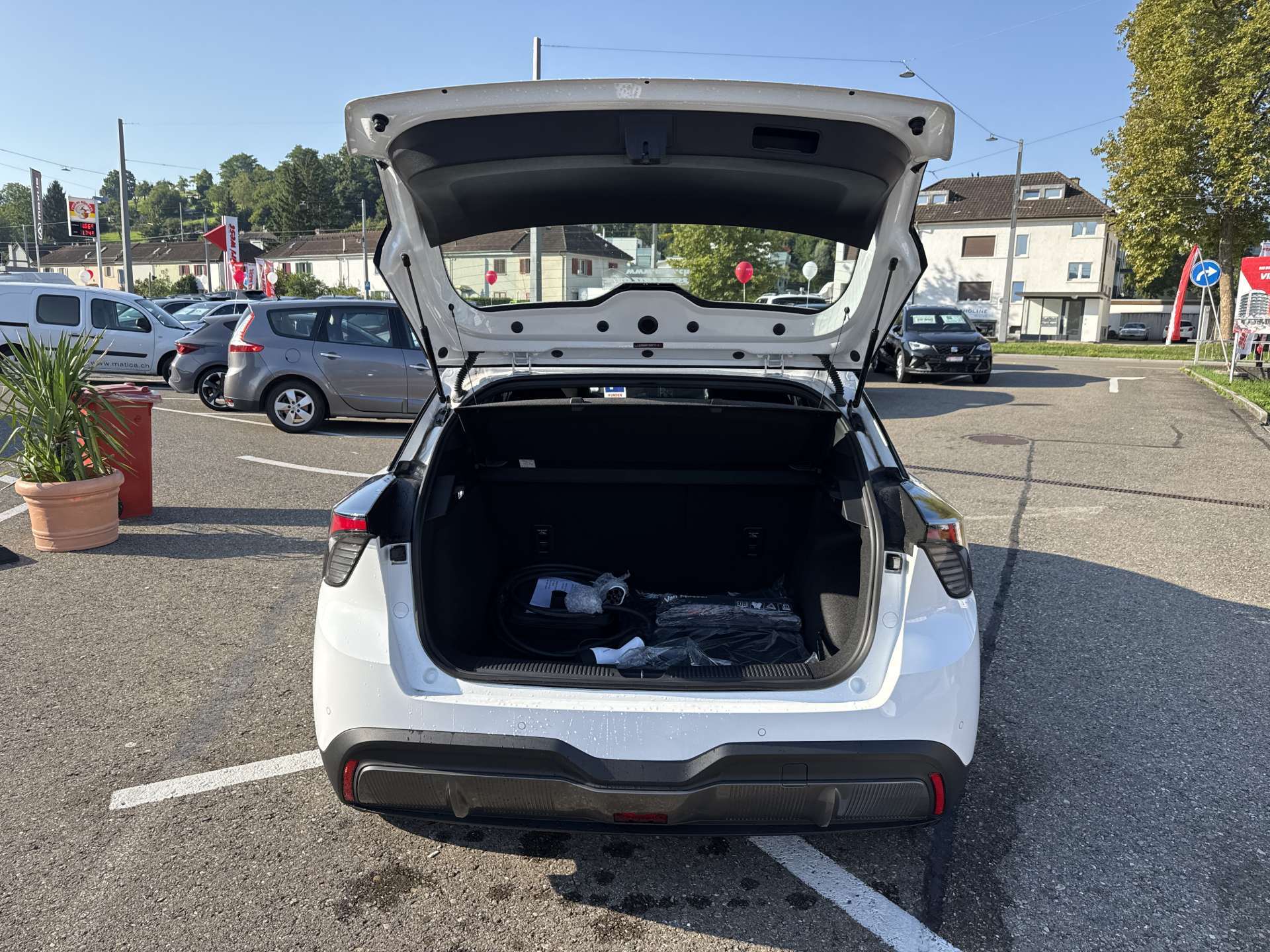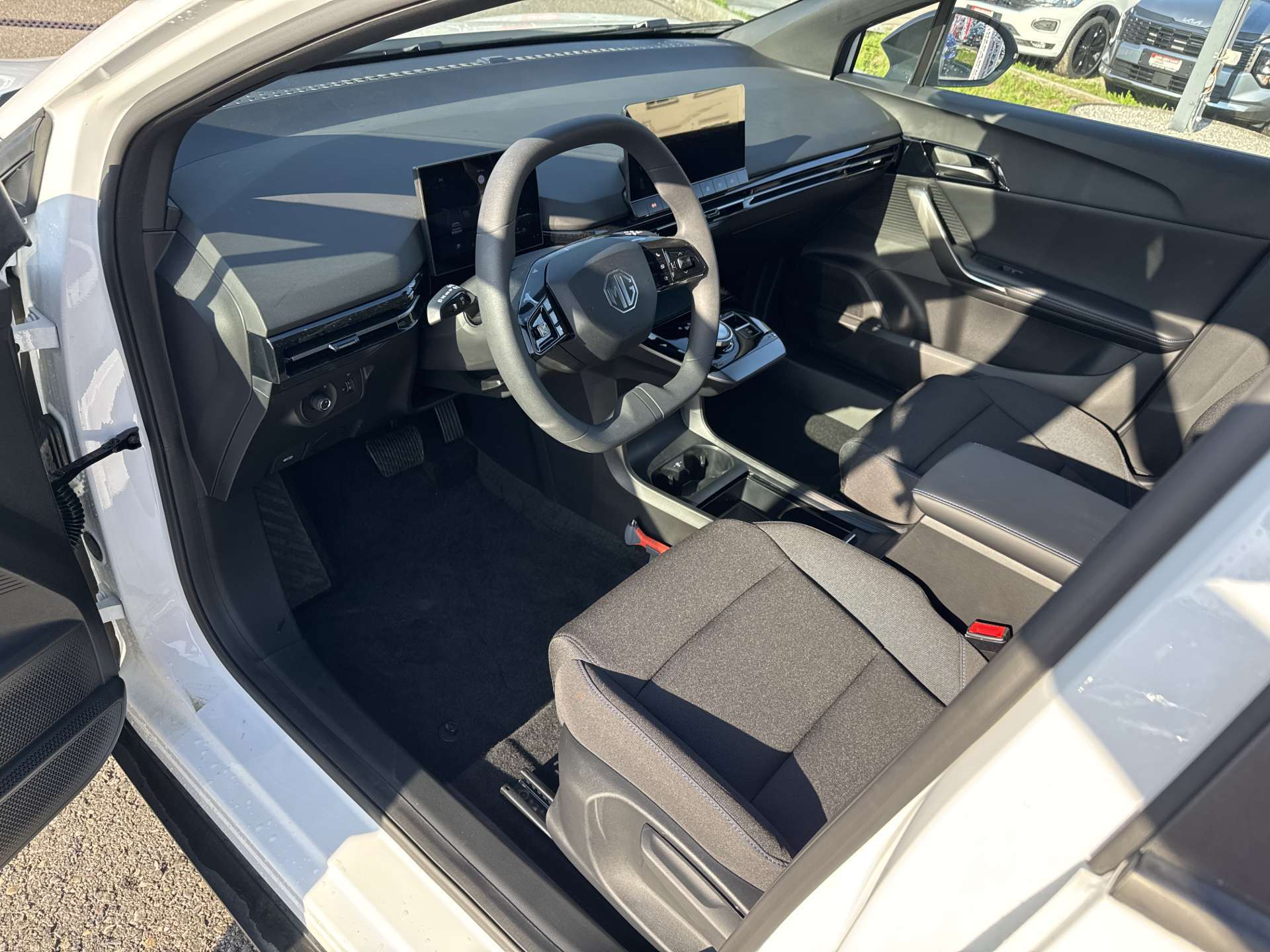 3-Punkt-Sicherheitsgurte auf allen Plätzen, Airbag: Airbag Fahrer und Beifahrer, Airbag: Kopfairbags vorne, Airbag: Seitenairbags, Antiblockiersystem (ABS), Assist: MG Pilot: ACC/TJA/FCW/AEB/IHC/SAS/LDW/LKA/UDW, Auto Start/Stop & Keyless Entry, Beheizbare Aussenspiegel, Elektrische Fensterheber vorne + hinten, ESP und TCS, Fahrwerk: "One Pedal"-Fahrmodus, Garantie: 7 Jahre oder 150'000 km, Getriebe: Direktantrieb, kein Getriebe, Heckscheiben-Wisch-/Waschanlage, Klima: Automatische Klimaanlage, Lackierung: Uni-Lackierung, Licht: Drittes Bremslicht, Licht: LED-Beleuchtung (Tagfahrlicht/Vorder-/Rücklicht), Licht: Nebelschlussleuchte, Media: 4 Lautsprecher, Media: Android Auto/Apple CarPlay, Media: Digital Cluster 7'', Media: iSMART Lite, Media: Touch Screen 10.25'', Polster: Stoff-Ausstattung, Räder: 17-Zoll-Leichtmetallfelgen, Reserverad, Servolenkung geschwindigkeitsabhängig, Sitze: 6-fach verstellbarer Fahrersitz, Sitze: Rücksitzbank umklappbar 60/40, Sonnenbrillenhalter, Vehicle to Load, Wegfahrsperre elektronisch, Zentralverriegelung mit Fernbedienung