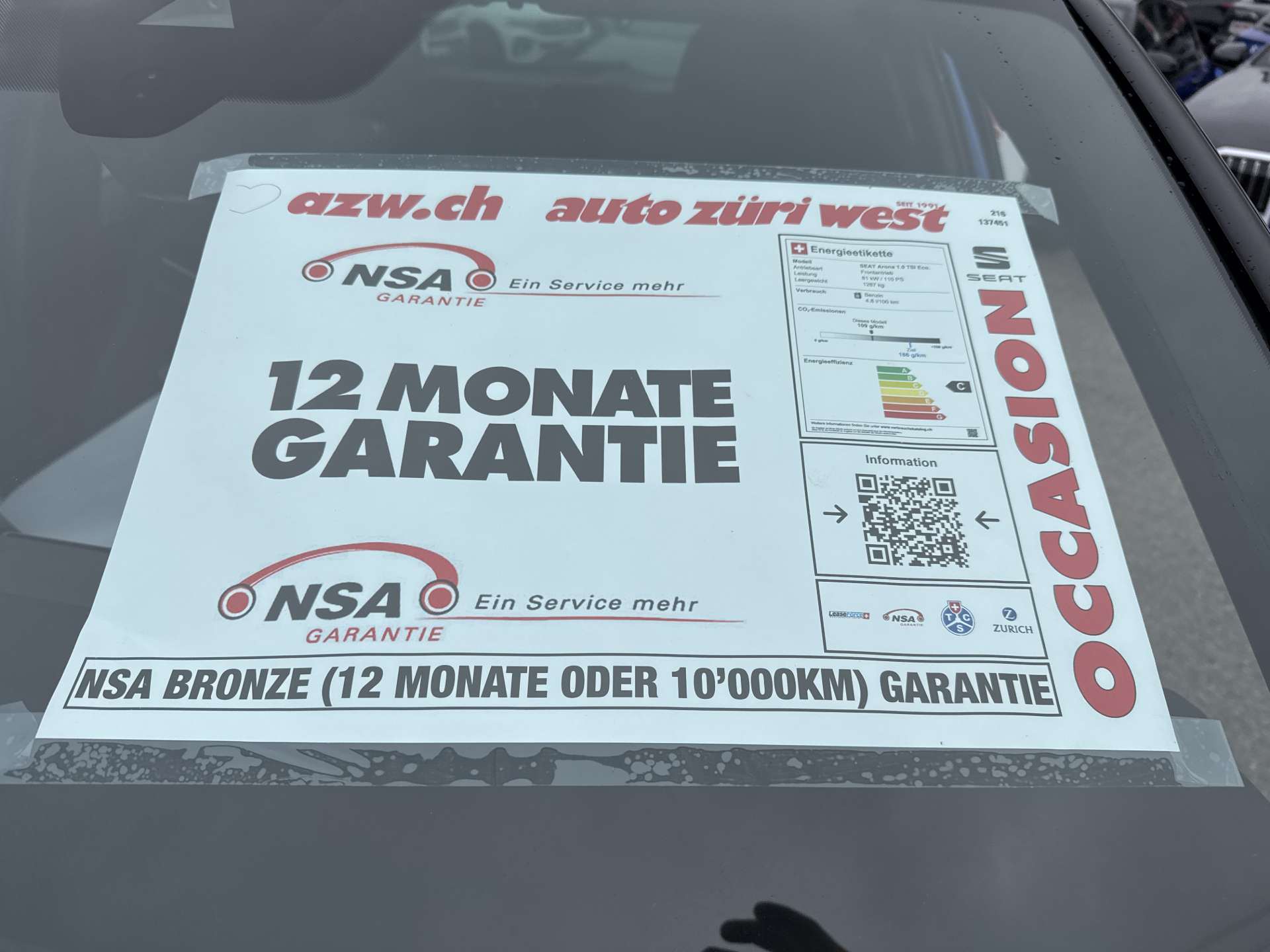| Garantie | NSA Bronze (12 Monate oder 10’000km) Garantie |