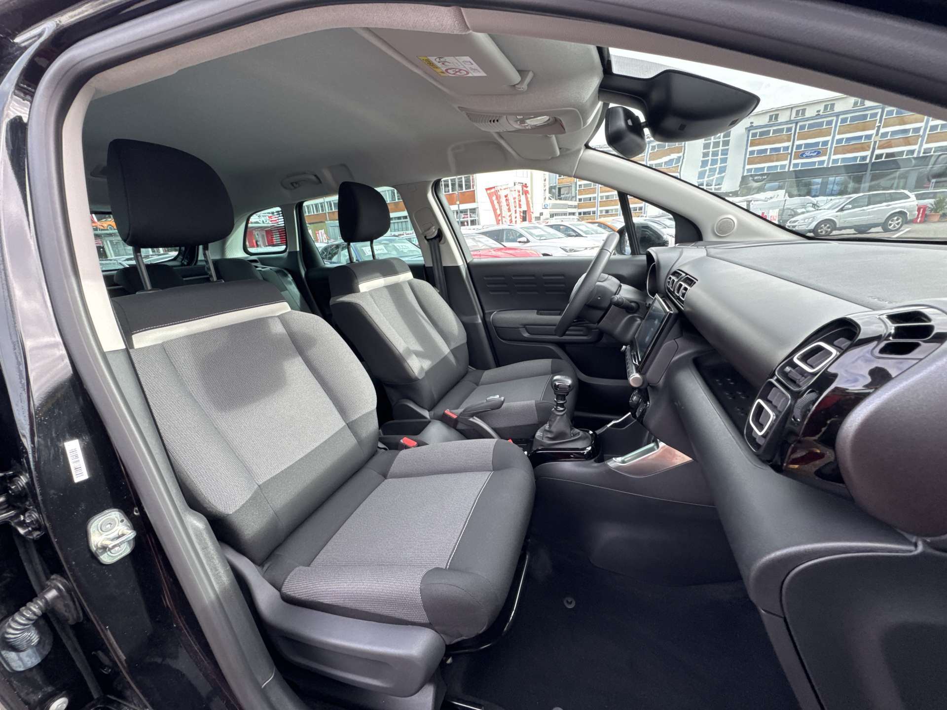 12V-Anschluss, A, B, C-Säule in Onyx schwarz, Airbag: Airbag Fahrer und Beifahrer, Antiblockiersystem (ABS), Assist: Berganfahrhilfe, Assist: Einparkhilfe hinten, Assist: Geschwindigkeitsregelanlage mit Begrenzer, Assist: Spurwechselwarnung, Assist: Verkehrsschild-Erkennungssystem, Aussenspiegel elektrisch anklappbar, Aussenspiegelgehäuse in Schwarz Onyx lackiert, Dachreling, Dekor: Chromapplikationen um analoge Anzeigen, Doppelter Kofferraumboden, Dunkel getönte Seiten- und Heckscheibe, Elektrische Fensterheber mit Komfortschaltung, Elektronisches Stabilitäts-Programm (ESP), Getriebe: 6-Gang-Getriebe, Klima: Automatische Klimaanlage, Kombiinstrument mit 3,5''- LCD Display und analoger Anzeige, Lackierung: Dach in Schwarz Perla Nera, Lackierung: Uni-Lackierung, Lenkrad: Lederlenkrad mit Shiny Black Dekor, Lenkrad: Lenkrad längs- und höhenverstellbar, Lenkrad: Multifunktionslenkrad, Licht: Automatische Fahrlichteinschaltung, Licht: ECO LED Scheinwerfer, Licht: Nebelschlussleuchte, Media: Citroën Connect Radio DAB mit 7'' Touchscreen, Media: Mirror Screen Funktion (Apple Carplay/ Android Auto/ MirrorLink), Polster: Stoff Mica Grey, Räder: 16" Alufelgen X Cross diamantgeschliffen, Räder: Reifendrucksensor, Räder: Reifenreparatur-Set (Tire Fit), Regensensor für Scheibenwischer vorne, Scheibenwischer mit Regensensor, Servolenkung, Sitze: Rücksitzbank im Verhältnis 2/3 - 1/3 teilbar, Traktionskontrolle, Unterfahrschutz in Grau Anthra, Zentralverriegelung mit Fernbedienung