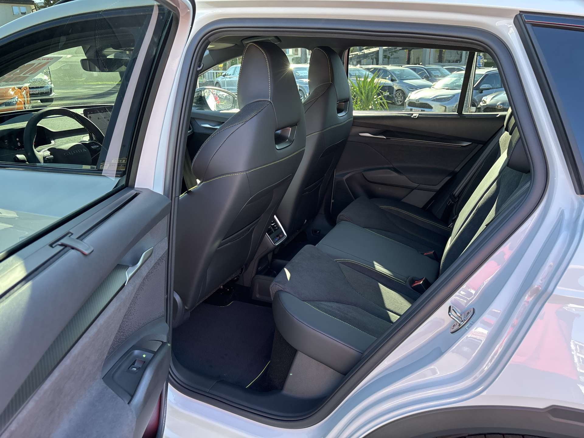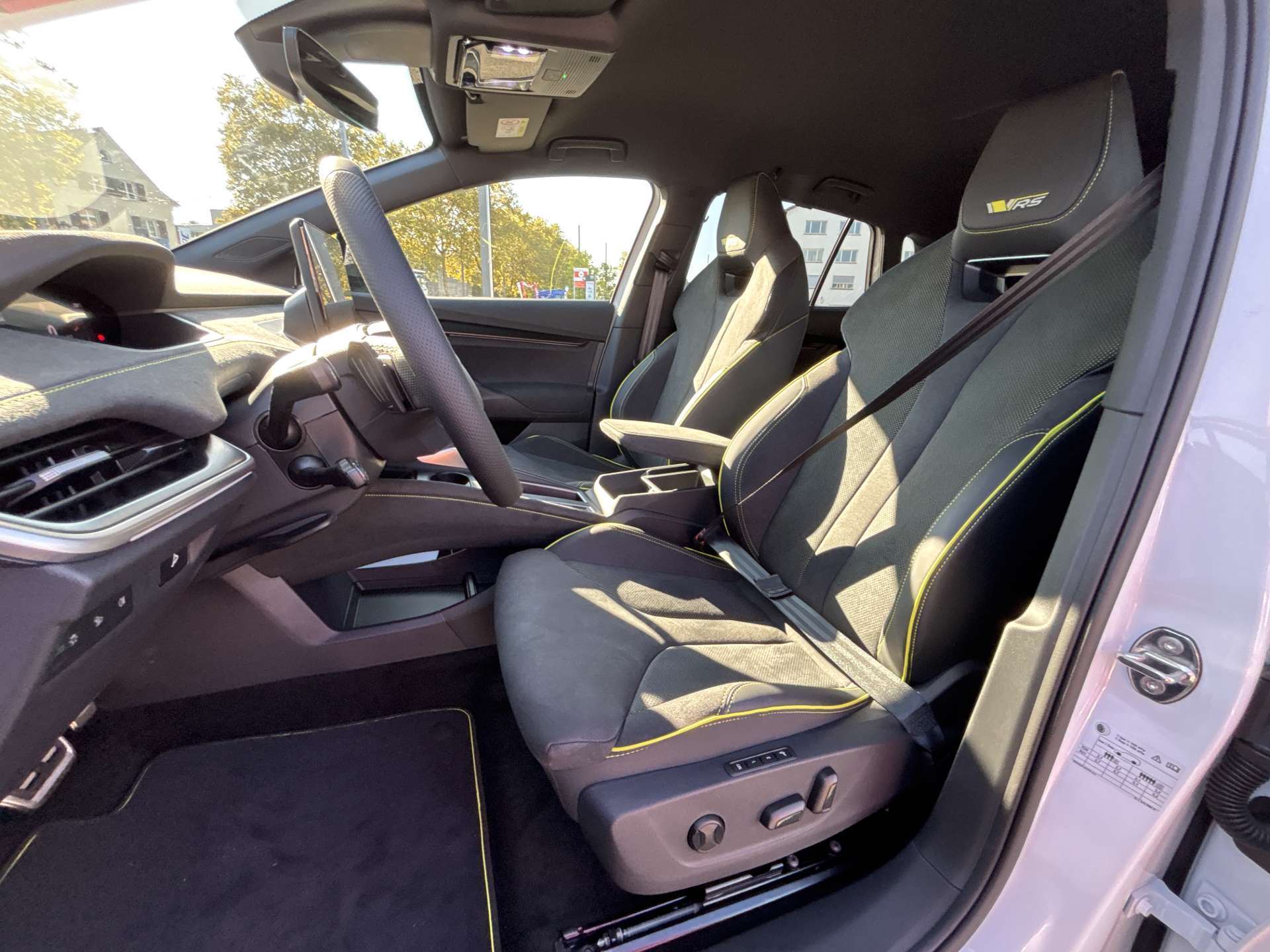 3-Punkt-Sicherheitsgurte auf allen Plätzen, Ablagekasten im Kofferraum in der Seitenverkleidung (links und rechts), ABS, EBD elektronische Bremskraftverteilung, AC Batterieladung bis 11 kW, Airbag: Airbag Beifahrer deaktivierbar, Airbag: Airbag Fahrer und Beifahrer, Airbag: Kopf- und Zentralairbag vorne (zwischen Fahrer- und Beifahrersitz), Akustikpaket mit SunSet, Allradantrieb permanent, Assist: Abbiegeassistent mit Gegenverkehr Warnung, Assist: Ablenkungs- und Müdigkeitserkennung, Assist: Adaptive Geschwindigkeitsregelanlage "Adaptive Cruise Control", Assist: Adaptiver Spurhalteassistent "Lane Assist" mit Stau- und Notbremsassistent, Assist: Emergency Call (Notruf), Assist: Fahrassistent"Travel Assist 2.6"mit Geschwindigkeitsregelanlage"Predictive Cruise Control", Assist: Insassenschutzsystem "Crew Protect Assistant" vorne, hinten und auf beiden Seiten, Assist: Notbremsassistent "Front Assist", Assist: Parksensoren vorne und hinten, Assist: Prädiktive Geschwindigkeitswarnanlage, Assist: Rückfahrkamera, Assist: Spurwechselassistent "Side Assist", Assist: Verkehrszeichenerkennung, Aussenspiegel elektrisch anklappbar mit automatischer Abblendung (nur Fahrerseite)und Memoryfunktion, Aussenspiegel elektrisch einstell- und beheizbar, Beleuchtetes Tech-Deck, Bordcomputer, Dachreling schwarz hochglanz, DC Batterieladung bis 185 kW, Design Selection RS, Diebstahlalarmanlage, Innenraumüberwachung, Back-Up-Horn und Abschleppschutz, Drittes Bremslicht, Elektrische Fensterheber vorne + hinten, Elektrische Kindersicherung, Elektronische Parkbremse, Elektronisches Stabilitäts-Programm (ESP), Fahrprofilauswahl- "Driving Mode Selection", Fahrwerk: Adaptive Fahrwerksregelung "DCC - Dynamic Chassis Control Plus" inkl. "Driving Mode Select, Fahrwerk: Progressivlenkung, Fenster Zierleisten in Schwarz hochglanz, Getriebe: 1-Gang Getriebe, Gurtanlegesignalisation für alle Passagiere, Heckklappe mit berührungsloser Öffnung "Virtual Pedal", Heckscheiben-Wisch-/Waschanlage mit Iinterval, Heckscheibenheizung, Heckspoiler, Innenspiegel automatisch abblendbar, Kindersicherung manuell einstellbar, Klima: Klimaanlage "Climatronic", 2-Zonen-Temperaturregelung, vollautomatisch, getrennt regelbar, Kofferraumabdeckung, herausnehmbar mit Multifunktionstasche, Lackierung: Uni-Lackierung, Ladekabel für AC-Normalladen bis zu 11 kW, Typ2-Stecker, Lenkrad: Sport-Leder-Multifunktionslenkrad 3-Speichen mit Schaltwippen, beheizbar, Lenkrad: Sport-Leder-Multifunktionslenkrad 3-Speichen mit Schaltwippen, beheizbar, Licht: LED Rückleuchten mit dynamischen Blinkern, Licht: Voll LED Scheinwerfer mit "Matrix-Beam-Funktion" mit AFS (Adaptive Frontlight System), Media: 2 USB-C Anschlüsse vorne und hinten, Media: 8 Lautsprecher, Media: DAB+ (Digital Audio Broadcasting), Media: Infotainment Online 3 Jahre + "Care Connect" (Remote Access [3 Jahr] und Proactive Services), Media: Infotainmentdisplay 13", Media: Navigationsfunktion, Media: SmartLink (CarPlay und Android Auto), Media: Sprachsteuerung, Media: Telefonvorbereitung mit Bluetooth, Mittelkonsole mit Mittelarmlehne, Nebelschlussleuchte, Paket: Driver Paket, Paket: PLUS, Pedale in Aludesign, Phonebox und Wireless Charging, Räder: Pannenset (Kompressor und Flasche mit Dichtmittel, ohne Reserverad), Räder: Reifendruckkontrollsystem, Radlaufleisten nicht lackiert, Schliess- und Startsystem schlüssellos mit Safelock "Kessy Advanced" (Keyless Access), Sitze: 3 Kopfstützen hinten, Sitze: Fahrersitz elektrisch verstellbar mit Memory, Sitze: Fahrersitz mit Massagefunktion, Lendenwirbelstütze elektrisch einstellbar für Vordersitze, Sitze: Rücksitzbank ungeteilt, Rücksitzlehne geteilt umklappbar, Sitze: Vorbereitung für Kindersitzhalterung mit Sicherheitssystem ISOFIX auf dem Beifahrersitz, Sitze: Vordersitze heizbar, Traction control (TCS), Vorbereitung für Anhängerkupplung, Wärmepumpe, Zentralverriegelung mit Fernbedienung