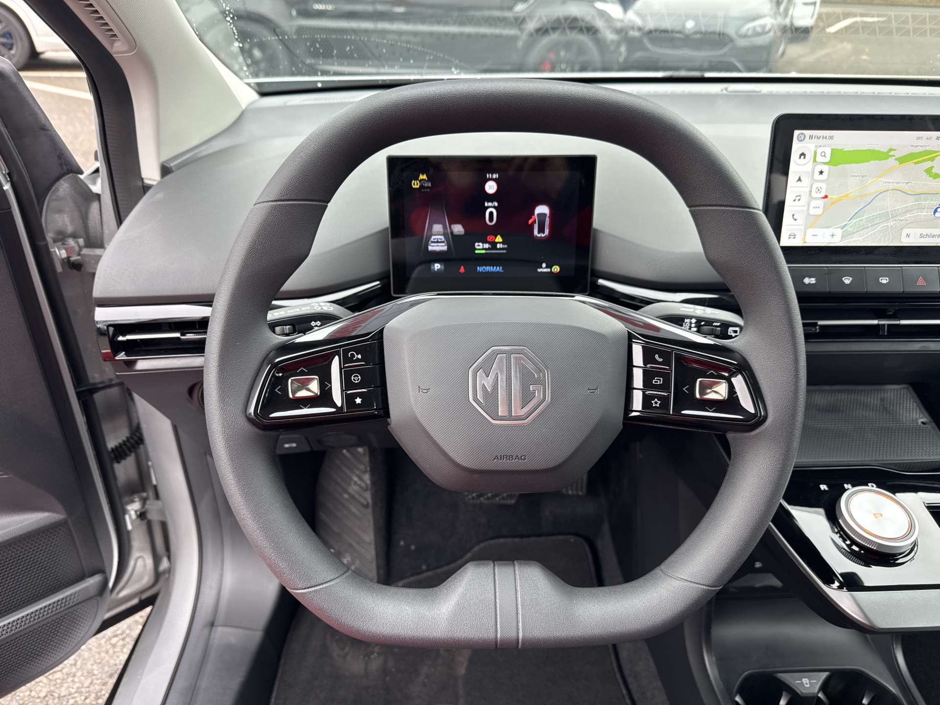 3-Punkt-Sicherheitsgurte auf allen Plätzen, Airbag: Airbag Fahrer und Beifahrer, Airbag: Kopfairbags vorne, Airbag: Seitenairbags, Antiblockiersystem (ABS), Assist: MG Pilot: ACC/TJA/FCW/AEB/IHC/SAS/LDW/LKA/UDW, Auto Start/Stop & Keyless Entry, Beheizbare Aussenspiegel, Elektrische Fensterheber vorne + hinten, ESP und TCS, Fahrwerk: "One Pedal"-Fahrmodus, Garantie: 7 Jahre oder 150'000 km, Getriebe: Direktantrieb, kein Getriebe, Heckscheiben-Wisch-/Waschanlage, Klima: Automatische Klimaanlage, Lackierung: Uni-Lackierung, Licht: Drittes Bremslicht, Licht: LED-Beleuchtung (Tagfahrlicht/Vorder-/Rücklicht), Licht: Nebelschlussleuchte, Media: 4 Lautsprecher, Media: Android Auto/Apple CarPlay, Media: Digital Cluster 7'', Media: iSMART Lite, Media: Touch Screen 10.25'', Polster: Stoff-Ausstattung, Räder: 17-Zoll-Leichtmetallfelgen, Reserverad, Servolenkung geschwindigkeitsabhängig, Sitze: 6-fach verstellbarer Fahrersitz, Sitze: Rücksitzbank umklappbar 60/40, Sonnenbrillenhalter, Vehicle to Load, Wegfahrsperre elektronisch, Zentralverriegelung mit Fernbedienung