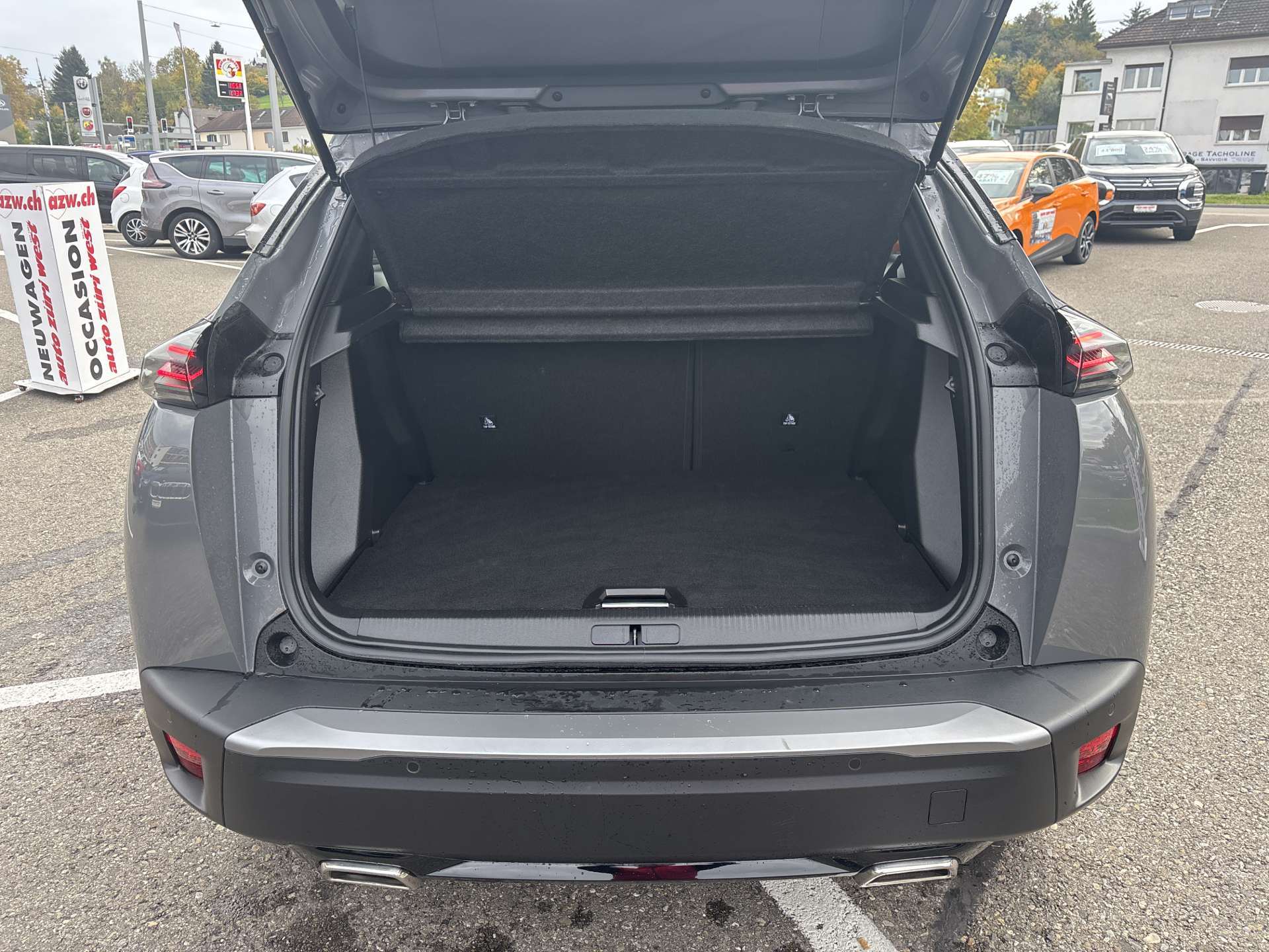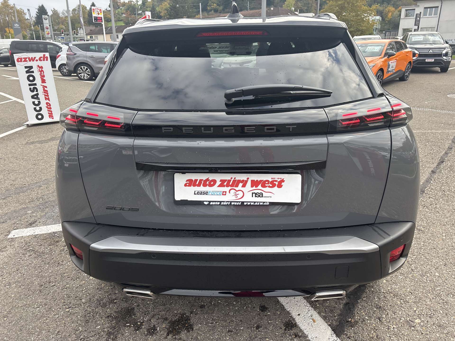 3-Tasten-Fernbedienung + Standardschlüssel, 4 Haltegriffe (2 vorne und 2 hinten), Abschaltbares ESP, Airbag: 6 Airbags, Akustische Windschutzscheibe, Antiblockiersystem (ABS), Armaturenbrett aus Schaumstoff mit Carbone-Dekor, Armlehnen in den Türen vorne und hinten Baladin Grau meliert, Assist: Adaptiver Geschwindigkeitsregler mit Stop/Go, Assist: Aktiver Warnhinweis auf unbeabsichtigtes Überfahren von Linie und Strassenrand, Assist: Aufmerksamkeitswarnung für den Fahrer, Assist: Automatische Notbremsung mit Kollisionswarnung, Assist: Einparkhilfe hinten, akustisch und visuell, Assist: Einparkhilfe vorn, Assist: Erweiterte Verkehrszeichenerkennung und Geschwindigkeitsempfehlung, Assist: Spurhalteassistent, Assist: Teilautonomes Fahren, Assist: Tempomat / Geschwindigkeitsbegrenzer, Assist: Traktionskontrolle (ASR), Assist: Visiopark 2, Aussenbeleuchtung für Empfang und Begleitung, Aussenspiegel in Schwarz glänzend, Automatisches Einschalten der Frontscheibenwischer, Beheizbare Aussenspiegel, elektrisch einstell- und anklappbar, Dachkantenspoiler in der Wagenfarbe, Dachreling in glänzendem Schwarz, Elektrische Fensterheber vorne und hinten, sequenziell und mit Einklemmschutz, Getriebe: 8-Stufen-Automat sequentiell, Hohe Konsole mit Armlehne & elektrischer Feststellbremse, Höhenverstellbare Kopfstützen mit optimierter Sicherheit, Innenbeleuchtung, Innenraum und Dachhimmel Schwarz, Innenspiegel automatisch abblendbar, ISOFIX- und Top-Tether-Befestigungen an den hinteren Seitenplatzen, Katana Mattschwarz, Klima: Automatische Einzonen-Klimaanlage, Kofferraumschutzleiste Grau Meteor, Kühlergrill, Lackierung: Metallic-Lackierung, Lenkrad: Kompaktlederlenkrad mit integrierten Bedienelementen, Licht: 3-Krallen-LED-Rückleuchten, Licht: Automatische Abblendlichteinschaltung, Licht: Scheinwerfer Peugeot LED Technology mit 3-Krallen-LED-Tagfahrlicht, Mattschwarze Zierleisten an den Seitenfenstern, Media: 1 USB-C-Steckdose (Aufladung), Media: 6 Lautsprecher (2 tweeters und 2 woofers vorne u. 2 hinten), Media: PEUGEOT i-Connect, Paket: Paket Safety, Paket: Paket Safety Plus, Paket: Paket Vision and Drive Assist Plus, Paket: Sicht-Paket, Peugeot Connect SOS & Assistenz, Peugeot i-Cockpit mit digitalem 10-Zoll-Head-up-Kombiinstrument, Polster: Stoff CASUAL LOMSA geprägt,, Räder: 17-Zoll-Alufelgen 'Karakoy', glanzgedreht, Räder: Reifendruck-Kontrollanzeige, Räder: Reserverad, Seitenscheiben hinten und Heckscheibe stärker getönt, Seitliche Türschutzleisten Schwarz genarbt, Servolenkung, Sitze: Beifahrersitz höhenverstellbar, Sitze: Fahrersitz mit manueller höhenverstellbar, Sitze: Im Verhältnis 1/3 zu 2/3 umklappbare Rücksitzbank, Sitze: Sitzheizung vorne, Türarmlehnen vorne und hinten in Stoff/Kunstleder Isabella mit Quarznaht, Türgriffe in Wagenfarbe, Türverkleidung hinten mit Karsten-Maserung, Verchromte Auspuffkanüle, Vordere Türverkleidungen mit Tampondruck in matt schwarz, Zentralverriegelung, Zierleiste unterhalb der Heckfenster in Schwarz