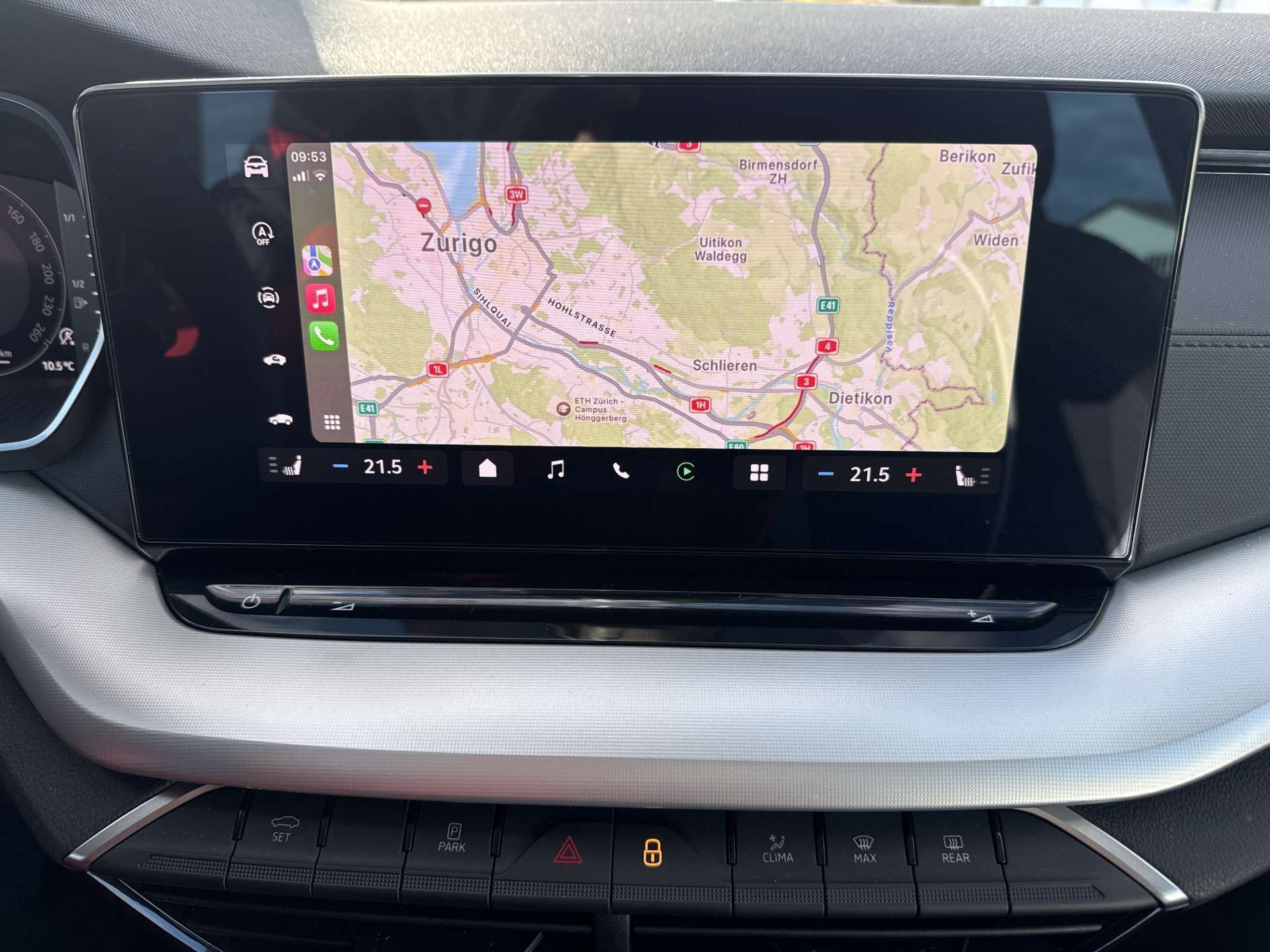12 Volt-Steckdose im Laderaum, 3 Kopfstützen hinten, 3-Punkt-Sicherheitsgurte auf allen Plätzen, ABS mit ASR und EDS, Airbag: Airbag für Vordersitze mit Beifahrerairbag-Deaktivierung und Fahrer Knieairbag, Airbag: Kopf-, Seiten- und Zentralairbag vorne (zwischen Fahrer- und Beifahrersitz), Assist: Abbiegeassistent mit Gegenverkehr Warnung, Assist: Ablenkungs- und Müdigkeitserkennung, Assist: Adaptive Geschwindigkeitsregelanlage "Adaptive Cruise Control", Assist: Berganfahrassistent, Assist: Kreuzungsassistent mit Querverkehrserkennung von Fahrzeugen und Fussgänger, Assist: Notbremsassistent "Front Assist", Assist: Notrufsystem Emergency-Call, Assist: Parksensoren hinten, Assist: Predictive Cruise Control (PCC), Assist: Spurhalteassistent "Lane Assist", Assist: Verkehrszeichenerkennung, Aussenspiegel elektrisch anklappbar, Aussenspiegel elektrisch einstell- und beheizbar, Aussenspiegel in Wagenfarbe, Aussenspiegel mit automatischer Abblendung (nur Fahrerseite), Dachreling schwarz, Dekor: Dekoreinlage am Armaturenbrett "Silver Squares Haptic", Design Selection Loft, Diebstahlwarnanlage, Innenraumüberwachung, Back-up-Horn und Abschleppschutz, Drittes Bremslicht LED, Elektrische Fensterheber vorne + hinten, Elektrische Kindersicherung, Elektronisches Stabilitäts-Programm (ESP), Getriebe: 7-Gang DSG, Gurtstraffer vorne und hinten, Heckscheiben-Wisch-/Waschanlage mit Iinterval, Innenspiegel automatisch abblendbar, Klima: Climatronic 2-Zonen-Temperaturregelung, vollautomatisch, getrennt regelbar, Kopfstützen hinten höhenverstellbar, Kopfstützen vorne, Lackierung: Uni-Lackierung, Lenkrad: 2-Speichen-Leder-Multifunktionslenkrad mit Schaltwippen, Licht: Basis LED Frontscheinwerfer inkl. LED Tagfahrlicht, Licht: LED Rückleuchten, Licht: Leuchtweitenregulierung manuell, Media: "SmartLink" (CarPlay und Android Auto), Media: 2 USB-C Anschlüsse vorne und hinten, Media: 8 Lautsprecher, Media: DAB+ (Digital Audio Broadcasting), Media: Phonebox und Wireless Charging, Mittelarmlehne vorne, Mittelkonsole mit Jalousie, Nebelschlussleuchte, Ohne Ablagekasten unter Beifahrersitz, Polster: Sitzbezüge Stoff schwarz, Räder: Pannenset (Kompressor und Flasche mit Dichtmittel, ohne Reserverad), Räder: Reifendruckkontrollsystem, Regenschirm in der Fahrertüre, Regensensor mit Lichtassistent (Coming Home, Leaving Home, Tunnel Light), Servolenkung, Sitze: Komfortsitze, Sitze: Ungeteilte Rücksitzbank, geteilt umklappbare Rückenlehne, mit Mittelarmlehne, Sitze: Vorbereitung für Kindersitzhalterung mit Sicherheitssystem ISOFIX auf dem Beifahrersitz, Sitze: Vordersitze heizbar, Sitze: Vordersitze höhenverstellbar (manuell), Sitze: Vordersitze mit Lendenwirbelstütze manuell anpassbar, Startsystem schlüssellos "Easy Start" mit Safelock, Textilfussmatten, Virtuelles Cockpit Plus, Vorbereitung Alkohol-Zündschlosssperre "Alcohol Interlock", Wegfahrsperre elektronisch, Zentralverriegelung mit Fernbedienung
