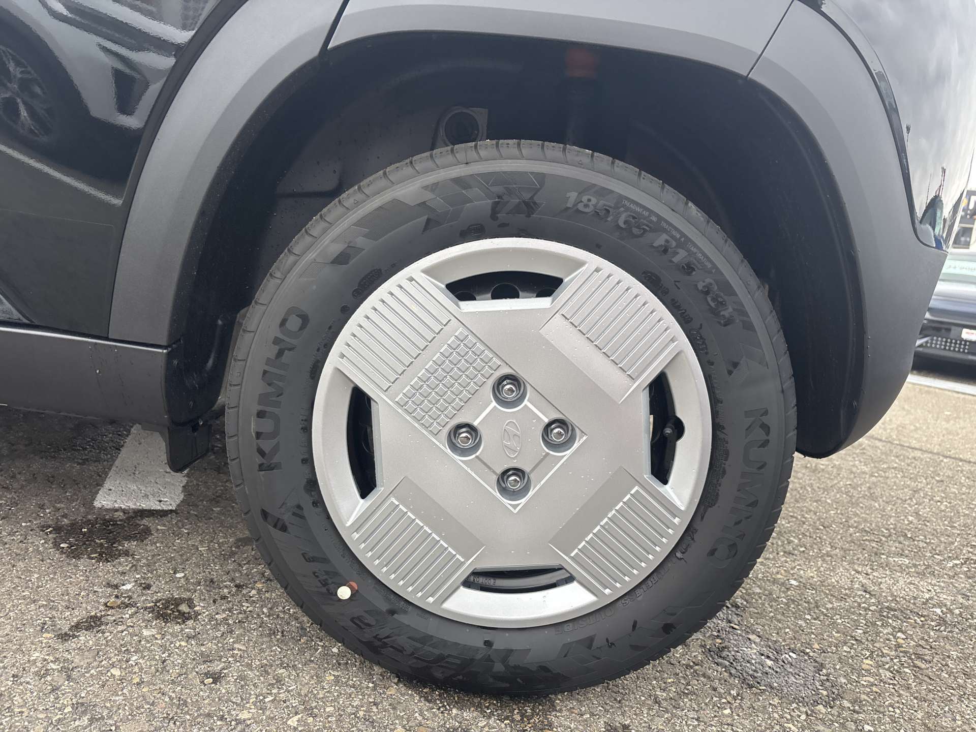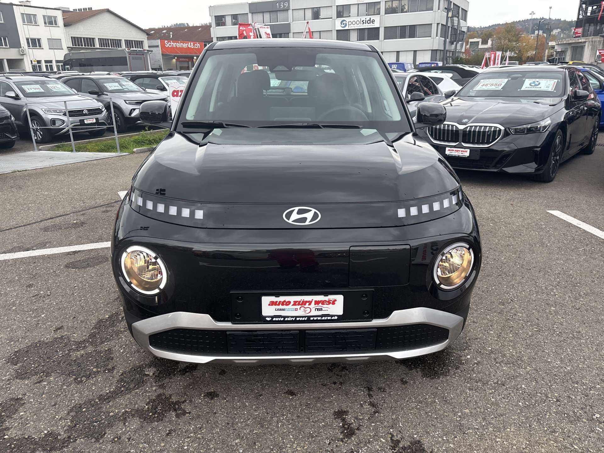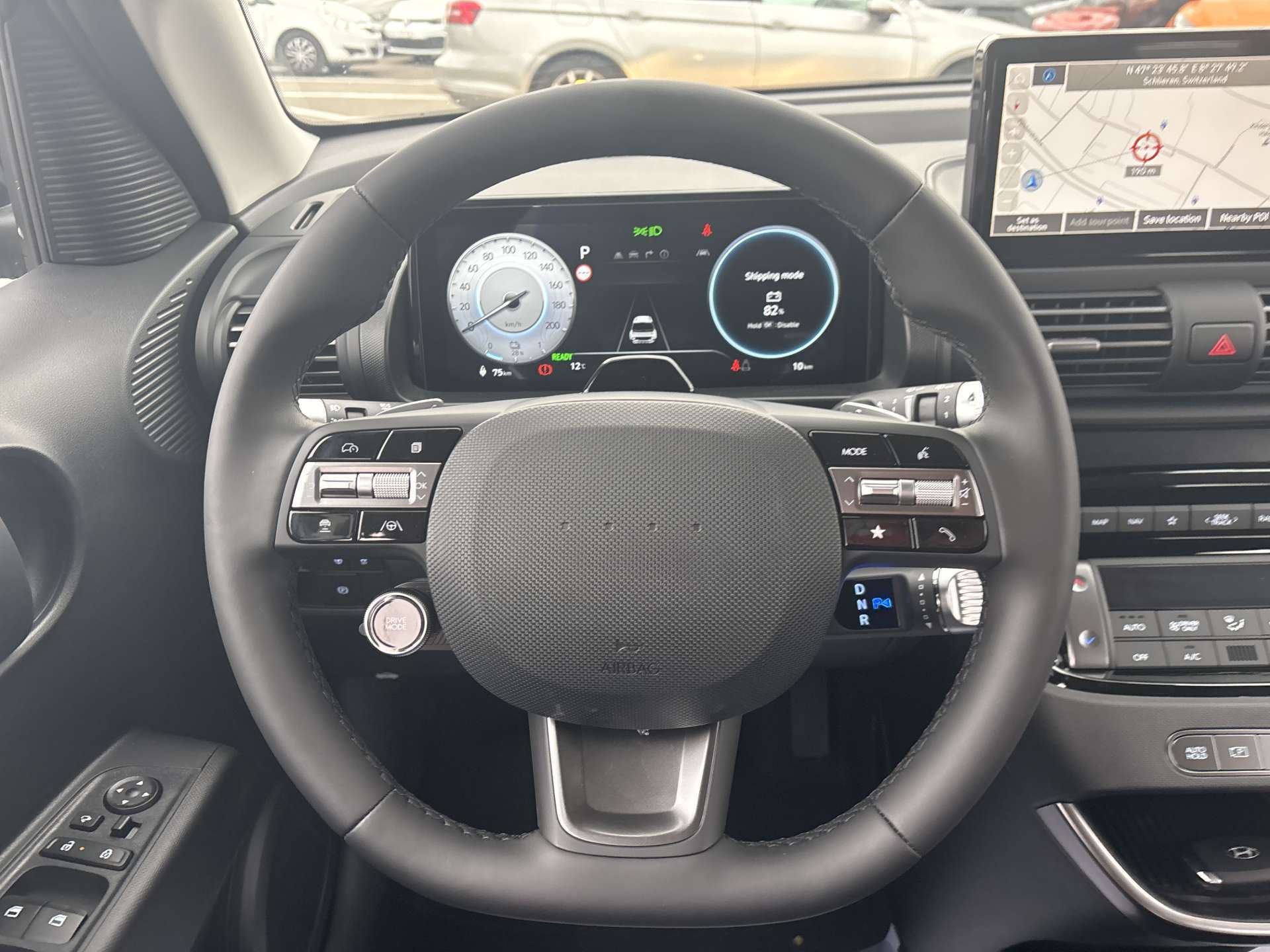 A-Säule in Wagenfarbe, Ablagefläche Fahrer- und Beifahrersitz (Rückseite), ABS mit elektronischer Bremskraftverteilung EBD, Airbag: Center Airbag vorne, Airbag: Deaktivierung Frontairbag Beifahrerseite, Airbag: Front- und Seitenairbags vorne, Vorhangairbags vorne und hinten, Assist: Anfahralarm Vorderfahrzeug, Assist: Aufmerksamkeitsassistent, Assist: Autobahn- und Stauassistent, Assist: Automatisches Notrufsystem eCall, Assist: Einparkhilfe hinten, Assist: Elektrische Parkbremse mit Auto-Hold-Funktion, Assist: Elektronische Traktionskontrolle, Assist: Notbremsassistent mit Abbiege-, Spurwechsel- und Ausweichfunktion, Assist: Notbremsassistent mit Fussgänger-/Fahrraderkennung und Abbiegefunktion, Assist: Rückfahrkamera, Assist: Spurhalteassistent, Assist: Tempomat mit Geschwindigkeitsbegrenzer, Drive Mode Select, Elektrisch einklappbare Aussenspiegel, Elektrisch verstell- und beheizbare Aussenspiegel, Elektronisches Stabilitätsprogramm ESP mit Multikollisionsbremse, Fensterheber vorne und hinten elektrisch, Gepäckraumbeleuchtung, Getriebe: Direktantrieb, kein Getriebe, Insassenalarm, ISOFIX-Kindersitzverankerung hinten, Klima: Klimaautomatik, Lackierung: Uni-Lackierung, Ladegerät (On-Board Charger) dreiphasig bis zu 11 kW, Ladekabel 5 Meter Mode 3 Typ 2, 3-Phasig, inkl. Hyundai-Tragtasche, Lenkrad: Audiofernbedienung am Lenkrad, Lenkrad: Lederlenkrad, Lenkrad: Lenkrad beheizbar, Lenkrad: Schaltwippen am Lenkrad mit i-Pedal Funktion, Licht: Fernlichtassistent, Licht: Halogen-Projektionsscheinwerfer, Licht: Halogen-Rückleuchten, Licht: LED Blinker, Licht: LED-Tagfahrlicht, Licht: Lichtautomatik, Make-up Spiegel Fahrer, Manuelle Heckklappe, Media: 4 Lautsprecher, Media: Android Auto - und Apple CarPlay -Funktion, Media: Digitale Armaturentafel mit 10.25'' TFT LCD Anzeige, Media: Digitalradio DAB+, Media: MapCare Lifetime / Over-the-Air Update, Media: Multi-Bluetooth mit Freisprecheinrichtung mit Spracherkennung, Media: Navigationssystem mit 10.25" Touchscreen, Media: Telematikdienst Bluelink Lite (10 Jahre gratis), Media: USB- Anschlüsse vorne, Polster: Stoffsitze, Räder: Reifendruckkontrollsystem, Räder: Reifenreparatur-Set, Räder: Stahlfelgen 15" mit Radzierblenden, Radlaufverkleidung in Schwarz, Servolenkung, Shift by wire, Sitze: Flach umklappbarer Fahrer- und Beifahrersitz, Sitze: Manuell höhenverstellbarer Fahrersitz, Sitze: Rücksitze getrennt abklappbar (50/50), Sitze: Sitzheizung vorne, Smart Key mit Engine Start/Stop-Taste und Bewegungssensor, Türgriffe und Aussenspiegel in Wagenfarbe, Unterfahrschutz silber, Vorbereitung für Anhängevorrichtung, Wärmedämmende Scheiben vorne, Zentralverriegelung