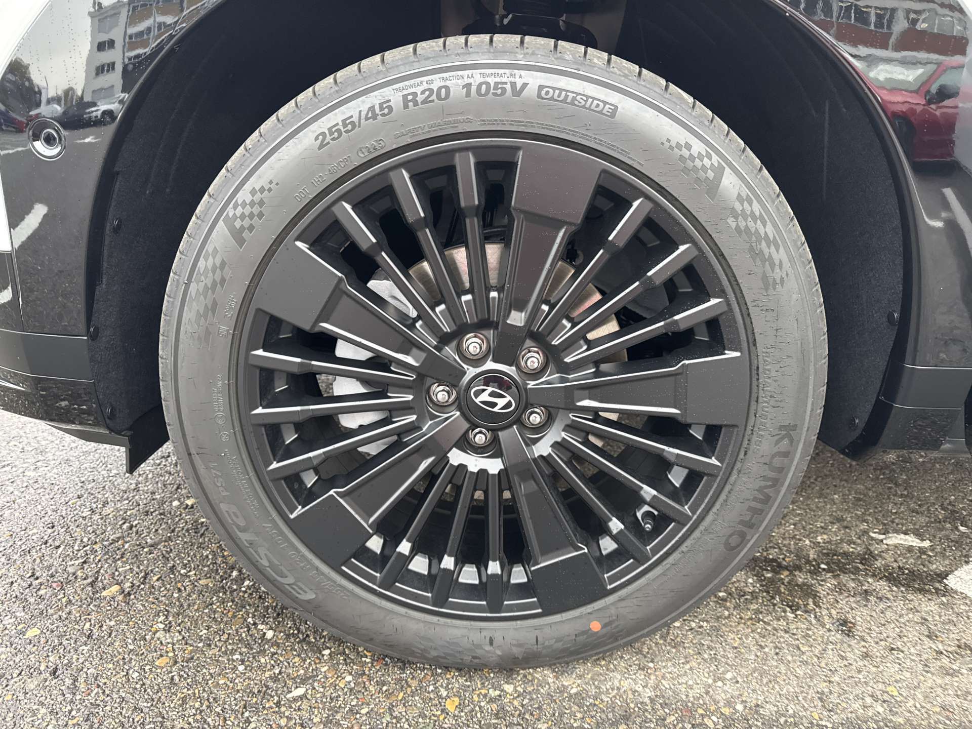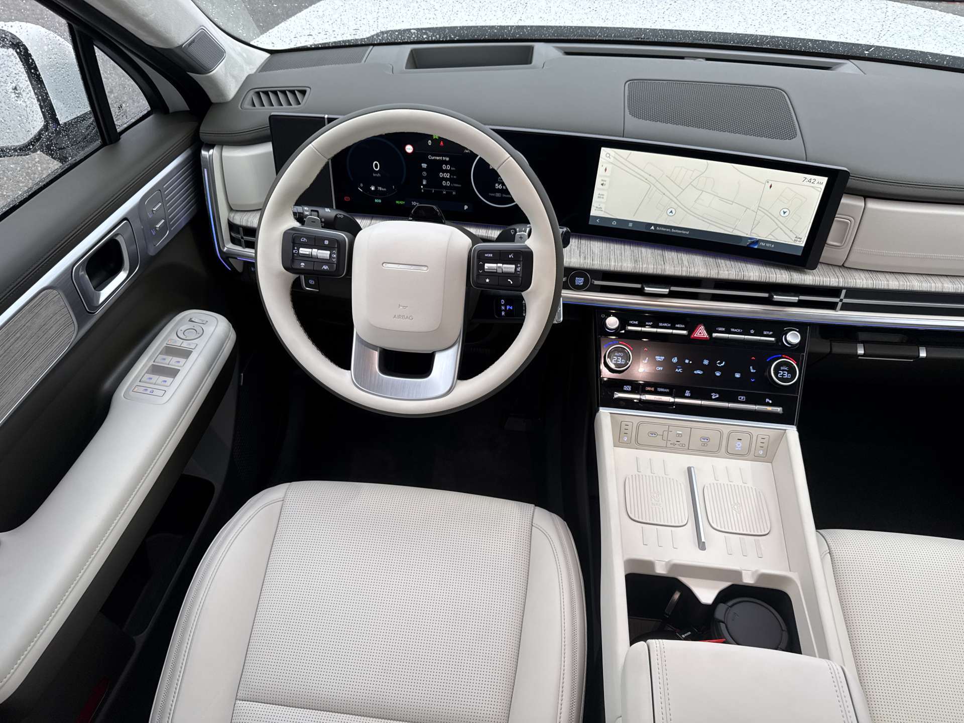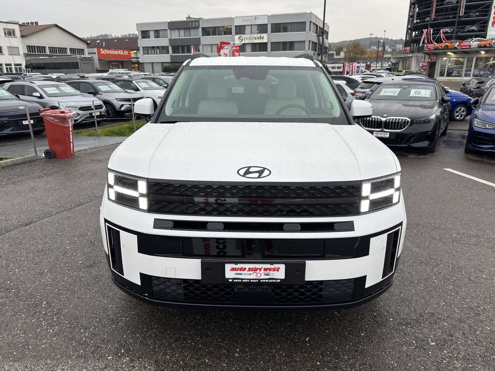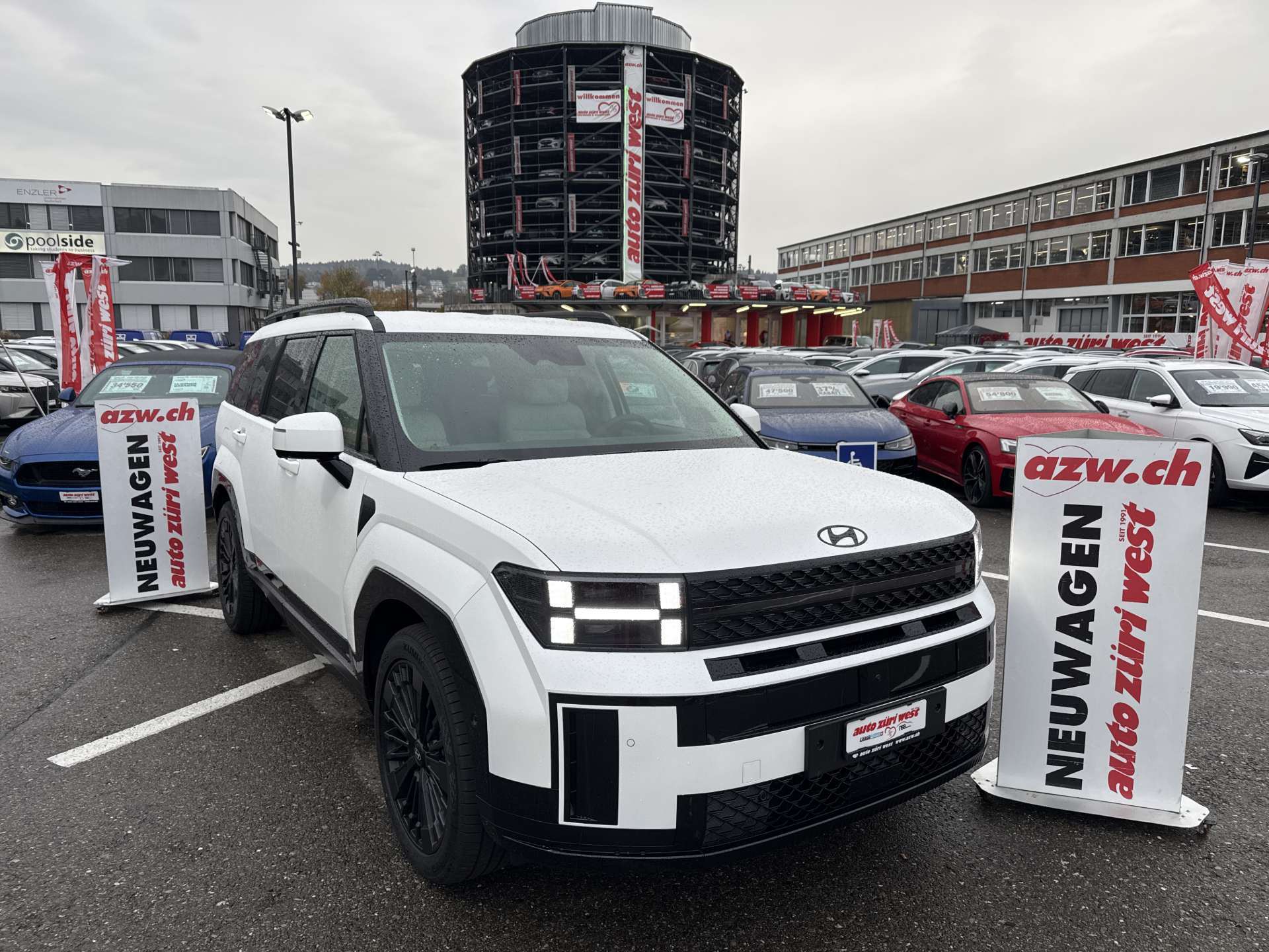 220 V Spannungswandler, ABS, EBD elektronische Bremskraftverteilung, Airbag: Airbag Beifahrer deaktivierbar, Airbag: Front- und Seitenairbags vorne, Airbag: Knieairbag Fahrerseite, Center-Airbag vorne, Airbag: Vorhangairbags vorne und hinten, Akustik-Verbundglas vorne, Alarmanlage, Ambientebeleuchtung, Anhänger Stabilisierungkontrolle TSA, Assist: 360° Rundumsichtkamera, Assist: Aktiver Totwinkelassistent mit Videoübertragung auf Kombiinstrument, Assist: Aufmerksamkeitsassistent mit Kamera (Fahrer), Assist: Autobahn- und Stauassistent, Assist: Automatische Ein- und Ausparkfunktion mit Fernbedienung, Assist: Bergabfahrhilfe (DAC), Assist: Berganfahrhilfe (Hill Holder), Assist: Einparkhilfe hinten mit Bremsassistent, Assist: Einparkhilfe vorne und hinten und seitwärts, Assist: Einparkhilfe vorne und hinten, Rückfahrkamera, Assist: Elektrische Parkbremse mit Auto-Hold-Funktion, Assist: Elektronische Traktionskontrolle, Assist: Insassenalarm mit Ultraschall-Sensoren (Rear Occupant Assist), Assist: Navigationsbasierter adaptiver Tempomat, Assist: Notbremsassistent mit Abbiege- und Kreuzungsfunktion, Assist: Notbremsassistent mit Fussgänger-/Fahrraderkennung und Abbiegefunktion, Assist: Querverkehrswarner hinten mit Bremsassistent, Assist: Spurfolgeassistent, Assist: Spurhalteassistent, Assist: Spurwechselassistent, Assist: Tempomat mit Distanzassistent - autom. Verzögerung bis zum Stillstand, Assist: Verkehrszeichenerkennung mit automatischer Geschwindigkeitsregelung, Aussenspiegel elektrisch einklappbar, Aussenspiegel mit Welcome-Light, Automatische Niveauregulierung hinten, Automatisches Notrufsystem eCall, Bordcomputer, Dachreling, Design-Kühlergrill mit Applikationen in dunklem Chrom, Digital Key 2.0, Digitaler Innenspiegel mit Smart-View-Technologie (DCM), Dreipunkt-Sicherheitsgurte auf allen Plätzen, vorne höhenverstellbar, Elektrisch verstell- und heizbare Aussenspiegel mit integrierten Seitenblinkern, Elektrische Fensterheber hinten mit Schnellsenkfunktion und Einklemmschutz, Elektrische Fensterheber vorne mit Schnellsenkfunktion und Einklemmschutz, Elektrische Heckklappe mit hands-free Funktion, Elektronisches Stabilitätsprogramm ESP mit Multikollisionsbremse, Fahrwerk: HTRAC Allradantrieb mit 3 verschiedenen Fahrmodi und variabler Drehmomentsteuerung, Fahrwerk: Terrain Mode Selector, Gepäcknetz(e), Gepäckraumrollo, Getriebe: 6-Gang Automatikgetriebe, Getriebe: Elektronische Gangschaltung HEV (Shift by wire), Head-up Display mit Projektion auf die Windschutzscheibe, Hyundai Logo und Modellschriftzug in schwarz, Integrierter Haltegriff C-Säule, ISOFIX-Kindersitzverankerung 2. Sitzreihe, Klima: 2-Zonen-Klimaautomatik mit Anti-Beschlagsystem, Klima: Separate Klimaregulierung in der 3. Sitzreihe, Lackierung: Uni-Lackierung, Lenkrad; Lederlenkrad und -schaltknauf, Lenkrad: Lederlenkrad zweifarbig, Lenkrad: Lenkrad beheizbar, Lenkrad: Lenkrad vertikal und axial verstellbar, Lenkrad: Schaltpaddles am Lenkrad, Licht: Bi-LED Scheinwerfer, Licht: Fernlichtassistent, Licht: LED Rücklichter, Licht: LED-Projektionsscheinwerfer, Licht: LED-Tagfahrlicht, Licht: Lichtautomatik, Licht: Scheinwerfer mit Welcome- und Escort-Funktion, Media: Audio-Fernbedienung am Lenkrad, Media: Digitale Armaturentafel mit 12.3'' TFT LCD Anzeige, Media: Kabellose Android Auto - und Apple CarPlay-Funktion, Media: Kabelloses Laden für Smartphone, Media: MapCare Lifetime / Over-the-Air Update, Media: Multi-Bluetooth mit Freisprecheinrichtung, Media: Navigationssystem mit 12.3"-Farbdisplay, Media: Premium Audiosystem Bose mit Verstärker, Subwoofer und Center-Speaker, Media: Telematikdienst Bluelink Lite und LIVE Services (10 Jahre gratis), Passagier-Kommunikationssystem 3. Sitzreihe, Polster: Innenausstattung Nappa-Leder, Polster: Innenverkleidung Wildleder (Dachhimmel, Säulen, Sonnenblenden), Privacy Glass, abgedunkeltes Scheibenglas hinten (ab B-Säule), Räder: 20'' Leichtmetallfelgen, Räder: Reifendruckkontrollsystem, Radläufe und Leiste oberhalb des Schwellers in schwarz glänzend, Regensensor, Schlüsselloses Zugangssystem Smart Key mit Engine Start/Stop-Taste, Servolenkung, Sitze: 2. Sitzreihe gentrennt abklappbar (60/40) und verschiebbar (60/40), Sitze: Elektrisch einstellbare Lendenwirbelstütze, Fahrersitz, Sitze: Elektrisch verstellbarer Fahrer- und Beifahrersitz, Sitze: Fahrersitz mit Memoryfunktion, Sitze: One touch System zum Einstieg in die dritte Sitzreihe, Sitze: Sitzbelüftung vorne, Sitze: Sitzheizung 2. Sitzreihe aussen, Sitze: Sitzheizung vorne, Sitze: Vordersitze mit Relaxfunktion, Sonnenschutzrollo für Fenster 2. Sitzreihe, Start-/Stopp-Automatik, Türgriffe in Wagenfarbe, UV-C Desinfektionssschale, Wegfahrsperre elektronisch, Zentralverriegelung mit Fernbedienung