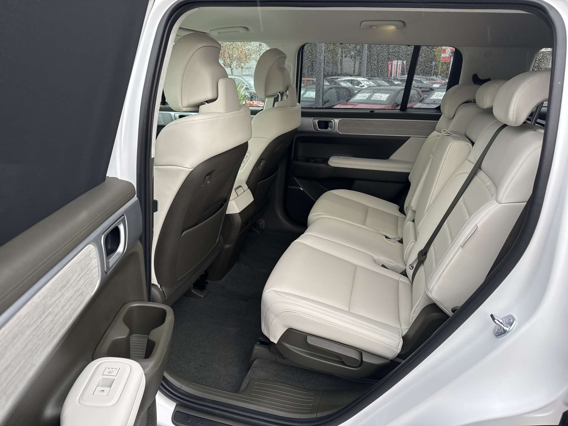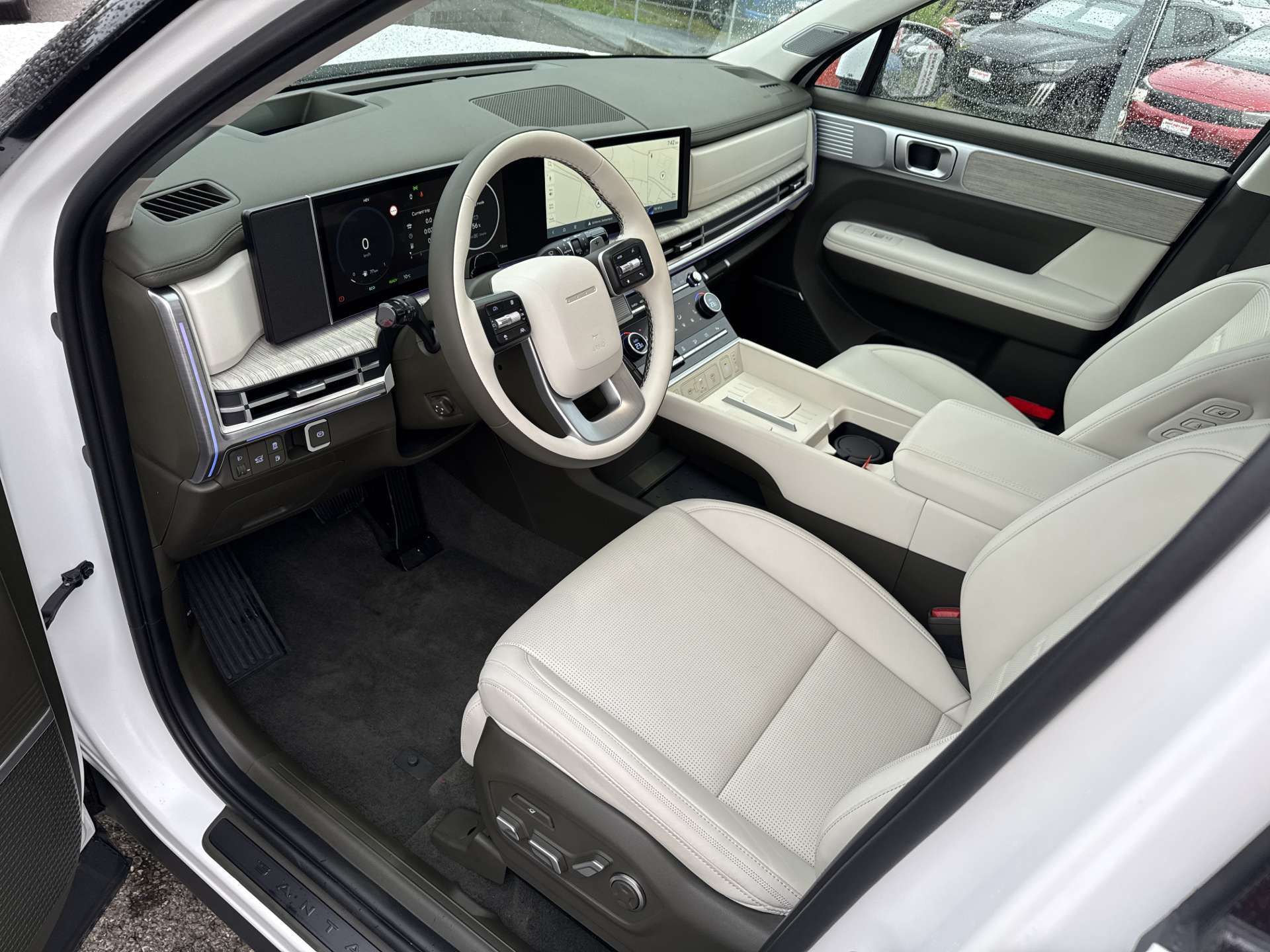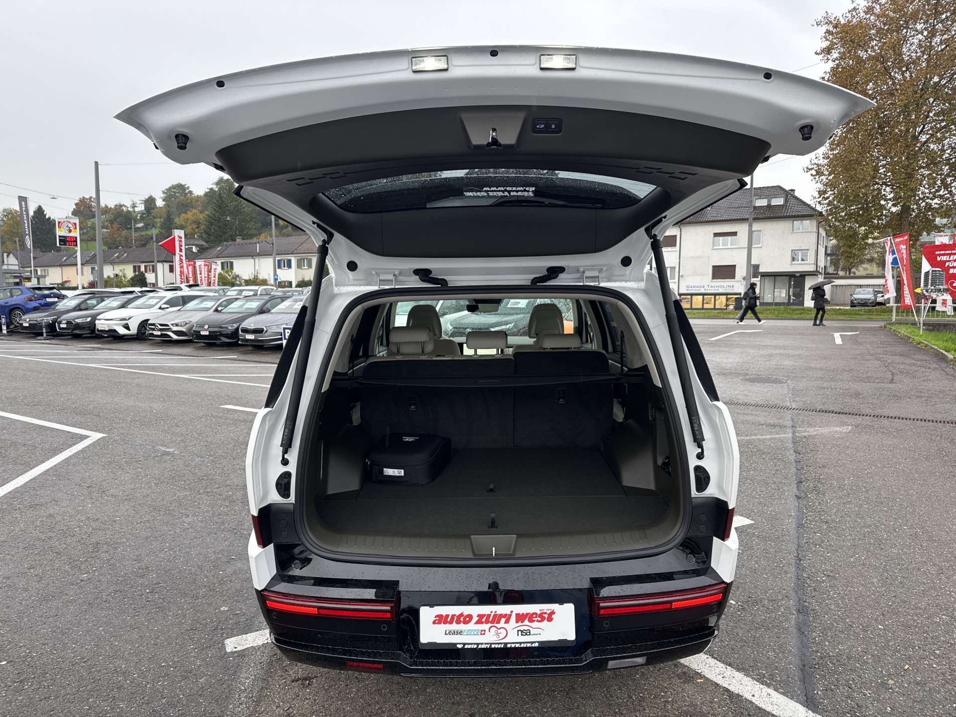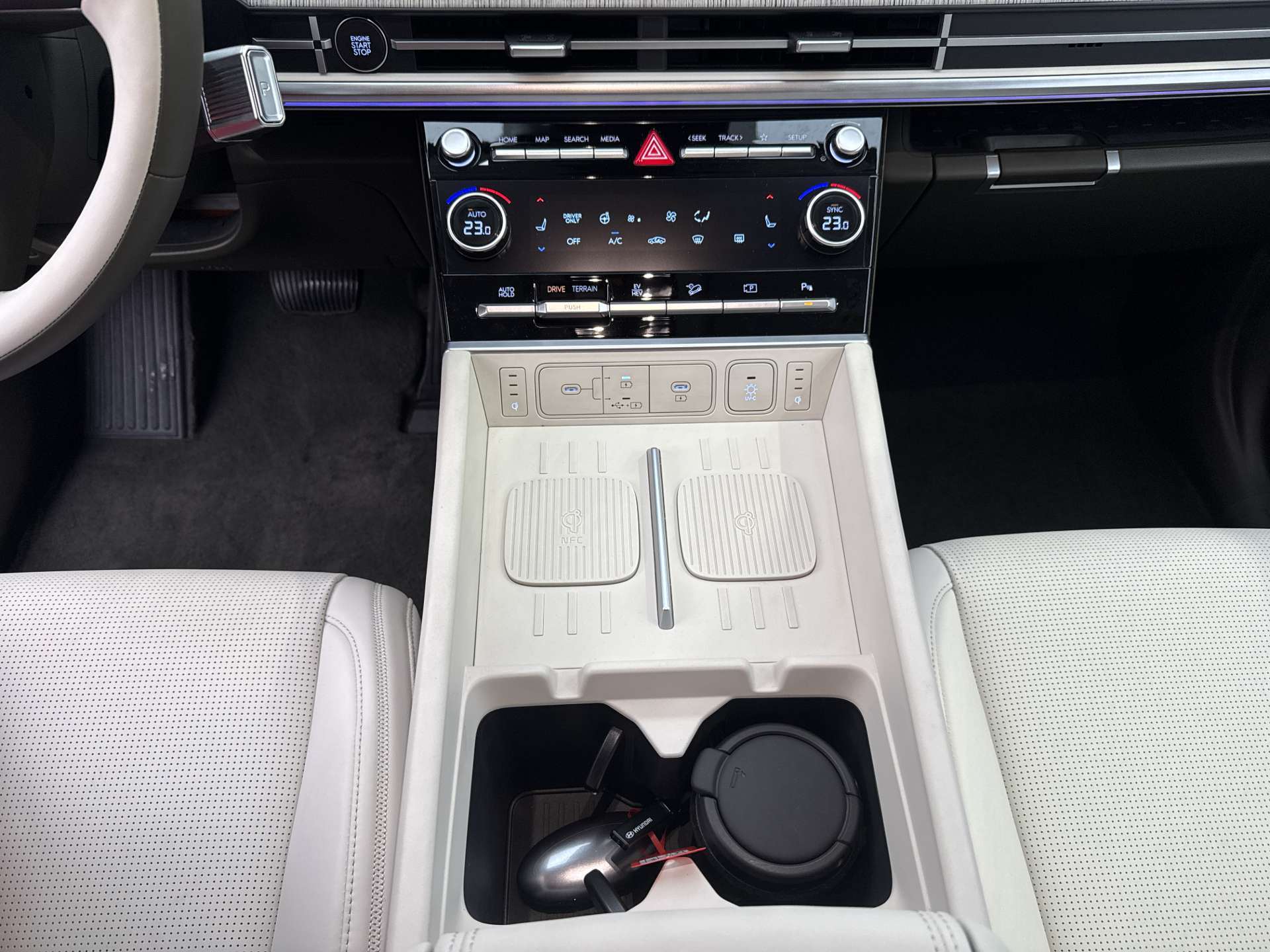 220 V Spannungswandler, ABS, EBD elektronische Bremskraftverteilung, Airbag: Airbag Beifahrer deaktivierbar, Airbag: Front- und Seitenairbags vorne, Airbag: Knieairbag Fahrerseite, Center-Airbag vorne, Airbag: Vorhangairbags vorne und hinten, Akustik-Verbundglas vorne, Alarmanlage, Ambientebeleuchtung, Anhänger Stabilisierungkontrolle TSA, Assist: 360° Rundumsichtkamera, Assist: Aktiver Totwinkelassistent mit Videoübertragung auf Kombiinstrument, Assist: Aufmerksamkeitsassistent mit Kamera (Fahrer), Assist: Autobahn- und Stauassistent, Assist: Automatische Ein- und Ausparkfunktion mit Fernbedienung, Assist: Bergabfahrhilfe (DAC), Assist: Berganfahrhilfe (Hill Holder), Assist: Einparkhilfe hinten mit Bremsassistent, Assist: Einparkhilfe vorne und hinten und seitwärts, Assist: Einparkhilfe vorne und hinten, Rückfahrkamera, Assist: Elektrische Parkbremse mit Auto-Hold-Funktion, Assist: Elektronische Traktionskontrolle, Assist: Insassenalarm mit Ultraschall-Sensoren (Rear Occupant Assist), Assist: Navigationsbasierter adaptiver Tempomat, Assist: Notbremsassistent mit Abbiege- und Kreuzungsfunktion, Assist: Notbremsassistent mit Fussgänger-/Fahrraderkennung und Abbiegefunktion, Assist: Querverkehrswarner hinten mit Bremsassistent, Assist: Spurfolgeassistent, Assist: Spurhalteassistent, Assist: Spurwechselassistent, Assist: Tempomat mit Distanzassistent - autom. Verzögerung bis zum Stillstand, Assist: Verkehrszeichenerkennung mit automatischer Geschwindigkeitsregelung, Aussenspiegel elektrisch einklappbar, Aussenspiegel mit Welcome-Light, Automatische Niveauregulierung hinten, Automatisches Notrufsystem eCall, Bordcomputer, Dachreling, Design-Kühlergrill mit Applikationen in dunklem Chrom, Digital Key 2.0, Digitaler Innenspiegel mit Smart-View-Technologie (DCM), Dreipunkt-Sicherheitsgurte auf allen Plätzen, vorne höhenverstellbar, Elektrisch verstell- und heizbare Aussenspiegel mit integrierten Seitenblinkern, Elektrische Fensterheber hinten mit Schnellsenkfunktion und Einklemmschutz, Elektrische Fensterheber vorne mit Schnellsenkfunktion und Einklemmschutz, Elektrische Heckklappe mit hands-free Funktion, Elektronisches Stabilitätsprogramm ESP mit Multikollisionsbremse, Fahrwerk: HTRAC Allradantrieb mit 3 verschiedenen Fahrmodi und variabler Drehmomentsteuerung, Fahrwerk: Terrain Mode Selector, Gepäcknetz(e), Gepäckraumrollo, Getriebe: 6-Gang Automatikgetriebe, Getriebe: Elektronische Gangschaltung HEV (Shift by wire), Head-up Display mit Projektion auf die Windschutzscheibe, Hyundai Logo und Modellschriftzug in schwarz, Integrierter Haltegriff C-Säule, ISOFIX-Kindersitzverankerung 2. Sitzreihe, Klima: 2-Zonen-Klimaautomatik mit Anti-Beschlagsystem, Klima: Separate Klimaregulierung in der 3. Sitzreihe, Lackierung: Uni-Lackierung, Lenkrad; Lederlenkrad und -schaltknauf, Lenkrad: Lederlenkrad zweifarbig, Lenkrad: Lenkrad beheizbar, Lenkrad: Lenkrad vertikal und axial verstellbar, Lenkrad: Schaltpaddles am Lenkrad, Licht: Bi-LED Scheinwerfer, Licht: Fernlichtassistent, Licht: LED Rücklichter, Licht: LED-Projektionsscheinwerfer, Licht: LED-Tagfahrlicht, Licht: Lichtautomatik, Licht: Scheinwerfer mit Welcome- und Escort-Funktion, Media: Audio-Fernbedienung am Lenkrad, Media: Digitale Armaturentafel mit 12.3'' TFT LCD Anzeige, Media: Kabellose Android Auto - und Apple CarPlay-Funktion, Media: Kabelloses Laden für Smartphone, Media: MapCare Lifetime / Over-the-Air Update, Media: Multi-Bluetooth mit Freisprecheinrichtung, Media: Navigationssystem mit 12.3"-Farbdisplay, Media: Premium Audiosystem Bose mit Verstärker, Subwoofer und Center-Speaker, Media: Telematikdienst Bluelink Lite und LIVE Services (10 Jahre gratis), Passagier-Kommunikationssystem 3. Sitzreihe, Polster: Innenausstattung Nappa-Leder, Polster: Innenverkleidung Wildleder (Dachhimmel, Säulen, Sonnenblenden), Privacy Glass, abgedunkeltes Scheibenglas hinten (ab B-Säule), Räder: 20'' Leichtmetallfelgen, Räder: Reifendruckkontrollsystem, Radläufe und Leiste oberhalb des Schwellers in schwarz glänzend, Regensensor, Schlüsselloses Zugangssystem Smart Key mit Engine Start/Stop-Taste, Servolenkung, Sitze: 2. Sitzreihe gentrennt abklappbar (60/40) und verschiebbar (60/40), Sitze: Elektrisch einstellbare Lendenwirbelstütze, Fahrersitz, Sitze: Elektrisch verstellbarer Fahrer- und Beifahrersitz, Sitze: Fahrersitz mit Memoryfunktion, Sitze: One touch System zum Einstieg in die dritte Sitzreihe, Sitze: Sitzbelüftung vorne, Sitze: Sitzheizung 2. Sitzreihe aussen, Sitze: Sitzheizung vorne, Sitze: Vordersitze mit Relaxfunktion, Sonnenschutzrollo für Fenster 2. Sitzreihe, Start-/Stopp-Automatik, Türgriffe in Wagenfarbe, UV-C Desinfektionssschale, Wegfahrsperre elektronisch, Zentralverriegelung mit Fernbedienung