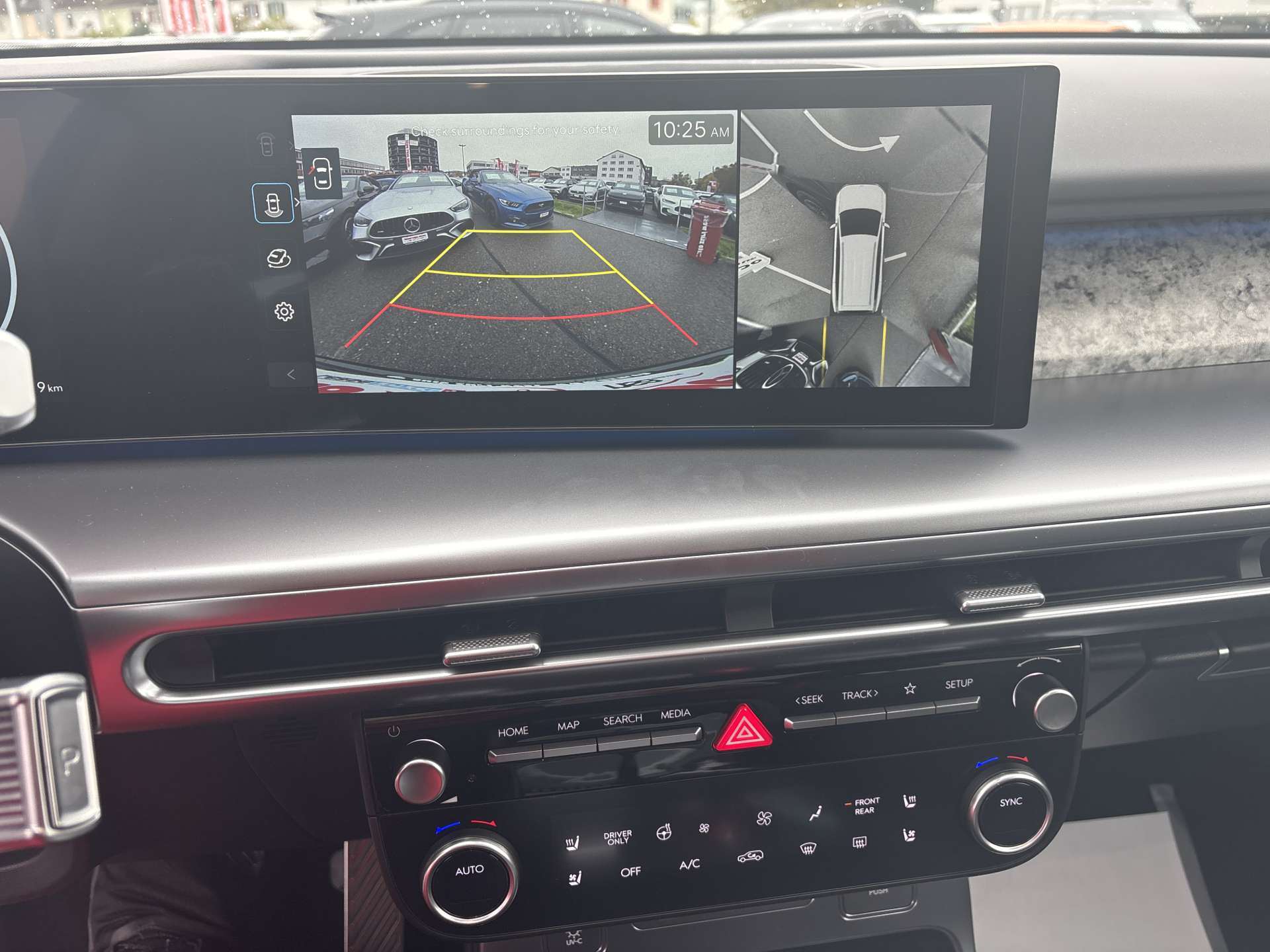 Airbag: Center Airbag vorne, Airbag: Deaktivierung Frontairbag Beifahrerseite, Airbag: Front- und Seitenairbags vorne, Airbag: Knie-Airbag für Fahrer, Airbag: Vorhangairbags vorne und hinten, Aktive Geräuschsminderung, Akustik-Frontscheibe, Alu-Pedale, Ambientebeleuchtung, Anfahralarm Vorderfahrzeug, Antiblockiersystem (ABS), Assist: 360° Rundumsichtkamera, Assist: Aktiver Totwinkelassistent, Assist: Anhänger Stabilisierungkontrolle, Assist: Aufmerksamkeitsassistent mit Kamera (Fahrer), Assist: Ausstiegsassistent, Assist: Automatische Ein- und Ausparkfunktion mit Fernbedienung, Assist: Automatisches Notrufsystem eCall, Assist: Einparkhilfe vorne und hinten und seitwärts, Assist: Elektrische Parkbremse mit Auto-Hold-Funktion, Assist: Elektronische Traktionskontrolle, Assist: Insassenalarm mit Ultraschall-Sensoren (Rear Occupant Assist), Assist: Navigationsbasierter adaptiver Tempomat mit Stop&Go-Funktion, Assist: Notbremsassistent mit Abbiege- und Kreuzungsfunktion, Assist: Notbremsassistent mit Abbiege-, Spurwechsel- und Ausweichfunktion, Assist: Notbremsassistent mit Fussgänger-/Fahrraderkennung und Abbiegefunktion, Assist: Querverkehrswarner hinten mit Bremsassistent, Assist: Rückfahrkamera mit digitalem Rückspiegel, Assist: Spurfolgeassistent, Assist: Spurhalteassistent, Assist: Spurwechselassistent, Assist: Verkehrszeichenerkennung mit automatischer Geschwindigkeitsregelung, Assist: Videoübertragung des toten Winkels bei Richtungsanzeige, Aussenspiegel in Wagenfarbe, Automatisch abblendender Innenspiegel mit Digitalfunktion, Automatisch ausklappende Türgriffe, Batterieheizsystem, Bewegliche Mittelarmlehne 2.0 (6-Plätzer), Dachreling, Digitale Armaturentafel mit 12.3'' TFT LCD Anzeige, Drive Mode Select, Elektrisch verstell- und heizbare Aussenspiegel mit integrierten Seitenblinkern, Elektrische Fensterheber vorne u. hinten, Elektrische Heckklappe, Elektronische Wegfahrsperre, Elektronisches Stabilitätsprogramm ESP mit Multikollisionsbremse, Fahrwerk: Terrain Mode Selector, Gepäcknetz, Gepäckraumbeleuchtung und -abdeckung, Getriebe: Direktantrieb, kein Getriebe, Head-up Display mit Projektion auf die Windschutzscheibe, Hochvoltbatterie mit 800 V-Technologie (400 V-kompatibel), ISOFIX-Kindersitzverankerung, Klima: 3-Zonen-Klimaautomatik mit Anti-Beschlagsystem, Kofferraummatte, Lackierung: Pearl-Lackierung Sunset Brown, Ladegerät (On-Board Charger) dreiphasig bis zu 11 kW, Ladekabel 5 Meter Mode 3 Typ 2, 3-Phasig, inkl. Hyundai-Tragtasche, Lenkrad: Audiofernbedienung am Lenkrad, Lenkrad: Lederlenkrad beheizbar, Lenkrad: Lederlenkrad zweifarbig, Lenkrad: Lenkrad vertikal und axial elektrisch verstellbar mit Memoryfunktion, Lenkrad: Pixel-LED Lenkrad, Lenkrad: Wippen am Lenkrad für regeneratives Bremsen 3.0, Licht: Fernlichtassistent, Licht: LED-Rückleuchten im Pixel-Design, Licht: Lichtautomatik, Licht: Matrix-LED-Scheinwerfer im Pixel-Design, Media: Kabellose Android Auto - und Apple CarPlay-Funktion, Media: Kabelloses Laden für Smartphone, Media: Mapcare Lifetime, Media: Multi-Bluetooth mit Freisprecheinrichtung mit Spracherkennung, Media: Navigationssystem mit 12.3"-Touchscreen, Media: Premium Audiosystem Bose mit Verstärker, Subwoofer und Center-Speaker, Media: Telematikdienst Bluelink Lite (10 Jahre gratis), Passagier-Kommunikationssystem 3. Sitzreihe, Polster: Nappaledersitze, Privacy Glass (Rückscheiben dunkel getönt), Räder: 21" Leichtmetallfelgen, Räder: Reifendruckkontrollsystem, Räder: Reifenreparatur-Set, Radläufe und Seitenschweller in Wagenfarbe, Regensensor, Schlüsselloses Zugangssystem Smart Key mit Engine Start/Stop-Taste, Schnellladeanschluss CCS bis zu 350 kW, Servolenkung, Sitze: Einstellbare Lendenwirbelstütze (4 -Wege), Sitze: Elektrisch höhenverstellbarer Fahrersitz, Sitze: Elektrisch verstellbarer Fahrer- und Beifahrersitz, Sitze: Massagefunktion Fahrersitz, Sitze: One touch System zum Einstieg in die dritte Sitzreihe, Sitze: Rücksitze getrennt elektrisch abklappbar 2. Reihe, Sitze: Rücksitze in der 3. Reihe separat und elektrisch umklappbar (50 / 50), Sitze: Sitzbelüftung vorne und hinten, Sitze: Sitzheizung vorne und hinten, Sitze: Vordersitze mit Relaxfunktion, Sonnenrollos für Seitenfenster im Fahrgastraum, Türgriffe in Wagenfarbe, UV-C Desinfektionssschale, V2L-Technologie: 230V/16A-Steckdosen innen und aussen (inkl. Adapter), Vorbereitung für Anhängevorrichtung, Wärmedämmende Scheiben vorne, Wärmepumpe mit Batterievorkonditionierung, Zentralverriegelung, Zweiteiliges elektrisches Panorama-Glasschiebedach