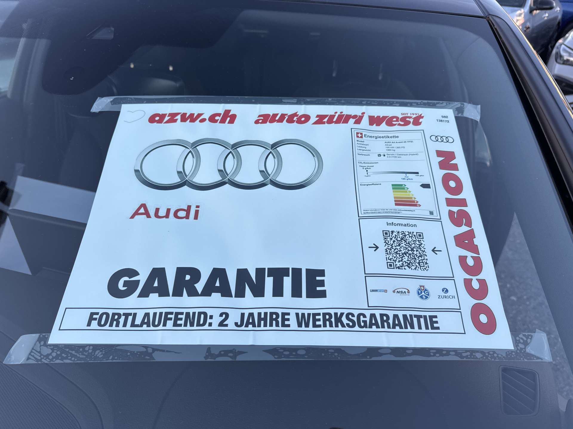 3 Kopfstützen hinten, 3-Punkt-Sicherheitsgurte auf allen Plätzen, ABS, EBD elektronische Bremskraftverteilung, Airbag: Airbag Beifahrer deaktivierbar, Airbag: Airbag Fahrer und Beifahrer, Airbag: Seitenairbags vorne, Airbag: Window-Kopfairbags, Allradantrieb permanent, Assist: Audi active lane assist mit kamerabasierter Verkehrszeichenerkennung, Assist: Einparkhilfe plus, Assist: Kamerabasierte Verkehrszeichenerkennung, Assist: Spurverlassenswarnung, Audi connect Notruf, Audi drive select, Audi pre sense city, Aussenspiegel in Wagenfarbe, Aussenspiegel rechts und links beheizbar und elektrisch verstellbar, Bordwerkzeug, Dachhimmel in Stoff, Dachreling schwarz, Dekor: Akzentflächen schwarz matt, Dekor: Dekoreinlagen Diamantlack silbergrau, Einstiegsleisten mit Aluminiumeinlagen, vorne, beleuchtet, mit S-Schriftzug, Elektronische Parkbremse, Elektronisches Stabilitäts-Programm (ESP), Entfall Modellbezeichnung und Leistungs- / Technologie-Schriftzug, Fahrwerk: Sportfahrwerk, Fensterschachtleisten in Schwarz (Gummi), Frontscheibe in Akustikverglasung, Funkschlüssel, ohne Safelock, Fussmatten vorne und hinten, Gepäckraumklappe elektrisch öffnend und schliessend, Getönte Scheiben, Getriebe: 7-Gang- Automat S tronic, Gurtkontrolle, Heckscheibenheizung, Innenbeleuchtung, Innenspiegel abblendbar, Katalysator geregelt, Kindersicherung, elektrisch, Kindersitzbefestigung ISOFIX und Top Tether für die äusseren Fondsitze, Klima: Klimatisierungsautomatik, Klima: Pollenfilter (Staubfilter), Kofferraumbodenmatte, Kopfstützen vorne höhenverstellbar, Kraftstoffbehälter mit erhöhtem Füllvolumen (58 l), Lackierung: Uni-Lackierung, Lenkrad: Leder-Multifunktionslenkrad im 3-Speichen-Design, Licht: Halogenscheinwerfer, Licht: LED Heckleuchten, Licht: Licht- und Regensensor, Licht: Nebelschlussleuchte, Licht: Tagfahrlicht, Media: 8 Lautsprecher, Media: Audi connect Notruf & Service mit Fahrzeugsteuerung, Media: Bluetooth-Schnittstelle, Media: Digitaler Radioempfang (DAB), Media: MMI Radio plus, Mild-Hybrid, Mittelarmlehne vorn in Kunstleder schwarz mit Kontrastnaht in Rot, Modellbezeichnung gemäss neuer Leistungskennzeichnung, Nichtraucherausführung, Paket: Kindersicherheits-Paket, Polster: Stoff-Ausstattung, Räder: Leichtmetallräder 18 Zoll im 5-Y-Speichen-Design (S-Design), Räder: Reifendruck-Kontrollanzeige, Räder: Reifenreparatur-Set (Tire Fit), Servolenkung Elektromechanisch, Sitze: Normalsitze, Sitze: Rücksitze geteilt abklappbar, Sitze: Vordersitze manuell verstellbar, Sonnenblende auf Fahrer- und Beifahrerseite, Standardabgasanlage, Stopp-/Start-System, Verbandmaterial,Warndreieck und Warnveste, Wärmeschutzverglasung, Wegfahrsperre elektronisch, Wendeladeboden