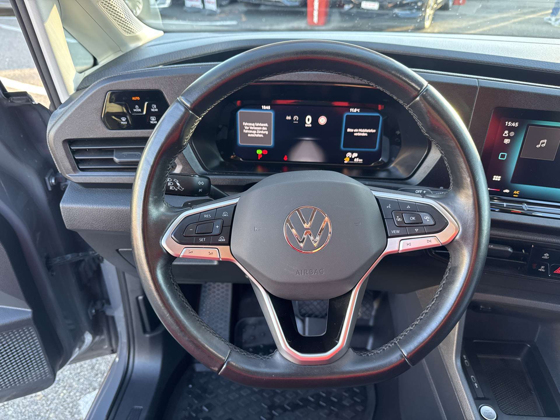 2 Becherhalter in der Mittelkonsole, 230 V Steckdose, 6 Befestigungspunkte für Dachträger, 6 Verzurrösen im Laderaum, Abblendbarer Innenspiegel, Ablagefächer in den Fahrerhaustüren, Abschliessbares Handschuhfach mit Beleuchtung, Airbag: Airbag für Fahrer und Beifahrer mit Beifahrer-Airbag-Deaktivierung, Airbag: Seiten- und Kopfairbags für Fahrer und Beifahrer, Armlehne für linken Vordersitz, Assist: Aufmerksamkeits- & Müdigkeitsassistent, Assist: Berganfahrassistent, Assist: Einparkhilfe hinten, Assist: Einparkhilfe im Front- und Heckbereich, Assist: Geschwindigkeitsregelanlage, Assist: Mit prädiktiven Speedlimiter (pLIM), Assist: Multifunktionskamera, Assist: Notbremsassistent Front Assist mit Fussgänger- und Radfahrererkennung, Assist: Rückfahrkamera "Rear View", Assist: Spurhalteassistent "Lane Assist", Assist: Verkehrszeichenerkennung, Aussenspiegel elektrisch verstellbar und beheizbar, Aussenspiegel elektrisch verstellbar, beheizbar und anklappbar, Backpanel an der Rückenlehne des Beifahrersitzes, Bewegungsenergierückführung, Bordcomputer, Dachgalerie im Fahrerhaus, Dachreling-Vorbereitung, Digital Cockpit Pro, mehrfarbig, verschiedene Info-Profile wählbar, Drehzahlmesser, Elektrische Fensterheber, ESP, elektr. Stabilitätsprogramm mit ABS, EDS, ASR und MSR, Frontscheibe in Wärmeschutzglas beheizbar, Garantie: 2 Jahre ohne Kilometerbegrenzung, Garantie: Garantie gegen Karosserie-Durchrostung: 12 Jahre, Garantie: Garantie gegen Lackmängel: 3 Jahre, Garantie: VW Anschlussgarantie (2+3 Jahre, max. 200'000km), Geschwindigkeitsabhängige Servolenkung, Getriebe: 7-Gang-Getriebe Automatik, Gummibodenbelag im Fahrgastraum, Handschuhfach ohne Klappe und 2 Ablagefächer im Armaturenbrett, Heckscheibenheizung und -wischer, Höhenverstellbare 3-Punkt-Automatik-Sicherheitsgurte mit Gurtstraffer und höhenverstellbare, Innenspiegel automatisch abblendbar, Kältemittel R1234yf, Klima: Klimaanlage, Klima: Standheizung für Frontscheibenenteisung und Erwärmung/Lüftung mit Funktfernbedienung, Kopfstützen vorne höhenverstellbar, Kunststoffbodenbelag im Laderaum, Lackierung: Uni-Lackierung, Laderaumbeleuchtung, Lenkrad: Lenksäule in Höhe und Länge verstellbar, Lenkrad: Multifunktionslenkrad in Leder mit Schaltwippen, Lenkradsperre, Licht: Coming-home- / Leaving-home-Funktion, Licht: Drittes Bremslicht, Licht: LED Beleuchtung im Laderaum, 2 Spots, Licht: Leuchtweitenregulierung, Licht: Nebelschlussleuchte, Licht: Tagfahrlicht, Media: 2 USB-C-Schnittstellen vorn (Leistung: 45W), Media: Digital Cockpit mit 10,25 Zoll-Farbdisplay, ohne Navigations-Informationen, Media: Digitaler Radioempfang DAB+, Media: Radio "Composition" 10" mit Touch-Farbdisplay, Motor-/Start-Stopp, Ohne Bodenbelag im Laderaum, Partikelfilter und Oxydationskatalysator, Polster: Sitzbezüge in Stoff, Räder: 4 Stahlfelgen in schwarz 6.5 x 16 mit Reifen 205/60 R16, Räder: Reifendruck-Kontrollanzeige, Räder: Tire Mobility Set (Reifendichtmittel und 12 Volt Kompressor), Regensensor für Frontscheibenwischer, Rollwiderstandsoptimierte Reifen, Scheibenwaschdüsen vorne beheizbar, Scheibenwaschdüsen vorne beheizbar, Scheibenwischer mit Intervallschaltung und Waschdüsen, Sicherheitsinnenspiegel abblendbar, Sitze: 2 Einzelsitze in der 3. Sitzreihe, Sitze: 2 Einzelsitze längsverstellbar im Fahrerhaus, Sitze: 3er-Sitzbank in der 2. Sitzreihe, Sitze: Höheneinstellung für beide Vordersitze, manuell, Sitze: Höheneinstellung für Fahrersitz, Sitze: Lehnenentriegelung für rechten Vordersitz, Sitze: Sitzheizung für Sitze im Fahrerhaus, links und rechts, getrennt regelbar, Sitze: Sitzheizung für Sitze im Fahrerhaus, links und rechts, getrennt regelbar, Stossstangen schwarz, Trennwand mit Fenster und Gitter, Türen: Heckflügeltüren mit Fenster, Türen: Schiebetüre rechts im Lade-/Fahrgastraum, Vorbereitung für Alkoholtester (Alcohol Interlock), Wärmeschutzverglasung, Waschwasserstand-Anzeige mit vergrössertem Waschwasserbehälter, Waschwasserstand-Anzeige mit vergrössertem Waschwasserbehälter, Wegfahrsperre elektronisch, Zentralverriegelung mit Funkfernbedienung und Innenbetätigung, Zentralverriegelung mit schlüssellosem Startsystem "Keyless Start" ohne Safe-Sicherung