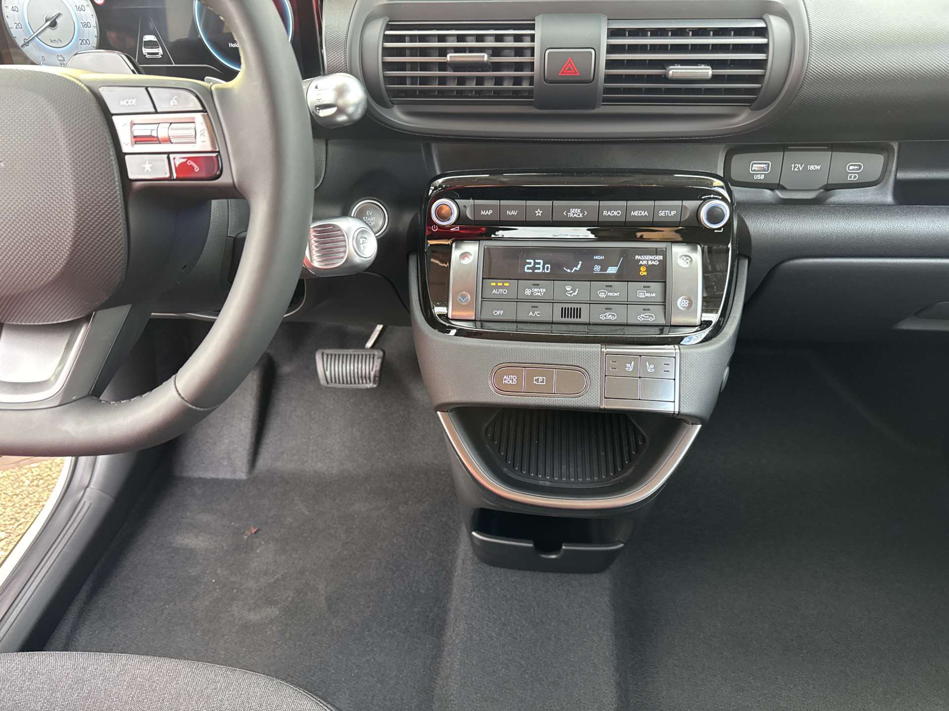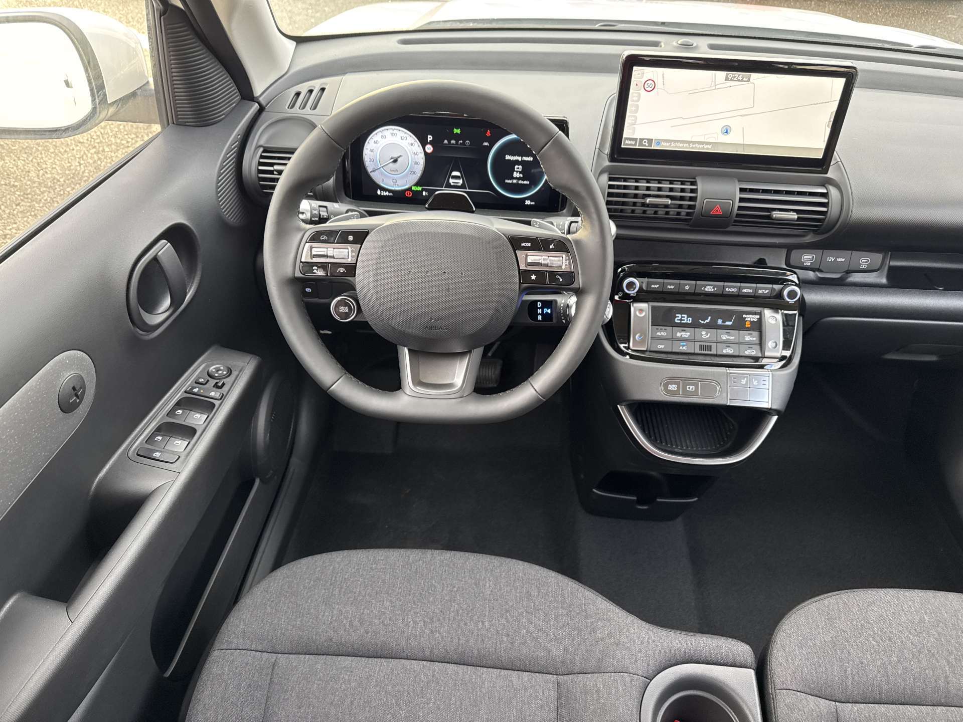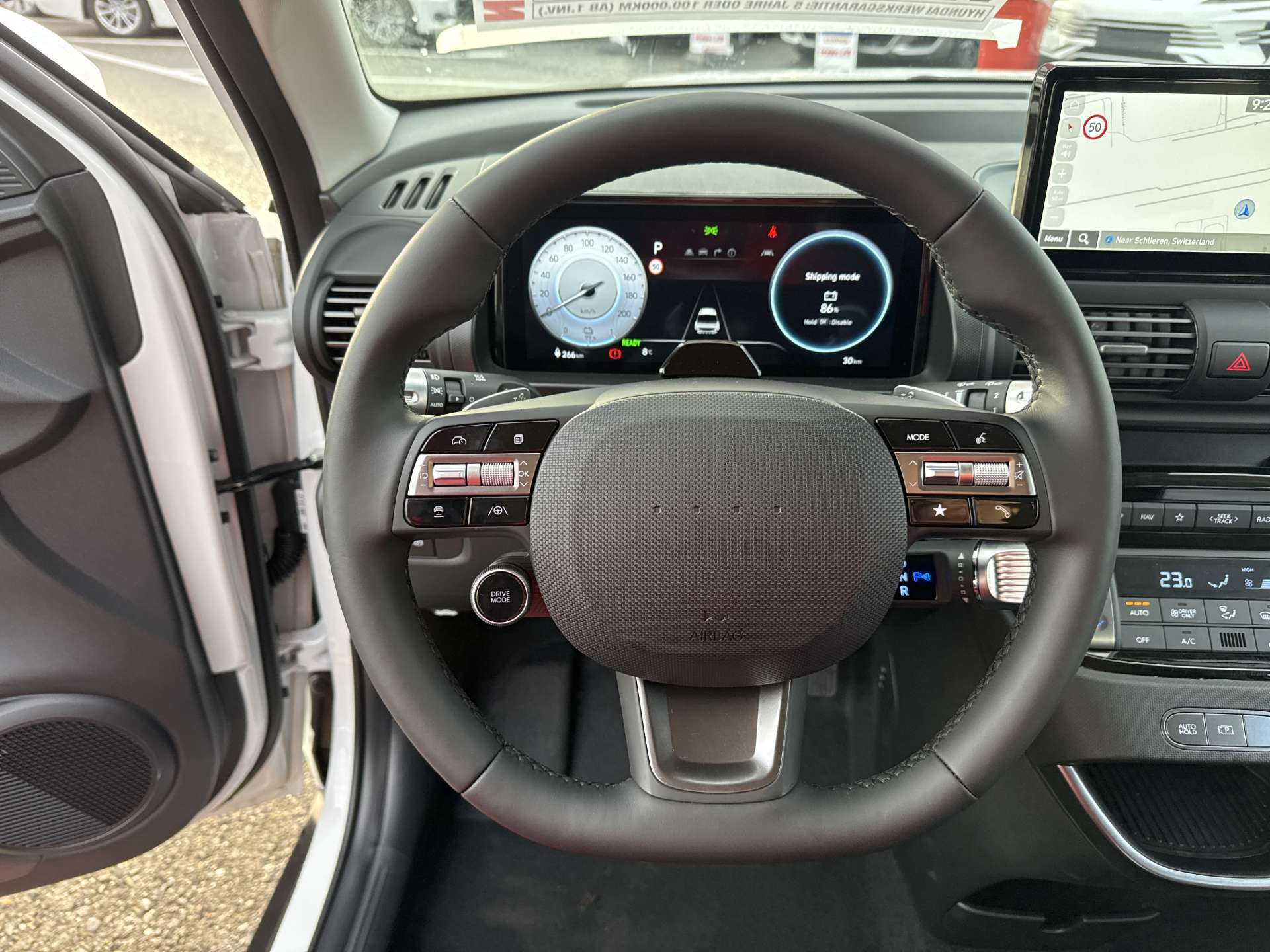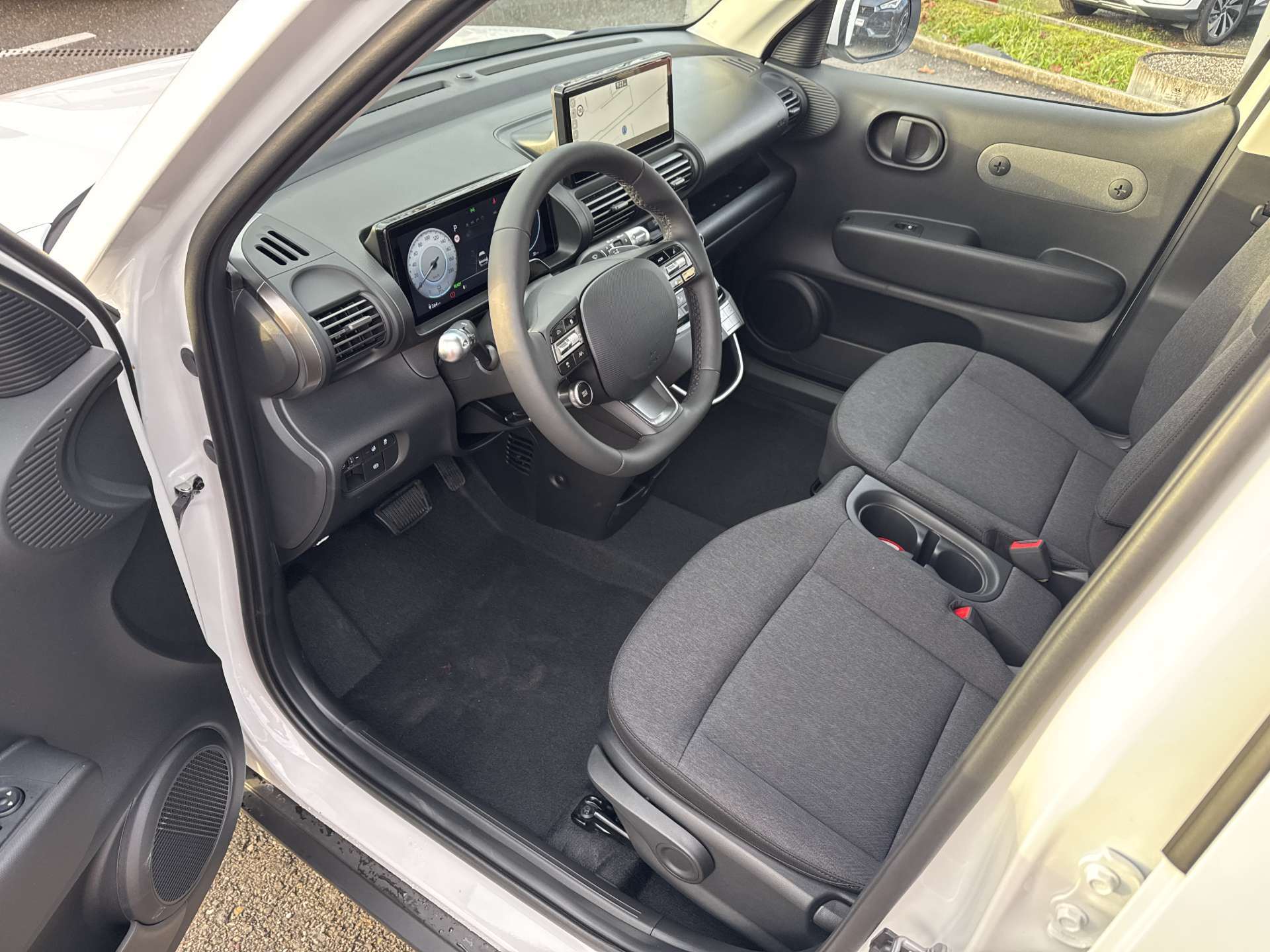 A-Säule in Wagenfarbe, Ablagefläche Fahrer- und Beifahrersitz (Rückseite), ABS mit elektronischer Bremskraftverteilung EBD, Airbag: Center Airbag vorne, Airbag: Deaktivierung Frontairbag Beifahrerseite, Airbag: Front- und Seitenairbags vorne, Vorhangairbags vorne und hinten, Assist: Anfahralarm Vorderfahrzeug, Assist: Aufmerksamkeitsassistent, Assist: Autobahn- und Stauassistent, Assist: Automatisches Notrufsystem eCall, Assist: Einparkhilfe hinten, Assist: Elektrische Parkbremse mit Auto-Hold-Funktion, Assist: Elektronische Traktionskontrolle, Assist: Notbremsassistent mit Abbiege-, Spurwechsel- und Ausweichfunktion, Assist: Notbremsassistent mit Fussgänger-/Fahrraderkennung und Abbiegefunktion, Assist: Rückfahrkamera, Assist: Spurhalteassistent, Assist: Tempomat mit Geschwindigkeitsbegrenzer, Drive Mode Select, Elektrisch einklappbare Aussenspiegel, Elektrisch verstell- und beheizbare Aussenspiegel, Elektronisches Stabilitätsprogramm ESP mit Multikollisionsbremse, Fensterheber vorne und hinten elektrisch, Garantie: 5 Jahre ohne Kilometerbegrenzung, Garantie: Garantie 12 Jahre gegen Durchrostung, Garantie: Hochvoltbatterie: 8 Jahre / 160 000 km, Gepäckraumbeleuchtung, Getriebe: Direktantrieb, kein Getriebe, Insassenalarm, ISOFIX-Kindersitzverankerung hinten, Klima: Klimaautomatik, Lackierung: Uni-Lackierung, Ladegerät (On-Board Charger) dreiphasig bis zu 11 kW, Ladekabel 5 Meter Mode 3 Typ 2, 3-Phasig, inkl. Hyundai-Tragtasche, Lenkrad: Audiofernbedienung am Lenkrad, Lenkrad: Lederlenkrad, Lenkrad: Lenkrad beheizbar, Lenkrad: Schaltwippen am Lenkrad mit i-Pedal Funktion, Licht: Fernlichtassistent, Licht: Halogen-Projektionsscheinwerfer, Licht: Halogen-Rückleuchten, Licht: LED Blinker, Licht: LED-Tagfahrlicht, Licht: Lichtautomatik, Make-up Spiegel Fahrer, Manuelle Heckklappe, Media: 4 Lautsprecher, Media: Android Auto - und Apple CarPlay -Funktion, Media: Digitale Armaturentafel mit 10.25'' TFT LCD Anzeige, Media: Digitalradio DAB+, Media: MapCare Lifetime / Over-the-Air Update, Media: Multi-Bluetooth mit Freisprecheinrichtung mit Spracherkennung, Media: Navigationssystem mit 10.25" Touchscreen, Media: Telematikdienst Bluelink Lite (10 Jahre gratis), Media: USB- Anschlüsse vorne, Polster: Stoffsitze, Räder: Reifendruckkontrollsystem, Räder: Reifenreparatur-Set, Räder: Stahlfelgen 15" mit Radzierblenden, Radlaufverkleidung in Schwarz, Servolenkung, Shift by wire, Sitze: Flach umklappbarer Fahrer- und Beifahrersitz, Sitze: Manuell höhenverstellbarer Fahrersitz, Sitze: Rücksitze getrennt abklappbar (50/50), Sitze: Sitzheizung vorne, Smart Key mit Engine Start/Stop-Taste und Bewegungssensor, Türgriffe und Aussenspiegel in Wagenfarbe, Unterfahrschutz silber, Vorbereitung für Anhängevorrichtung, Wärmedämmende Scheiben vorne, Zentralverriegelung