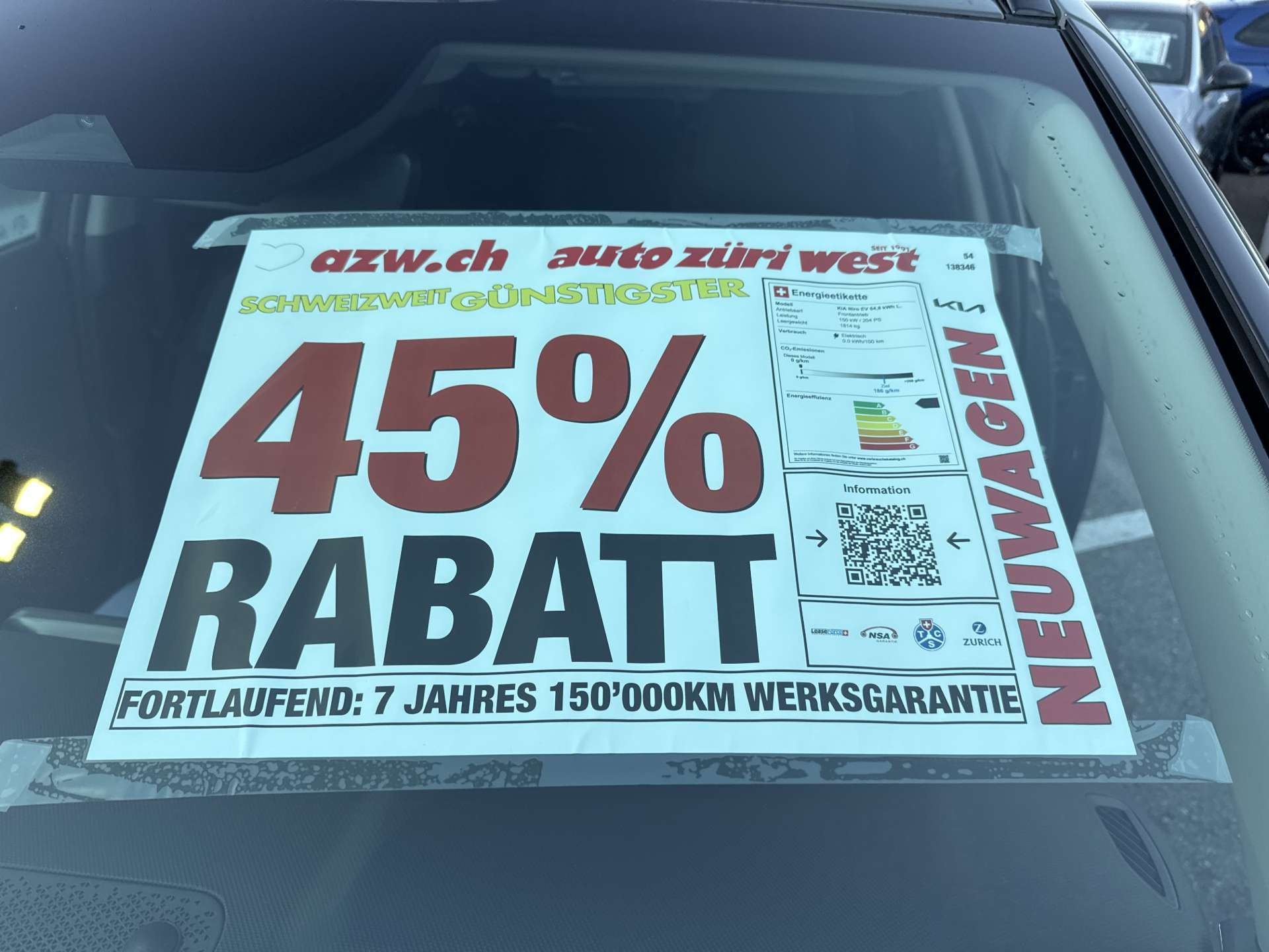 Airbag: Airbag Fahrer und Beifahrer, Beifahrerairbag abschaltbar, Airbag: Center Airbag (zwischen Fahrer und Beifahrer), Airbag: Knie-Airbag, Airbag: Kopfairbags (Vorhang) vorn und hinten, Airbag: Seitenairbags vorn, Ambientebeleuchtung, Antiblockiersystem (ABS), Assist: Ausstiegsassistent, Assist: Autobahnassistent, Assist: Autonomer Notbremsassistent mit Abbiegeerkennung (Drive Wise FCA 1.5), Assist: Berganfahrassistent (HAC), Assist: e-Call automatisches Notrufsystem, Assist: Elektronische Traktionskontrolle (TCS), Assist: Fernlichtassistent, Assist: Inteligenter Geschwindigkeitsassistent (ISLA), Assist: Intelligentes regeneratives Bremssystem (SRBS 2.0), Assist: Lichtsensor, Assist: Müdigkeitserkennung, Assist: Parksensoren hinten, Assist: Parksensoren vorn, Assist: Rückfahrkamera, Assist: Spurfolgeassistent (LFA), Assist: Spurhalteassistent, Assist: Tempomat mit Distanzassistent, Aussenspiegel elektrisch einklappbar, Aussenspiegel elektrisch verstell- und beheizbar, Aussenspiegel in Wagenfarbe, Batterieheizsystem, Dachreling, Design-Elemente (Stossstange, Radläufe und Seitendekor) in Hochglanzschwarz, Drive Mode Select, Elektrische Handbremse, Elektronisches Stabilitäts-Programm (ESP), Fensterheber elektrisch vorn und hinten, Frontscheibe mit integrierter Akustikfolie, Gangwahl-Drehschalter, Gepäckraumbeleuchtung, Getränkehalter in der Mittelkonsole, Getriebe: Direktantrieb, kein Getriebe, Heckscheiben-Wisch-/Waschanlage, Heckscheibenheizung, Innenrückspiegel automatisch abblendbar, Insassenalarm, Kindersicherung elektrisch, Klima: Klimaautomatik 2-Zonen, Klima: Wärmepumpe und Vehicle-to-Load-Funktion (V2L), Kofferraumabdeckung, Kühlergrill mit Chromverzierung, Lackierung: Uni Lackierung, Ladeboden variabel, Lenkrad: Lederlenkrad, Lenkrad: Lenkrad beheizbar, Lenkrad: Lenkrad höhen- und tiefenverstellbar, Lenkrad: Multifunktionslenkrad, Lenkrad: Schaltwippen hinter dem Lenkrad, Licht: Drittes Bremslicht, Licht: Dual LED-Scheinwerfer, Licht: LED-Nebelscheinwerfer, Licht: LED-Rückleuchten, Licht: LED-Tagfahrlicht, Licht: Nebelschlussleuchte, Media: 10.25"-Navigationssystem, DAB+, Media: 6 Lautsprecher, Media: Android Auto und Apple CarPlay, Media: Bluetooth Freisprecheinrichtung, Media: Online-Dienste Kia Connect inkl. 7 Jahre, Media: USB-Anschluss, Media: USB-Anschlüsse Rücksitzlehnen, Mittelarmlehne vorne mit Staufach, On-Board-Charger (3 Phasen), Privacy-Verglasung, Räder: 4 Leichtmetallfelgen 7 J × 17", Räder: Reifendruckkontrollsystem (TPMS), Räder: Tire mobility kit, Regensensor, Servolenkung, Sitze: Beifahrersitz höhenverstellbar, Sitze: Fahrersitz höhenverstellbar, Sitze: ISOFIX-Kindersitzverankerung hinten, Sitze: Kopfstützen höhenverstellbar vorne und hinten, Sitze: Lendenwirbelstütze für den Fahrersitz, Sitze: Sitzheizung vorne, Sitze: Sitzlehne der 2. Sitzreihe umklappbar, asymmetrisch 60:40, Sitze: Tasche an der Rücksitzlehne Beifahrersitz, Sitze: Tasche an der Rücksitzlehne Fahrersitz, Sonnenblende Fahrer und Beifahrerseite, Start-/Stop-Knopf mit Smart Key, Stauraum unter dem Ladeboden, Stossfänger mit Chromverzierung, Supervision Cluster digital 10.25", Wegfahrsperre elektronisch, Zentralverriegelung mit Fernbedienung