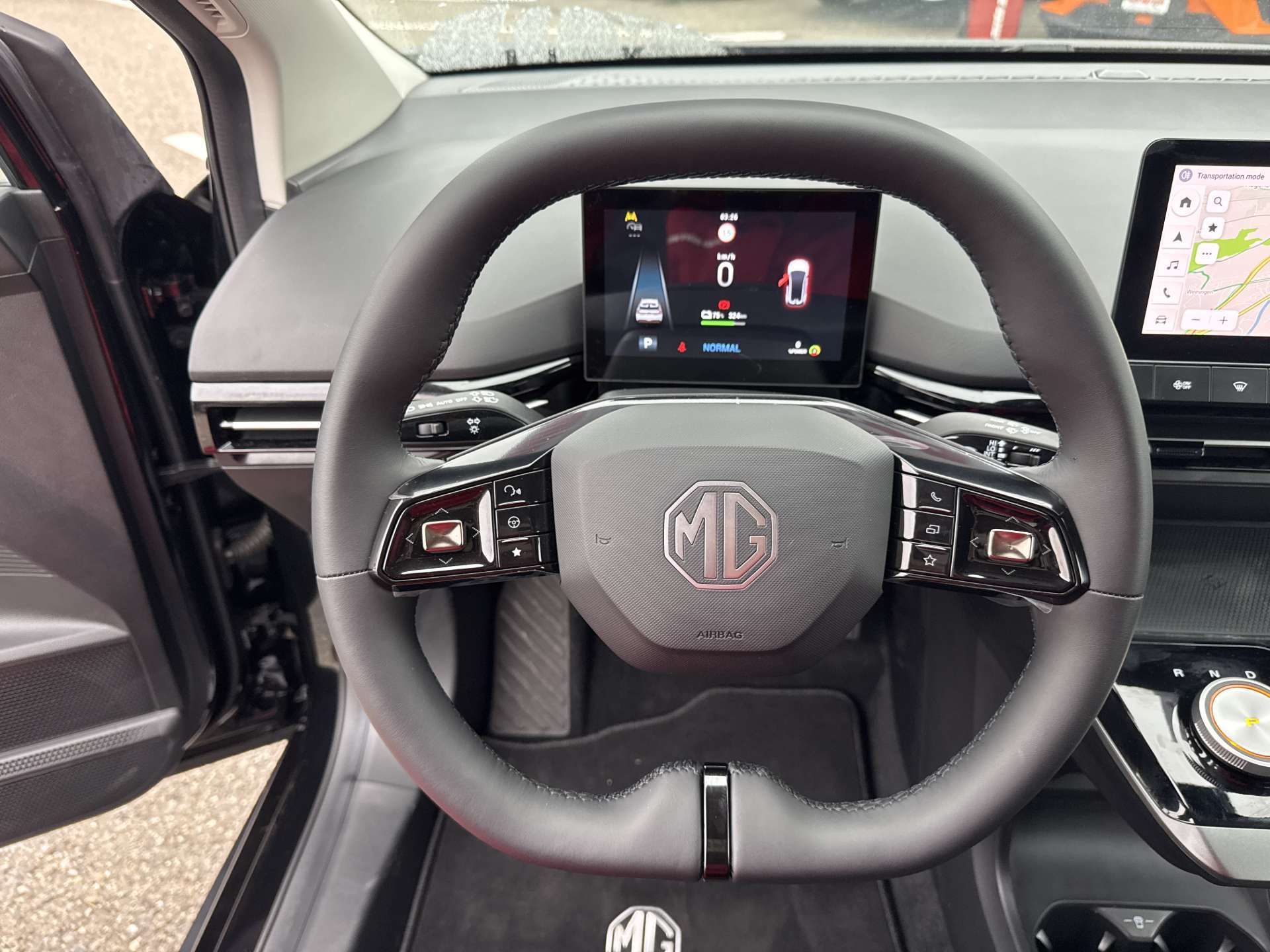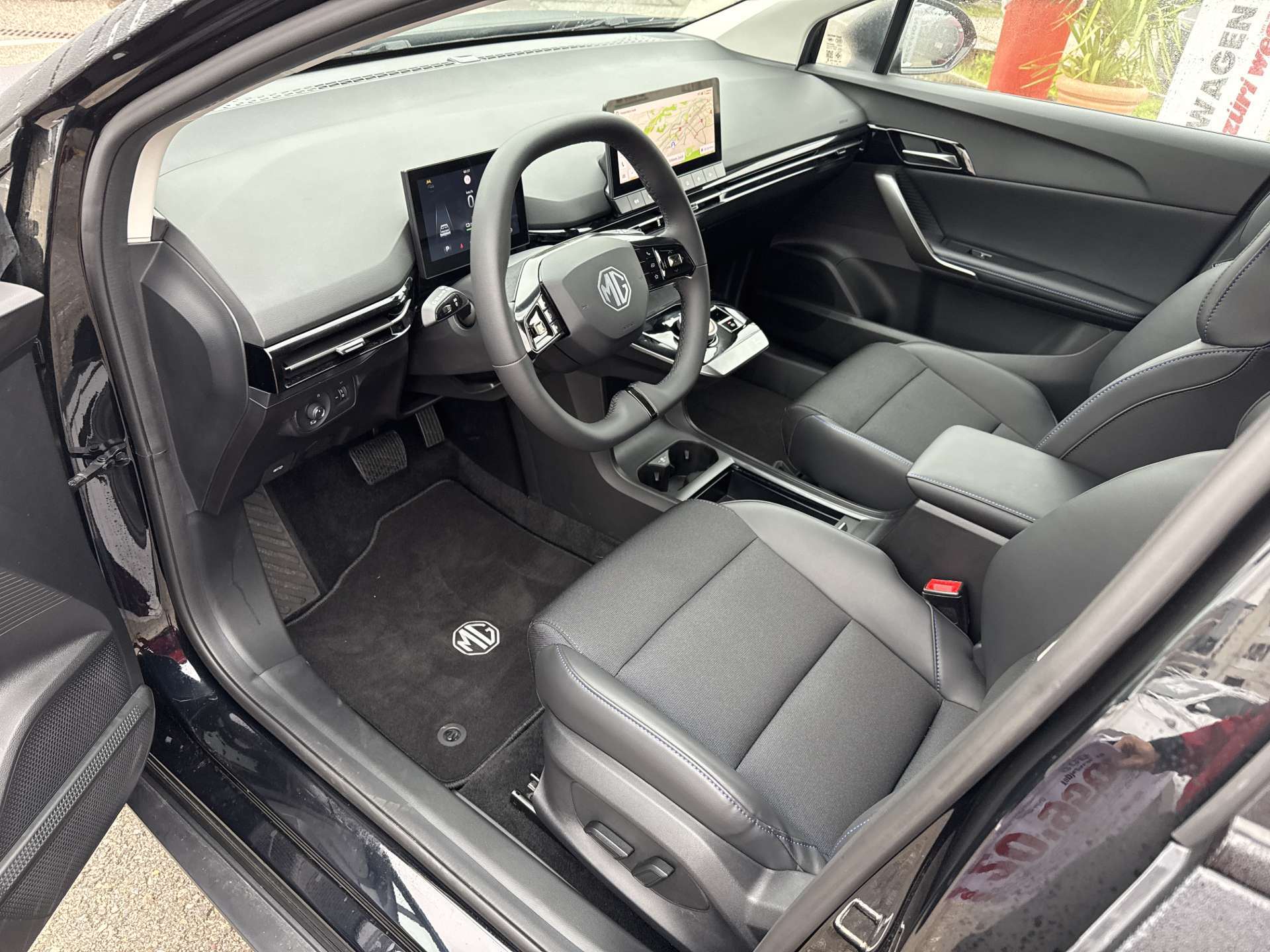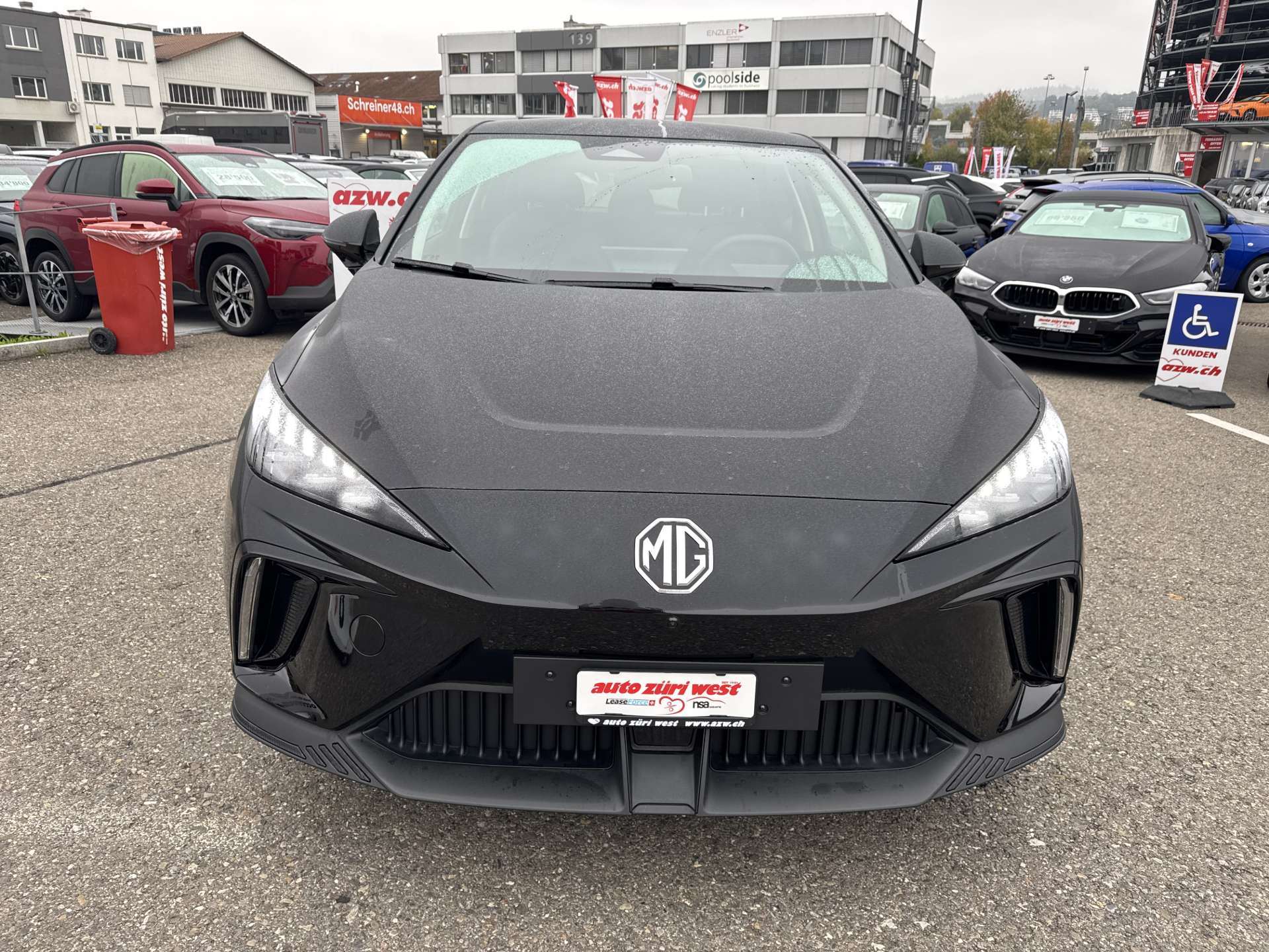 "Twin-Aero" Spoiler, 3-Punkt-Sicherheitsgurte auf allen Plätzen, Airbag: Airbag Fahrer und Beifahrer, Airbag: Kopfairbags vorne, Airbag: Seitenairbags, Aktive Luftklappen, Antiblockiersystem (ABS), Assist: 360-Kamera, Assist: MG Pilot: ACC/TJA/FCW/AEB/IHC/SAS/LDW/LKA/UDW, Assist: MG Pilot: +BSD/LCA/CTA/DOW, Auto Start/Stop & Keyless Entry, Beheizbare Aussenspiegel, Dunkel getönte Scheiben hinten, Elektrisch anklappbare Aussenspiegel, Elektrische Fensterheber vorne + hinten, ESP und TCS, Fahrwerk: "One Pedal"-Fahrmodus, Garantie: 7 Jahre oder 150'000 km, Getriebe: Direktantrieb, kein Getriebe, Heckscheiben-Wisch-/Waschanlage, Klima: Automatische Klimaanlage, Lackierung: Uni-Lackierung, Lenkrad: Beheizbares Lenkrad, Lenkrad: Lederlenkrad, Licht: Drittes Bremslicht, Licht: LED-Beleuchtung (Tagfahrlicht/Vorder-/Rücklicht), Licht: Nebelschlussleuchte, Media: 6 Lautsprecher, Media: Android Auto/Apple CarPlay, Media: Digital Cluster 7'', Media: EV-Routenplaner, Media: iSMART, Media: Kabelloses Ladegerät, Media: Touch Screen 10.25'', Polster: Stoff-Ausstattung, Polster: Teilleder Polsterung, Räder: 17-Zoll-Leichtmetallfelgen, Räder: 18-Zoll-Leichtmetallfelgen, Reserverad, Servolenkung geschwindigkeitsabhängig, Sitze: 6-fach verstellbarer Fahrersitz, Sitze: Beheizbare Vordersitze, Sitze: Elektrisch verstellbarer Fahrersitz, Sitze: Rücksitzbank umklappbar 60/40, Sonnenblende mit Make-up-Spiegel, Sonnenbrillenhalter, Vehicle to Load, Wärmepumpe, Wegfahrsperre elektronisch, Zentralverriegelung mit Fernbedienung