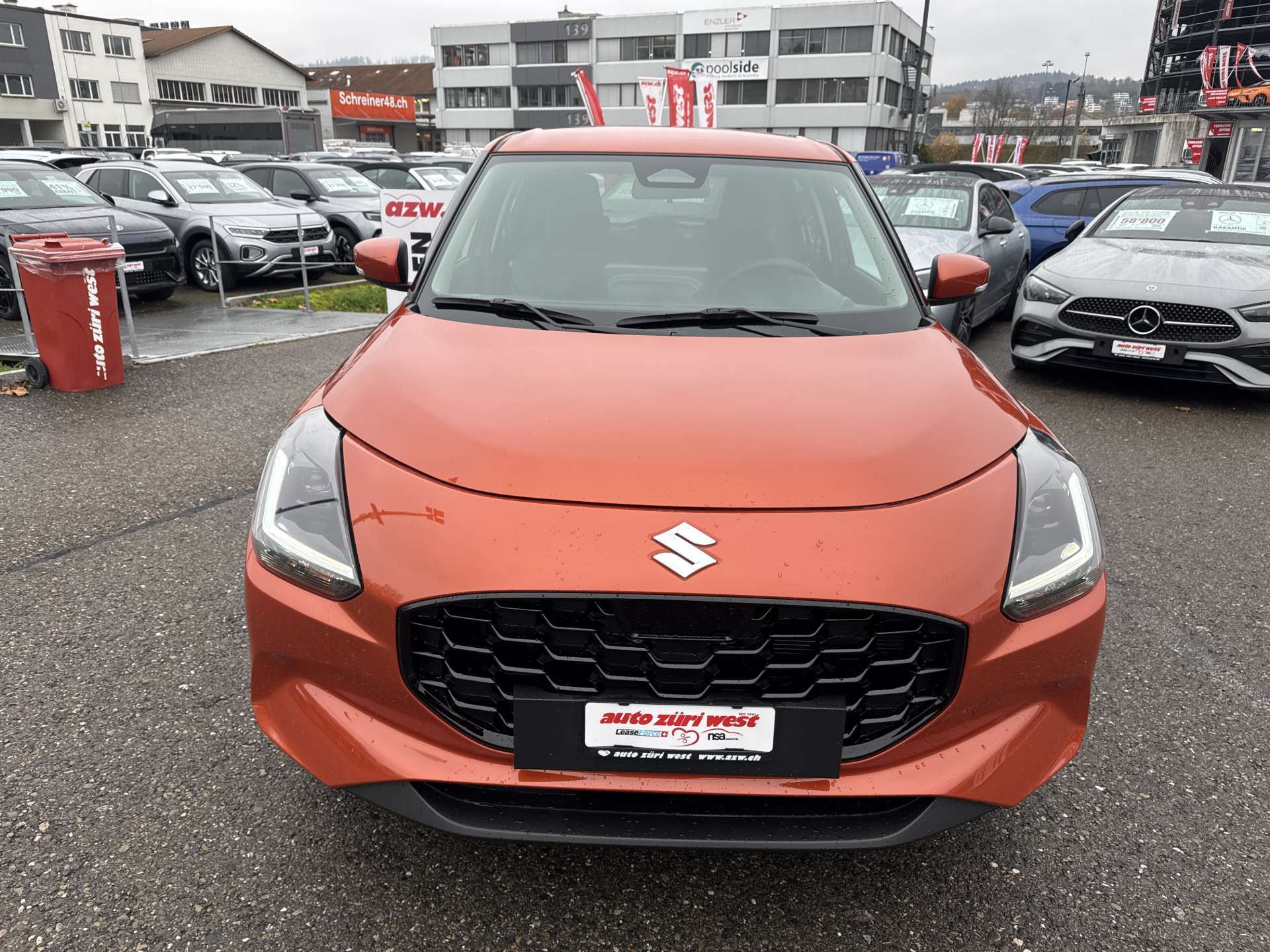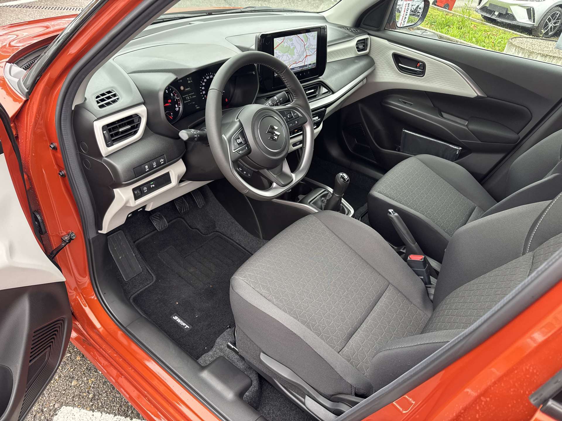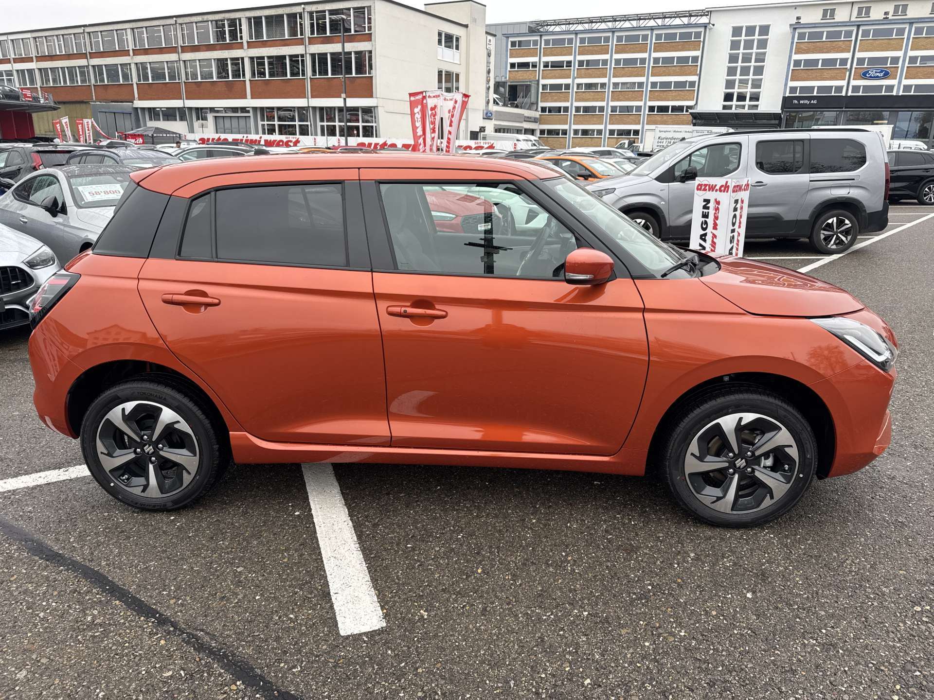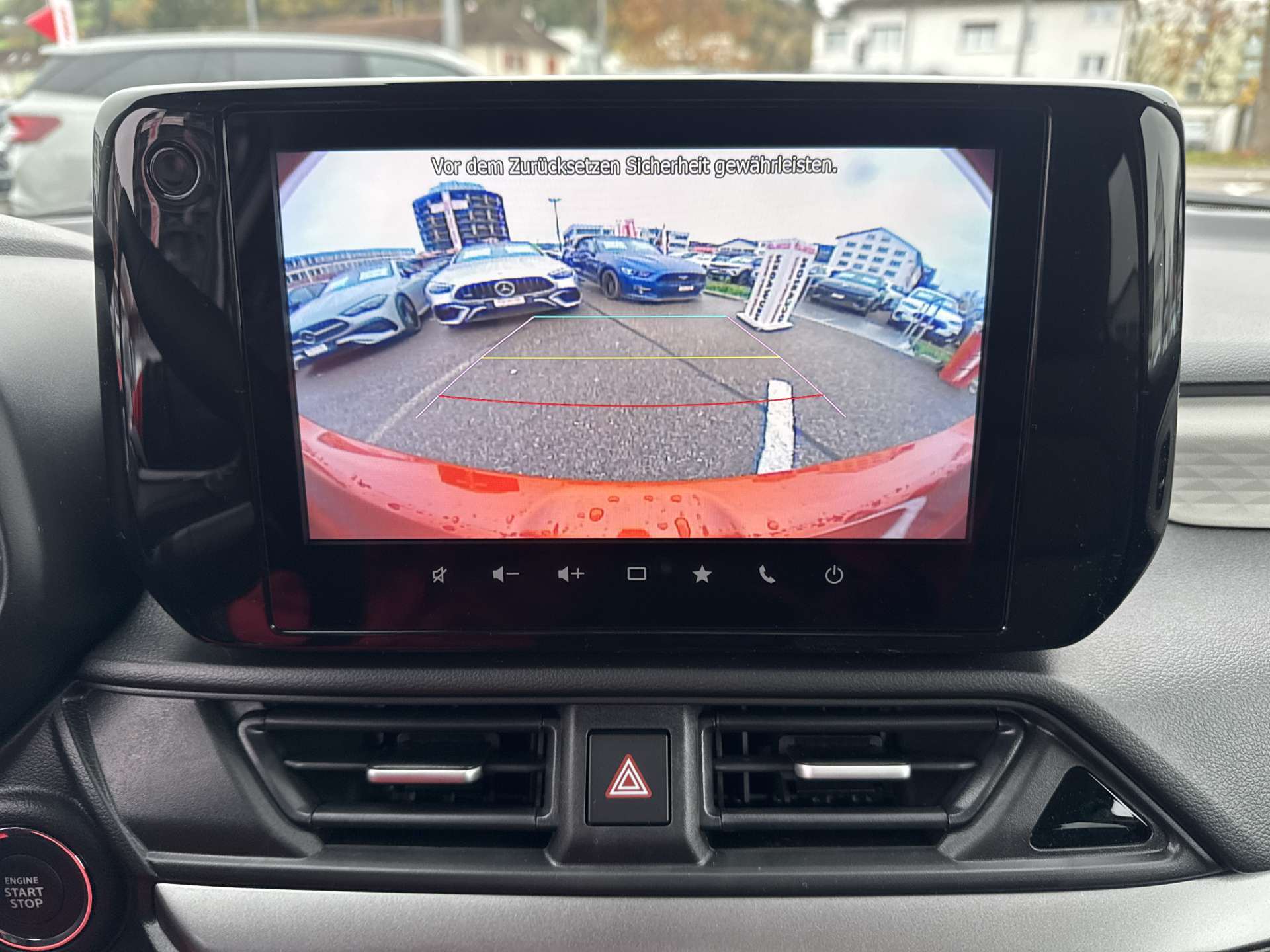 12 Volt-Steckdose, ABS mit elektronischer Bremskraftverteilung und Bremsassistent, Airbag: Airbag für Fahrer und Beifahrer (Beifahrerseite deaktivierbar), Airbag: Seitenairbags vorne, Airbag: Vorhangairbags, Assist: Adaptiver Tempomat, Assist: Berganfahrhilfe, Assist: eCall, Assist: Fahrerüberwachungssystem (DMS), Assist: Intelligenter Geschwindigkeitsassistent (ISA), Assist: Notbremssystem mit Kollisionswarner, Assist: Parksensoren hinten (akustisch), Assist: Querverkehrswarner hinten, Assist: Rückfahrkamera, Assist: Spurhalteassistent, Assist: Spurleitassistent, Assist: Spurwechselassistent, Assist: Verkehrszeichenerkennung, Assist: Warnsystem für Müdigkeit und Aufmerksamkeit, Aussenspiegel mit integriertem Blinker, Aussenspiegel und Türgriffe in Wagenfarbe, Bodenteppiche, Dreipunkt-Sicherheitsgurte auf allen Plätzen, Elektrisch einklappbare Aussenspiegel, Elektrisch verstell- und heizbare Aussenspiegel, Elektrische Fensterheber vorne + hinten, ESP mit Traktionskontrolle, Garantie: 3 Jahre oder 100'000 km, Getriebe: 5-Gang-Getriebe, Gurtstraffer und Gurtkraftbegrenzer auf allen Plätzen, Heckspoiler, ISOFIX-Kindersitzverankerung, Keyless Start (schlüsselloses Einsteigen und Starten), Klima: Klimaautomatik mit Pollenfilter, Lackierung: Metallic-Lackierung Flame Orange Pearl Metallic, LCD Multifunktionsfarbdisplay, Lenkrad: Bedientasten am Lenkrad für Audio und Telefon, Lenkrad: Lederlenkrad, Lenkrad: Lenkrad längs- und höhenverstellbar, Licht: Fernlicht-Assistent, Licht: Guide-me-home Funktion, Licht: LED Abblendlicht und Fernlicht, Licht: LED-Tagfahrlicht, Licht: Lichtautomatik, Licht: Nebelschlussleuchte, Media: 6 Lautsprecher, Media: 9 Zoll Touchscreen-Multimediasystem mit Smartphone-Anbindung, Bluetooth und DAB+, Media: USB-Anschluss (1x USB-A + 1x USB-C), Media: USB-Anschluss für externe Audioquellen, Polster: Stoff-Ausstattung, Privacy Glass, Räder: Leichtmetallfelgen 16J, Räder: Reifendruck-Kontrollanzeige, Servolenkung, Sitze: Fahrersitz höhenverstellbar, Sitze: Rücksitzlehne separat umklappbar (60/40), Sitze: Sitzheizung vorne, Sonnenblenden vorne mit Schminkspiegel (Beifahrerseite), Sonnenblenden vorne mit Schminkspiegel (Fahrerseite), Start-/Stopp-Automatik, Suzuki Connect App (3 Jahre kostenlos), Wegfahrsperre elektronisch, Zentralverriegelung mit Fernbedienung