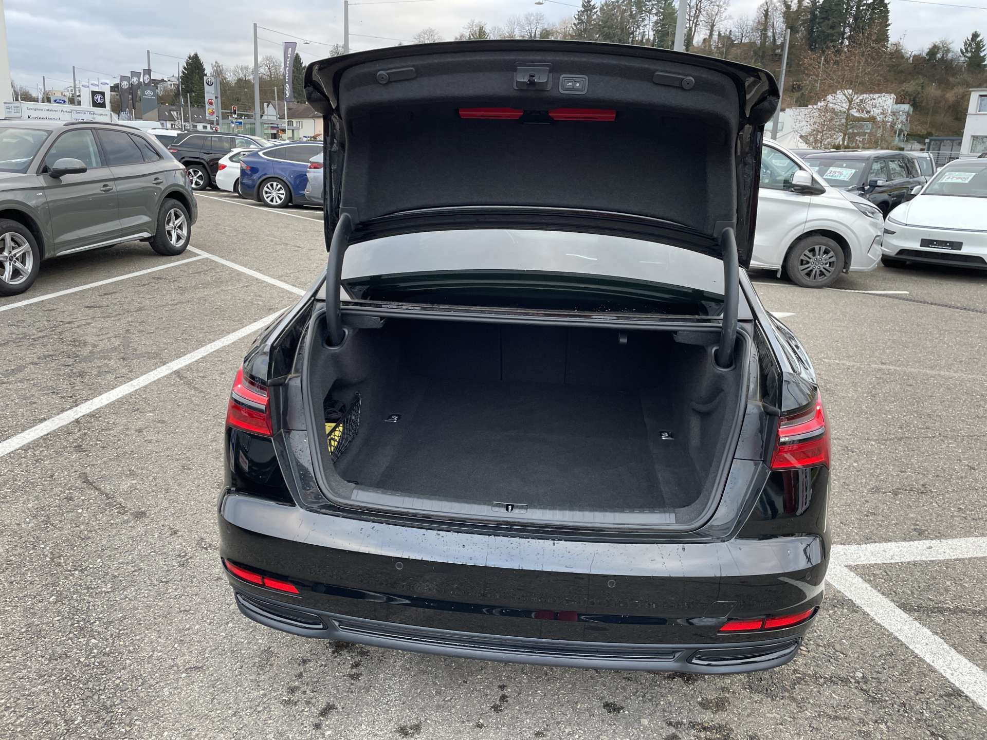 Polster: Leder Milano, Paket: Assistenzpaket Tour, Räder: Leichtmetallräder im 10-Speichen-Dynamik-Design, Lackierung: Metallic-Lackierung, Media: MMI Navigation plus mit MMI touch response inkl. Audi virtual cockpit plus, Sitze: Vordersitze elektrisch einstellbar mit Memory-Funktion für Aussenspiegel und Fahrersitz, Komfortschlüssel inklusive sensorgesteuerter Gepäckraumentriegelung, Klima: 4-Zonen-Komfortklimaautomatik, Paket: Optikpaket schwarz, Assist: Spurwechselwarnung inkl. Audi pre sense rear, Ausstiegswarnung, Gepäckraumklappe elektrisch öffnend und schliessend, Assist: Rückfahrkamera, Privacy-Verglasung (Scheiben abgedunkelt), Adaptive Scheibenwischer mit integrierten Waschdüsen, Dekor: Bedientasten Glasoptik schwarz mit haptischem Feedback inkl. erweiterter Aluminiumoptik, Dachhimmel in Stoff schwarz, Media: Audi Smartphone Interface, Paket: Kontur / Ambiente Lichtpaket, Assist: Kamerabasierte Verkehrszeichenerkennung, Vorbereitung für Anhängevorrichtung, Licht: Fernlicht-Assistent, Aussenspiegel elektrisch einstell-, beheiz- und anklappbar, beidseitig automatisch abblendend,, Assist: Einparkhilfe plus mit Umgebungsanzeige, Verbandmaterial,Warndreieck und Warnveste, Media: Audi connect Navigation & Infotainment plus