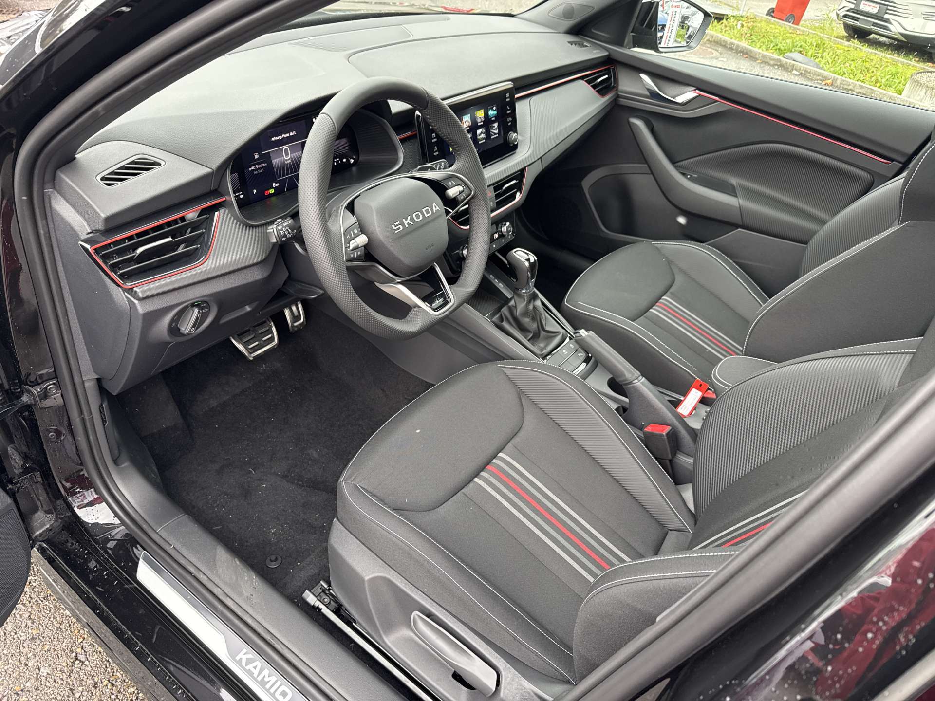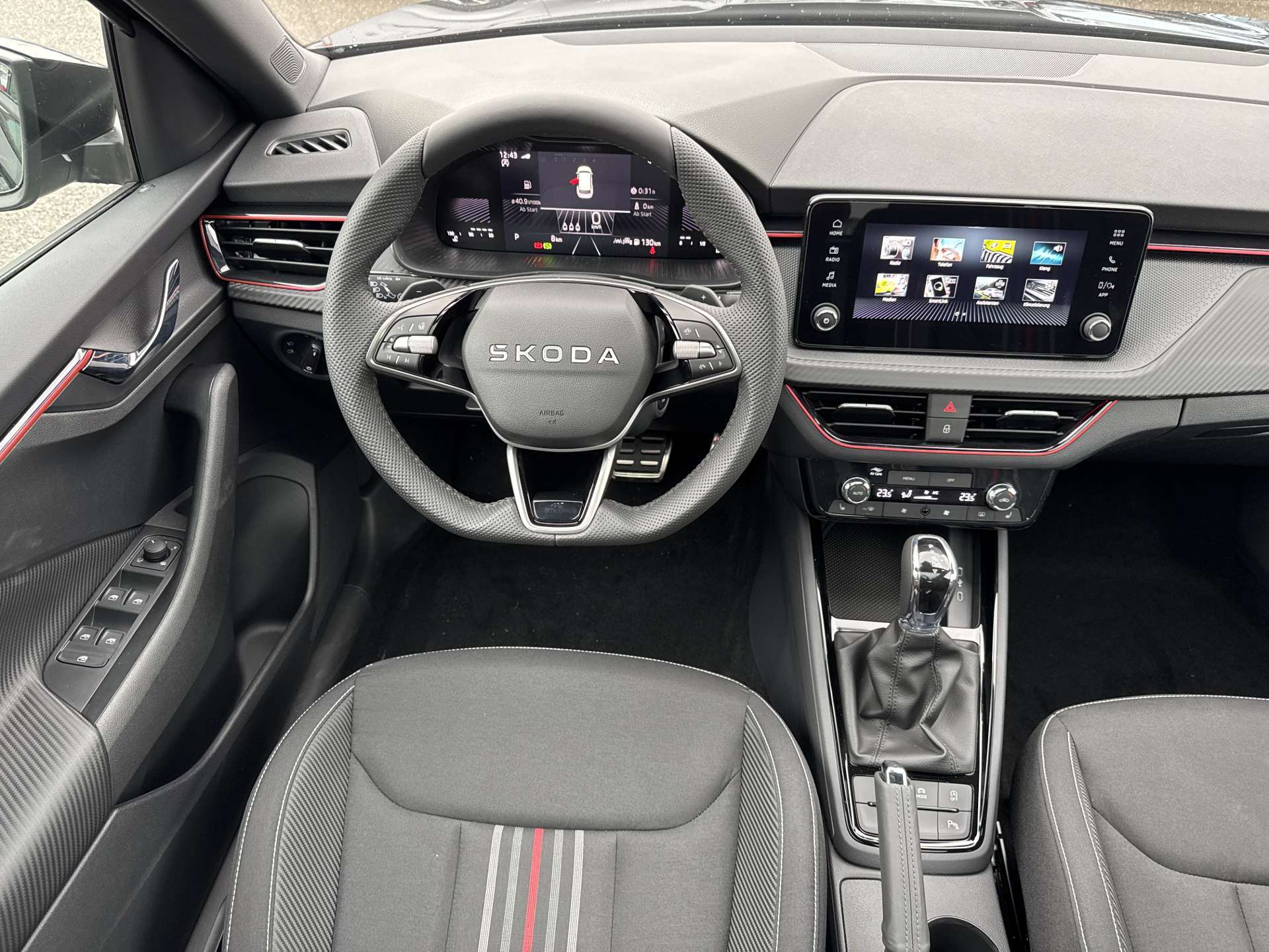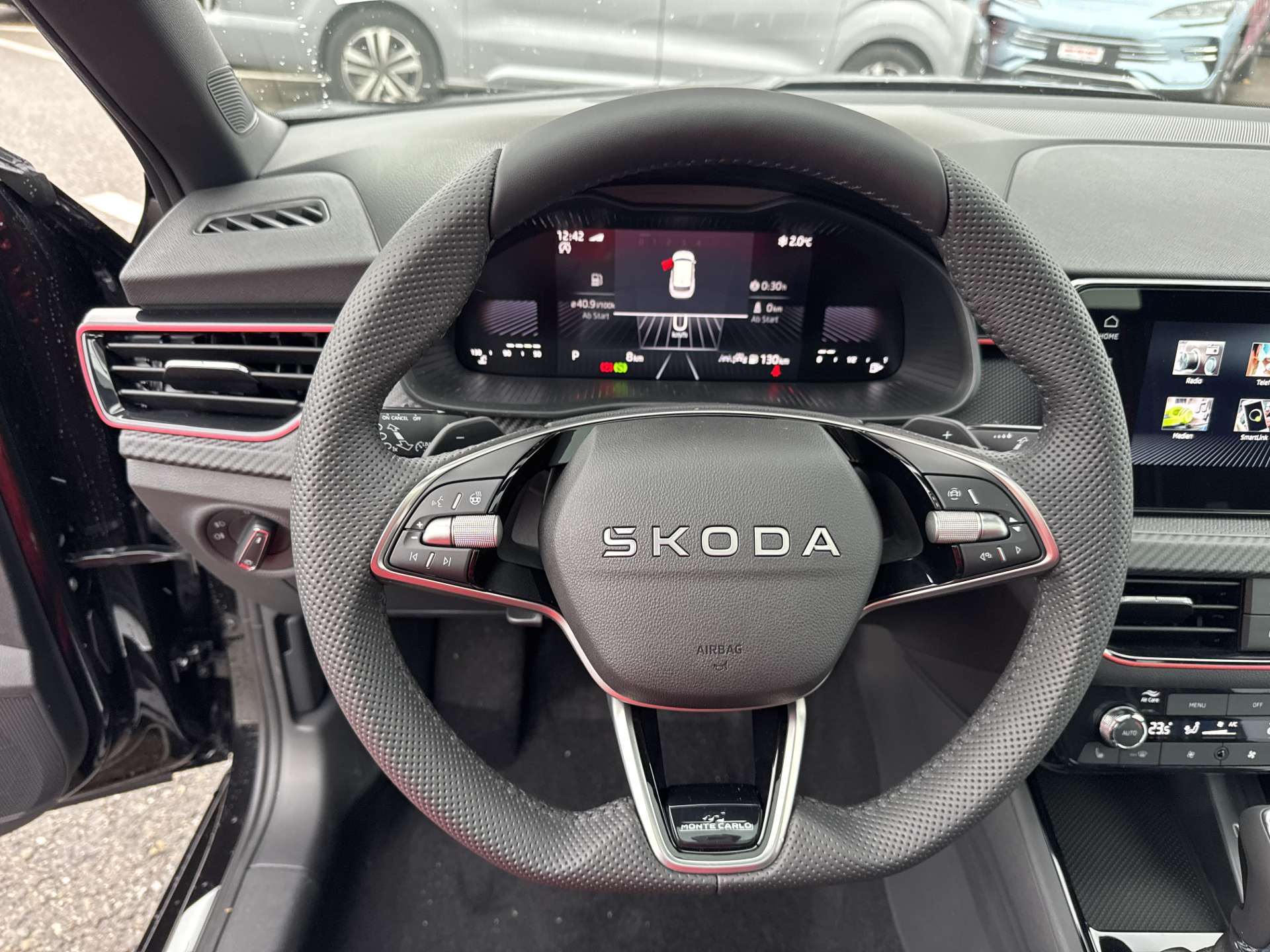 3-Punkt-Sicherheitsgurte auf allen Plätzen, ABS mit ASR und EDS, Airbag: Airbag Beifahrer deaktivierbar, Airbag: Airbag Fahrer und Beifahrer, Airbag: Kopf- und Seitenairbags vorne, Ambiente Beleuchtung 2-farbig, Assist: Ablenkungs- und Müdigkeitserkennung, Assist: Berganfahrassistent, Assist: Front Assistant inkl. City-Notbremsfunktion, Assist: Geschwindigkeitsregelanlage (Tempomat), Assist: Parksensoren hinten, Assist: Regensensor mit Lichtassistent (Coming Home, Leaving Home, Tunnel Light), Assist: Spurhalteassistent "Lane Assist", Assist: Verkehrszeichenerkennung, Aussenspiegel elektrisch einstell-, beheiz- und anklappbar, automatische Abblendung Fahrerseite, Aussenspiegel in schwarz lackiert, Aussenspiegel rechts und links beheizbar und elektrisch verstellbar, Chromrahmen am Kühlergrill, Dachhimmel schwarz, Dachreling schwarz-lackiert, Design Monte Carlo, Drehzahlmesser, Drittes Bremslicht LED, EASY START, Elektrische Fensterheber vorne + hinten, Elektronisches Stabilitäts-Programm (ESP), Emergency Call (Notruf), ESC (Elektronische Stabilisierungskontrolle) mit Multikollisionsbremse, ABS und ASR, Fahrprofilauswahl "Driving Mode Selection", Getriebe: 7-Gang DSG, Gurtanlegesignalisation für alle Passagiere, Heckscheiben-Wisch-/Waschanlage, Heckscheibenheizung, Innenspiegel automatisch abblendbar, Klappbare Gepäckhaken im Kofferraum, Klima: Klimaanlage "Climatronic", 2-Zonen-Temperaturregelung, vollautomatisch, getrennt regelbar, Kühlergrill schwarz lackiert, Lackierung: Uni-Lackierung, Lenkrad: 3-Speichen-Sport-Leder-Multifunktionslenkrad mit Schaltwippen (DSG), Lenkrad: 3-Speichen-Sport-Leder-Multifunktionslenkrad mit Schaltwippen (DSG), beheizbar und HOD, Licht: Easy Light Assist (automatische Lichtschaltung, Coming Home, Leaving Home), Licht: LED Rückleuchten mit dynamischer Blinkleuchte, Licht: LED-Tagfahrlicht, Licht: Nebelscheinwerfer mit Cornering-Funktion, Licht: Voll-LED-Matrix-Scheinwerfer und AFS (Adaptive Frontlight System), Media: 2 USB-C Anschlüsse im Fond, Media: 2 USB-C Anschlüsse vorne, Media: 4 zusätzliche Lausprecher hinten, Media: DAB - Digitaler Radioempfang, Media: Infotainment Online 3 Jahre + "Care Connect" (Remote Access 3 Jahre), Media: Skoda Infotainment 8.25", Media: SmartLink (CarPlay und Android Auto), Media: Telefonvorbereitung mit Bluetooth, Mittelarmlehne hinten mit Doppel Getränkehalter und ohne Durchladefunktion, Mittelarmlehne vorne inkl. grosser Jumbo-Box, Paket: Black Paket, Paket: Light and View Plus Paket, Paket: Open Sky Paket, Paket: Winter Paket, Panoramadach, Polster: Sportsitzbezüge Stoff schwarz, teilweise Carbon-Optik und roten und grauen Streifen, Räder: Leichtmetallräder 17" "Kajam Aero" schwarz mit schwarzer Aero-Blende, Räder: Pannenset (Kompressor und Flasche mit Dichtmittel, ohne Reserverad), Räder: Pannenset (Kompressor und Flasche mit Dichtmittel, ohne Reserverad), Räder: Reifendruckkontrollsystem, Seitliche Luftführungen im Stossfänger vorne schwarz lackiert, Servolenkung, Sitze: 3 Kopfstützen hinten, Sitze: ISOFIX-Vorbereitung und Top-Tether, Sitze: Rücksitzlehne geteilt umklappbar (60:40), Sitze: Vordersitze heizbar, Sitze: Vordersitze höhenverstellbar, SunSet (Heckscheibe und hintere Seitenscheiben dunkel getönt), SunSet (Heckscheibe und hintere Seitenscheiben dunkel getönt), Textilfussmatten vorne und hinten, Türgriffe aussen in Wagenfarbe, Virtuelles Cockpit Basic, Waschwasser-Standanzeige, Wegfahrsperre elektronisch