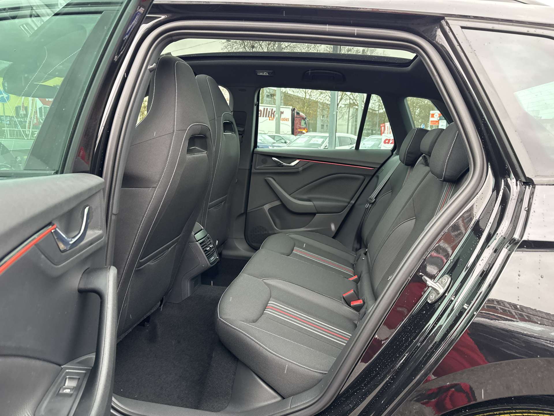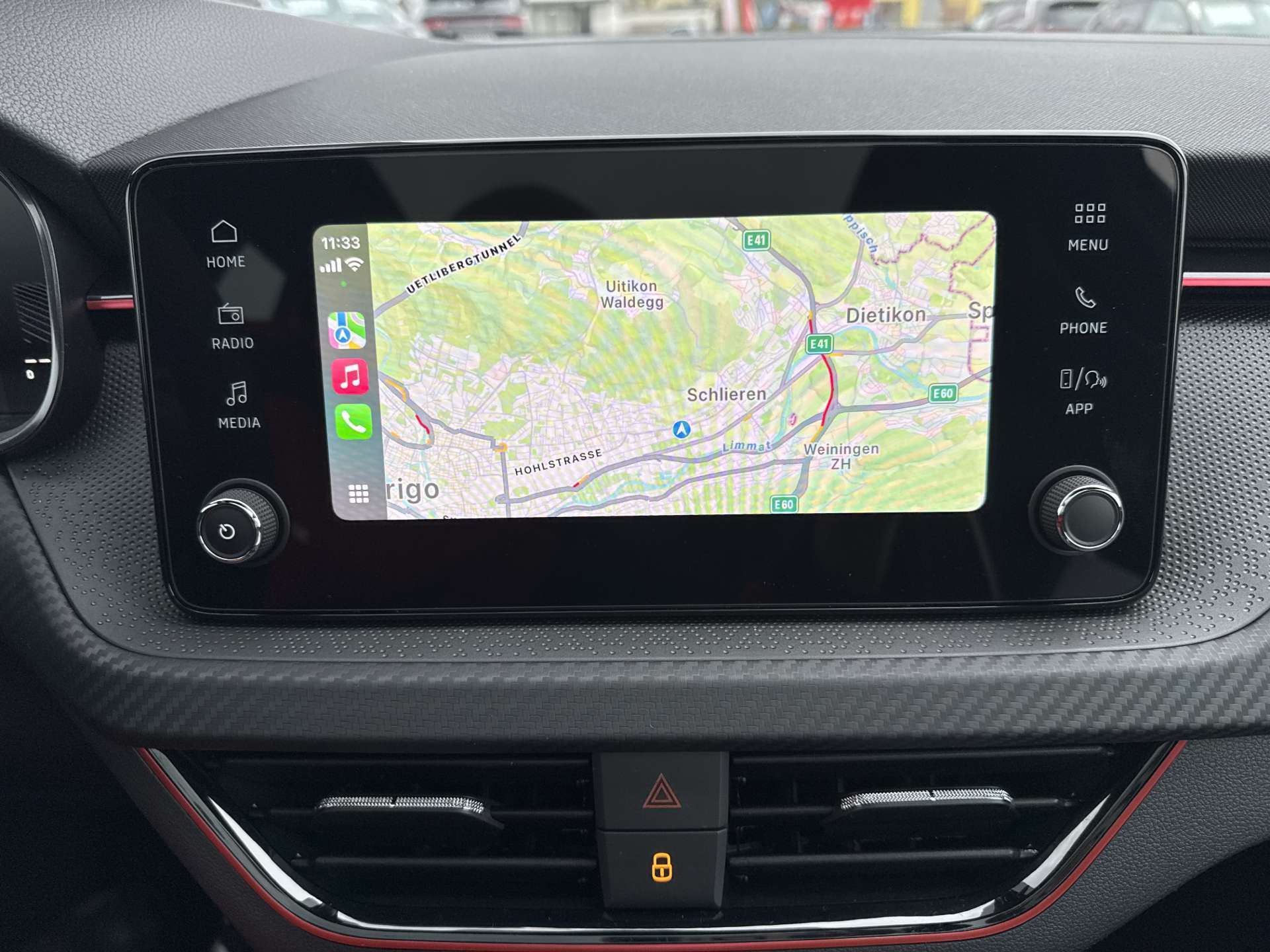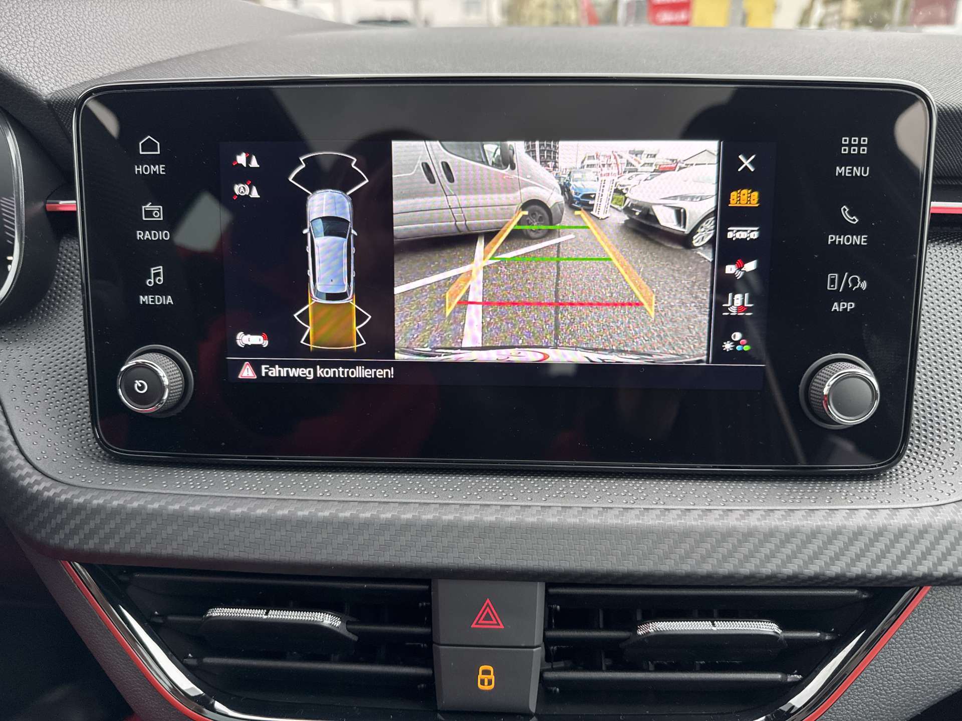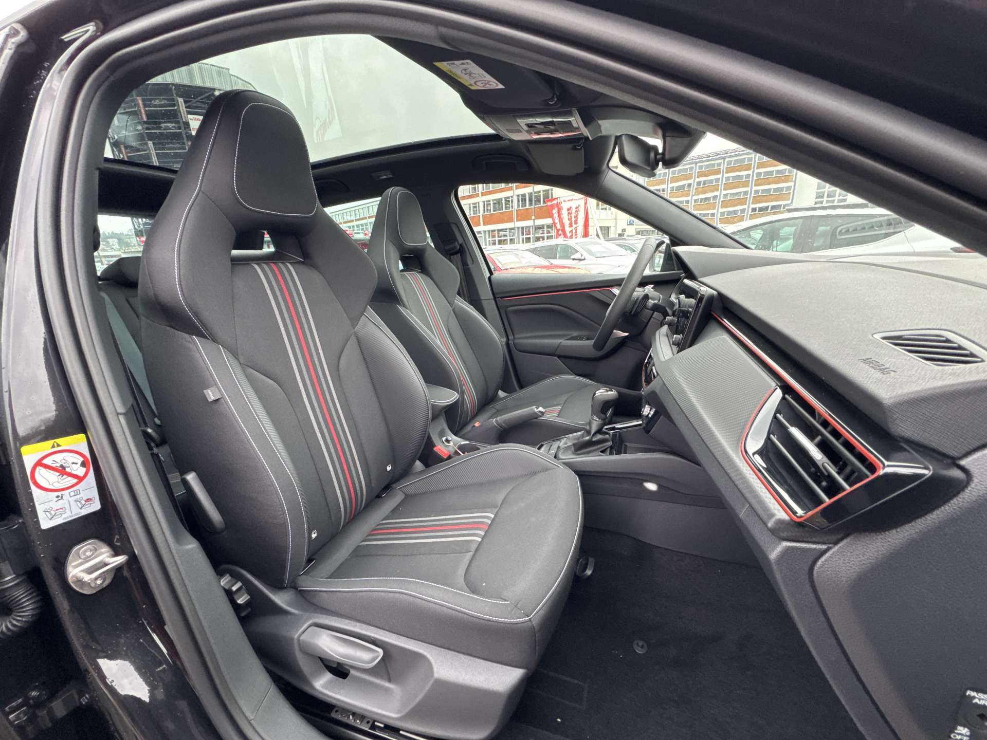 3-Punkt-Sicherheitsgurte auf allen Plätzen, ABS mit ASR und EDS, Airbag: Airbag Beifahrer deaktivierbar, Airbag: Airbag Fahrer und Beifahrer, Airbag: Kopf- und Seitenairbags vorne, Ambiente Beleuchtung 2-farbig, Assist: Ablenkungs- und Müdigkeitserkennung, Assist: Berganfahrassistent, Assist: Front Assistant inkl. City-Notbremsfunktion, Assist: Geschwindigkeitsregelanlage (Tempomat), Assist: Parksensoren hinten, Assist: Regensensor mit Lichtassistent (Coming Home, Leaving Home, Tunnel Light), Assist: Spurhalteassistent "Lane Assist", Assist: Verkehrszeichenerkennung, Aussenspiegel elektrisch einstell-, beheiz- und anklappbar, automatische Abblendung Fahrerseite, Aussenspiegel in schwarz lackiert, Aussenspiegel rechts und links beheizbar und elektrisch verstellbar, Chromrahmen am Kühlergrill, Dachhimmel schwarz, Dachreling schwarz-lackiert, Design Monte Carlo, Drehzahlmesser, Drittes Bremslicht LED, EASY START, Elektrische Fensterheber vorne + hinten, Elektronisches Stabilitäts-Programm (ESP), Emergency Call (Notruf), ESC (Elektronische Stabilisierungskontrolle) mit Multikollisionsbremse, ABS und ASR, Fahrprofilauswahl "Driving Mode Selection", Getriebe: 7-Gang DSG, Gurtanlegesignalisation für alle Passagiere, Heckscheiben-Wisch-/Waschanlage, Heckscheibenheizung, Innenspiegel automatisch abblendbar, Klappbare Gepäckhaken im Kofferraum, Klima: Klimaanlage "Climatronic", 2-Zonen-Temperaturregelung, vollautomatisch, getrennt regelbar, Kühlergrill schwarz lackiert, Lackierung: Uni-Lackierung, Lenkrad: 3-Speichen-Sport-Leder-Multifunktionslenkrad mit Schaltwippen (DSG), Lenkrad: 3-Speichen-Sport-Leder-Multifunktionslenkrad mit Schaltwippen (DSG), beheizbar und HOD, Licht: Easy Light Assist (automatische Lichtschaltung, Coming Home, Leaving Home), Licht: LED Rückleuchten mit dynamischer Blinkleuchte, Licht: LED-Tagfahrlicht, Licht: Nebelscheinwerfer mit Cornering-Funktion, Licht: Voll-LED-Matrix-Scheinwerfer und AFS (Adaptive Frontlight System), Media: 2 USB-C Anschlüsse im Fond, Media: 2 USB-C Anschlüsse vorne, Media: 4 zusätzliche Lausprecher hinten, Media: DAB - Digitaler Radioempfang, Media: Infotainment Online 3 Jahre + "Care Connect" (Remote Access 3 Jahre), Media: Skoda Infotainment 8.25", Media: SmartLink (CarPlay und Android Auto), Media: Telefonvorbereitung mit Bluetooth, Mittelarmlehne hinten mit Doppel Getränkehalter und ohne Durchladefunktion, Mittelarmlehne vorne inkl. grosser Jumbo-Box, Paket: Black Paket, Paket: Light and View Plus Paket, Paket: Open Sky Paket, Paket: Winter Paket, Panoramadach, Polster: Sportsitzbezüge Stoff schwarz, teilweise Carbon-Optik und roten und grauen Streifen, Räder: Leichtmetallräder 17" "Kajam Aero" schwarz mit schwarzer Aero-Blende, Räder: Pannenset (Kompressor und Flasche mit Dichtmittel, ohne Reserverad), Räder: Pannenset (Kompressor und Flasche mit Dichtmittel, ohne Reserverad), Räder: Reifendruckkontrollsystem, Seitliche Luftführungen im Stossfänger vorne schwarz lackiert, Servolenkung, Sitze: 3 Kopfstützen hinten, Sitze: ISOFIX-Vorbereitung und Top-Tether, Sitze: Rücksitzlehne geteilt umklappbar (60:40), Sitze: Vordersitze heizbar, Sitze: Vordersitze höhenverstellbar, SunSet (Heckscheibe und hintere Seitenscheiben dunkel getönt), SunSet (Heckscheibe und hintere Seitenscheiben dunkel getönt), Textilfussmatten vorne und hinten, Türgriffe aussen in Wagenfarbe, Virtuelles Cockpit Basic, Waschwasser-Standanzeige, Wegfahrsperre elektronisch