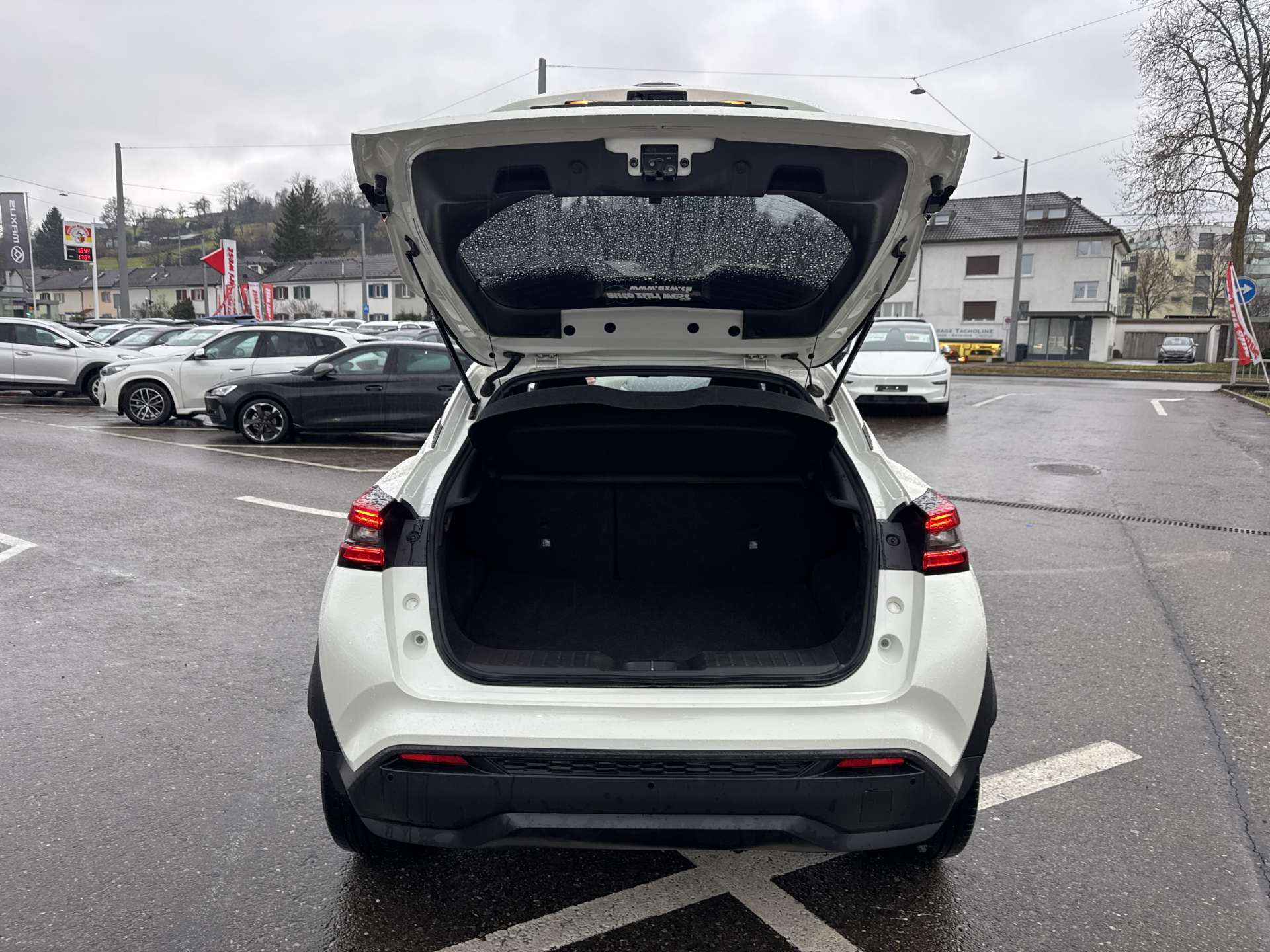 3-Punkt-Sicherheitsgurte auf allen Plätzen, Airbag: Airbag Beifahrer deaktivierbar, Airbag: Fahrer- und Beifahrerairbag, Kopfairbags und Seitenairbags vorne, Assist: Antiblockiersystem (ABS) mit elektronischer Bremskraftverteilung (EBD), Assist: Berganfahr-Assistent, Assist: Einparkhilfe vorne und hinten, Assist: Elektronische Parkbremse (e-PKB) mit automatischer Deaktivierung beim Anfahren, Assist: Geschwindigkeitsbegrenzer und Tempomat, Assist: Intelligenter Autonomer Notbrems-Assistent mit Fussgänger- und Radfahrerkennung, Assist: Intelligenter Spurhalte-Assistent aktiv mit korrigierendem Bremseingriff, Assist: Rückfahrkamera in Farbe, Assist: Verkehrszeichenerkennung, Assist: Warnblinkautomatik, Aussenspiegel elektrisch einstellbar, Aussentemperaturanzeige, Becherhalter in den Türen, vorne und hinten, Chassis Control Technologie (CCT), D-Mode-Schalter: Auswahl des Fahrmodus "Sport", "Eco" oder "Normal", Dachhimmel schwarz, Dachspoiler, Dekor: Mittelkonsole und Türinnenverkleidungen in Dunkelgrau,Kunstleder, Drehzahlmesser, e-Pedal Step, Elektrische Fensterheber vorne + hinten mit Komfortfunktion (Fahrerseite), Elektronisches Stabilitäts-Programm (ESP), EV-Modus Schalter, Fahrer-Informationssystem mit 7"-TFT-Farbdisplay, Flaschenhalter in den Türen, vorne und hinten, Getriebe: Intelligentes Multi-Mode-Hybridgetriebe, Heckscheiben-Wisch-/Waschanlage, Innenspiegel automatisch abblendbar, INTELLIGENT KEY mit Start-/Stopp-Knopf, mit automatischer Ver- und Entriegelung, ISOFIX-Kindersitz-Befestigungspunkte auf den hinteren Sitzplätzen inkl. Top-Tether, Katalysator geregelt, Kleiderhaken im Fahrgastraum, Kniepolsterung an der Mittelkonsole, Kofferraum -variabler Kofferraumboden, Kofferraumbeleuchtung, Kopfstützen auf den hinteren Sitzplätzen höhenverstellbar, 3, Lackierung: Uni-Lackierung, Laderaumabdeckung, Lenkrad: Lenkrad längs- und höhenverstellbar, Lenkrad: Lenkrad und Schalthebelknauf, lederummantelt, Lenkrad: Lenkradfernbedienung für Spracherkennung, Lenkrad: Lenkradfernbedienung für-, Leselampe, vorne und hinten, Licht: Dritte Bremsleuchte, Licht: Fernlicht-Assistent, Licht: LED-Nebelscheinwerfer, Licht: LED-Nebelschlussleuchte, Licht: LED-Rückleuchten, Licht: Voll-LED-Scheinwerfer, Media: 6 Lautsprecher, Media: 8"-Farbdisplay mit Touchscreen, Media: Apple CarPlay und Android Auto, Media: Audiosystem, Media: Haifischantenne in Black, Media: NissanConnect Infotainment:, Media: Spracherkennung, Media: USB-Anschluss hinten, Notruf und Pannenanruf (eCall), Polster: Sitzbezug Stoff/synthetisches Leder, schwarz, Räder: 17"-Leichtmetallfelgen (BiColor-Design) mit Bereifung 215/60 R17, Räder: Reifendruck-Kontrollsystem (TPMS), Räder: Reifenreparatur-Set, Servolenkung geschwindigkeitsabhängig, Sitze: Fahrersitz höhenverstellbarr, Sitze: Mittelarmlehne inkl. Staufach, vorne, Sitze: Monoforme Sportsitze, Sitze: Rückenlehne asymmetrisch (60:40) umklappbar, Sonnenblenden mit Make-Up-Spiegel auf Fahrer- und Beifahrerseite, Steckdose, 12 Volt, vorne, Stopp-/Start-System, Türgriffe aussen in Wagenfarbe, Türgriffe innen verchromt, Verdunkelte Seitenscheiben ab B-Säule, Warnsignal für nicht angelegte Sicherheitsgurte, Wegfahrsperre elektronisch, Zentralverriegelung mit Fernbedienung