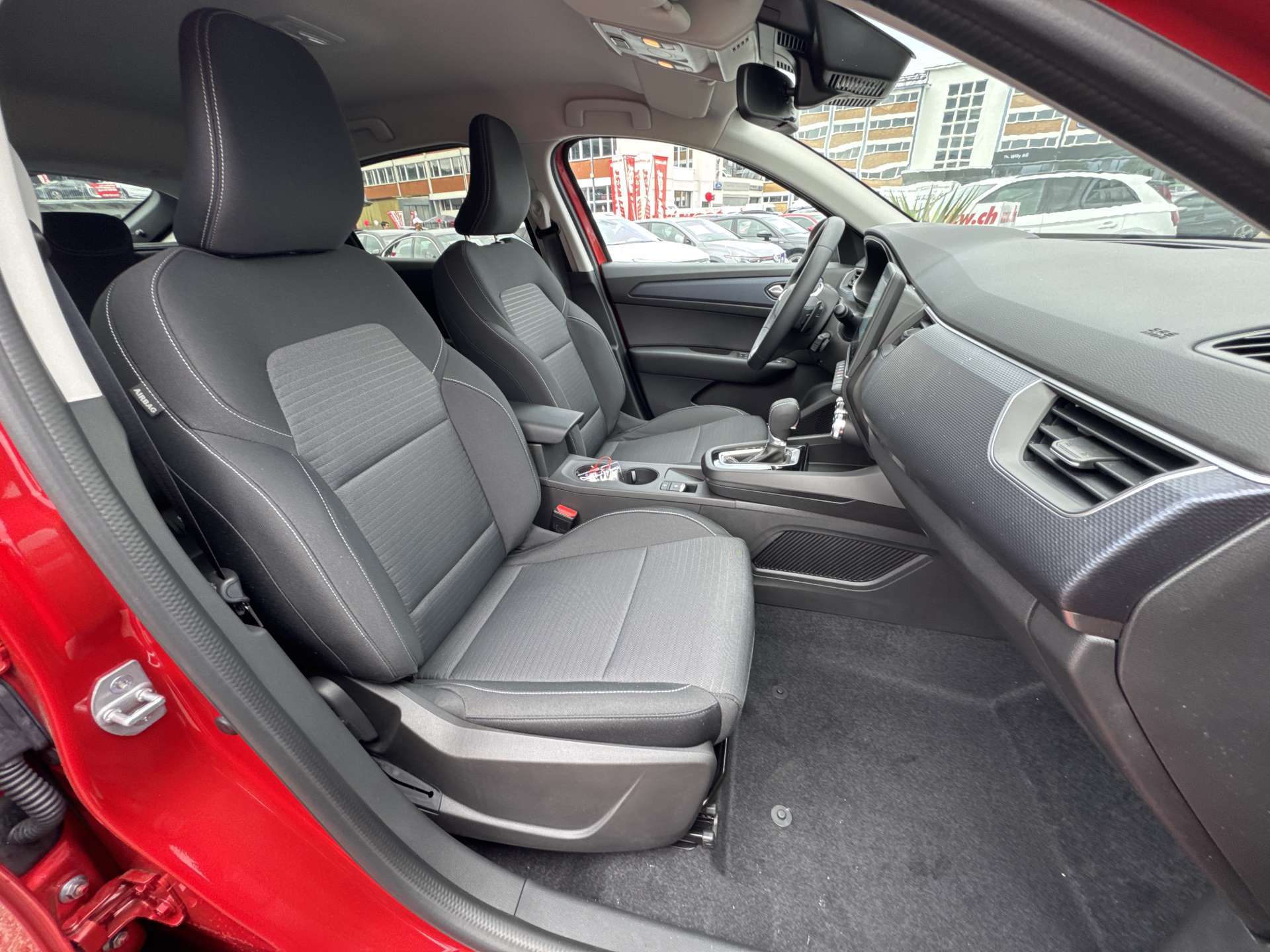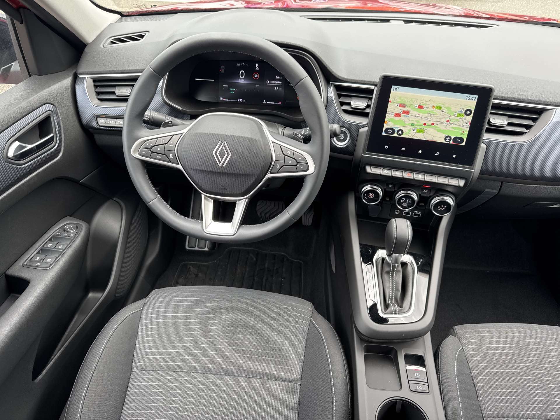 ABS, Airbag: Airbag Fahrer und Beifahrer, Airbag: Seitenairbags vorne, Assist: Adaptiver Tempomat, Assist: Automatische Notfallbremsfunktion, Assist: Einparkhilfe vorne und hinten, Assist: Elektrische Parkbremse mit Auto-Hold-Funktion, Assist: Geschwindigkeitsbegrenzung 180 km/h, Assist: Müdigkeitserkennung und -warner, Assist: Querverkehrswarner, Assist: Renault automatischer Notruf (112), Assist: Rückfahrkamera, Assist: Sicherheitsabstands-Warner, Assist: Spurhalteassistent, Assist: Totwinkel-Assistent, Assist: Verkehrszeichenerkennung mit Geschwindigkeitsanpassung und -warner, Aussenspiegel elektrisch einklappbar, Automatisches Einschalten der Scheinwerfer und Scheibenwischer, Dekor: Innenharmonie Grau, Elektrische Fensterheber vorne, Elektronisches Stabilitäts-Programm (ESP), Garantie: 3 Jahre Neuwagen-Garantie oder 100 000 km, Garantie: Renault Garantie 12 Jahre Durchrostungsgarantie, Garantie: Renault Garantie 3 Jahre Lackgarantie, Getriebe: Automatisiertes 7-Gang-Doppelkupplungsgetriebe, Heck- und Seitenscheiben hinten getönt, Heckscheibe beheizbar, Keyless Drive Hands-free, Klima: Automatische Klimaanlage mit Pollenfilter, Lackierung: Matt-Lackierung, Licht: Adaptives Fernlicht, Licht: Full LED Scheinwerfer, Media: Digitale Instrumententafel 10'', Media: EASY LINK Multimediasystem 9.3'', Media: Kabellose Smartphone-Replikation Apple CarPlay und Android Auto, Media: Navigation mit Europakarte, Modularer Kofferraumboden, MULTI-SENSE, Räder: Reifendruck-Kontrollanzeige, Servolenkung, Sitze: Fahrer- und Beifahrersitz 6-fach verstellbar, Sitze: Manuell verschiebbare Rückbank (1/3 zu 2/3 umklappbar), Start/Stop-Funktion, Wegfahrsperre elektronisch, Zentralverriegelung