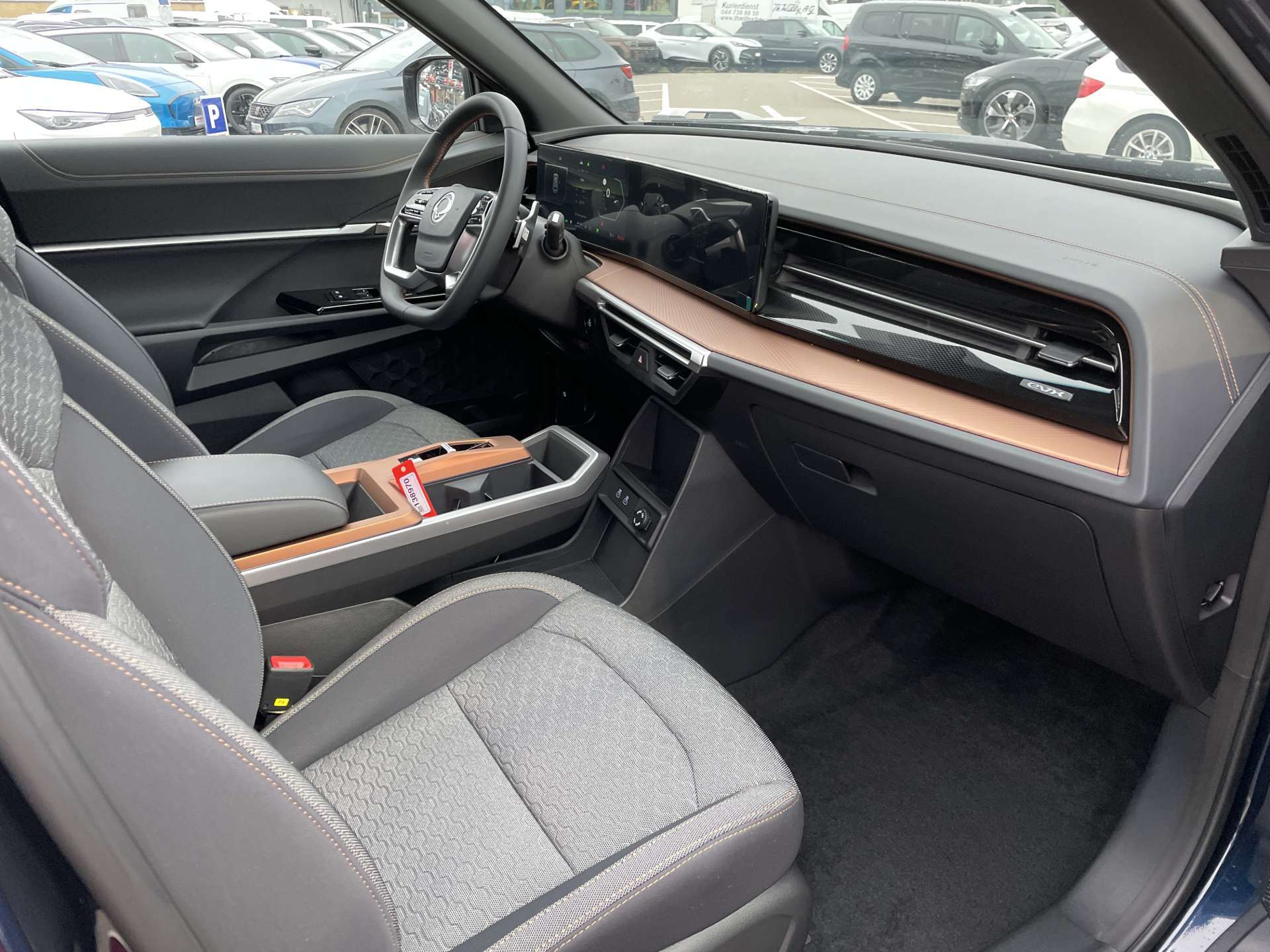 12V-Anschluss vorne, Airbag: Airbag Fahrer und Beifahrer, Airbag: Center-Airbag, Airbag: Seitenairbag für Fahrer und Beifahrer, Airbag: Vorhangairbags, Antiblockiersystem (ABS), Assist: Adaptive Geschwindigkeitsregelanlage (ACC), Assist: Anfahralarm Vorderfahrzeug, Assist: Aufmerksamkeitsassistent, Assist: Automatisches Notbremssystem AEB, Assist: Automatisches Notrufsystem (eCall), Assist: Bergabfahrhilfe (HDC), Assist: Berganfahrhilfe (HSA), Assist: Einparkhilfe hinten, Assist: Elektronische Traktionskontrolle, Assist: Frontkollisionswarner (FCW), Assist: Rückfahrkamera, Assist: Spurhalteassistent (LCA), Assist: Verkehrszeichenerkennung (TSR), Aussenspiegel in Wagenfarbe, elektrisch einstellbar, beheizbar und anklappbar, Bodenteppich, Dachheckspoiler mit dritter Bremsleuchte, Elektrische Fensterheber, mit Auf-/Abwärtsautomatik vorne, Elektronische Parkbremse, Elektronisches Stabilitäts-Programm, Gepäckraumabdeckung, Getriebe: Direktantrieb, kein Getriebe, Klima: Luftaustrittsdüsen in der zweiten Reihe, Klima: Zwei-Zonen-Klimaautomatik, Lackierung: Uni-Lackierung, Ladekabel Mode 3 Typ 2, 3-Phasig, inkl. Tragtasche, Lenkrad: Lenkrad in Höhe und Tiefe verstellbar, Lenkrad: Lenkradfernbedienung für Audiosystem, Lenkrad: Wippen am Lenkrad für regeneratives Bremsen, Licht: Fernlicht-Assistent (HBA), Licht: LED Nebelscheinwerfer, Licht: LED Rückleuchten, Licht: LED Scheinwerfer, Licht: LED-Tagfahrlicht (DRL), Lichtautomatik, Media: Bluetooth Freisprecheinrichtung, Media: Digitale 12,3" Instrumententafel, Media: Navigationssystem mit 12.3"-Touchscreen, DAB+-Radio, Android Auto & Apple CarPlay, Media: USB C - Anschlüsse vorne und hinten, Mittelarmlehne hinten, Polster: Stoff-Ausstattung, Räder: 18"-Leichtmetallfelgen mit Bereifung 225/60 R, Räder: Reifendruckkontrollsystem (RDKS), Räder: Reifenreparaturset, Regensensor, Schlüsselloses Zugangs- und Startsystem Smart Key, Schnellladeanschluss CCS, Servolenkung, Sitze: Fahrersitz höhenverstellbar, Sitze: Rücksitze getrennt umklappbar (60/40), Türgriffe in Wagenfarbe, V2L-Technologie (max. 3.5 KWh), Virtuelles Motorengeräusch, Zentralverriegelung mit Fernbedienung