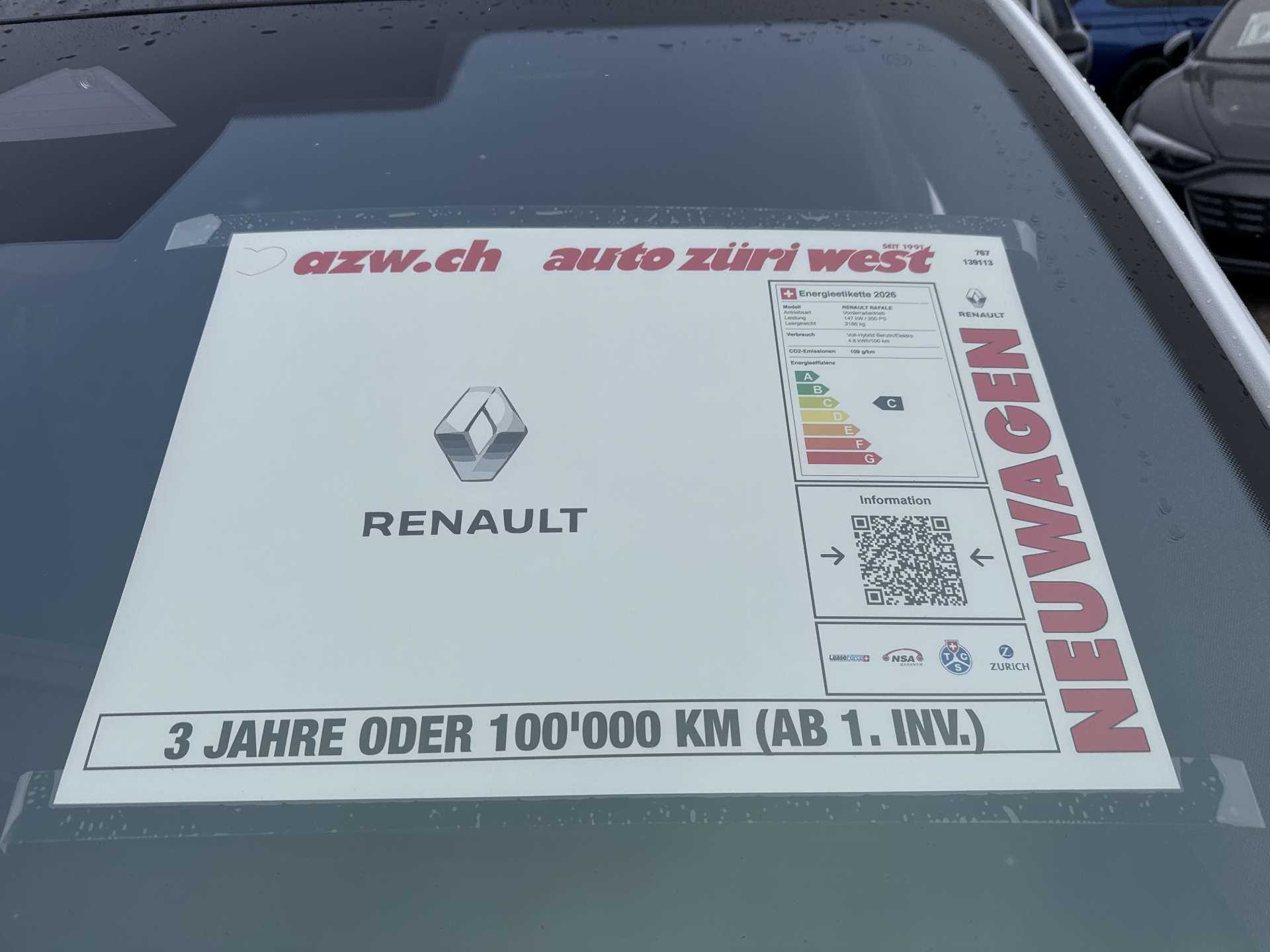 Garantie 3 Jahre oder 100'000 km (ab 1. Inv.)