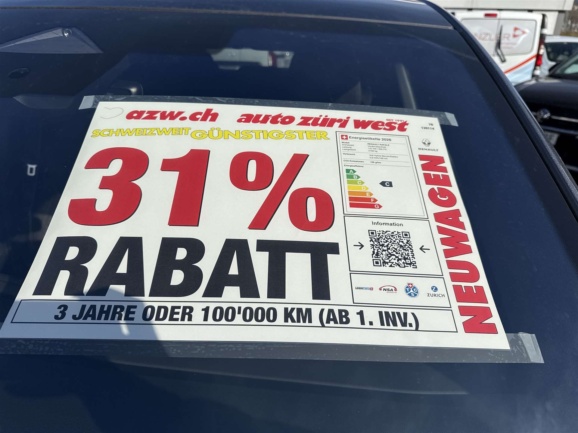 Garantie 3 Jahre oder 100'000 km (ab 1. Inv.)