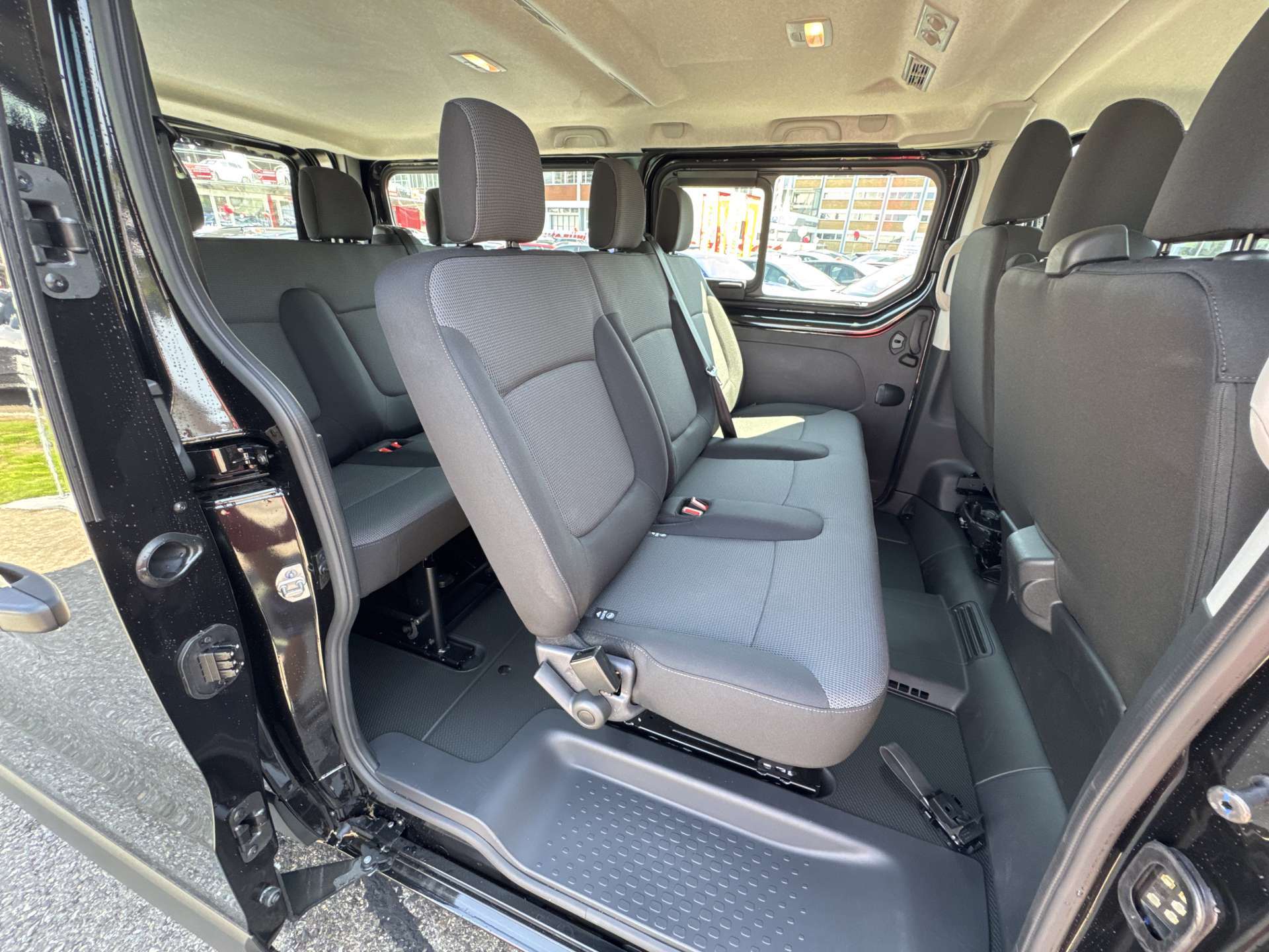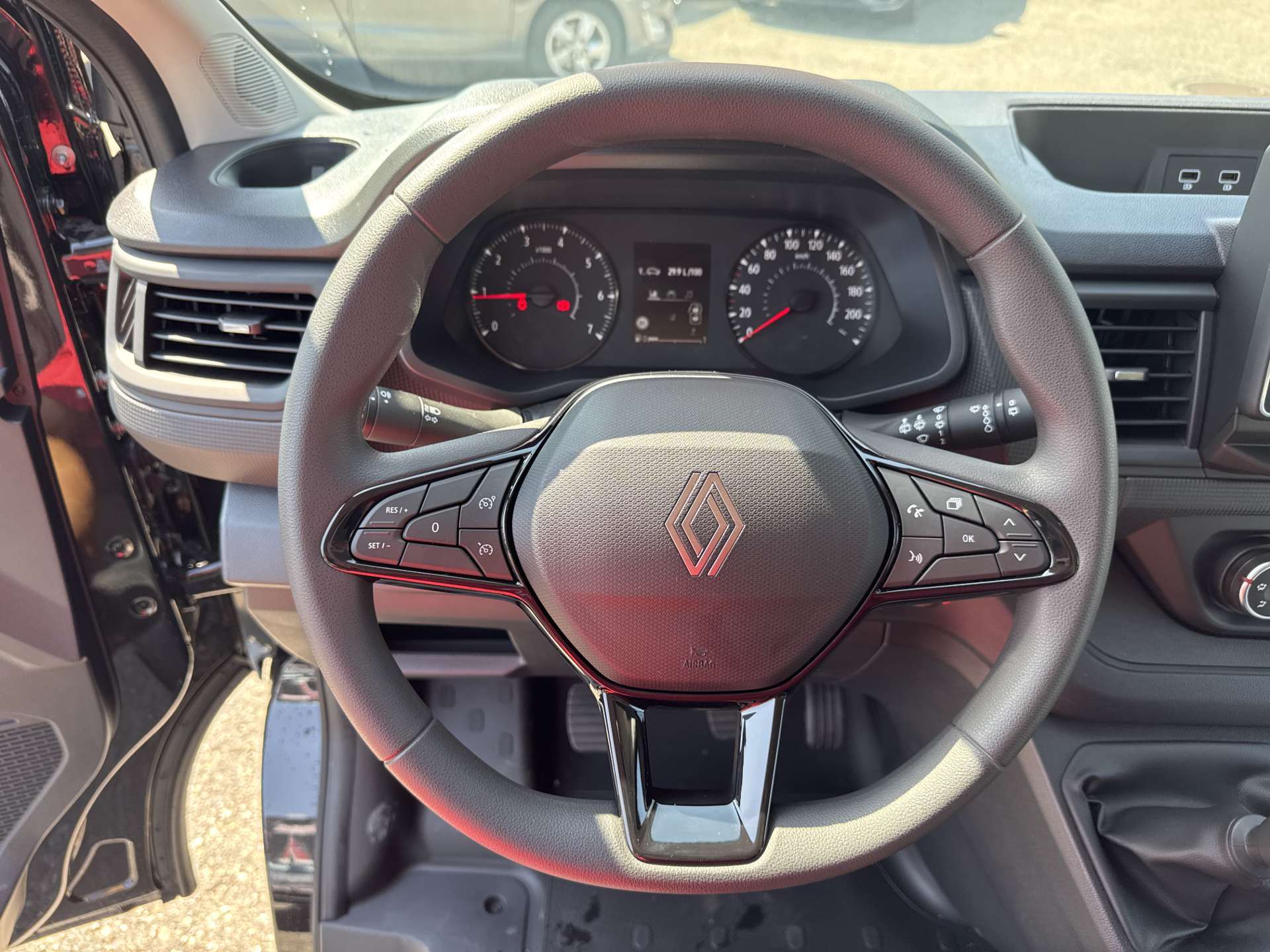 12-Volt-Steckdose hinten, 3-Knopf-Schlüssel versenkbar, 3-Punkt-Sicherheitsgurte mit Gurtstraffer, Ablage für Armaturenbrett und Türen, Airbag: "Window"- und Seitenairbags für Fahrer und Beifahrer, Airbag: Airbag Fahrer und Beifahrer, Anti-Blockier-Bremssystem (ABS) mit eletronischer Bremskraftverteilung + Notbremsassistent, Assist: Automatische Notfallbremsfunktion, Assist: E-Call Notrufsystem, Assist: Einparkhilfe hinten, Assist: Elektronisches Stabilitätsprogramm (ESC) mit Extended Grip,, Assist: Intelligenter Geschwindigkeitsassistent, Assist: Müdigkeits- und Aufmerksamkeitswarner, Assist: Spurhalteassistent (Lane Departure Warning), Assist: Tempomat mit Geschwindigkeitsbegrenzer, Aussenspiegel elektrisch einstell und beheizbar, Beheizbare Heckscheibe, Dashboard mit 3.5-Zoll-TFT-Monitor, Dekor: Innenausstattung Noir, Elektrische Fensterheber vorne mit Schnellsenkfunktion, Garantie: Ranault Garantie 3 Jahre Lackgarantie, Garantie: Renault Garantie 12 Jahre Durchrostungsgarantie, Gummimatte im Laderaum, Gurtwarner für 1. Reihe und hintere Reihen, Heckscheiben-Wischer, Kabinenbeleuchtung Glühbirne, Klima: Manuelle Klimaanlage vorne, Lackierung: Matt-Lackierung, Lenkrad: Lenkrad in Höhe und Tiefe verstellbar, Licht: ALS (Auto Light System), Licht: Full-LED-Schweinwerfer, Licht: LED-Tagfahrlicht, Media: EASY LINK 8"-Display mit DAB+ Radio (USB, AUX, Bluetooth, Apple Carplay& Android Auto), Polster: Sitzbezug Stoff Kompo Noir, Räder: 16" Stahlfelgen mit grossen Radabdeckungen Siras, Räder: Reifendruckkontrollsystem, Räder: Reifenreparatur-Set (Tire Fit), Rückwand hinten verglast, Seitenwand zentral links verglast, Servolenkung, Sicherheitsgurte vorne in der Höhe verstellbar, Sitze: 2 Reihe: Sitzbank 3 Platze, Lehne 1/3 umklappbar, herausnehmbar, Sitze: 3 Reihe: Sitzbank 3 Platze, Lehne 1/3 umklappbar, herausnehmbar, Sitze: Beifahrersitz umklappbar, Sitze: Fahrersitz - Komfort, Sitze: ISOFIX-Kindersitzbefestigung an den seitlichen Sitzen der zweiten Sitzreihe, Sitze: Kopfstützen höhenverstellbar, Start/Stop-Funktion / Energy Smart Management, Türen: Heckklappe verglast, Türen: Schiebetür rechts verglast, Wegfahrsperre elektronisch, Zentralverriegelung der Türe mit Fernbedienung