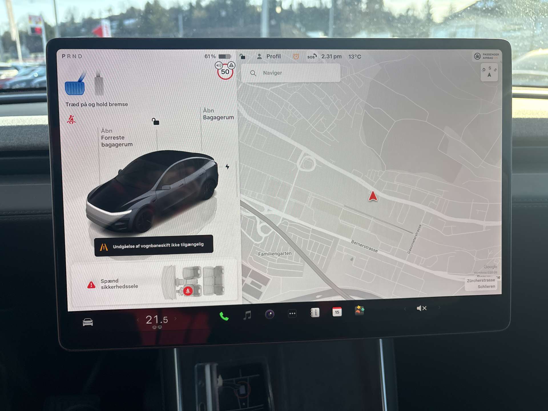 12-Volt-Steckdose vorne, Airbag: Airbag Beifahrer deaktivierbar, Airbag: Airbag Fahrer und Beifahrer, Airbag: Seiten- und Kopfairbags, Allradantrieb permanent, Ambiente Beleuchtung, Assist: 8 Aussenkameras inkl.Frontkamera, Assist: ABS und TCS, Assist: Adaptive Cruise Control, Assist: Basic Autopilot, Assist: Echtzeit-Verkehrsflussanzeige, Assist: Frontaufprallwarnung, Assist: Kollisionswarnung, Assist: Lenkassistent, Assist: Notbremsassistent, Assist: Park Distance Control (PDC), Assist: Parkassistent, Assist: Satellitenbildkarten, Assist: Spurhalteassistent, Assist: Toter-Winkel-Warnsystem, Aussenspiegel automatisch abblendend, Aussenspiegel rechts und links beheizt,, Bodenleuchten-Emblem, Bordcomputer, Decor: All black premium interior, Dekor: Aluminiumdetails und Premium-Textilbezug, Easy Entry, Elektrisch gesteuerte Luftauslässe für 1. und 2. Sitzreihe, Elektrische Fensterheber vorne und hinten, Elektronisches Stabilitäts-Programm, Fahrwerk: Federung der 2. Generation, Frontscheibenheizung, Fußgängerwarnsystem, Garantie: 4 Jahre oder 80'000 km, Garantie: 8 Jahre oder 192'000 km, Getöntes Verbundsicherheitsglas mit metallischer Infrarot-Reflexionsbeschichtung, Getriebe: Direktantrieb, Gurtstraffer vorne, Heckklappe automatisch, virtual Pedal, Heckklappen-Emblem, Heckscheibenheizung, Heckspoiler, ISOFIX Kindersitzvorrichtung, Keyless Entry, Klima: 3-Zonen-Klimaautomatik, Lackierung: Pearl-Lackierung, Ladekabel, Lenkrad: Lenkrad elektrisch längs- und höhen-verstellbar, Lenkrad: Lenkradheizung, Lenkrad: Multifunktionslenkrad, Licht: Drittes Bremslicht LED, Licht: Fernlichtautomatik, Licht: LED Scheinwerfer, Licht: LED-Nebelscheinwerfer, Licht: LED-Tagfahrlicht, Licht: Nebelschlussleuchte, Media: 15,4-Zoll-Touchscreen vorne, Media: 8-Zoll-Touchscreen hinten, Media: Bluetooth Freisprecheinrichtung, Media: Internet-Browser, Media: Media Player, Media: Musik-Streaming, Media: Navigationssystem mit Onboard-Karten, Media: Premium-Audiosystem, Media: USB-A Anschluss im Handschuhfach mit abnehmbaren 128 GB Speichermedium, Media: Video-Streaming, Zugriff auf Inhalte von Netflix, Youtube, Twitch und anderen Anbietern, Media: Wi-Fi Hotspot, Mittelkonsole mit Ablagefach, Paket: Premium-Konnektivität, 1 Jahr kostenlos, Panorama-Glasdach, Polster: Veganes Leder und Wildleder, Räder: 19" Crossflow Wheels, Reifendruck-Kontrollanzeige, Reifenreparatur-Set (Tire Fit), Scheibenwischer vorne mit Intervall, Schwellerleisten-Schriftzug, Seitenaufprall-Schutzsystem, Servolenkung, Sicherheitsgurtsystem, Sitze: Fünfsitzer-Innenraum, Sitze: Kopfstützen verstellbar, Sitze: Rücksitze elektrisch umklappbar, Sitze: Rücksitze elektrisch verstellbar, Sitze: Rücksitzlehne geteilt abklappbar, Sitze: Vordersitze belüftet, Sitze: Vordersitze elektrisch verstellbar, Sitze: Vordersitze heizbar, Supercharger Network Access + Pay-as-you-go, Wegfahrsperre elektronisch, Zentralverriegelung mit Fernbedienung