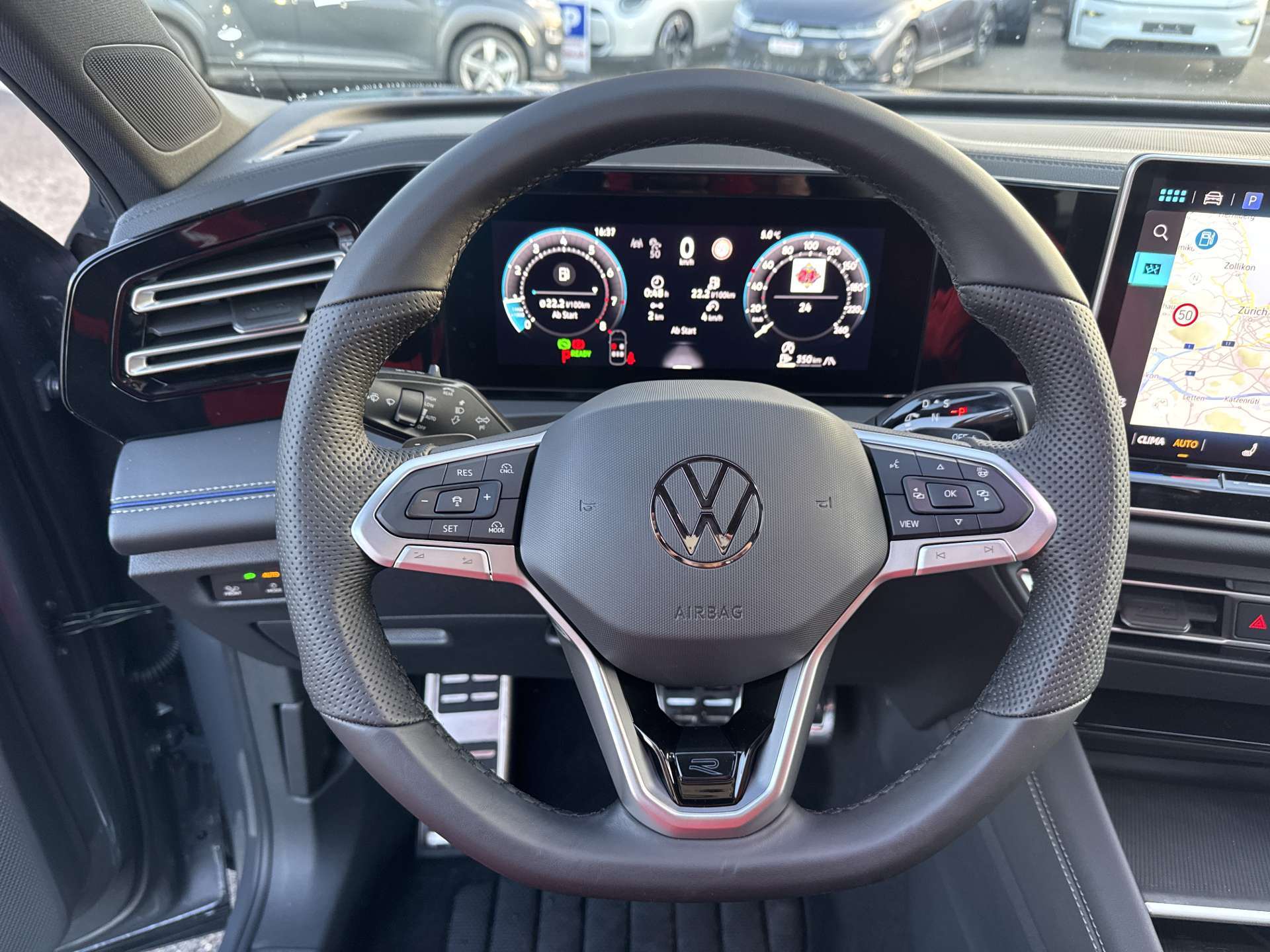 Verbundsicherheitsglas geräuschdämmend für Türscheiben; Heck- und Seitenscheiben hinten abgedunkelt, Licht: IQ.LIGHT - HD-Matrix-Scheinwerfer, Licht: 3D LED-Rückleuchten mit dynamischer Blinkleuchte, Licht: Dynamischer Fernlichtassistent "Dynamic Light Assist", Licht: IQ.LIGHT - HD-Matrix-Scheinwerfer, Paket: Fahrerassistenzpaket "Plus" inkl I.Q. Drive, Aussenspiegel elektrisch einstell-, anklapp, und beheizbar, auf Fahrerseite abblendend, Assist: Umgebungsansicht "Area View" inkl. Rückfahrkamera "Rear View", Assist: Fahrassistent "Travel Assist", Spurhalteassistent "Lane Assist" und "Emergency Assist", Assist: Proaktives Insassenschutzsystem, Anhängevorrichtung anklappbar, mit elektrischer Entriegelung inkl. Anhängerrangierassistent Trailer Assist, Lackierung: Metallic-Lackierung, Räder: 20-Zoll Leichtmetallräder "Leeds" - 4 Leichtmetallräder 8 J x 20, Volkswagen R, in Schwarz/Grau, Oberfläche glanzgedreht - Reifen 255/40 R20 - Radsicherungen mit erweitertem Diebstahlschutz, Paket: Infotainment-Paket 1 inkl. Navigationssystem "Discover", Media: 2 USB-C-Schnittstellen vorn, 2 USB-C-Ladebuchsen an der Mittelkonsole hinten, Media: Sprachassistent IDA, Media: Infotainment-System "Ready 2 Discover" mit 32-cm-Display (12,9 Zoll), Media: Telefonschnittstelle "Comfort" mit Induktiver Ladefunktion, Media: Navigationssystem, Paket: Komfortpaket inkl. "Park Assist Pro" mit Safe-Sicherung, Diebstahlwarnanlage mit Innenraumüberwachung, Back-up-Horn und Abschleppschutz, Heckklappe mit sensorgesteuerter Öffnung, Assist: Parkassistent "Park Assist" Pro", inkl. Einparkhilfe vorn und hinten fernbedient, Assist: Memory-Funktion für Parkassistent, Schlüsselloses Schliess- und Startsystem "Keyless Access", mit Safe-Sicherung, Assist: Car2X