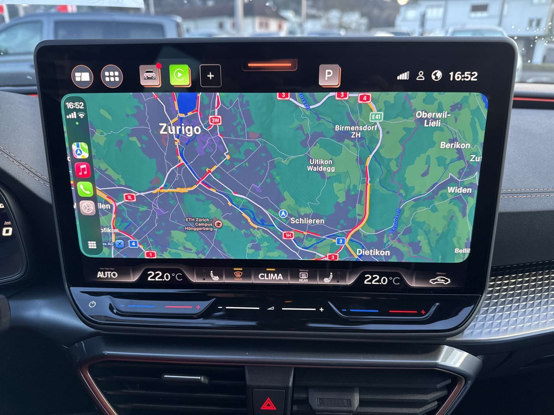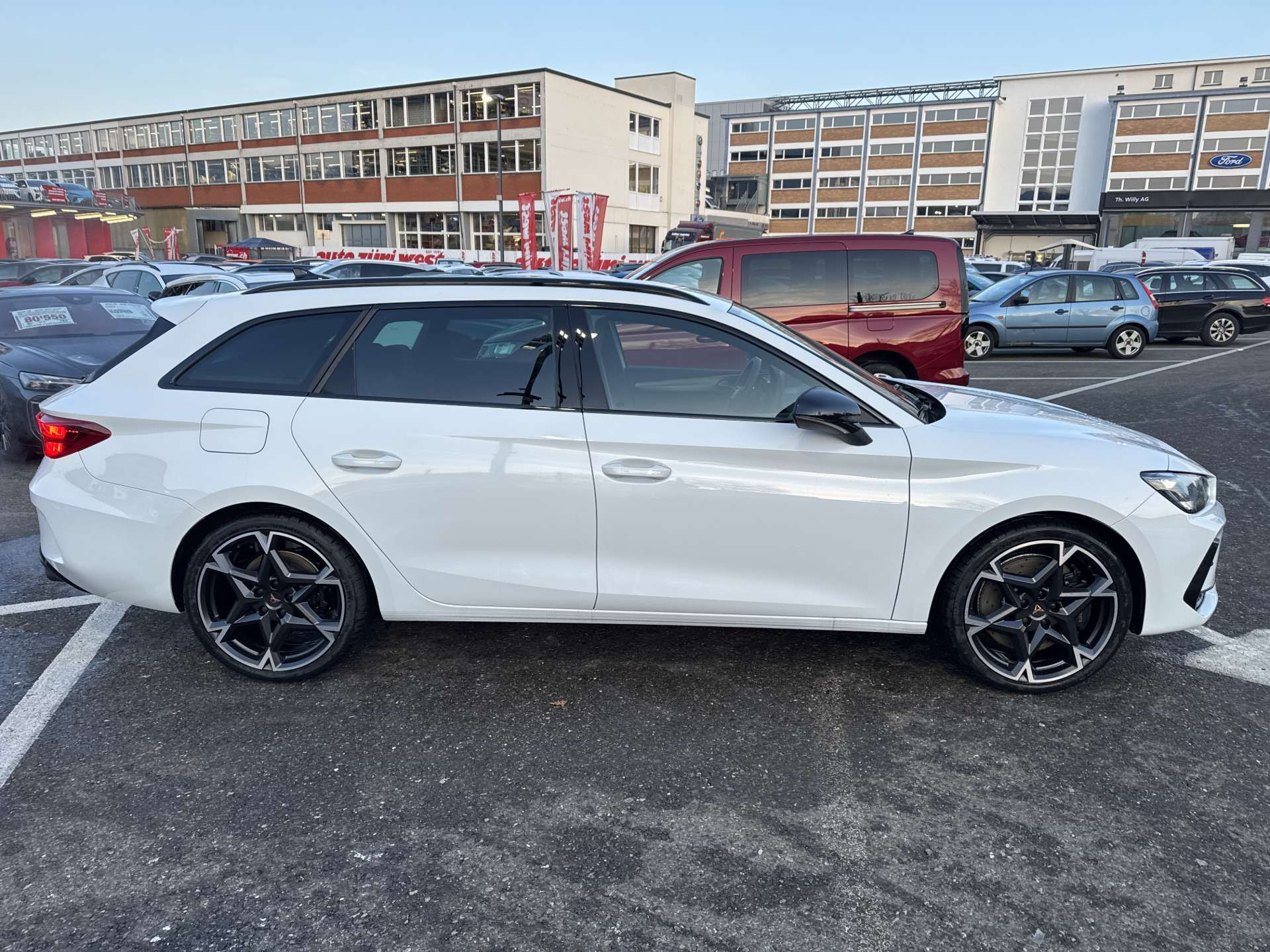 Abgedunkelte Scheiben ab B-Säule hinten, ABS, EBV elektronische Bremskraft-verteilung, Airbag: Airbag Beifahrer deaktivierbar, Airbag: Airbag Fahrer und Beifahrer, Airbag: Seitenairbags vorne mit Kopfairbag und Interaktionsairbag vorne, Alarmanlage mit Innenraumüberwachung, Allradantrieb permanent, Assist: Aufmerksamkeits- und Müdigkeitserkennung (ADA), Assist: Ausweichunterstützung / Abbiegeassistent, Assist: Automatische Distanzregelung ACC, Assist: Einparkhilfe vorne und hinten, Assist: Elektronische Parkbremse mit Auto Hold Funktion, Assist: Lane assist (Spurhalteassistent), Assist: Multifunktionskamera, Assist: Multikollisionsbremse, Assist: Prädiktive Speedlimiter, Assist: Regen-/Lichtsensor, Assist: Rückfahrkamera, Assist: Tempomat, Assist: Traction Control (TCS), Assist: Traffic sign recognition (Verkehrszeichenerkennung), Aussenspiegel elektrisch einstell-, beheiz- und einklappbar mit Memory -Funktion, CUPRA Drive Profile mit "driving experience button" Comfort, Performance, Drift, Individual, Dachhimmel Schwarz, Dekor: Dekorblenden in Copper, Dekor: Dinamica Ambiente, Dreipunkt-Automatiksicherheitsgurte auf allen Plätzen, Elektrische Fensterheber vorne und hinten mit Komfortschaltung und Einklemmschutz, ESC mit EBA, DSR und Reifendruckkontrolle, Fahrwerk: Adaptive Fahrwerksregelung DCC, Full Digital Cockpit, Fussmatten vorne und hinten, Garantie: Cupra 12 Jahre Gewährleistung gegen Karosserie-Durchrostung, Garantie: Cupra 3 Jahre Lack-Gewährleistung, Garantie: Cupra Hersteller-Garantieverlängerung für das 3., 4. und 5. Jahr / max.100’000 km (ab 1. Inv.), Garantie: Cupra Hersteller-Garantieverlängerung für das 3., 4. und 5. Jahr / max.100000 km, Getriebe: 7-Gang DSG, Heckklappe elektrisch öffnend "Virtual Pedal", Heckscheiben-Wisch-/Waschanlage mit Intervall, Innenspiegel automatisch abblendbar, Klima: 3-Zonen Climatronic mit Fondraumbedienung, Lackierung: Uni-Lackierung, LED-Innenraumbeleuchtung mit Ambientebeleuchtung Smart Wraparound "Multicolor", Lenkrad: Supersportlenkrad mit Start-/ Drive Profile-Knopfsystem und Schaltwippen, beheizbar, Licht: Coming Leaving Home Funktion, Licht: Drittes Bremslicht, Licht: Durchgehende Full LED-Heckleuchten, Licht: Dynamische LED-Blinker, Licht: Fernlicht-Assistent, Licht: LED Heckleuchten mit beleuchtetem 3D CUPRA Logo, Licht: LED-Nebelscheinwerfer mit Cornering-Funktion, Licht: LED-Scheinwerfer für Abblend- und Fernlicht, Licht: LED-Tagfahrlicht, Licht: Leuchtweitenregulierung, Licht: Nebelschlussleuchte, Media: 12,9" Infotainment (MIB3), Media: 2 USB C Anschlüsse hinten und vorne, Media: 6 Lautsprecher, Media: CUPRA Connect Remote & Access, Media: CUPRA Connect Safety & Services, Media: CUPRA Connectivity Box, Media: CUPRA FullLink, Media: DAB+ (Digital Audio Broadcasting), Media: Mobiltelefon Freisprechanlage Bluetooth, Media: Sprachsteuerung, Netztrennwand, Paket: DYNAMIC DESIGN, Paket: EDGE, Pyrotechnische Gurtstraffer und Gurtkraftbegrenzer vorne, Räder: Alufelgen 8J x 19", "POLAR" Machined in Sport Black Silver, Räder: Reifenreparatur-Set (Tire Fit), Schlüsselloses Schliess- und Startsystem (KESSY Advance), Servolenkung mit geschwindigkeitsabhängiger Lenkkraftunterstützung, Sicherheitsgurtkontrolle für alle Sitze, Sitze: 2 verstellbare Kopfstützen vorne und 3 hinten, Sitze: CUPRA Sport Schalensitze in Dinamica "Black/Blue", Sitze: Fahrer- und Beifahrersitz mit Lendenwirbelstütze, Sitze: Fahrersitz elektrisch einstellbar mit Memory-Funktion, Sitze: Geteilt abklappbare Rücksitzlehne 1/3 - 2/3, Sitze: Kindersitzverankerung ISOFIX hinten, Sitze: Kopfstützen vorne (integrierte), Sitze: Lendenwirbelstütze Fahrerseite elektrisch einstellbar, Sitze: Lendenwirbelstütze in den Vordersitzlehnen, Sitze: Mittelarmlehne hinten, Sitze: Mittelarmlehne vorne, Sitze: Sitzheizung für Vordersitze, getrennt regelbar, Sonnenblende Fahrer und Beifahrerseite, Stopp - Start- und Rekuperationssystem, Variabler Ladeboden, Vollverzinkte Karosserie, Wärmeschutzverglasung, Wegfahrsperre elektronisch, Zentralverriegelung mit Funkfernbedienung, 2 Funkschlüssel