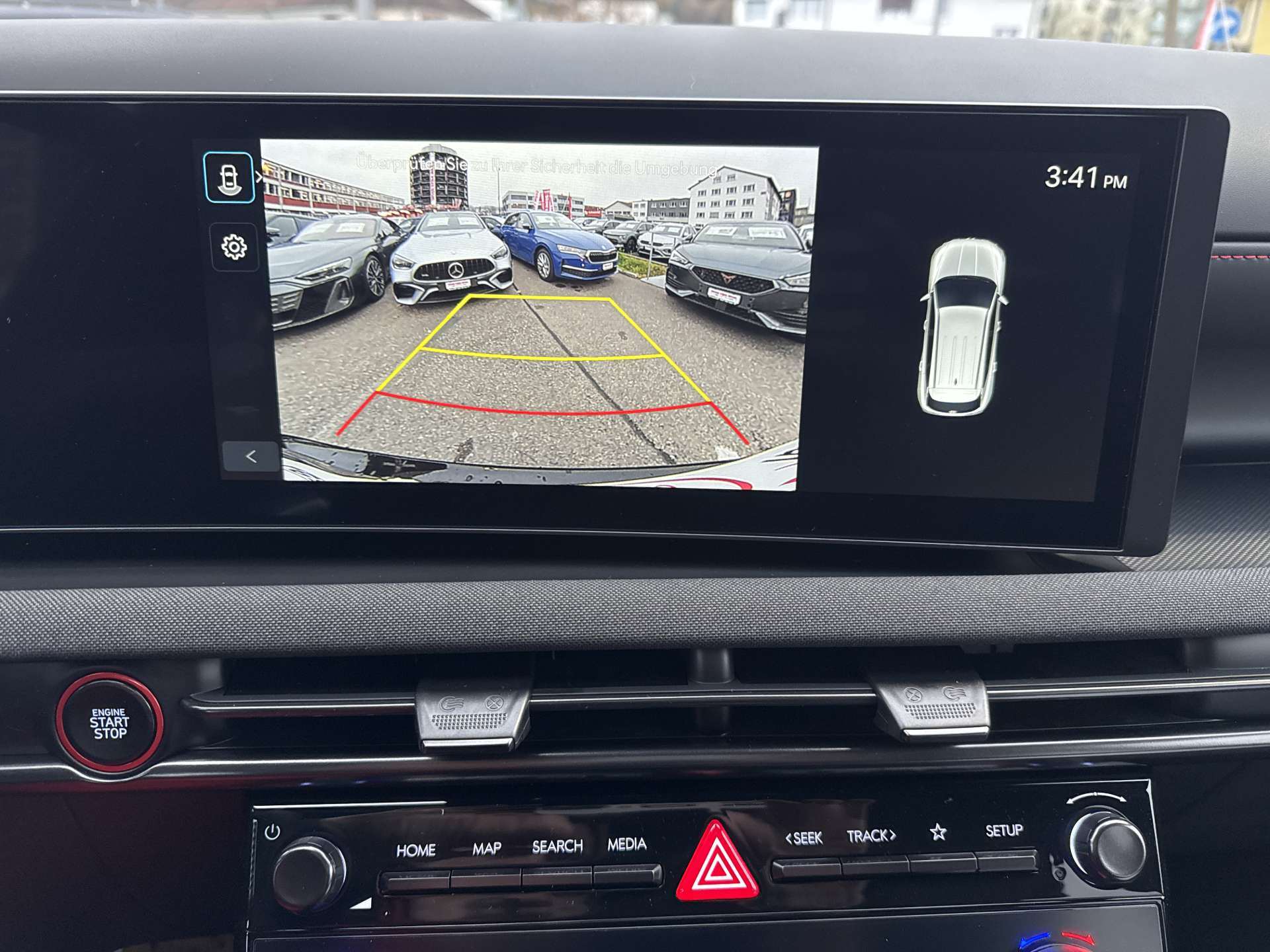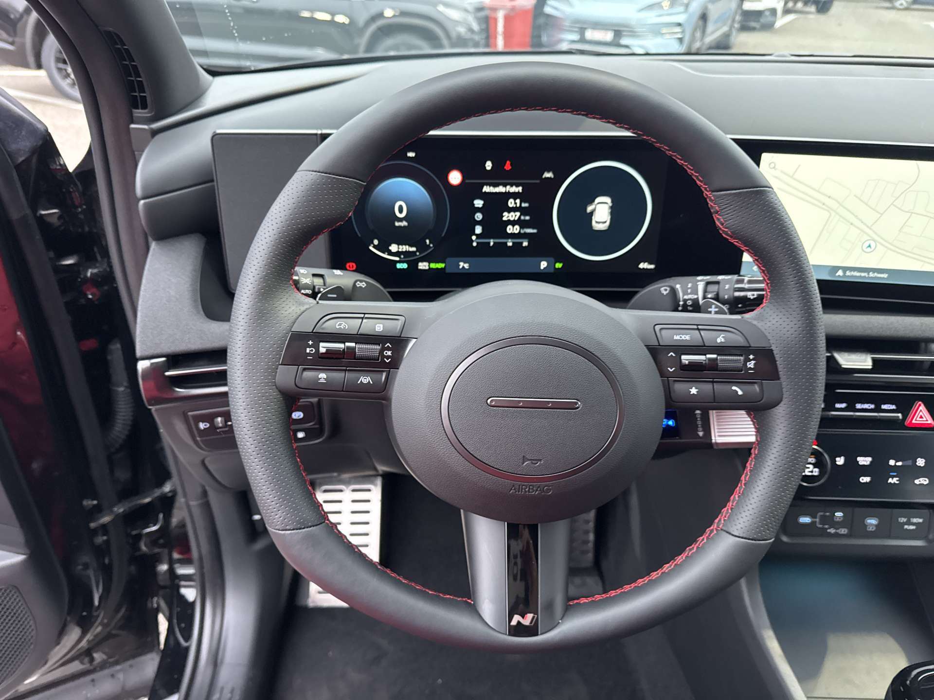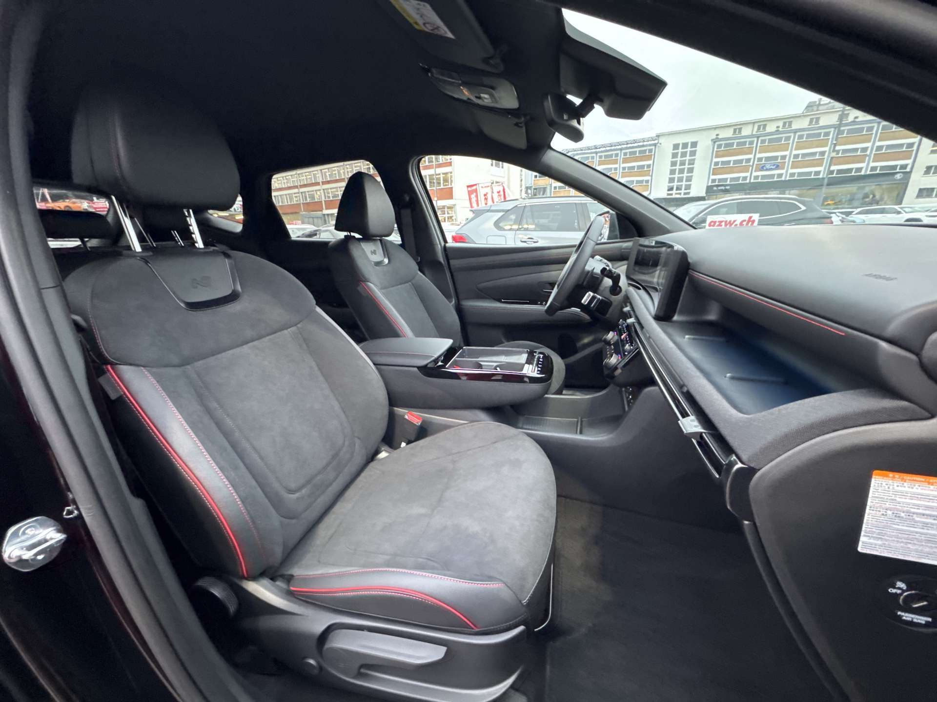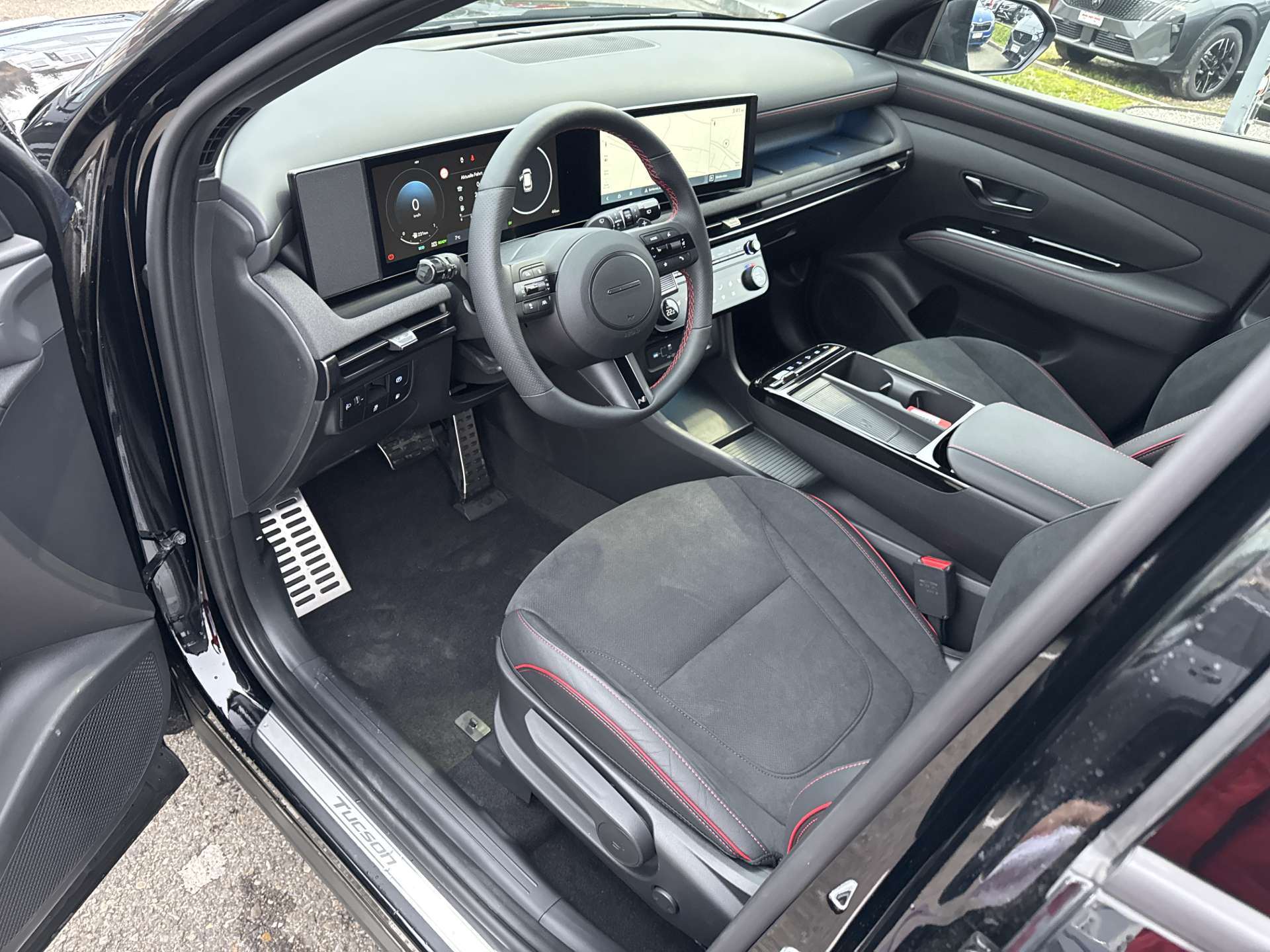 ABS mit elektronischer Bremskraftverteilung EBD, Airbag: Center Airbag vorne, Airbag: Deaktivierung Frontairbag Beifahrerseite, Airbag: Front- und Seitenairbags vorne, Vorhangairbags vorne und hinten, Alarmanlage, Ambientebeleuchtung, Assist: Aktiver Totwinkelassistent, Assist: Anfahralarm Vorderfahrzeug, Assist: Aufmerksamkeitsassistent, Assist: Bergabfahrhilfe (DAC), Assist: Berganfahrhilfe, Assist: Einparkhilfe vorne und hinten, Assist: Elektrische Parkbremse mit Auto-Hold-Funktion, Assist: Elektronische Traktionskontrolle, Assist: Navigationsbasierter adaptiver Tempomat, Assist: Notbremsassistent mit Fussgänger-/Fahrraderkennung und Abbiegefunktion, Assist: Querverkehrswarner hinten mit Bremsassistent, Assist: Rückfahrkamera, Assist: Spurfolgeassistent, Assist: Spurhalteassistent, Assist: Verkehrszeichenerkennung, Assist: Verkehrszeichenerkennung mit automatischer Geschwindigkeitsregelung, Aussenspiegel mit Welcome-Light, Aussentemperaturanzeige, Automatisch abblendender Innenspiegel, Automatisches Notrufsystem eCall, Bordcomputer, Dachreling, Dreipunkt-Sicherheitsgurte auf allen Plätzen, vorne höhenverstellbar, Drive Mode Select (2 Fahrmodi), Elektrisch einklappbare Aussenspiegel, Elektrisch verstell- und beheizbare Aussenspiegel, Elektrische Fensterheber vorne + hinten, Elektronische Gangschaltung (Shift by wire), Elektronisches Stabilitätsprogramm ESP mit Multikollisionsbremse, Fahrtrichtungsanzeiger mit Antippfunktion, Fahrwerk: Terrain Mode Selector, Gepäcknetz, Getriebe: 6-Gang Automatikgetriebe, Insassenalarm, ISOFIX Kindersitzvorrichtung, Klima: 2-Zonen-Klimaautomatik mit Anti-Beschlagsystem, Lackierung: Uni-Lackierung Engine Red, Lenkrad; Lederlenkrad und -schaltknauf, Lenkrad: Audiofernbedienung am Lenkrad, Lenkrad: Lenkrad beheizbar, Lenkrad: Lenkrad vertikal und axial verstellbar, Lenkrad: Lenkrad-Wippschaltung (Paddles), Licht: Fernlichtassistent, Licht: LED Rückleuchten, Licht: LED-Projektionsscheinwerfer, Licht: LED-Tagfahrlicht, Licht: Lichtautomatik, Media: 8 Lautsprecher, Media: Digitalradio DAB+, USB-C Anschlüsse (2 vorne / 2 hinten), Media: Kabellose Android Auto - und Apple CarPlay-Funktion, Media: Kabelloses Laden für Smartphone, Media: MapCare Lifetime / Over-the-Air Update, Media: Multi-Bluetooth mit Freisprecheinrichtung, Media: Navigationssystem mit 12.3"-Farbdisplay, Media: Supervision Armaturentafel mit 12.3" TFT LCD Anzeige, Media: Telematikdienst Bluelink Lite und LIVE Services (10 Jahre gratis), Mittelarmlehne hinten, Mittelarmlehne vorne, Paket: Autobahn- und Stauassistent:, Paket: N Line Paket, Polster: Ledersitze Alcantara, Privacy Glass, abgedunkeltes Scheibenglas hinten (ab B-Säule), Räder: 19'' Leichtmetallfelgen, Räder: Reifendruck-Kontrollsystem High Line, Räder: Reifenreparatur-Set, Regensensor, Schlüsselloses Zugangssystem Smart Key mit Engine Start/Stop-Taste, Servolenkung geschwindigkeitsabhängig, Sicherheitsgurte mit Straffern und Gurtkraftbegrenzern vorne, Sitze: Höhenverstellbarer Beifahrersitz, Sitze: Höhenverstellbarer Fahrersitz, Sitze: Rücksitze getrennt abklappbar (40/20/40), Sitze: Rücksitzlehne verstellbar, Sitze: Sitzheizung vorne, Start-/Stopp-Automatik, UV-absorbierende Scheiben vorne, Zentralverriegelung mit Fernbedienung