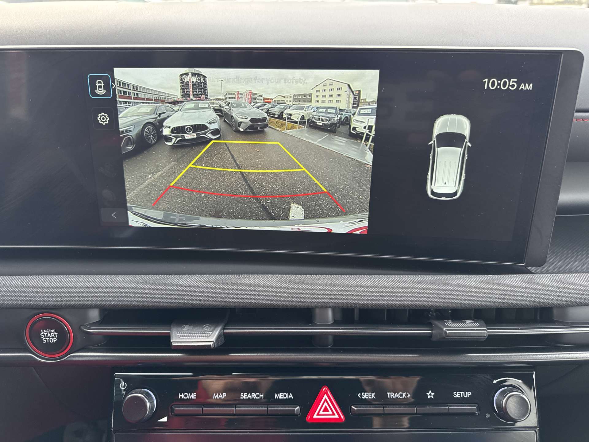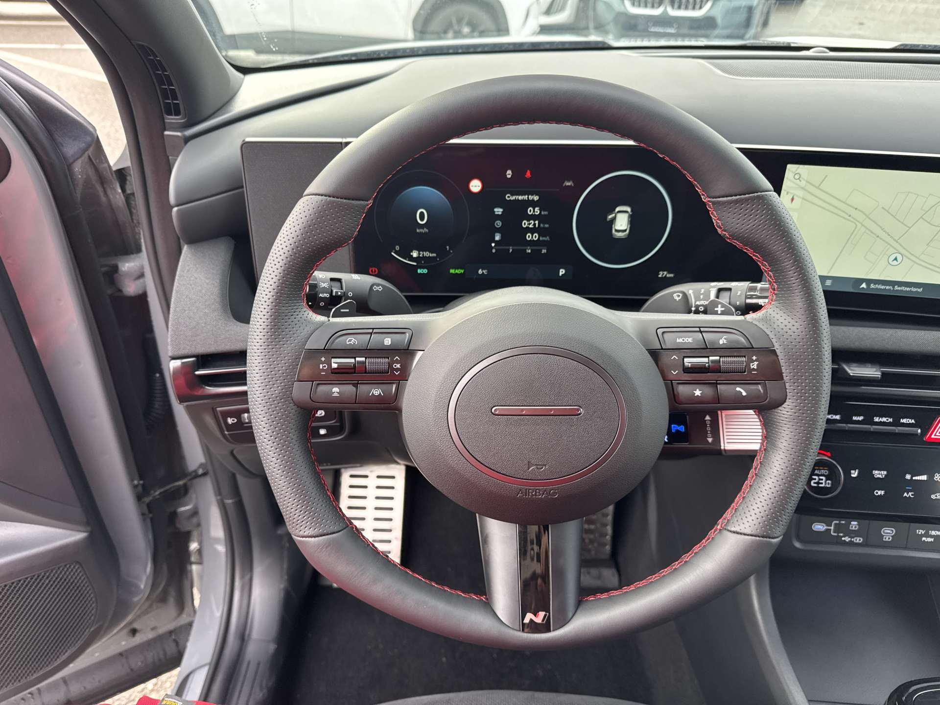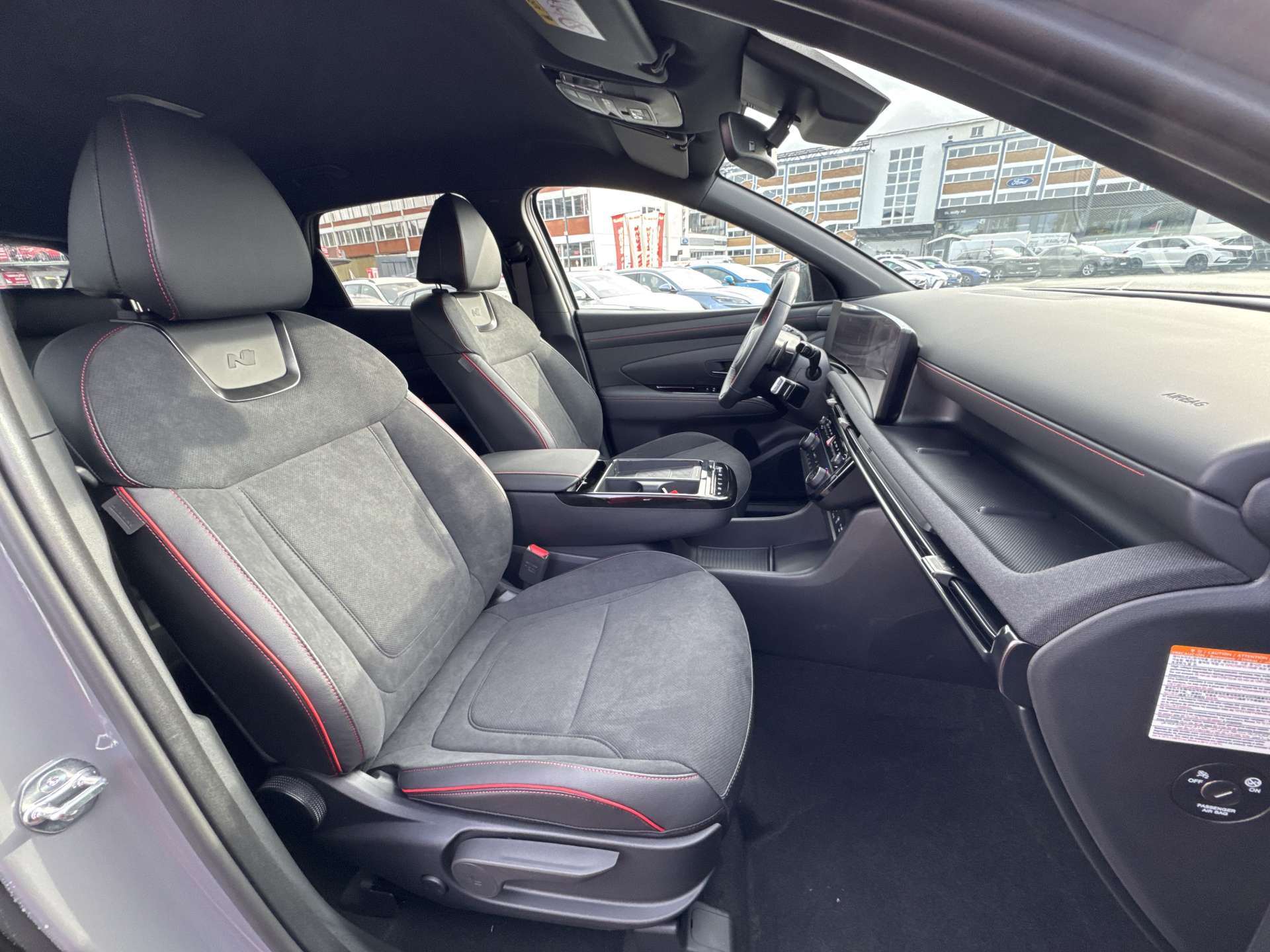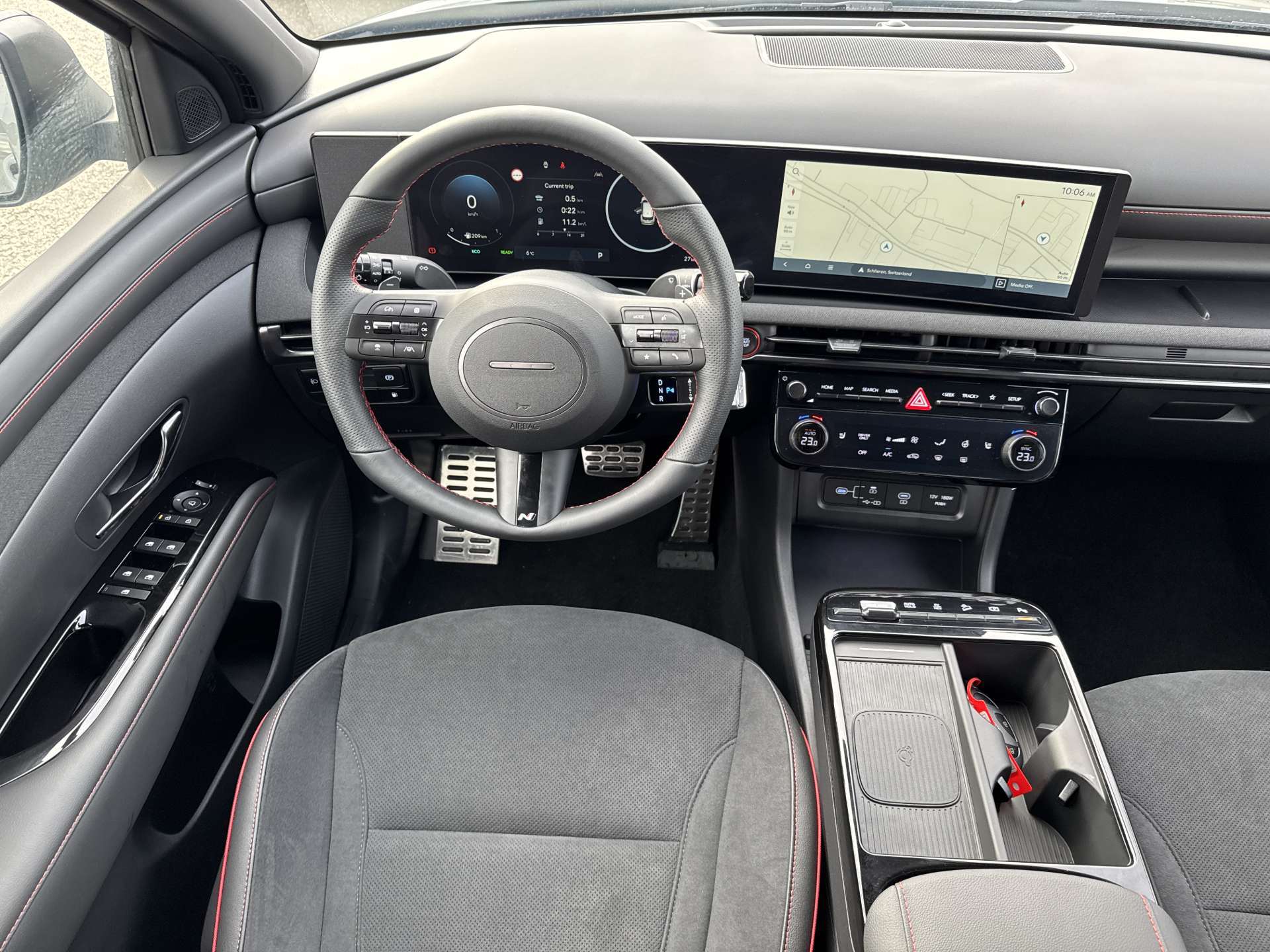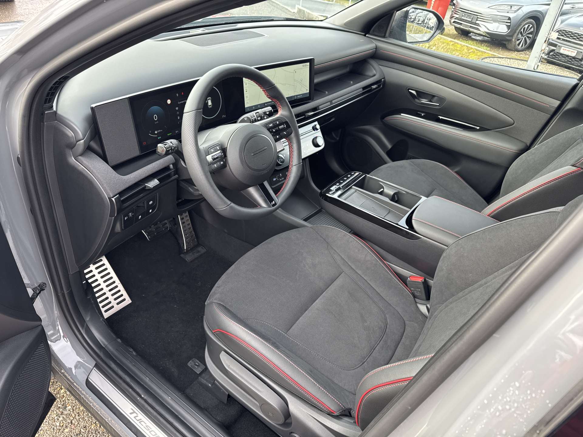 ABS mit elektronischer Bremskraftverteilung EBD, Airbag: Center Airbag vorne, Airbag: Deaktivierung Frontairbag Beifahrerseite, Airbag: Front- und Seitenairbags vorne, Vorhangairbags vorne und hinten, Alarmanlage, Ambientebeleuchtung, Assist: Aktiver Totwinkelassistent, Assist: Anfahralarm Vorderfahrzeug, Assist: Aufmerksamkeitsassistent, Assist: Bergabfahrhilfe (DAC), Assist: Berganfahrhilfe, Assist: Einparkhilfe vorne und hinten, Assist: Elektrische Parkbremse mit Auto-Hold-Funktion, Assist: Elektronische Traktionskontrolle, Assist: Navigationsbasierter adaptiver Tempomat, Assist: Notbremsassistent mit Fussgänger-/Fahrraderkennung und Abbiegefunktion, Assist: Querverkehrswarner hinten mit Bremsassistent, Assist: Rückfahrkamera, Assist: Spurfolgeassistent, Assist: Spurhalteassistent, Assist: Verkehrszeichenerkennung, Assist: Verkehrszeichenerkennung mit automatischer Geschwindigkeitsregelung, Aussenspiegel mit Welcome-Light, Aussentemperaturanzeige, Automatisch abblendender Innenspiegel, Automatisches Notrufsystem eCall, Bordcomputer, Dachreling, Dreipunkt-Sicherheitsgurte auf allen Plätzen, vorne höhenverstellbar, Drive Mode Select (2 Fahrmodi), Elektrisch einklappbare Aussenspiegel, Elektrisch verstell- und beheizbare Aussenspiegel, Elektrische Fensterheber vorne + hinten, Elektronische Gangschaltung (Shift by wire), Elektronisches Stabilitätsprogramm ESP mit Multikollisionsbremse, Fahrtrichtungsanzeiger mit Antippfunktion, Fahrwerk: Terrain Mode Selector, Gepäcknetz, Getriebe: 6-Gang Automatikgetriebe, Insassenalarm, ISOFIX Kindersitzvorrichtung, Klima: 2-Zonen-Klimaautomatik mit Anti-Beschlagsystem, Lackierung: Uni-Lackierung Engine Red, Lenkrad; Lederlenkrad und -schaltknauf, Lenkrad: Audiofernbedienung am Lenkrad, Lenkrad: Lenkrad beheizbar, Lenkrad: Lenkrad vertikal und axial verstellbar, Lenkrad: Lenkrad-Wippschaltung (Paddles), Licht: Fernlichtassistent, Licht: LED Rückleuchten, Licht: LED-Projektionsscheinwerfer, Licht: LED-Tagfahrlicht, Licht: Lichtautomatik, Media: 8 Lautsprecher, Media: Digitalradio DAB+, USB-C Anschlüsse (2 vorne / 2 hinten), Media: Kabellose Android Auto - und Apple CarPlay-Funktion, Media: Kabelloses Laden für Smartphone, Media: MapCare Lifetime / Over-the-Air Update, Media: Multi-Bluetooth mit Freisprecheinrichtung, Media: Navigationssystem mit 12.3"-Farbdisplay, Media: Supervision Armaturentafel mit 12.3" TFT LCD Anzeige, Media: Telematikdienst Bluelink Lite und LIVE Services (10 Jahre gratis), Mittelarmlehne hinten, Mittelarmlehne vorne, Paket: Autobahn- und Stauassistent:, Paket: N Line Paket, Polster: Ledersitze Alcantara, Privacy Glass, abgedunkeltes Scheibenglas hinten (ab B-Säule), Räder: 19'' Leichtmetallfelgen, Räder: Reifendruck-Kontrollsystem High Line, Räder: Reifenreparatur-Set, Regensensor, Schlüsselloses Zugangssystem Smart Key mit Engine Start/Stop-Taste, Servolenkung geschwindigkeitsabhängig, Sicherheitsgurte mit Straffern und Gurtkraftbegrenzern vorne, Sitze: Höhenverstellbarer Beifahrersitz, Sitze: Höhenverstellbarer Fahrersitz, Sitze: Rücksitze getrennt abklappbar (40/20/40), Sitze: Rücksitzlehne verstellbar, Sitze: Sitzheizung vorne, Start-/Stopp-Automatik, UV-absorbierende Scheiben vorne, Zentralverriegelung mit Fernbedienung