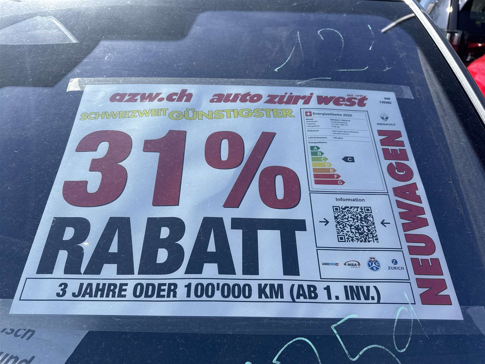 Garantie 3 Jahre oder 100'000 km (ab 1. Inv.)