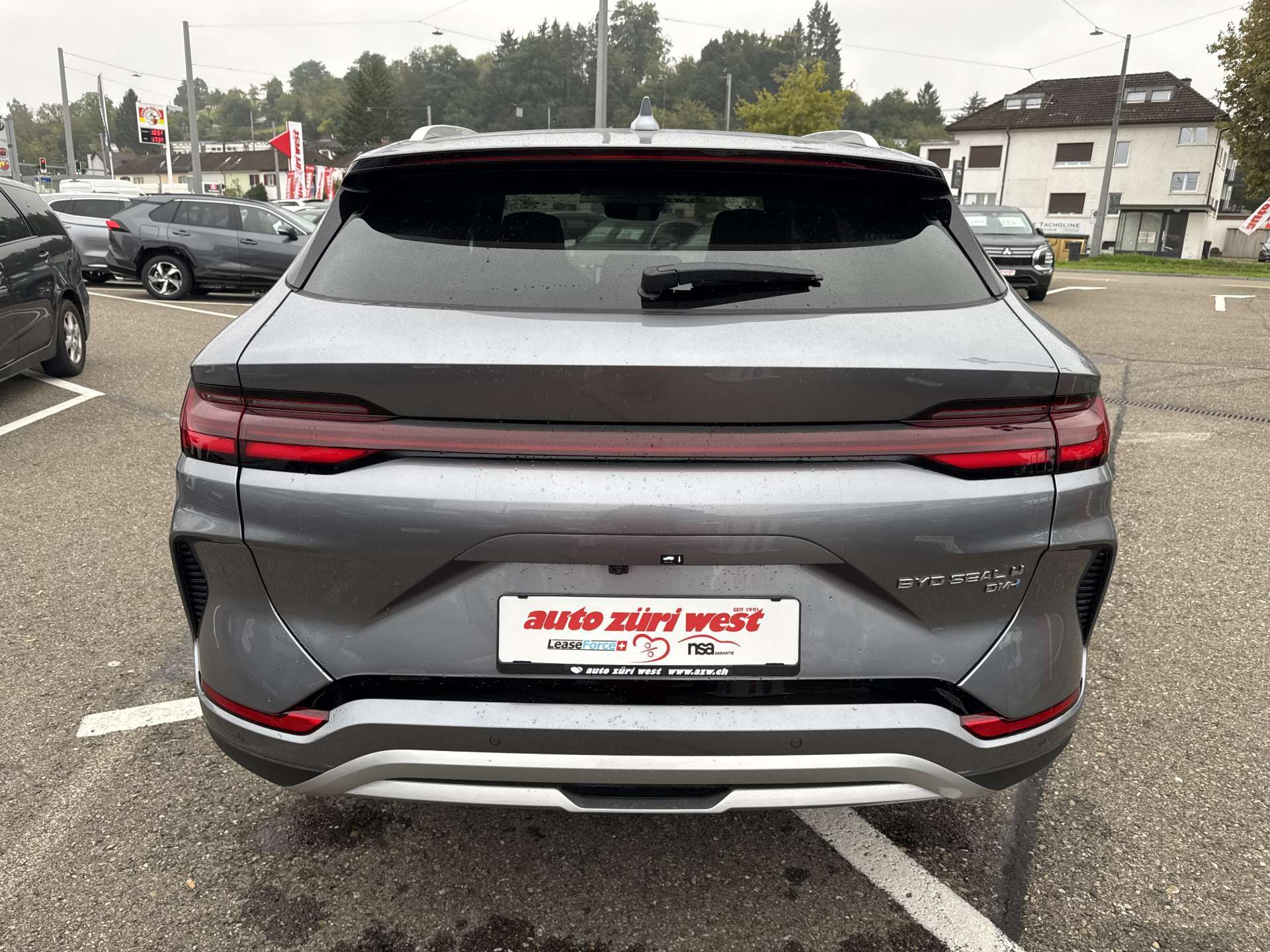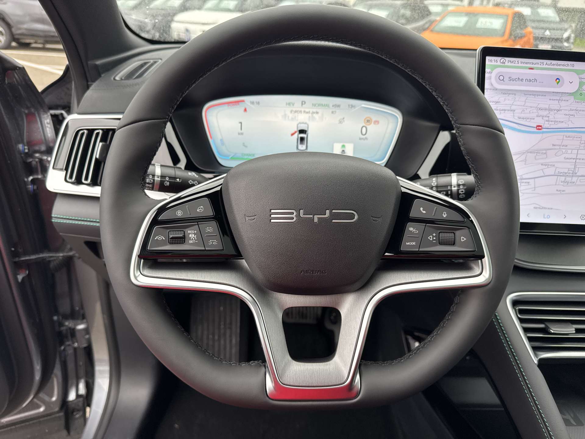 11kW On-Board Charger (OBC), 12-V-Stromanschluss, 2 x Smart Key, 4 x One-Touch-Fensterheber mit Einklemmschutzfunktion, Airbag: Fahrerairbag und Beifahrerairbag, Airbag: Frontairbag in der Mitte, Airbag: Seitenairbags vorn, Airbag: Vorhangairbags, Ambientebeleuchtung, mehrfarbig, Antiblockiersystem (ABS), Armlehne hinten, 2 Getränkehalter, Assist: 360° view camera, Assist: Adaptive Geschwindigkeitsregelung (ACC) & Intelligente Geschwindigkeitsregelung (ICC), Assist: Auto Hold, Assist: Automatische Notbremsung (AEB), Assist: Bergabfahrhilfe (HDC), Assist: Berganfahrassistent (HSA), Assist: Comfort Stop (CST), Assist: Elektrische Parkbremse (EPB), Assist: Heckkollisionswarnung (RCW), Assist: Hydraulischer Bremsassistent (HBA), Assist: Kindererkennung (CPD), Assist: Kontrollierte Verzögerung mit Feststellbremse (CDP), Assist: Müdigkeitserkennung für den Fahrer (DFW) und Aufmerksamkeitswarnung für den Fahrer (DFW), Assist: Parksensoren vorne und hinten, Assist: Querverkehrswarnung hinten (RCTA) & Querverkehrsbremse hinten (RCTB), Assist: Querverkehrswarnung vorn (FCTA) & Querverkehrsbremse vorn (FCTB), Assist: Spurhalteassistent (ELKA), Assist: Spurverlassensverhinderung (LDP), Assist: Spurverlassenswarnung (LDW), Assist: Spurwechselassistent (LCA), Assist: Toter-Winkel-Warnung (BSD), Assist: Traktionskontrolle (TCS), Assist: Überschlagskontrollsystem (RMI), Assist: Verkehrszeichenerkennung (TSR), Assist: Vorwärtskollisionswarnung (FCW), Aussenspiegel elektrisch verstellbar, elektrisch anklappbar, beheizbar, Automatisch abblendender Rückspiegel, Automatisches Verriegelungssystem, Bodenbeleuchtung vorne, Bremsüberbrückungssystem (BOS), Dachreling in Aluminium, Diebstahlsicherung, Dynamische Blinker, Elektrische Heckklappe, Elektronische Bremskraftverteilung (EBD), Elektronische Kindersicherung, ESP (Elektronisches Stabilitätsprogramm), Fahrmodus: Eco, Normal, Sport, Snow, Fahrwerk: Fahrdynamikregelung (VDC), Frontscheibe, Scheibenwischer mit Regensensor, Frontscheibe, UV-Schutz, Wärmedämmung, Schalldämmung, Fussraumbeleuchtung in den Aussenspiegeln, Garantie: Batterie-Garantie 8 Jahre oder 200'000 km, Garantie: Garantie 6 Jahre oder 150'000 km, Gepäckraumleuchte, Getriebe: Direktantrieb, kein Getriebe, Head-up-Display (HUD), ISOFIX und i-Size, Beifahrer- und äussere Rücksitze, Keyless entry & keyless start, Kindersicherung manuell, Klima: Belüftungsdüsen hinten, Kofferraum-Gepäckablage, Kraftbegrenzender Sicherheitsgurt auf dem mittleren Rücksitz, Lackierung: Metallic-Lackierung, LED-Leseleuchten hinten, LED-Leseleuchten vorn, Licht: Fernlichtassistent (HMA), Licht: Follow-me-Home, Licht: LED-Rückleuchten, Licht: LED-Scheinwerfer, automatisches Ein-/Ausschalten, Licht: LED-Tagfahrlicht, Licht: Nebelschlussleuchten, Media: 12,3" TFT-LCD-Instrumententafel, Media: 15,6" elektrisch drehbarer Touchscreen, Media: Android Auto & Apple CarPlay, Media: DAB+ & FM, Media: Infinity-Soundsystem, 10 Lautsprecher, Media: Integrierte 4G-Konnektivität2, Media: Intelligente Sprachsteuerung "Hallo, BYD", Media: Smartphone wireless charging, 2x 15 W, Media: USB-Anschlüsse hinten: 1 x 18W Typ C, 1 x 60 W Typ C, Media: USB-Anschlüsse vorn: 1 x 18W Typ C, 1 x 60 W Typ C, Mehrfarbige LED-Ladeanzeige, Mittelarmlehne hinten, 2 Getränkehalter, Mittelarmlehne vorn, 2 Getränkehalter, Notruf, Panoramadach, elektrisch verstellbares Sonnenschutzrollo, PM2.5 filter, PM2.5-Luftreinigungssystem, Privacy glass in fond, Räder: 19" Bicolor- Leichtmetallfelgen, Reifendruckkontrolle (TPMS), Servolenkung, Sitze: Beifahrersitz belüftet, beheizt, Sitze: Beifahrersitz, elektrisch verstellbar, 4-fach, Sitze: Fahrersitz belüftet, beheizt, gespeicherte Einstellung, Sitze: Fahrersitz und Beifahrer, integrierte Kopfstütze, Sitze: Fahrersitz, elektrisch verstellbar, 8-fach, Positionsspeicher, Sitze: Rücksitze 40:60 geteilt umklappbar, Sitze: Rücksitze, manuell einstellbare Kopfstütze, Türöffnungswarnung (DOW), Vier LED-Türleuchten, Vordersitz-Sonnenblenden mit beleuchtetem Schminkspiegel, Vorgespannte und kraftbegrenzende Sicherheitsgurte vorn, Wärmepumpe