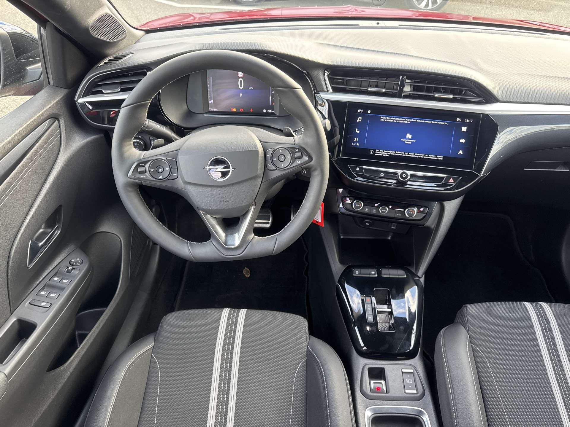 Ablagefächer, Active Aero Shutter (nicht mit 1.2 [55 kW]): Kühlergrill mit aktiv gesteuertem Lufteinlass, Airbag: Airbag Beifahrer deaktivierbar, Airbag: Airbag Fahrer und Beifahrer, Airbag: Seitenairbag für Fahrer und Beifahrer, Airbag: Window-Kopfairbags, Aluminium-Sportpedale, Antiblockiersystem (ABS) mit Kurvenbremskontrolle und Bremsassistent, Assist: Berganfahrhilfe, Assist: Bremsassistent (BAS), Assist: Bremskraftverteilung elektronisch (EBV), Assist: Frontkollisionswarner mit automatischer Gefahrenbremsung, Assist: Fussgängererkennung, Assist: Gefahrenbremsung, Assist: Geschwindigkeitsbegrenzer, automatisch, Assist: Intelligenter Geschwindigkeitsregler und -begrenzer, Assist: Müdigkeitserkennung, Assist: Park-Pilot vorne und hinten, Assist: Rückfahrkamera 130°, Assist: Spurhalte-Assistent, Assist: Toter-Winkel-Warner (BSD), Assist: Traktionskontrolle mit Motor- und Bremseingriff (TCPlus), Assist: Verkehrsschilderkennung, Aussenspiegel elektrisch anklappbar, Aussenspiegel in schwarz, Aussenspiegel rechts und links beheizbar und elektrisch verstellbar, Bordcomputer, Dach in schwarz, Dach-Designlinie, in Schwarz, Dachhimmel schwarz, Dekor: Dekorleisten, Silent Schwarz/Weiss, Drehzahlmesser, Dreipunkt-Sicherheitsgurte auf allen Plätzen,, Elektronischer Bremskraftverteilung EBD, Elektronisches Stabilitäts-Programm ESP, Fahrer-Instrumentendisplay 7", Fensterheber, elektrisch, vorn und hinten, mit Tippfunktion und Einklemmschutz, Fussmatten, Getriebe: 8-Stufen-Automat, Gurtkontrolle, ISOFIX Kindersitzvorrichtung, Katalysator geregelt, Klima: Klimaanlage, Klima: Pollenfilter (Staubfilter), Kopfstützen, höheneinstellbar, vorn und hinten, Lackierung: Uni-Lackierung, Lenkrad: Lenkrad aus veganem Kunstleder, unten abgeflacht, Lenkrad: Lenkrad längs- und höhenverstellbar, Licht: Adaptives Bremslicht, Licht: ECO LED Scheinwerfer inkl. Sichtpaket, Licht: Eco-LED-Scheinwerfer, Licht: LED Heckleuchten, Licht: Umgebungsausleuchtung (Follow me home), Make up-Spiegel links, Make up-Spiegel rechts, Media: Multimedia Radio mit 10"-Touchscreen-Farbdisplay, Mittelkonsole mit Armlehne vorne mit veganem Lederlenkrad, Opel Connect, Paket: Fahrerassistenzsystem BASE, Polster: Sport Stoffsitz, Servolenkung geschwindigkeitsabhängig, Sitze: Beifahrersitz 4-fach manuell verstellbar, Sitze: Kopfstützen, vorn, und 3 Kopfstützen, hinten, höhen- und neigungseinstellbar, Sitze: Rückenlehne im Verhältnis 60:40 geteilt umklappbar, Sitze: Vorrüstung für Kindersitz-Befestigungssystem ISOFIX, Beifahrersitz und hinten aussen, Start/Stop System, Steckdose, 12 Volt, in der Mittelkonsole, Türgriffe aussen in Wagenfarbe, Zentralverriegelung mit Fernbedienung