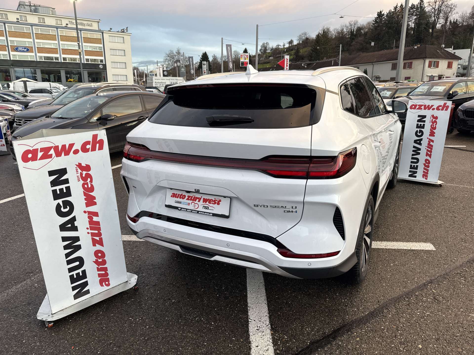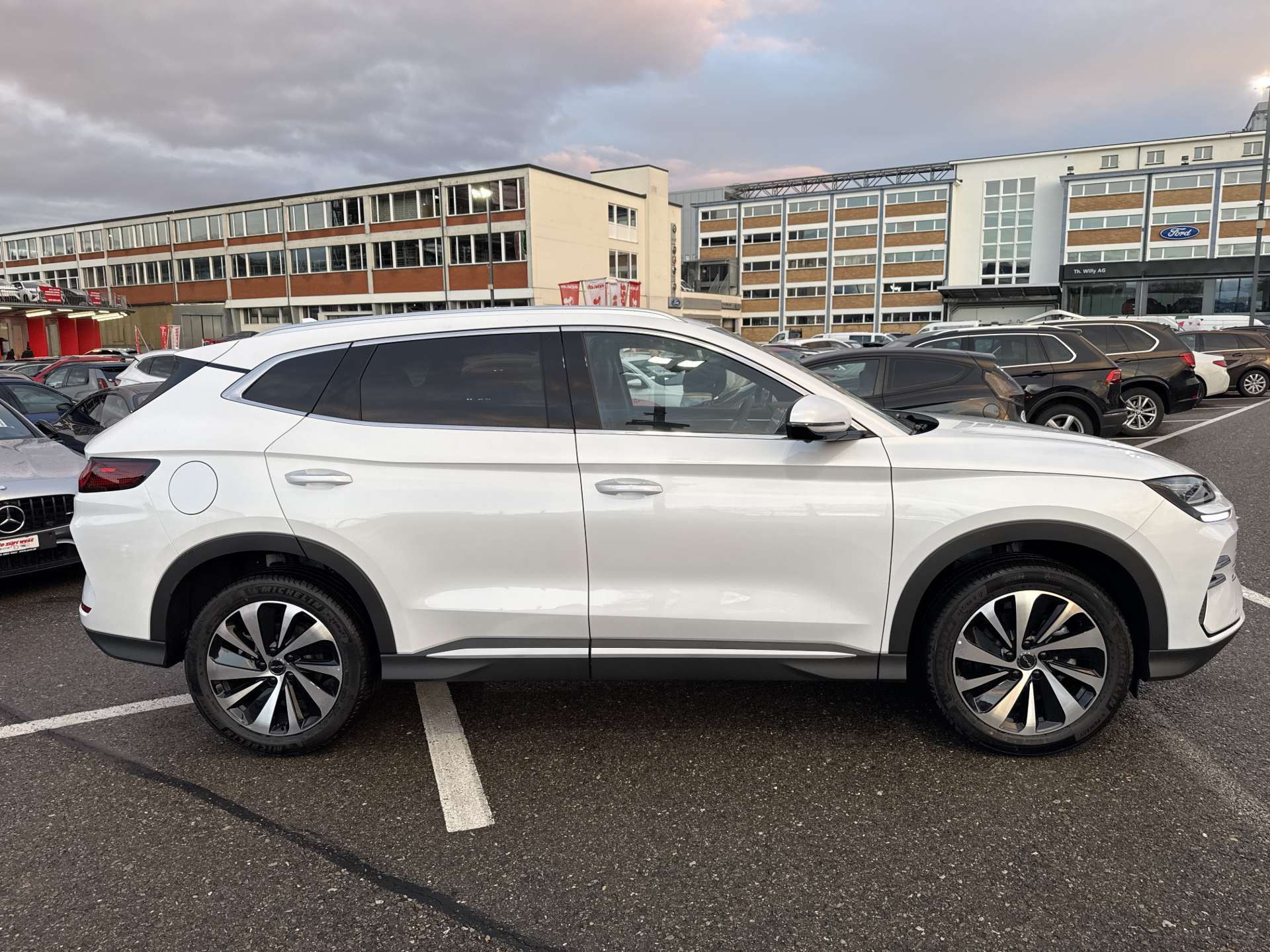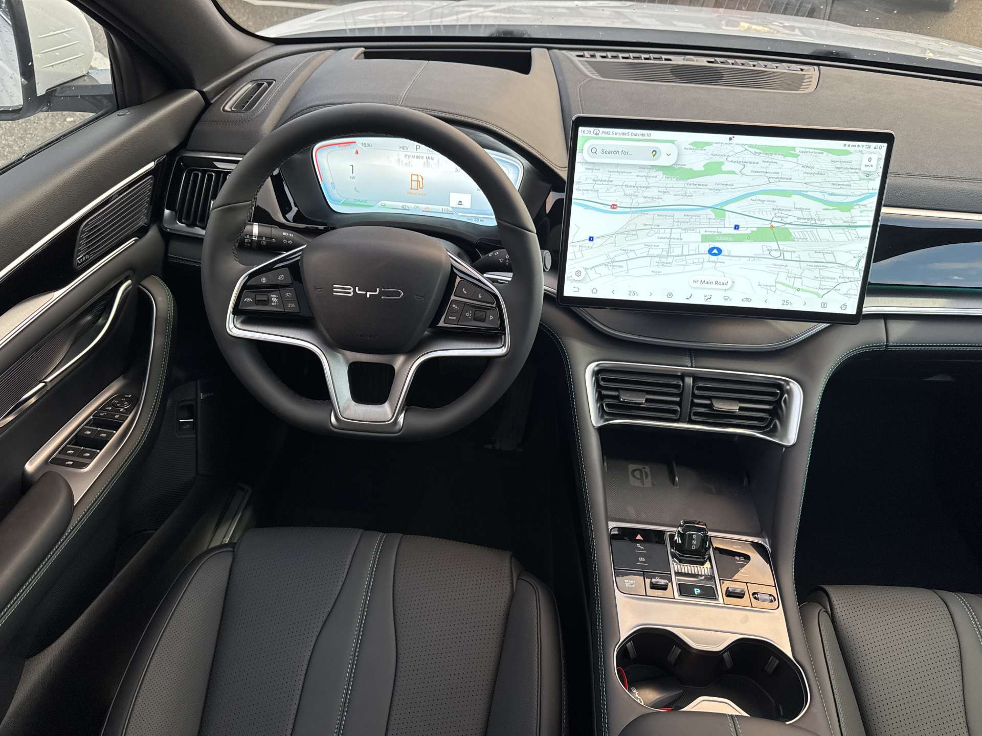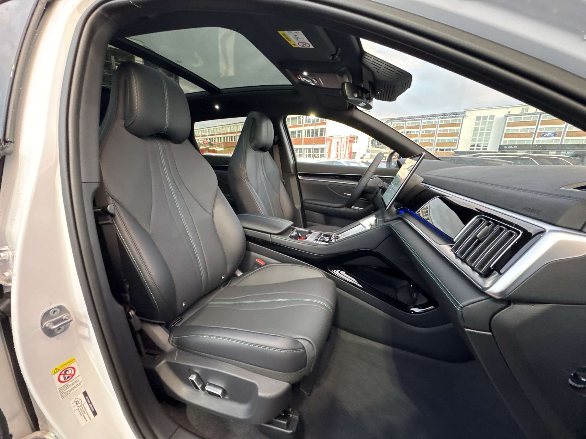 11kW On-Board Charger (OBC), 12-V-Stromanschluss, 2 x Smart Key, 4 x One-Touch-Fensterheber mit Einklemmschutzfunktion, Airbag: Fahrerairbag und Beifahrerairbag, Airbag: Frontairbag in der Mitte, Airbag: Seitenairbags vorn, Airbag: Vorhangairbags, Ambientebeleuchtung, mehrfarbig, Antiblockiersystem (ABS), Armlehne hinten, 2 Getränkehalter, Assist: 360° view camera, Assist: Adaptive Geschwindigkeitsregelung (ACC) & Intelligente Geschwindigkeitsregelung (ICC), Assist: Auto Hold, Assist: Automatische Notbremsung (AEB), Assist: Bergabfahrhilfe (HDC), Assist: Berganfahrassistent (HSA), Assist: Comfort Stop (CST), Assist: Elektrische Parkbremse (EPB), Assist: Heckkollisionswarnung (RCW), Assist: Hydraulischer Bremsassistent (HBA), Assist: Kindererkennung (CPD), Assist: Kontrollierte Verzögerung mit Feststellbremse (CDP), Assist: Müdigkeitserkennung für den Fahrer (DFW) und Aufmerksamkeitswarnung für den Fahrer (DFW), Assist: Parksensoren vorne und hinten, Assist: Querverkehrswarnung hinten (RCTA) & Querverkehrsbremse hinten (RCTB), Assist: Querverkehrswarnung vorn (FCTA) & Querverkehrsbremse vorn (FCTB), Assist: Spurhalteassistent (ELKA), Assist: Spurverlassensverhinderung (LDP), Assist: Spurverlassenswarnung (LDW), Assist: Spurwechselassistent (LCA), Assist: Toter-Winkel-Warnung (BSD), Assist: Traktionskontrolle (TCS), Assist: Überschlagskontrollsystem (RMI), Assist: Verkehrszeichenerkennung (TSR), Assist: Vorwärtskollisionswarnung (FCW), Aussenspiegel elektrisch verstellbar, elektrisch anklappbar, beheizbar, Automatisch abblendender Rückspiegel, Automatisches Verriegelungssystem, Bodenbeleuchtung vorne, Bremsüberbrückungssystem (BOS), Dachreling in Aluminium, Diebstahlsicherung, Dynamische Blinker, Elektrische Heckklappe, Elektronische Bremskraftverteilung (EBD), Elektronische Kindersicherung, ESP (Elektronisches Stabilitätsprogramm), Fahrmodus: Eco, Normal, Sport, Snow, Sand, Muddy, Fahrwerk: Fahrdynamikregelung (VDC), Frontscheibe, Scheibenwischer mit Regensensor, Frontscheibe, UV-Schutz, Wärmedämmung, Schalldämmung, Fussraumbeleuchtung in den Aussenspiegeln, Garantie: Batterie-Garantie 8 Jahre oder 200'000 km, Garantie: Garantie 6 Jahre oder 150'000 km, Gepäckraumleuchte, Getriebe: Direktantrieb, kein Getriebe, Head-up-Display (HUD), ISOFIX und i-Size, Beifahrer- und äussere Rücksitze, Keyless entry & keyless start, Kindersicherung manuell, Klima: Belüftungsdüsen hinten, Kofferraum-Gepäckablage, Kraftbegrenzender Sicherheitsgurt auf dem mittleren Rücksitz, Lackierung: Metallic-Lackierung, LED-Leseleuchten hinten, LED-Leseleuchten vorn, Licht: Fernlichtassistent (HMA), Licht: Follow-me-Home, Licht: LED-Rückleuchten, Licht: LED-Scheinwerfer, automatisches Ein-/Ausschalten, Licht: LED-Tagfahrlicht, Licht: Nebelschlussleuchten, Media: 12,3" TFT-LCD-Instrumententafel, Media: 15,6" elektrisch drehbarer Touchscreen, Media: Android Auto & Apple CarPlay, Media: DAB+ & FM, Media: Infinity-Soundsystem, 10 Lautsprecher, Media: Integrierte 4G-Konnektivität2, Media: Intelligente Sprachsteuerung "Hallo, BYD", Media: Smartphone wireless charging, 2x 15 W, Media: USB-Anschlüsse hinten: 1 x 18W Typ C, 1 x 60 W Typ C, Media: USB-Anschlüsse vorn: 1 x 18W Typ C, 1 x 60 W Typ C, Mehrfarbige LED-Ladeanzeige, Mittelarmlehne hinten, 2 Getränkehalter, Mittelarmlehne vorn, 2 Getränkehalter, Notruf, Panoramadach, elektrisch verstellbares Sonnenschutzrollo, PM2.5 filter, PM2.5-Luftreinigungssystem, Privacy glass in fond, Räder: 19" Bicolor- Leichtmetallfelgen, Reifendruckkontrolle (TPMS), Servolenkung, Sitze: Beifahrersitz belüftet, beheizt, Sitze: Beifahrersitz, elektrisch verstellbar, 4-fach, Sitze: Fahrersitz belüftet, beheizt, gespeicherte Einstellung, Sitze: Fahrersitz und Beifahrer, integrierte Kopfstütze, Sitze: Fahrersitz, elektrisch verstellbar, 8-fach, Positionsspeicher, Sitze: Rücksitze 40:60 geteilt umklappbar, Sitze: Rücksitze, manuell einstellbare Kopfstütze, Türöffnungswarnung (DOW), Vier LED-Türleuchten, Vordersitz-Sonnenblenden mit beleuchtetem Schminkspiegel, Vorgespannte und kraftbegrenzende Sicherheitsgurte vorn, Wärmepumpe