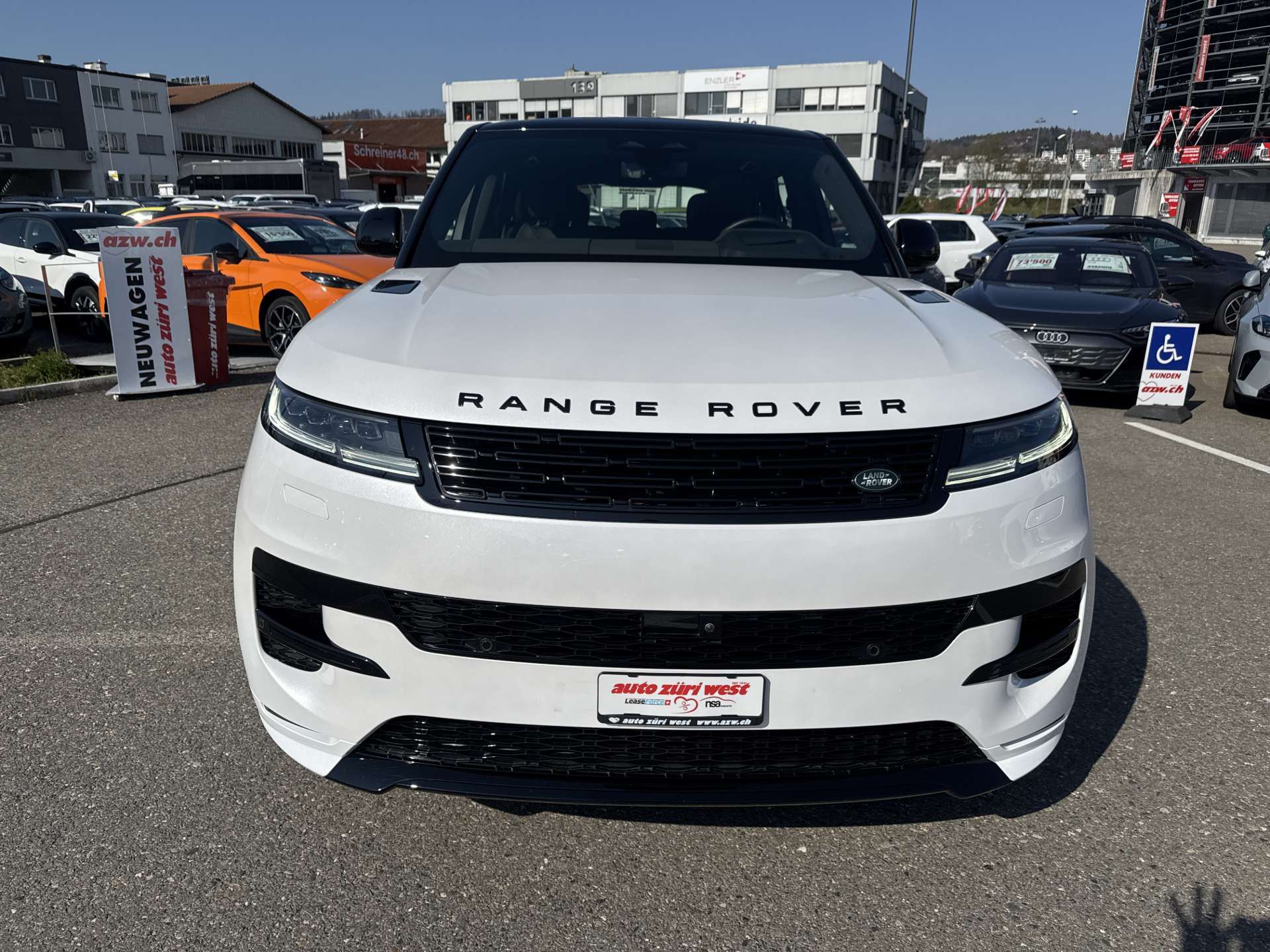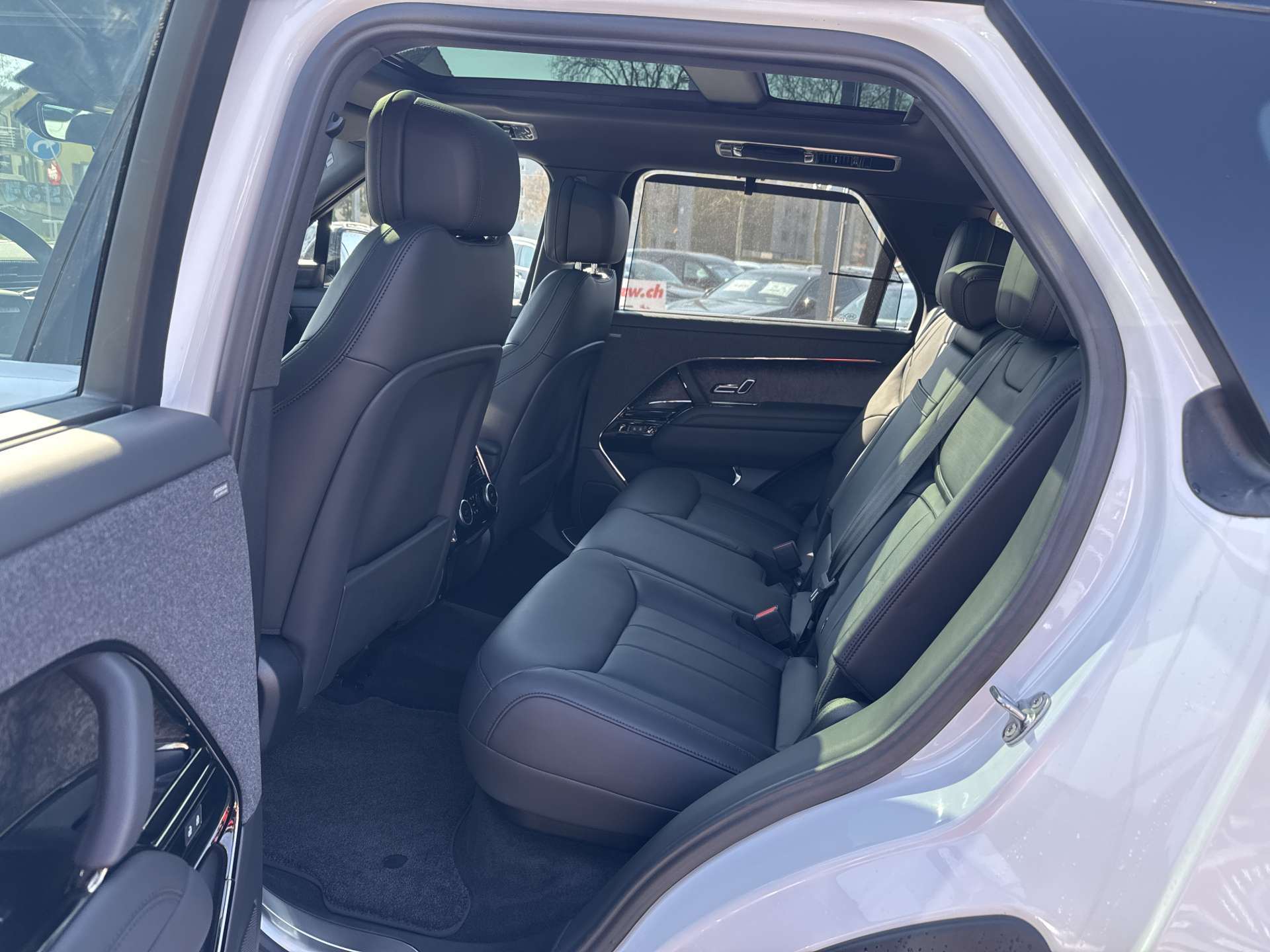 3-Punkt-Sicherheitsgurte auf allen Plätzen, Ablagefächer in Türen, vorne, Abschleppöse vorn und hinten, Airbag: Airbag Fahrer und Beifahrer, Airbag: Seitenairbag für Fahrer und Beifahrer, Airbag: Window-Kopfairbags, Alarmanlage, perimetrisch, Anhänger Stabilisierungkontrolle TSA, Antiblockiersystem (ABS), Assist: 3D-Surround-Kamerasystem (inkl. Wade Sensing), Assist: Adaptive Geschwindigkeitsregelung (Adaptive Cruise Control, ACC), Assist: Aufmerksamkeitsassistent mit Active Stop (Notfallbremsassistent), Assist: Autonomer Notfall-Bremsassistent, Assist: Bergabfahrhilfe (Hill Descent Control, HDC), Assist: Berganfahrhilfe (Hill Holder), Assist: Einparkhilfe vorne und hinten, Assist: Elektronische Parkbremse, Assist: Elektronische Traktionskontrolle, Assist: Elektronischer Bremskraftverteilung EBD, Assist: Insassenschutzassistent, Assist: Kollisionswarnsystem bei Rückwärtsfahren, Assist: Kollisionswarnsystem hinten, Assist: Spurhalteassistent, Assist: Toter-Winkel-Spurassistent inkl.Annäherungssensor, Assist: Verkehrszeichenerkennung mit adaptivem Geschwindigkeitsbegrenzer, Außenspiegel, elektrisch einklapp-, verstell- und beheizbar, mit Memory-Funktion,, Befestigungssystem im Gepäckraum, Bremssättel, unlackiert, CCS-Anschluss für DC-Laden (Gleichstromladen), Dachhimmel in Textil - Ebony, Dekor: Dekorelemente in fein gebürstetem Aluminium, Dynamische Stabilitätskontrolle (Dynamic Stability Control, DSC), Edelstahl-Ladekantenschutz, Einstiegsleisten vorne aus Aluminium mit Range Rover Schriftzug, beleuchtet, Elektrische Heckklappe, Entfall Modell- und Motorenschriftzug, Fahrwerk: Adaptive Dynamics (Adaptives Fahrwerk), Fahrwerk: All Terrain Progress Control (ATPC), Fahrwerk: Allradantrieb, Fahrwerk: Differenzial mit Torque Vectoring by Braking (TVBB), Fahrwerk: Dynamische Luftfederung, Fensterheber, elektrisch, mit One-Touch-Funktion und Einklemmschutz, Fussmatten, Getränkehalter vorne und hinten, Getriebe: 8-Stufen-Automat sequentiell, Getriebe: Verteilergetriebe zweistufig (Strassen-/Geländeuntersetzung), Gurtstraffer vorne, Haltegriffe 2 vorne und 2 hinten, Heckscheiben-Wisch-/Waschanlage, Heckscheibenheizung, Innenrückspiegel mit Abblendautomatik, Keyless Entry, Kindersicherung, elektrisch, Klima: 2-Zonen-Klimaautomatik, Klima: Luftqualitätssensor, Kopfstützen vorne und hinten, Lackierung: Dach in Wagenfarbe, Lackierung: Uni-Lackierung, Ladekabel für öffentliche Ladestationen, Laderaumabdeckung, Laderaumbeleuchtung, Laderaumtrennnetz, Lenkrad: Lenksäule, elektrisch verstellbar, Lenkrad: Multifunktions-Lederlenkrad mit Einfassung in Moonlight, Lenkrad: Schaltwippen in mattiertem Chrom, Licht: Ambiente-Innenraumbeleuchtung, Licht: Automatische Leuchtweitenregulierung, Licht: Begrüßungslicht, Licht: Blinker, hinten animiert, Licht: Drittes Bremslicht, Licht: Innenraumbeleuchtung, Licht: LED Heckleuchten, Licht: Nebelschlussleuchte, Licht: Pixel LED Scheinwerfer mit LED-Signatur, Media: 13,1" Touchscreen, Media: 13,7" TFT-Instrumentendisplay, Media: AUX-Anschluss, Media: Bluetooth-fähiges Telefonsystem, Media: Digitales Radio (DAB+), Media: Kabelloses Android Auto, Media: Kabelloses Apple CarPlay, Media: Kabelloses Aufladen für Smartphones, Media: Meridian Soundsystem, Media: Online-Paket mit Datentarif, Media: Pivi Pro, Media: Remote, Media: Sprachsteuerung, Media: USB-Anschluss, Metalldach, Mittelarmlehne hinten, Mittelkonsole mit Armlehne, Paket: Erweitertes Lederpaket, Polster: Sitze in perforiertem Windsor-Leder in Ebony mit Interieur in Ebony, Räder: Reifendruckkontrollsystem (Tyre Pressure Monitoring System, TPMS), Regensensor für Scheibenwischer vorne, Scheinwerfer-Waschanlage, Seitenscheiben vorne und hinten aus gehärtetem Glas, Servolenkung geschwindigkeitsabhängig, Sitze: ISOFIX Kindersitzvorrichtung, Sitze: Rückbank, im Verhältnis 60:40 teilbar, Sitze: Vordersitze, 20-fach verstellbar, beheizbar, mit Memory-Funktion, Rücksitze beheizbar,, Sonnenblenden mit beleuchteten Schminkspiegeln, Sportliche Edelstahlpedalerie, Start-/Stop-Knopf, Stopp-/Start-System, Türen: Automatische Türverriegelung und Entriegelung bei Kollision, Türgriffe aussen in Wagenfarbe, Typ2-Anschluss für AC-Laden (Wechselstromladen), Wegfahrsperre elektronisch, Zentralverriegelung mit Fernbedienung