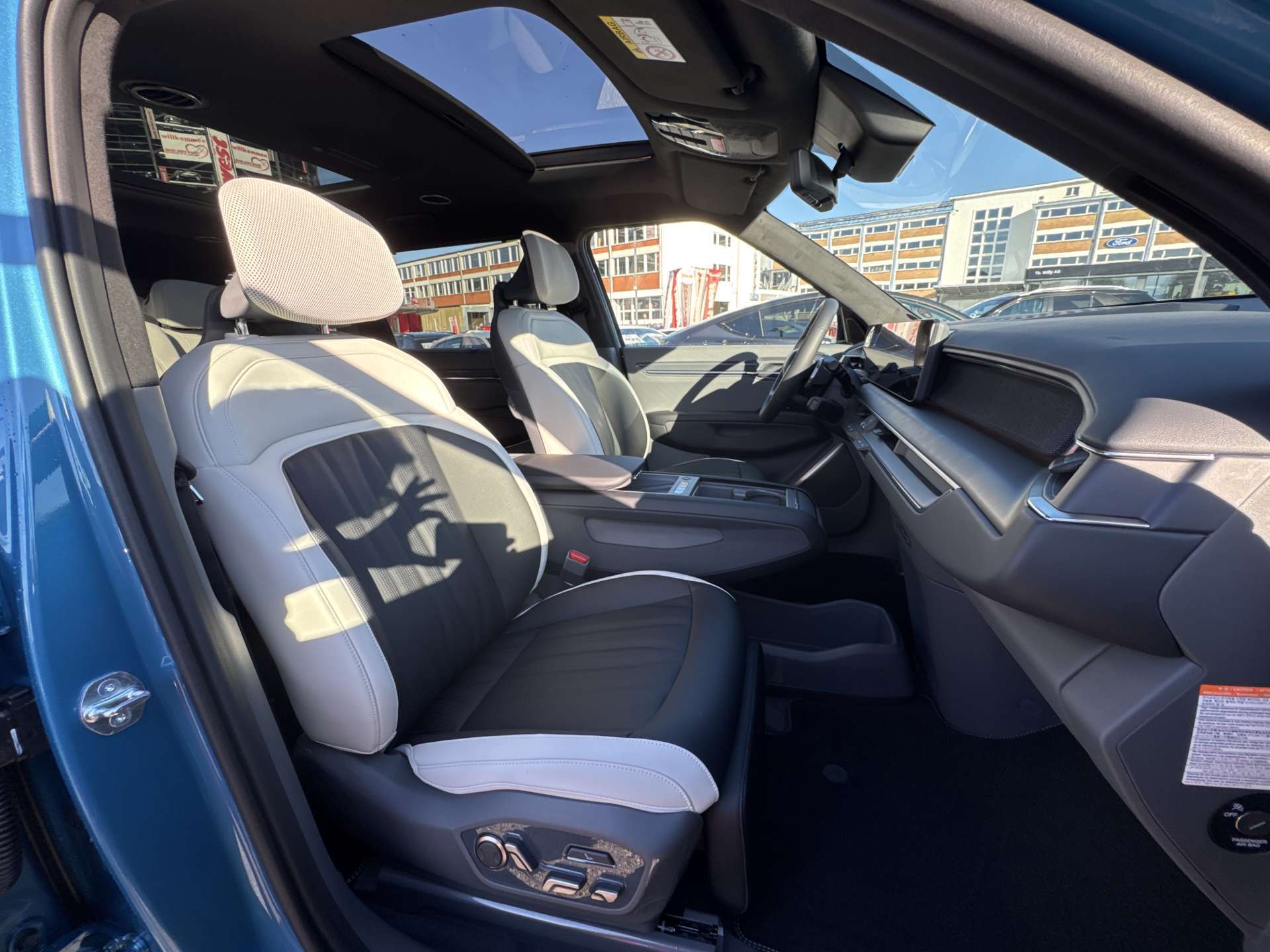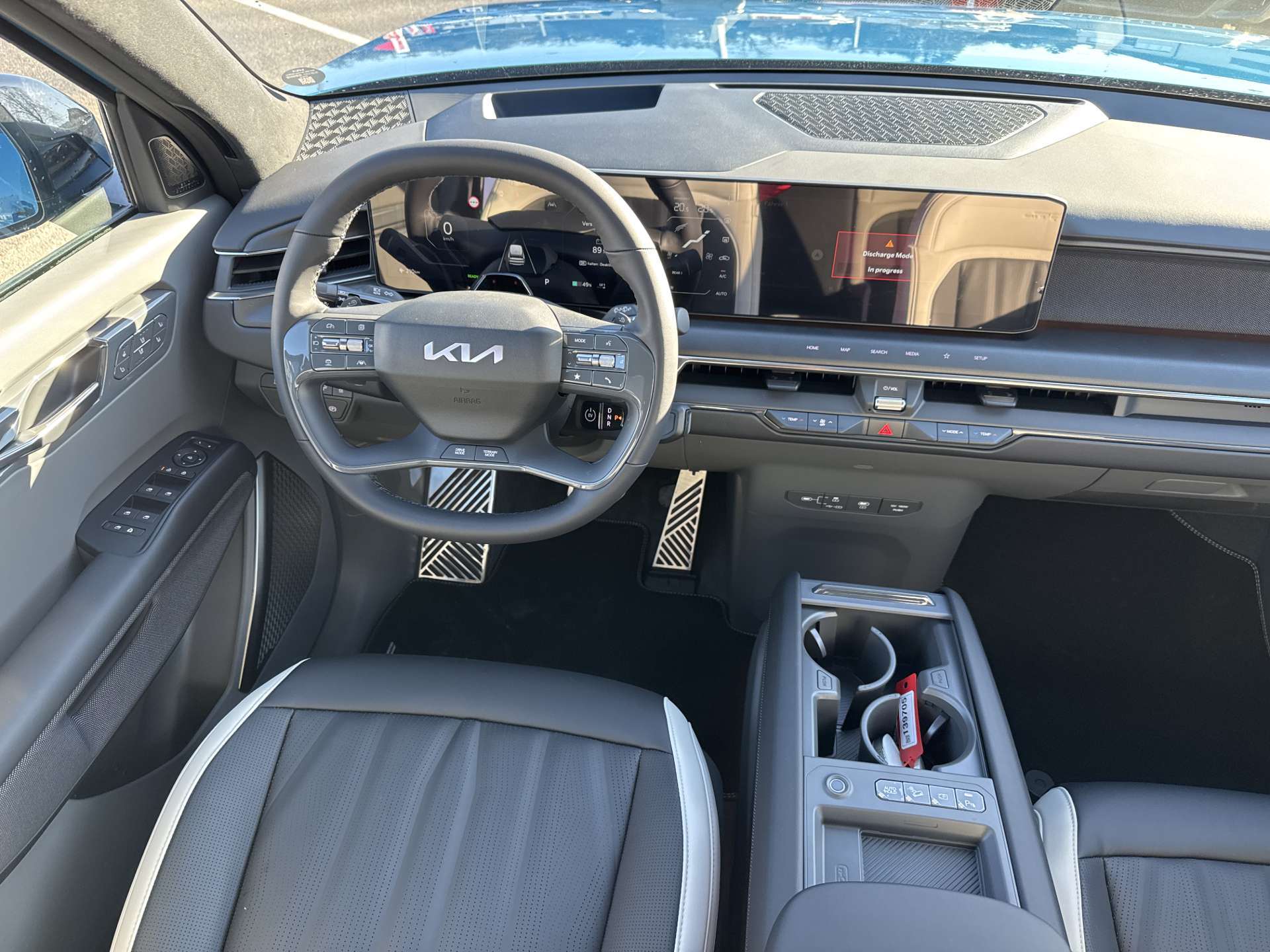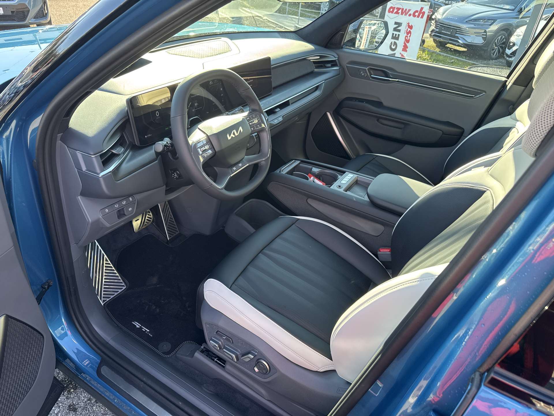Abdunkelungsrollos hinten, Airbag: Airbag Fahrer und Beifahrer, Beifahrerairbag abschaltbar, Airbag: Kopfairbags (Vorhang) vorn und hinten, Airbag: Seitenairbags vorn und hinten, Airbag: Zentralairbag vorne, Aluminium Sportpedale, Ambientebeleuchtung, Anhänger-Stabilitäts-Assistent (TSA), Antiblockiersystem (ABS), Assist: 360° Monitor Rundumsichtkamera mit 3D Darstellung (SVM), Assist: Autobahnassistent (HDA 3.0), Assist: Autonomer Notbremsassistent mit, Assist: Autonomer Notbremsassistent mit Abbiege- und Kreuzungserkennung (FCA-JX), Assist: Berganfahrassistent (HAC), Assist: e-Call automatisches Notrufsystem, Assist: Ferngesteuerter Parkassistent (RSPA 2.0), Assist: Inteligenter Geschwindigkeitsassistent (ISLA), Assist: Kamera zur Überwachung des Fahrerzustandes mit Fahrerwarnung (ICC-D), Assist: Kollisionsvermeidungsassistent vorne/hinten/seitlich (PCA), Assist: Multikollisionsbremse, Assist: Parksensoren hinten, Assist: Parksensoren seitlich, Assist: Parksensoren vorn, Assist: Rückfahrkamera, Assist: Spurhalteassistent mit Müdigkeitserkennung (LKA), Assist: Tempomat mit Distanzassistent, Assist: Totwinkel-Assistent, Assist: Totwinkelassistent mit Monitoranzeige (BVM) und Kollisionsverhinderung hinten (RCCA), Aussenspiegel elektrisch verstell-, beheiz- und einklappbar, Aussenspiegel in Schwarz, Batterieheizung, Dachhimmel in Wildleder schwarz, Dachreling schwarz, Digital Key 2.0, Digitaler Innenrückspiegel (ECM), Drive Mode Select, Elektrische Handbremse, Elektronisches Stabilitätsprogramm (ESC) / elektronische Traktionskontrolle (TCS), Fensterheber elektrisch vorn und hinten, Fingerabdruckerkennung für Fahrzeugstart/Zuordnung Fahrerprofil, Frunk (zusätzlicher Stauraum vorne) mit Beleuchtung, Gepäckraumbeleuchtung, Getriebe: Direktantrieb, kein Getriebe, Head-Up Display, Heckklappe elektrisch, Innenrückspiegel automatisch abblendbar, ISOFIX-Kindersitzverankerung 2. und 3. Sitzreihe, Kindersicherung elektrisch, Klima: 3-Zonen-Klimaautomatik, Lackierung: Metallic-Lackierung Flare Red, Ladekabel Mode 3 (7.5 m, Typ 2 auf Typ 2), Lenkrad: Lederlenkrad, Lenkrad: Lenkrad elektrisch höhen- und tiefenverstellbar, inkl. Memoryfunktion, Lenkrad: Lenkrad mit beleuchtetem Kia Logo, Lenkrad: Lenkradheizung, Lenkrad: Schaltwippen, Licht: Bi-LED-Scheinwerfer (Intelligentes Scheinwerfer System), Licht: LED-Rückleuchten, Lichtsensor, Media: 12.3"-Navigationssystem, DAB+, Media: 14 Lautsprecher, Media: Android Auto und Apple CarPlay, Media: Bluetooth Freisprecheinrichtung mit Sprachsteuerung, Media: Connected Car Navigation Cockpit - Triple Panoramic Display (Total 29.6"), Media: Induktive Ladestation für Smartphone, Media: Meridian Sound System, Media: Online-Dienste Kia Connect inkl. 7 Jahre, Media: OTA - Over the Air Software Aktualisierung, Media: USB-Anschlüsse, Mittelarmlehne mit Stauraum, Niveauregulierung hinten, Polster: Sitzbezüge Bio-Polyurethan (PU) Dark Gray/Black/Off-White mit GT-Line Logo, Privacy-Verglasung, Räder: 21" Leichtmetallräder, Räder: Reifendruckkontrollsystem (TPMS), Räder: Tire mobility kit, Radläufe in Schwarz, Regensensor, Servolenkung, Sitze: 3. Sitzreihe elektrisch umklappbar, Sitze: 3. Sitzreihe: umklappbare Sitzlehne, 50:50, Sitze: Fahrer- und Beifahrersitz elektrisch verstellbar, Sitze: Fahrer- und Beifahrersitz mit Lendenwirbelstütze, Sitze: Fahrer- und Beifahrersitz mit Relax-Funktion, Sitze: Fahrersitz mit Massage- und Memoryfunktion, Sitze: Sitzbelüftung hinten (zweite Reihe), Sitze: Sitzbelüftung vorne, Sitze: Sitzheizung hinten (zweite Reihe), Sitze: Sitzheizung vorne, Sitze: Sitzlehne der 2. Sitzreihe umklappbar, asymmetrisch 60:40, Solarglas (Frontscheibe und Seitenscheiben vorne), Sonnenblenden mit beleuchtetem Make-up-Spiegel, Startknopf mit Smart Key, Türen: Türgriffe mit automatischem Einzug, Vehicle-to-Load-Funktion (V2L), Vorbereitung Anhängerkupplung, Wärmepumpe, Zentralverriegelung