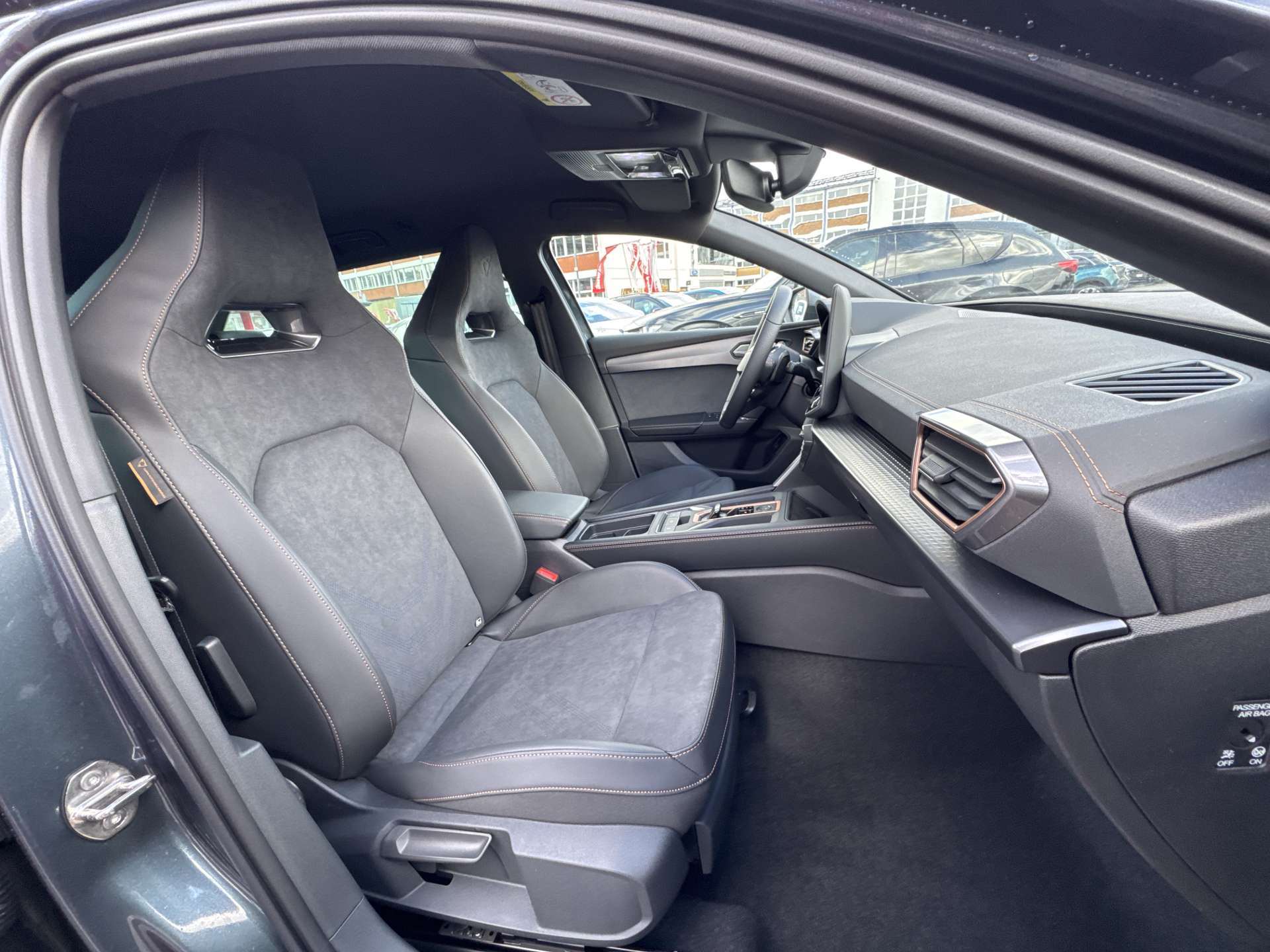 Abgedunkelte Scheiben ab B-Säule hinten, ABS, EBV elektronische Bremskraft-verteilung, Airbag: Airbag Beifahrer deaktivierbar, Airbag: Airbag Fahrer und Beifahrer, Airbag: Seitenairbags vorne mit Kopfairbag und Interaktionsairbag vorne, Alarmanlage mit Innenraumüberwachung, Allradantrieb permanent, Assist: Aufmerksamkeits- und Müdigkeitserkennung (ADA), Assist: Ausweichunterstützung / Abbiegeassistent, Assist: Automatische Distanzregelung ACC, Assist: Einparkhilfe vorne und hinten, Assist: Elektronische Parkbremse mit Auto Hold Funktion, Assist: Lane assist (Spurhalteassistent), Assist: Multifunktionskamera, Assist: Multikollisionsbremse, Assist: Prädiktive Speedlimiter, Assist: Regen-/Lichtsensor, Assist: Rückfahrkamera, Assist: Tempomat, Assist: Traction Control (TCS), Assist: Traffic sign recognition (Verkehrszeichenerkennung), Aussenspiegel elektrisch einstell-, beheiz- und einklappbar mit Memory -Funktion, CUPRA Drive Profile mit "driving experience button" Comfort, Performance, Drift, Individual, Dachhimmel Schwarz, Dekor: Dekorblenden in Copper, Dekor: Dinamica Ambiente, Dreipunkt-Automatiksicherheitsgurte auf allen Plätzen, Elektrische Fensterheber vorne und hinten mit Komfortschaltung und Einklemmschutz, ESC mit EBA, DSR und Reifendruckkontrolle, Fahrwerk: Adaptive Fahrwerksregelung DCC, Full Digital Cockpit, Fussmatten vorne und hinten, Getriebe: 7-Gang DSG, Heckklappe elektrisch öffnend "Virtual Pedal", Heckscheiben-Wisch-/Waschanlage mit Intervall, Innenspiegel automatisch abblendbar, Klima: 3-Zonen Climatronic mit Fondraumbedienung, Lackierung: Uni-Lackierung, LED-Innenraumbeleuchtung mit Ambientebeleuchtung Smart Wraparound "Multicolor", Lenkrad: Supersportlenkrad mit Start-/ Drive Profile-Knopfsystem und Schaltwippen, beheizbar, Licht: Coming Leaving Home Funktion, Licht: Drittes Bremslicht, Licht: Durchgehende Full LED-Heckleuchten, Licht: Dynamische LED-Blinker, Licht: Fernlicht-Assistent, Licht: LED Heckleuchten mit beleuchtetem 3D CUPRA Logo, Licht: LED-Nebelscheinwerfer mit Cornering-Funktion, Licht: LED-Scheinwerfer für Abblend- und Fernlicht, Licht: LED-Tagfahrlicht, Licht: Leuchtweitenregulierung, Licht: Nebelschlussleuchte, Media: 12,9" Infotainment (MIB3), Media: 2 USB C Anschlüsse hinten und vorne, Media: 6 Lautsprecher, Media: CUPRA Connect Remote & Access, Media: CUPRA Connect Safety & Services, Media: CUPRA Connectivity Box, Media: CUPRA FullLink, Media: DAB+ (Digital Audio Broadcasting), Media: Mobiltelefon Freisprechanlage Bluetooth, Media: Sprachsteuerung, Netztrennwand, Paket: DYNAMIC DESIGN, Paket: EDGE, Pyrotechnische Gurtstraffer und Gurtkraftbegrenzer vorne, Räder: Alufelgen 8J x 19", "POLAR" Machined in Sport Black Silver, Räder: Reifenreparatur-Set (Tire Fit), Schlüsselloses Schliess- und Startsystem (KESSY Advance), Servolenkung mit geschwindigkeitsabhängiger Lenkkraftunterstützung, Sicherheitsgurtkontrolle für alle Sitze, Sitze: 2 verstellbare Kopfstützen vorne und 3 hinten, Sitze: CUPRA Sport Schalensitze in Dinamica "Black/Blue", Sitze: Fahrer- und Beifahrersitz mit Lendenwirbelstütze, Sitze: Fahrersitz elektrisch einstellbar mit Memory-Funktion, Sitze: Geteilt abklappbare Rücksitzlehne 1/3 - 2/3, Sitze: Kindersitzverankerung ISOFIX hinten, Sitze: Kopfstützen vorne (integrierte), Sitze: Lendenwirbelstütze Fahrerseite elektrisch einstellbar, Sitze: Lendenwirbelstütze in den Vordersitzlehnen, Sitze: Mittelarmlehne hinten, Sitze: Mittelarmlehne vorne, Sitze: Sitzheizung für Vordersitze, getrennt regelbar, Sonnenblende Fahrer und Beifahrerseite, Stopp - Start- und Rekuperationssystem, Variabler Ladeboden, Vollverzinkte Karosserie, Wärmeschutzverglasung, Wegfahrsperre elektronisch, Zentralverriegelung mit Funkfernbedienung, 2 Funkschlüssel