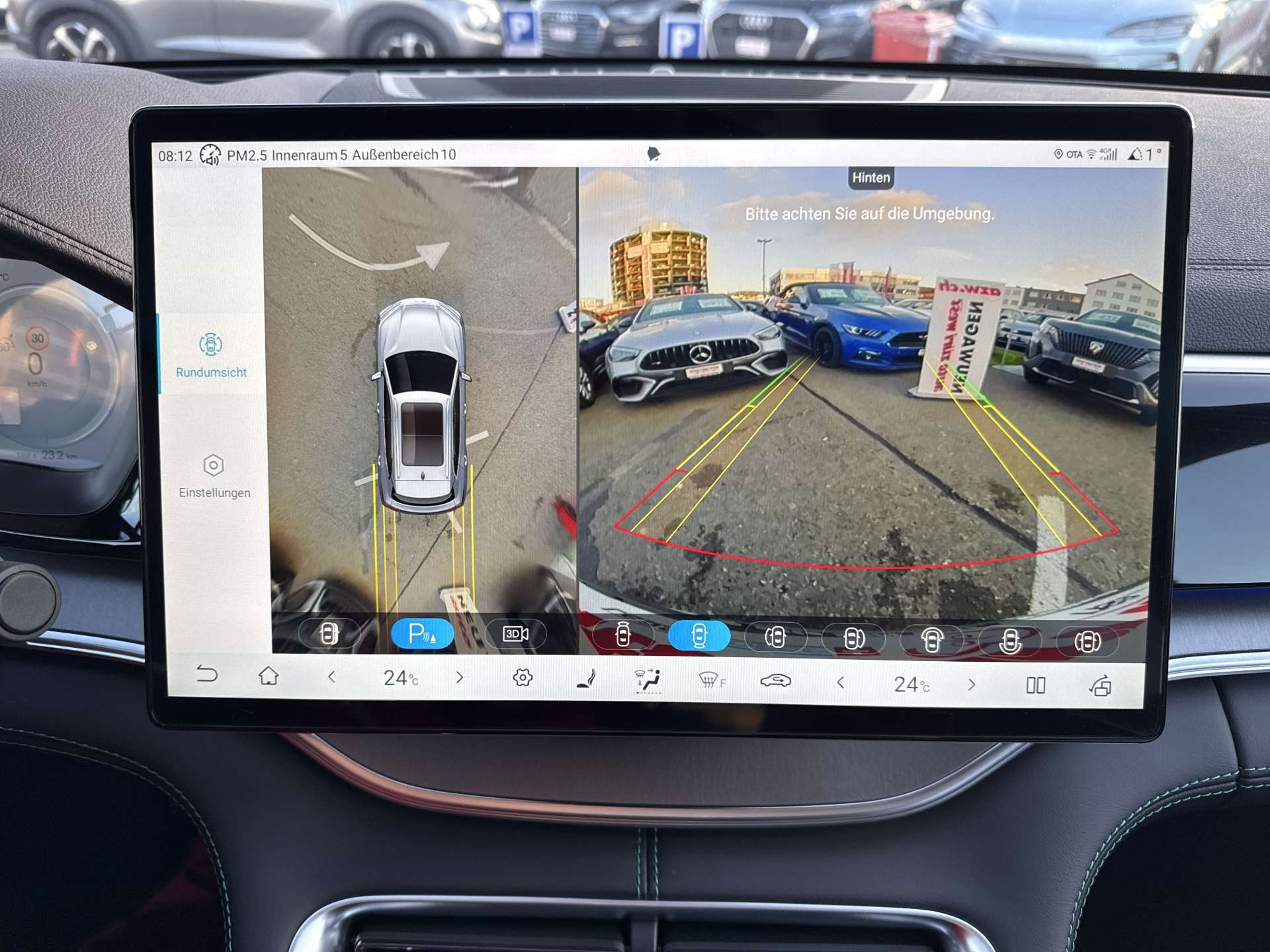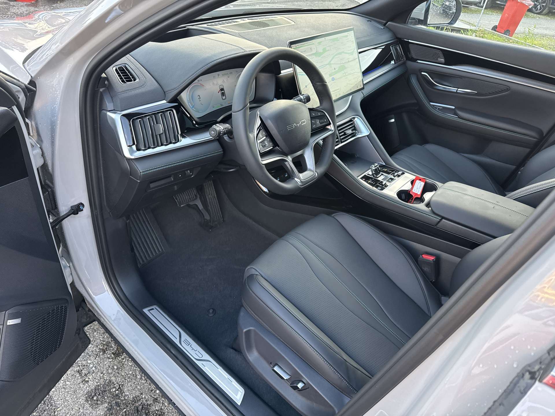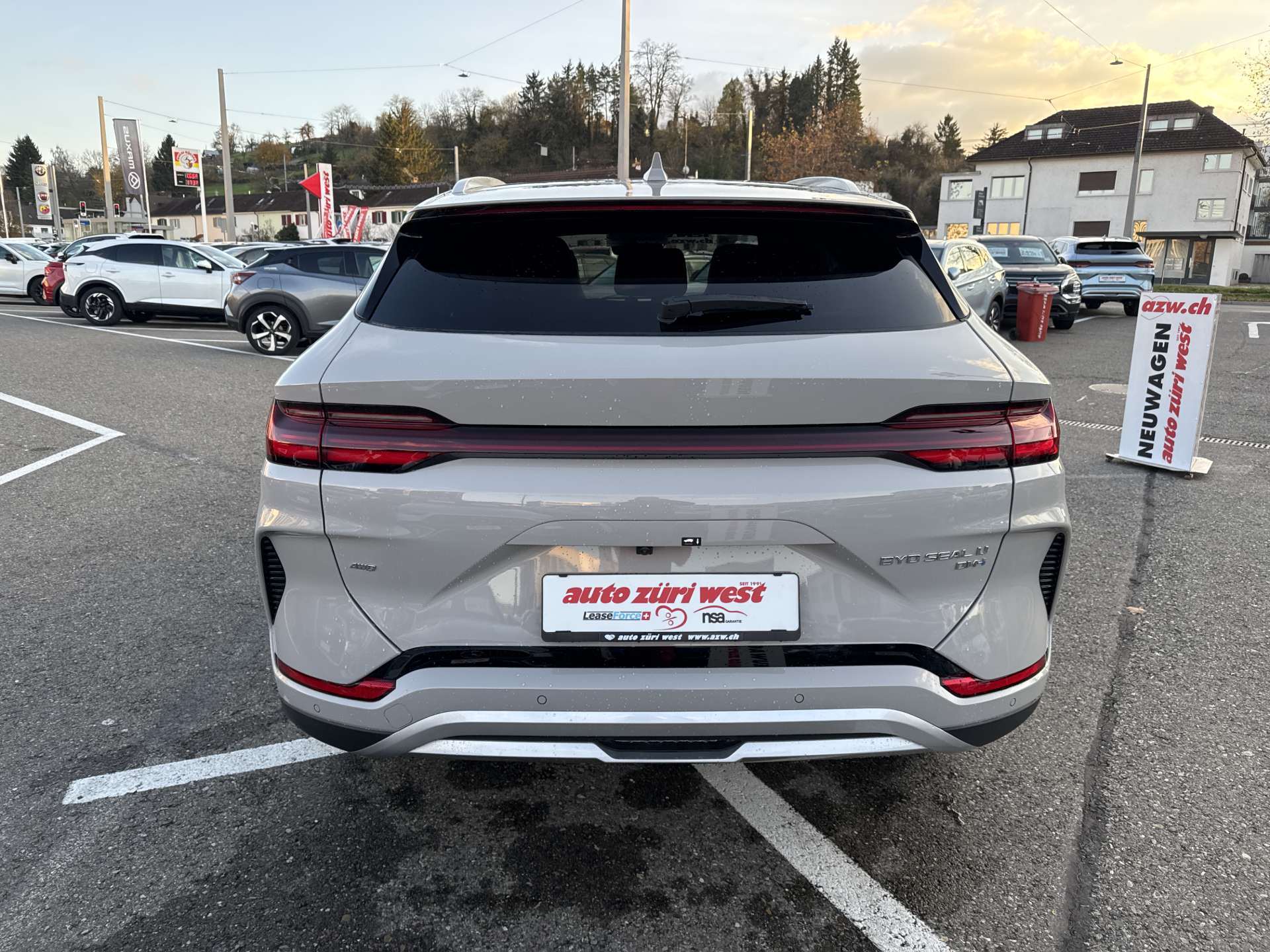 11kW On-Board Charger (OBC), 12-V-Stromanschluss, 2 x Smart Key, 4 x One-Touch-Fensterheber mit Einklemmschutzfunktion, Airbag: Fahrerairbag und Beifahrerairbag, Airbag: Frontairbag in der Mitte, Airbag: Seitenairbags vorn, Airbag: Vorhangairbags, Ambientebeleuchtung, mehrfarbig, Antiblockiersystem (ABS), Armlehne hinten, 2 Getränkehalter, Assist: 360° view camera, Assist: Adaptive Geschwindigkeitsregelung (ACC) & Intelligente Geschwindigkeitsregelung (ICC), Assist: Auto Hold, Assist: Automatische Notbremsung (AEB), Assist: Bergabfahrhilfe (HDC), Assist: Berganfahrassistent (HSA), Assist: Comfort Stop (CST), Assist: Elektrische Parkbremse (EPB), Assist: Heckkollisionswarnung (RCW), Assist: Hydraulischer Bremsassistent (HBA), Assist: Kindererkennung (CPD), Assist: Kontrollierte Verzögerung mit Feststellbremse (CDP), Assist: Müdigkeitserkennung für den Fahrer (DFW) und Aufmerksamkeitswarnung für den Fahrer (DFW), Assist: Parksensoren vorne und hinten, Assist: Querverkehrswarnung hinten (RCTA) & Querverkehrsbremse hinten (RCTB), Assist: Querverkehrswarnung vorn (FCTA) & Querverkehrsbremse vorn (FCTB), Assist: Spurhalteassistent (ELKA), Assist: Spurverlassensverhinderung (LDP), Assist: Spurverlassenswarnung (LDW), Assist: Spurwechselassistent (LCA), Assist: Toter-Winkel-Warnung (BSD), Assist: Traktionskontrolle (TCS), Assist: Überschlagskontrollsystem (RMI), Assist: Verkehrszeichenerkennung (TSR), Assist: Vorwärtskollisionswarnung (FCW), Aussenspiegel elektrisch verstellbar, elektrisch anklappbar, beheizbar, Automatisch abblendender Rückspiegel, Automatisches Verriegelungssystem, Bodenbeleuchtung vorne, Bremsüberbrückungssystem (BOS), Dachreling in Aluminium, Diebstahlsicherung, Dynamische Blinker, Elektrische Heckklappe, Elektronische Bremskraftverteilung (EBD), Elektronische Kindersicherung, ESP (Elektronisches Stabilitätsprogramm), Fahrmodus: Eco, Normal, Sport, Snow, Sand, Muddy, Fahrwerk: Fahrdynamikregelung (VDC), Frontscheibe, Scheibenwischer mit Regensensor, Frontscheibe, UV-Schutz, Wärmedämmung, Schalldämmung, Fussraumbeleuchtung in den Aussenspiegeln, Garantie: Batterie-Garantie 8 Jahre oder 200'000 km, Garantie: Garantie 6 Jahre oder 150'000 km, Gepäckraumleuchte, Getriebe: Direktantrieb, kein Getriebe, Head-up-Display (HUD), ISOFIX und i-Size, Beifahrer- und äussere Rücksitze, Keyless entry & keyless start, Kindersicherung manuell, Klima: Belüftungsdüsen hinten, Kofferraum-Gepäckablage, Kraftbegrenzender Sicherheitsgurt auf dem mittleren Rücksitz, Lackierung: Metallic-Lackierung, LED-Leseleuchten hinten, LED-Leseleuchten vorn, Licht: Fernlichtassistent (HMA), Licht: Follow-me-Home, Licht: LED-Rückleuchten, Licht: LED-Scheinwerfer, automatisches Ein-/Ausschalten, Licht: LED-Tagfahrlicht, Licht: Nebelschlussleuchten, Media: 12,3" TFT-LCD-Instrumententafel, Media: 15,6" elektrisch drehbarer Touchscreen, Media: Android Auto & Apple CarPlay, Media: DAB+ & FM, Media: Infinity-Soundsystem, 10 Lautsprecher, Media: Integrierte 4G-Konnektivität2, Media: Intelligente Sprachsteuerung "Hallo, BYD", Media: Smartphone wireless charging, 2x 15 W, Media: USB-Anschlüsse hinten: 1 x 18W Typ C, 1 x 60 W Typ C, Media: USB-Anschlüsse vorn: 1 x 18W Typ C, 1 x 60 W Typ C, Mehrfarbige LED-Ladeanzeige, Mittelarmlehne hinten, 2 Getränkehalter, Mittelarmlehne vorn, 2 Getränkehalter, Notruf, Panoramadach, elektrisch verstellbares Sonnenschutzrollo, PM2.5 filter, PM2.5-Luftreinigungssystem, Privacy glass in fond, Räder: 19" Bicolor- Leichtmetallfelgen, Reifendruckkontrolle (TPMS), Servolenkung, Sitze: Beifahrersitz belüftet, beheizt, Sitze: Beifahrersitz, elektrisch verstellbar, 4-fach, Sitze: Fahrersitz belüftet, beheizt, gespeicherte Einstellung, Sitze: Fahrersitz und Beifahrer, integrierte Kopfstütze, Sitze: Fahrersitz, elektrisch verstellbar, 8-fach, Positionsspeicher, Sitze: Rücksitze 40:60 geteilt umklappbar, Sitze: Rücksitze, manuell einstellbare Kopfstütze, Türöffnungswarnung (DOW), Vier LED-Türleuchten, Vordersitz-Sonnenblenden mit beleuchtetem Schminkspiegel, Vorgespannte und kraftbegrenzende Sicherheitsgurte vorn, Wärmepumpe