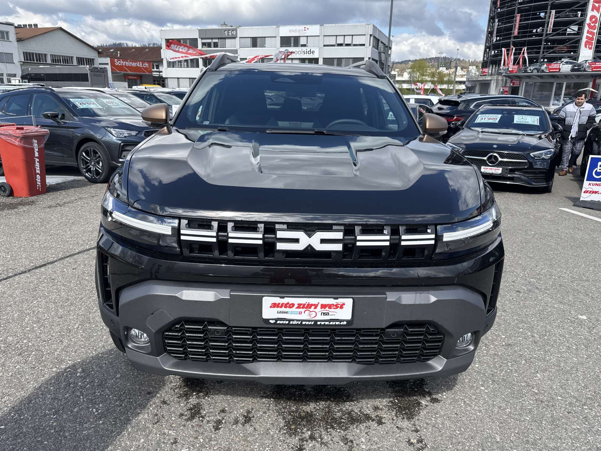 12-V-Steckdose im Kofferraum, 12V und USB-C Steckdosen vorne, Airbag: Frontairbag für Fahrer und Beifahrer (Beifahrerseite deaktivierbar) +, Airbag: Vorhang-Airbag vorne und hinten, Assist: ABS mit Bremskraftverteilung, Assist: Automatische Notbremsung mit Erkennung von Fahrzeugen, Fussgängern und Radfahrern (AEBS), Assist: Bergabfahrhilfe, Assist: Einparkhilfe hinten akustisch, Assist: Elektronisch.Stabilitätsprogramm (ESC) mit Antriebsschlupfregelung (ASR) und Berganfahrhilfe, Assist: Fernlichtassistent, Assist: Müdigkeitswarnen (DDAW), Assist: Rückfahrkamera, Assist: Spurhalteassistent (LDWS), Assist: Tempomat mit Geschwindigkeitsbegrenzer, Assist: Verkehrszeichenerkennung (TSR), Aussenspiegel elektrisch einstell- und beheizbar, elektrisch einklappbar, Aussenspiegelgehäuse kupferfarben lackiert, B-Säule in Matt-Schwarz, Dekor: Verschiedene Details in Kupferbraune, Dekor: Zierrahmen in Kupferbraune an den Lüftungsdüsen, Digital Bordcomputer 7", Dunkle Verglasung der hinteren Scheiben, Eco-Mode zur Reichweitenoptimierung mit Schaltpunktanzeige, Elektrische Fensterheber vorne und hinten mit Schnellfunktion, Erhöhte Mittelkonsole mit verschiebbarer Armlehne und Stauraum, Garantie: Dacia Garantie: 2 Jahre Lackgarantie, Garantie: Dacia Garantie: 3 Jahre oder 100'000 km, Garantie: Dacia Garantie: 6 Jahre Durchrostungsgarantie, Getriebe: 6-Gang-Automatikgetriebe, Gummischutzfussmatten, Gummischutzkasten für Kofferraum, Heckscheibe beheizbar mit Scheibenwischer, Induktionsladegerät für Smartphones, ISOFIX-Kindersitzbefestigung auf den hinteren Aussenplätzen, Keycard Handsfree, Klima: Klimaautomatik mit Pollenfilter, Kofferraumbeleuchtung, Lackierung: Uni-Lackierung, Lenkrad: Lenkrad höhen- und tiefeneinstellbar, Lenkrad: Lenkrad in Lederoptik, Leselampe Fahrer, Beifahrer und hinten, Licht: Automatisches Einschalten der Scheinwerfer und Scheibenwischer, Licht: Automatisches LED-Tagfahr- und Abblendlicht und Halogen-Fernlicht, Licht: Nebelscheinwerfer, Media: Multimediasystem Media Display mit 10"-Touchscreen, Modulare Dachreling, Polster: Grauer Micro-Cloud-Stoff mit speziellen Kupfziernähten und Dacia Logo-Prägung, Räder: Alufelgen Tergan schwarz 17", Räder: Reifendruckkontrollsystem, Räder: Reifenreparatur-Kit, Räder: Sommerreifen, Servolenkung elektrisch, Sitze: Fahrersitz höhenverstellbar, Sitze: Fahrersitz mit einstellbarer Lendenstütze, Beifahrersitz höhenverstellbar, Sitze: Rücksitzbank 1/3 - 2/3 umklappbar, Smartphone-Halterung neben dem Display, Snorkel, Radkastenverkleidungen und Seitliche Schutzvorrichtungen in Starkle, Sonnenblende Fahrer und Beifahrer, Start-Stopp-System, Türgriffe aussen in Wagenfarbe, Zentralverriegelung mit Fernbedienung