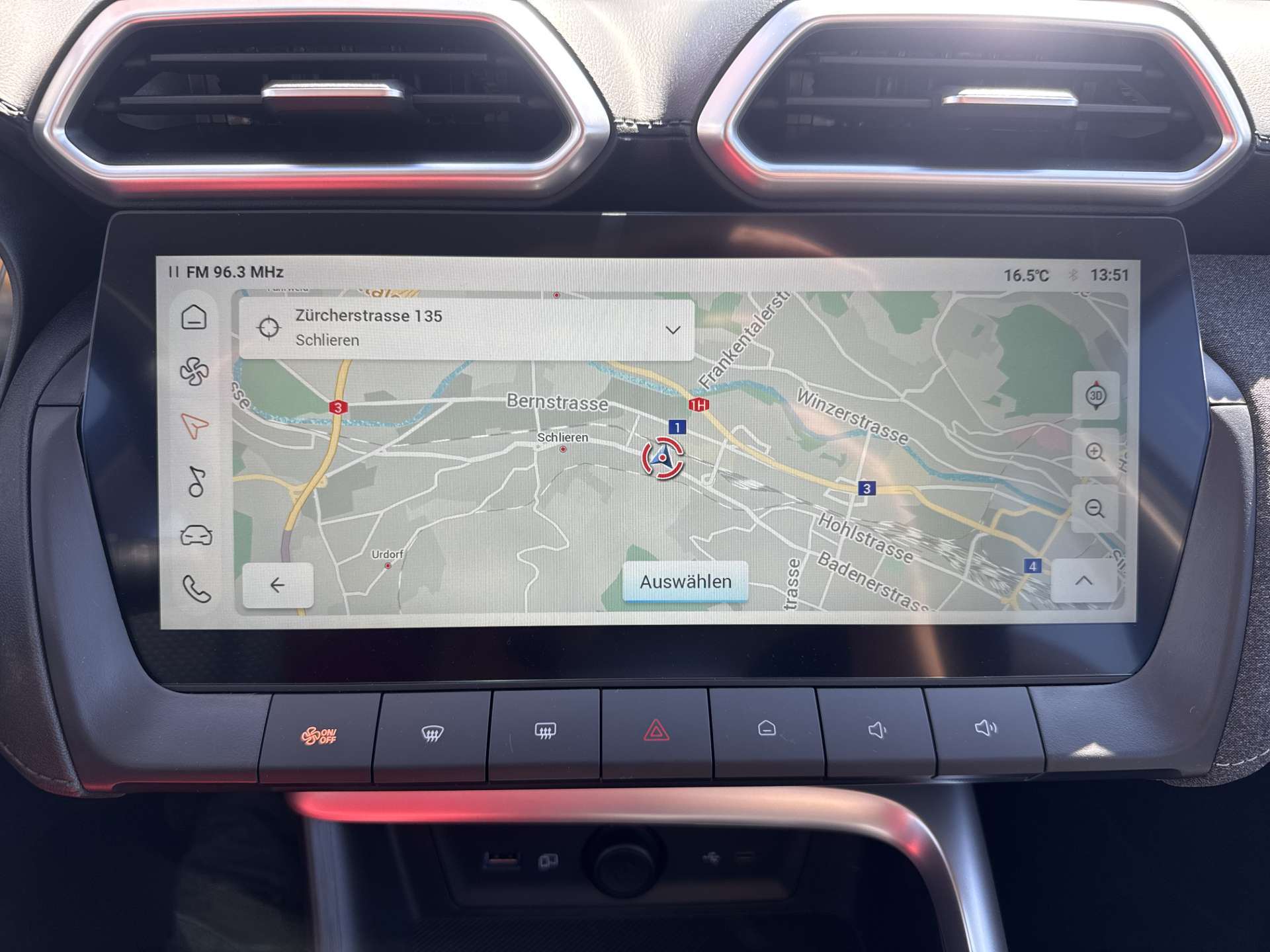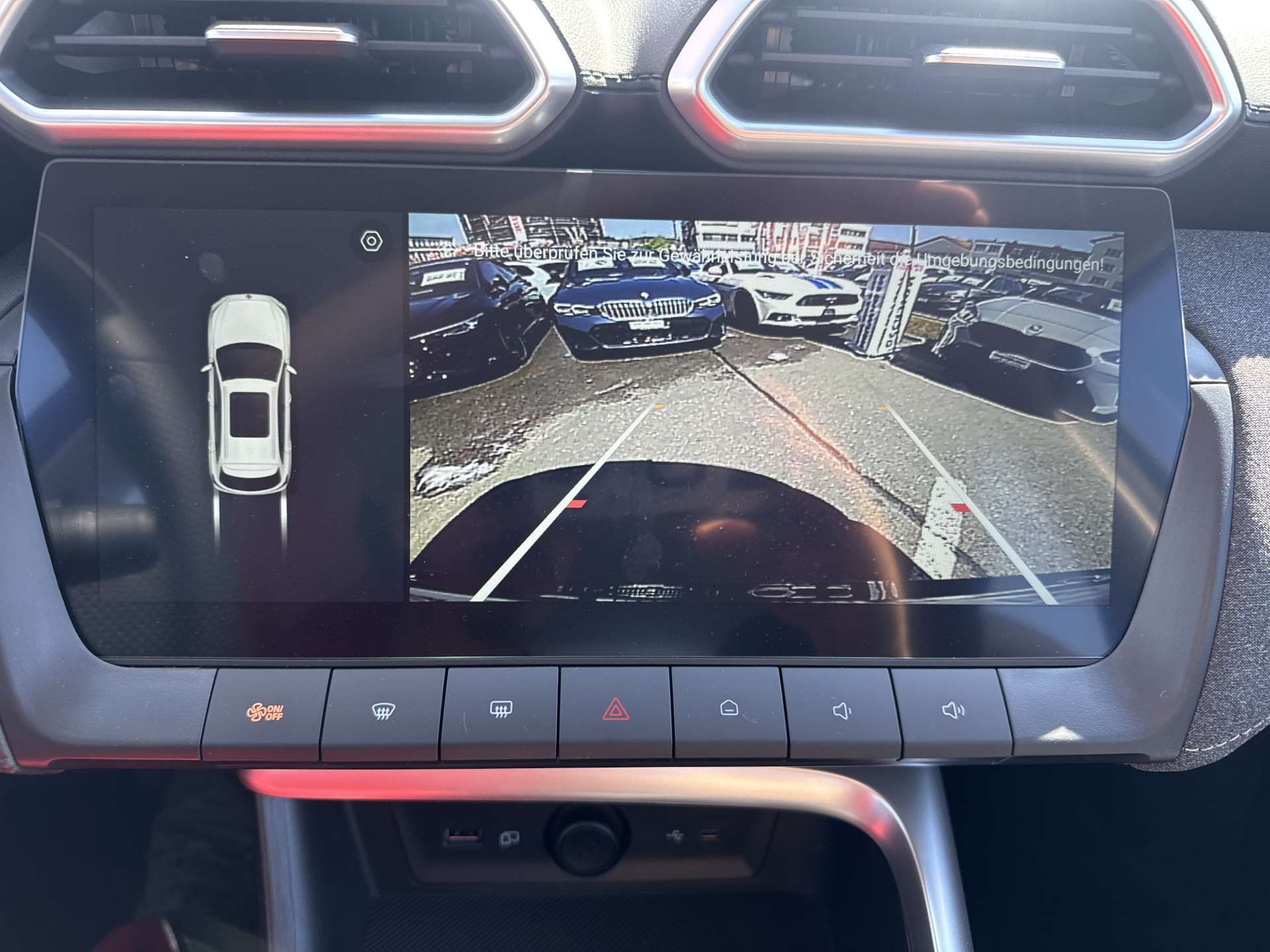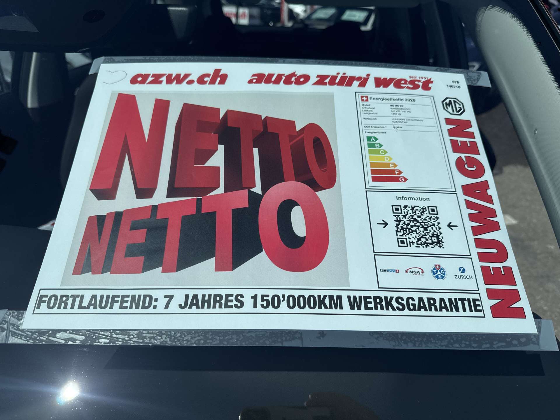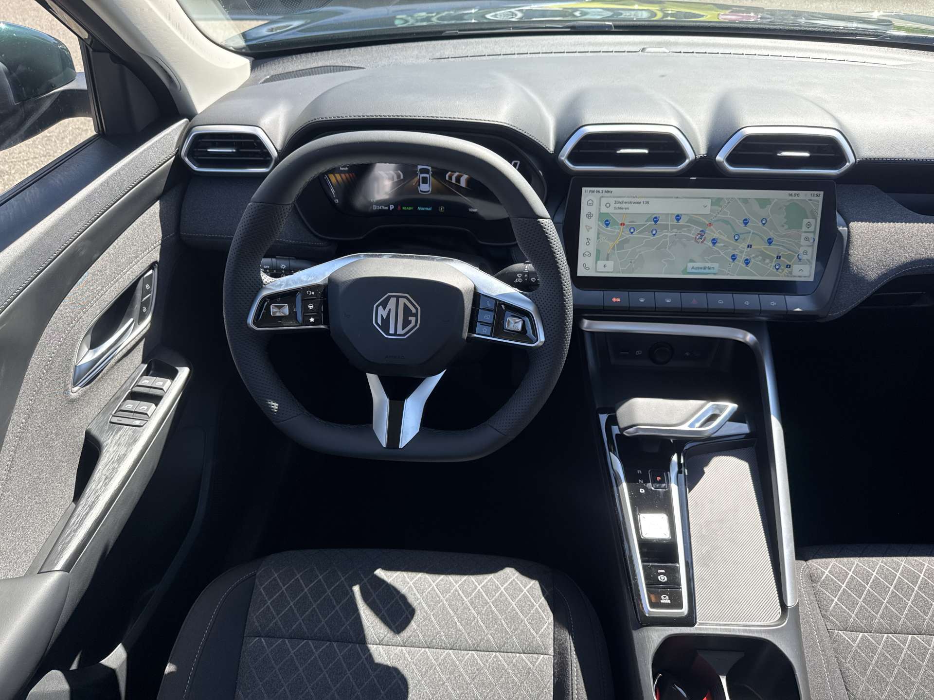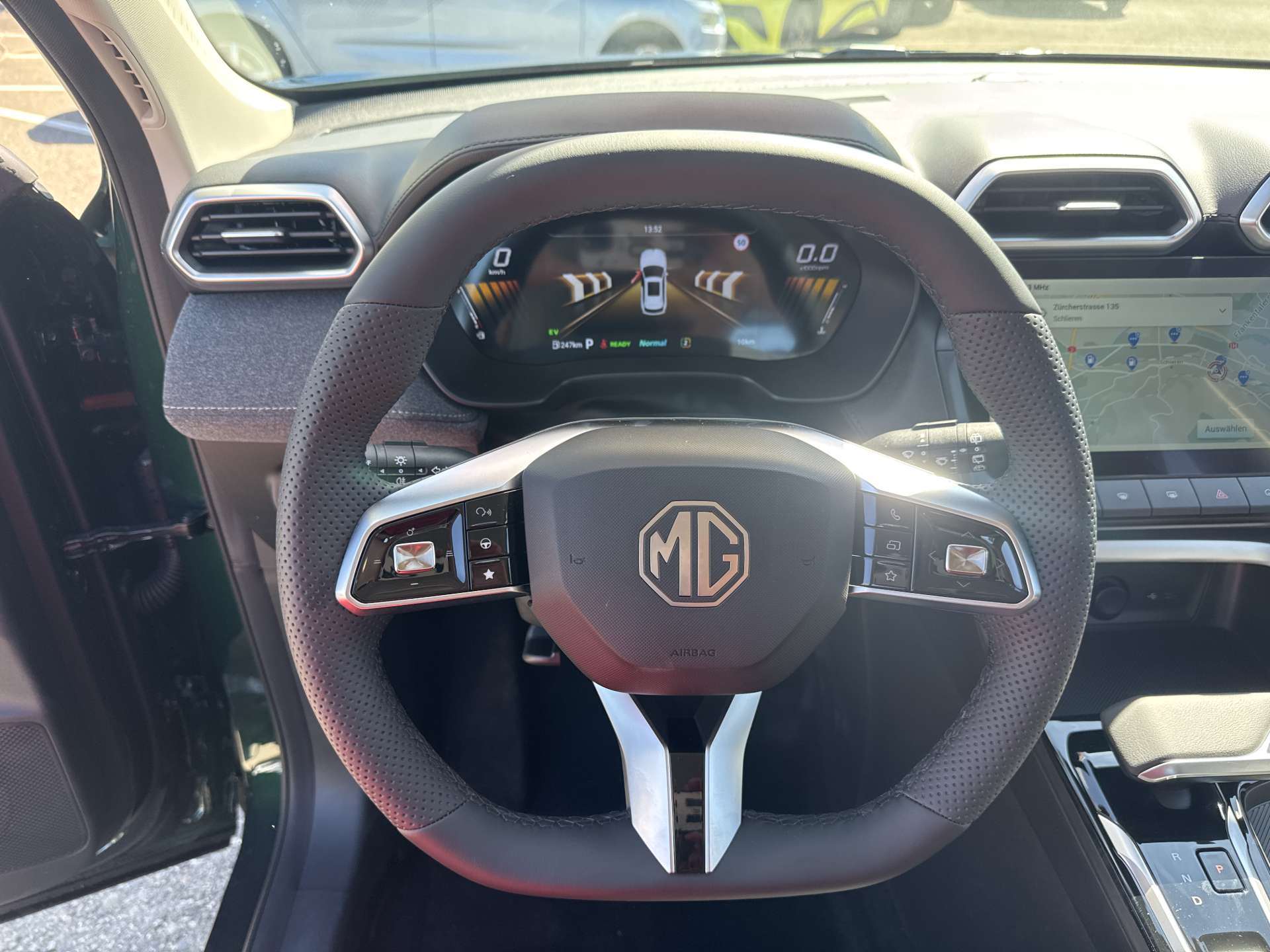 Airbag: Airbag Fahrer und Beifahrer, Airbag: Seitenairbags für Fahrer und Beifahrer, Antiblockiersystem (ABS), Assist: MG Pilot: ACC/ AEB/ ISA/ UDW/ FCW/ LDW/ ELK/ LKA, Assist: Parksensoren hinten, Assist: Rückfahrkamera, Aussenspiegel manuell anklappbare und beheizbare, Elektrische Fensterheber vorne, ESP und TCS, Garantie: 7 Jahre oder 150'000 km, Getriebe: Automatikgetriebe 3 Gänge, Keyless Zugang, Klima: Automatische Klimaanlage, Lackierung: Uni-Lackierung, Lenkrad: Lederlenkrad, Lenkrad: Multifunktionslenkrad, Licht: LED-Beleuchtung (Tagfahrlicht/Vorder-/Rücklicht), Media: 12.3" Infotaimentbildschirm + 12.3" virtueles Instrument, Media: Android Auto/Apple CarPlay, Media: Navigation, Media: Radio mit 6 Lautsprechern, Polster: Stoff-Ausstattung, Räder: 17''-Zoll-Leichtmetallfelgen, Räder: Direktes TPMS (Reifendruckkontrollsystem), Regensensor, Servolenkung, Sitze: Lüftung Rückbank, Sitze: Manuell verstellbarer Fahrersitz, Zentralverriegelung mit Fernbedienung