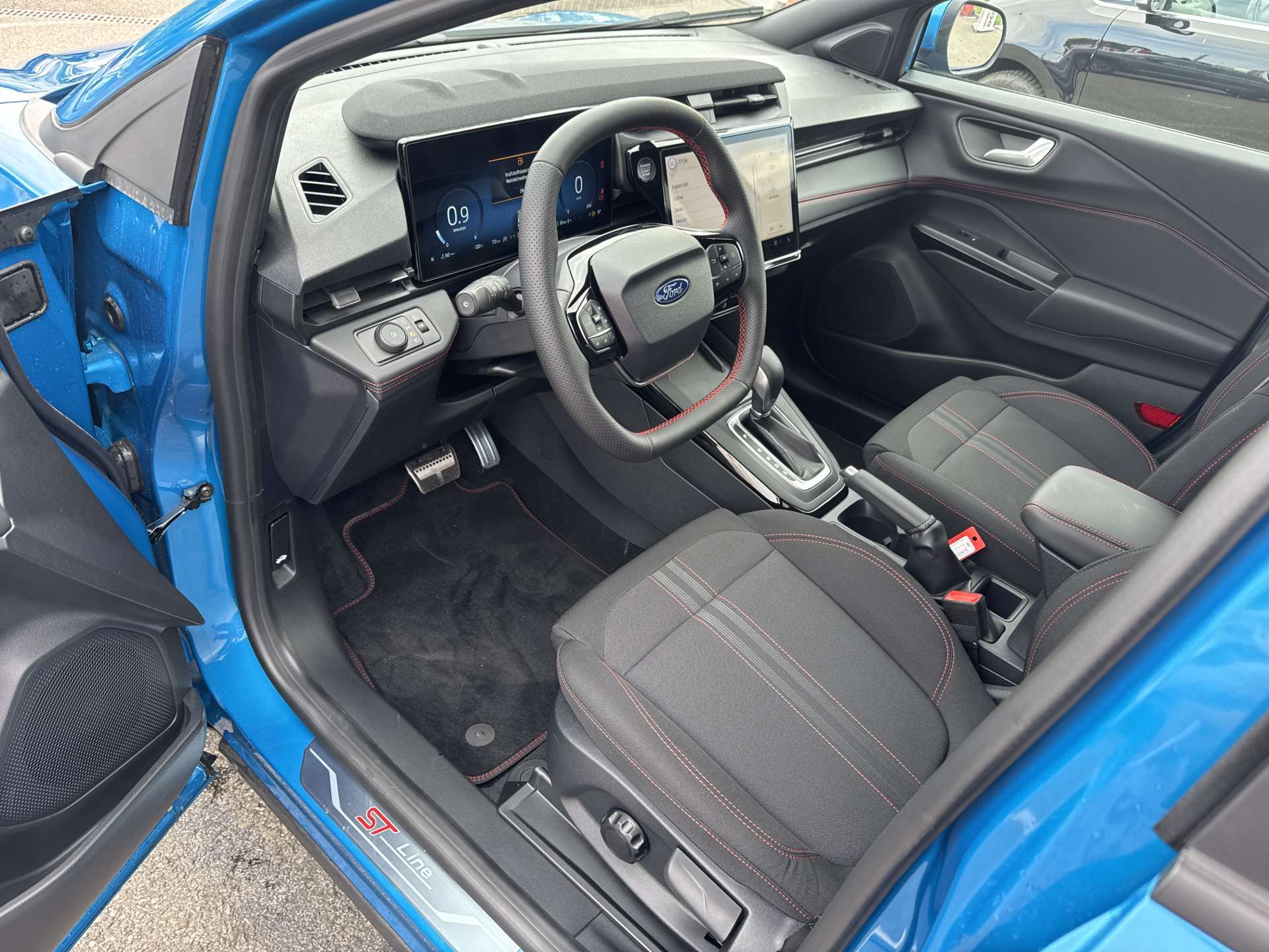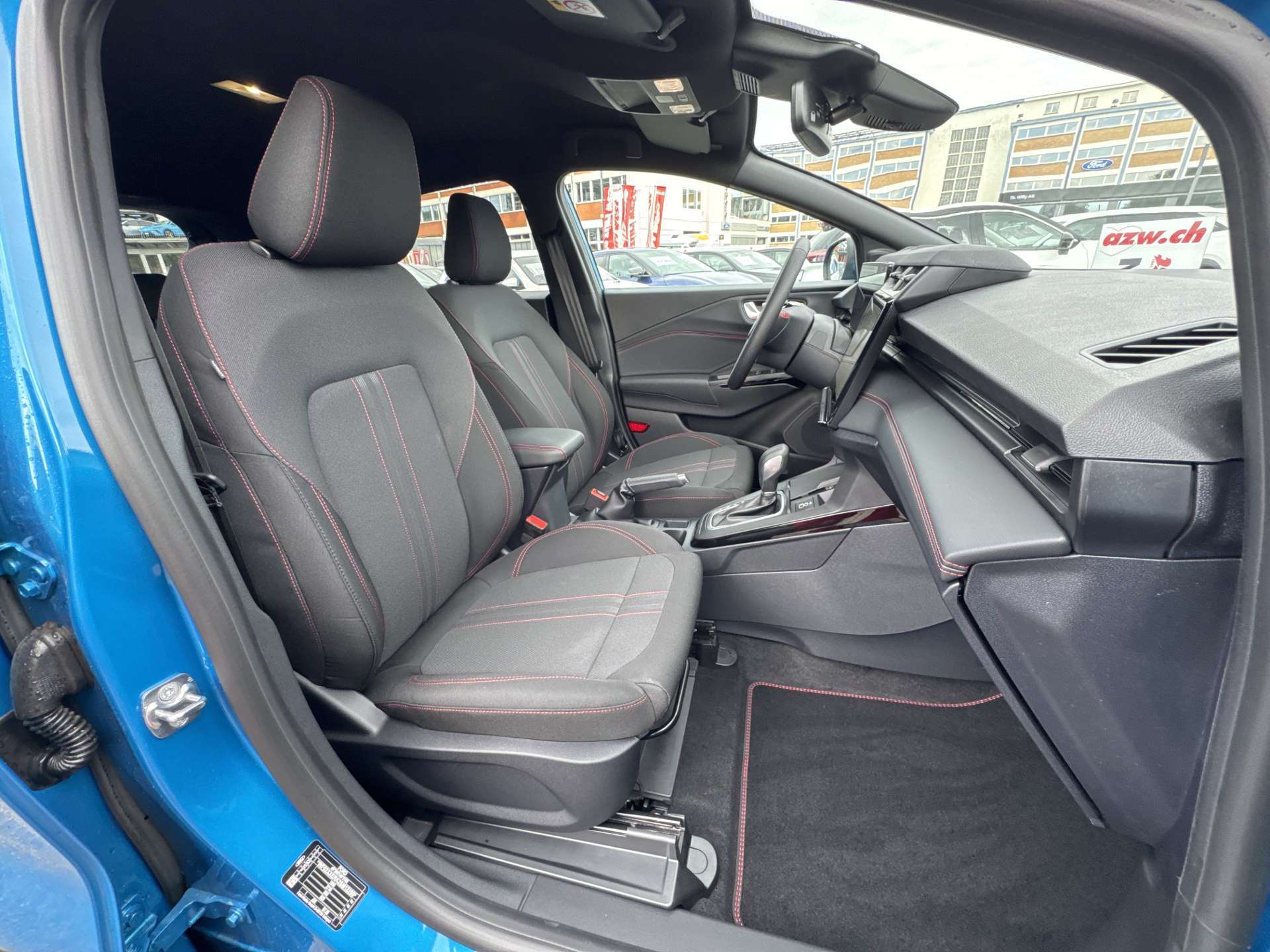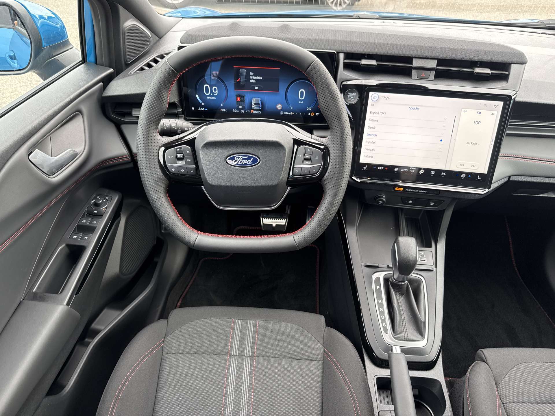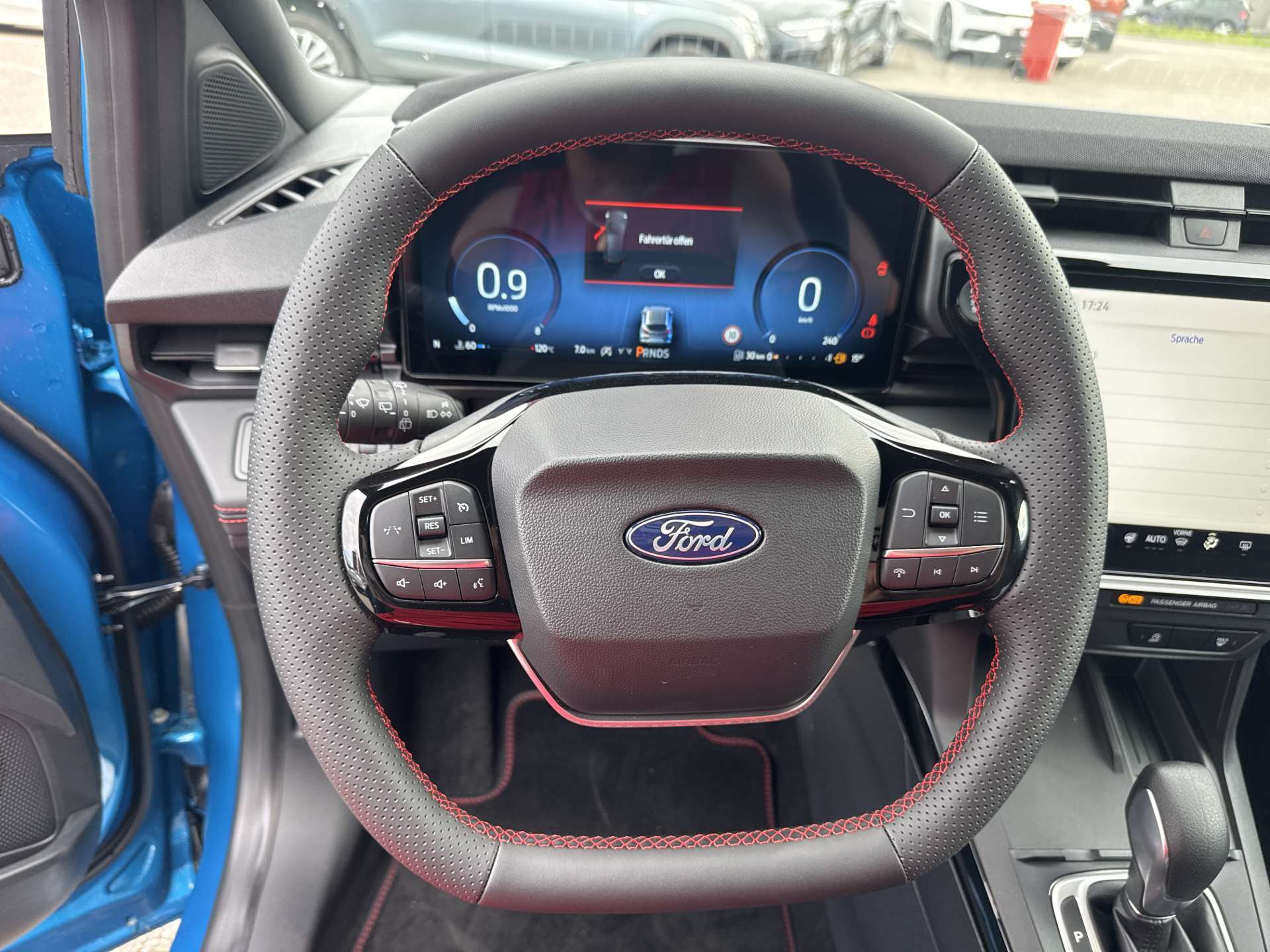 12-Volt-Anschluss hinter der Mittelkonsole vorn für die 2. Sitzreihe und im Kofferraum, 3-Punkt-Sicherheitsgurte auf allen Plätzen, Airbag: Kopf-Schulterairbags vorn und hinten, Ambientebeleuchtung vorn inkl. Armaturenbrett, Vordertürablage-,, Antiblockier-Bremssystem (ABS), Assist: Fahrspur-Assistent, Assist: Falschfahrer-Warnfuntion, Assist: Geschwindigkeitsregelanlage und intelligenter Geschwindigkeitsbegrenzer mit Tempolimit-Anze, Assist: Müdigkeitswarner, Assist: Park-Pilot System hinten, Assist: Pre-Collision-Assist, Assist: Rückfahrkamera, Assist: Verkehrsschild-Erkennungssystem, Aussenspiegel in Wagenfarbe lackiert, elektrisch einstellbar, beheizbar, Body-Styling-Kit ST-Line / ST-Line X, Dachhimmel aus Webstoff, Anthrazit, Dekor: Armaturenbrett teilweise mit Kunstlederbezug, Einstiegszierleisten vorn, ST-Line-Design, Elektronisches Stabilitäts-Programm (ESP), Fahrwerk: Selektiver Fahrmodus-Schalter, Fahrwerk: Sportlich abgestimmtes Fahrwerk, Fensterheber vorn und hinten elektrisch mit Gesamtschließungsfunktion bzw mit Quickdown-Schaltung, Ford EcoCoach (Effizienzanzeige für umweltschonende Fahrweise), Ford MegaBox, Ford Power-Startfunktion (schlüsselfreies Starten), Frontscheibe, Akustik-Verbundglas, Garantie: Ford Garantie 2 Jahre Werksgarantie, Getriebe: 7-Gang-Automatikgetriebe, Heckscheiben-Wisch-/Waschanlage, Heckscheibenheizung, Innenspiegel automatisch abblendbar, Intelligentes Sicherheits-System (IPS - Intelligent Protection System), Klima: Klimaanlage mit automatischer Temperaturkontrolle, Kopfstützen vorn (2) und Kopfstützen hinten (3), höhenverstellbar, Lackierung: Frozen White, Lenkrad: Lenkrad, Sensico in Leder-Optik, perforiert, Licht: Drittes Bremslicht, Licht: LED Heckleuchten, Licht: LED-Scheinwerfer inkl. Scheinwerfer-Assistent mit Tag/ Nacht Sensor, Licht: Nebelschlussleuchte, Licht: Scheinwerfer, automatisch höhenverstellbar, Media: 2 USB Anschlüsse vorn unter dem Armaturenbrett (1x Typ-A/ 1x Typ-C), Media: 5G Modem, Media: Ford SYNC 4 mit AppLink, 12"-Touchscreen (30.5 cm Bildschirmdiagonale), Mittelkonsole vorn mit 2 Getränkehaltern, 12-Volt-Anschluss, integrierter Armauflage und Ablagefäche, Pedalerie mit Aluminiumauflage, Polster: Stoffpolsterung in Anthrazit mit Ziernähten in Rot, Räder: Leichtmetallräder 7 J x 17 mit 215/55 R17 Reifen, Räder: Reifendruckkontrollsystem, Räder: Reifenreparatur-Set (Tire Fit), Räder: Umweltfreundliches Reifenprofil, Scheibenbremsen vorn, innenbelüftet, und Trommelbremsen hinten, Scheibenwischer mit Regensensor, Seitenscheiben ab 2. Sitzreihe und Heckscheibe, dunkel getönt, Servolenkung, Sitze: Beifahrersitz, 2-fach einstellbar, Sitze: Fahrersitz mit Lendenwirbelstütze, Sitze: Fahrersitz, manuell höhenverstellbar, Sitze: ISOFIX-Halterung an den äusseren Sitzplätzen der 2. Sitzreihe, Teppichfussmatten vorn, Variabler Kühlerlufteinlass, Wegfahrsperre elektronisch, Zentralverriegelung mit Fernbedienung