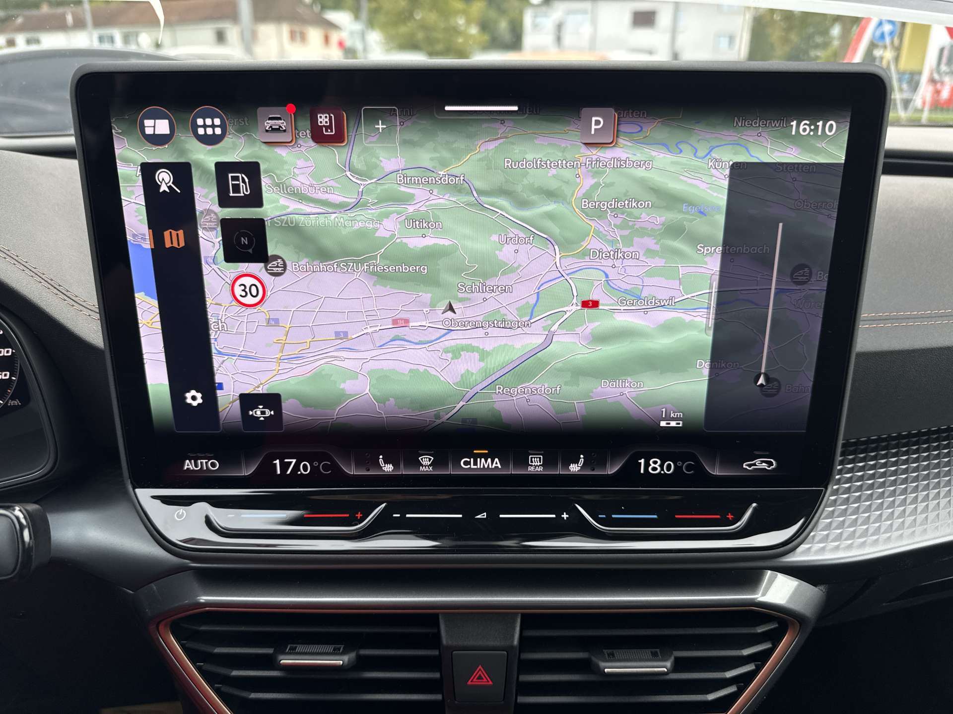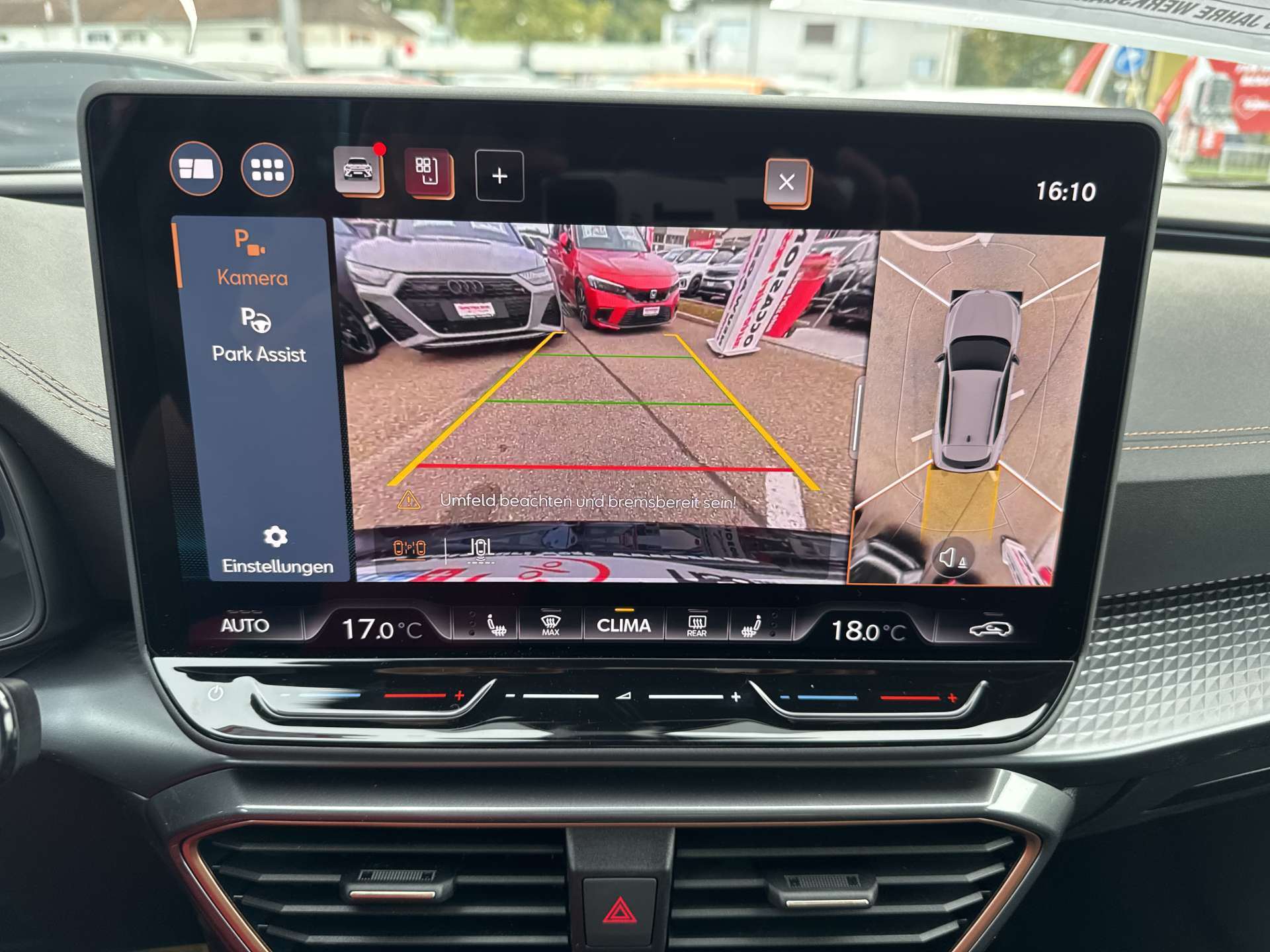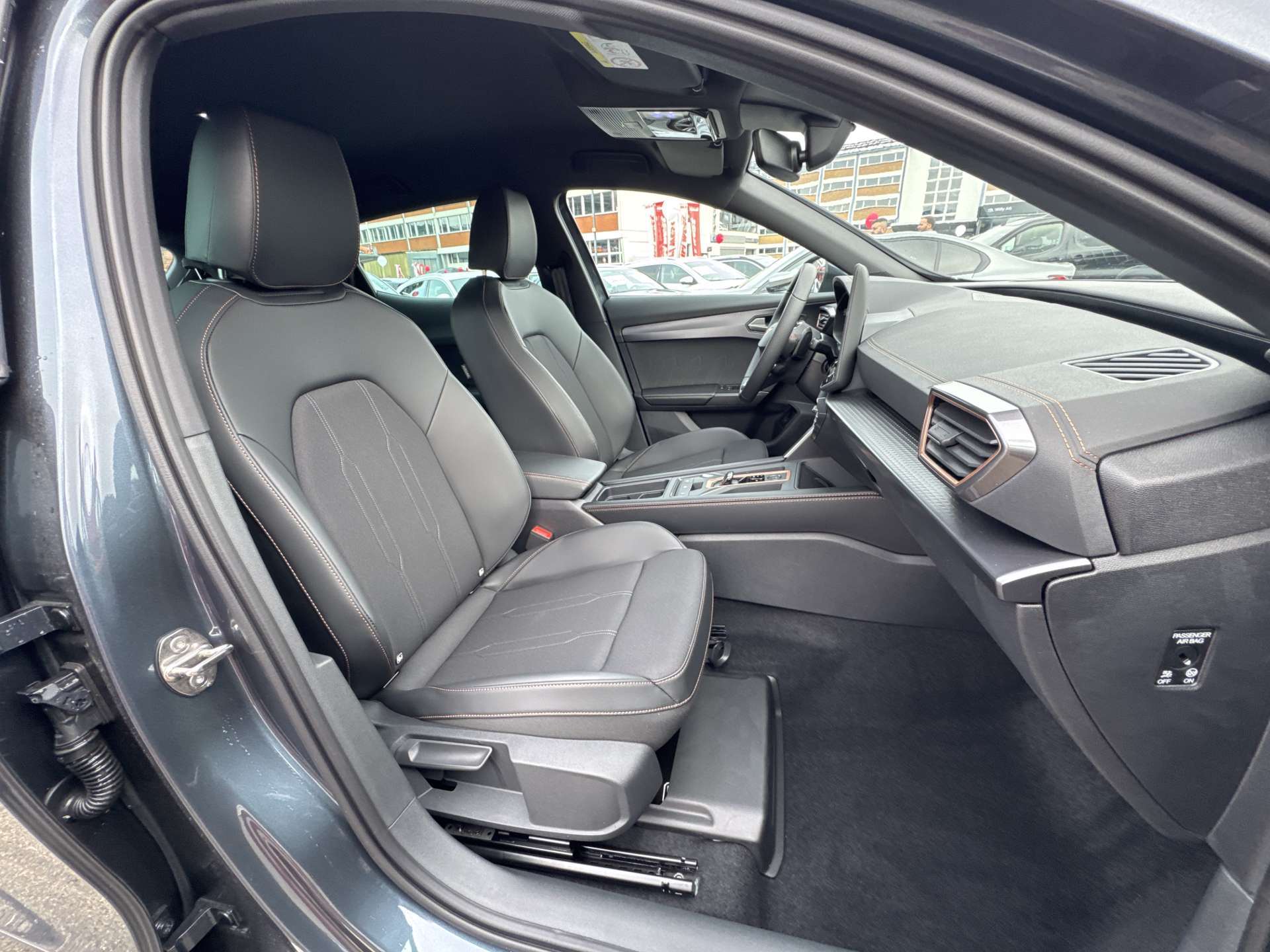 3-Punkt-Sicherheitsgurte auf allen Plätzen, Abgedunkelte Scheiben ab B-Säule hinten, ABS, EBV elektronische Bremskraft-verteilung, Airbag: Airbag Beifahrer deaktivierbar, Airbag: Airbag Fahrer und Beifahrer, Airbag: Kopfairbags vorne und hinten, Airbag: Seitenairbags für Fahrer und Beifahrer, Alarmanlage mit Innenraumüberwachung, Alarmanlage mit Innenraumüberwachung, Assist: Aufmerksamkeits- und Müdigkeitserkennung (ADA), Assist: Ausweichunterstützung / Abbiegeassistent, Assist: Automatische Distanzregelung ACC, Assist: City Notbremsfunktion, Assist: Einparkhilfe vorne und hinten, Assist: Elektronische Parkbremse mit Auto Hold Funktion, Assist: Exit Assist (Ausparkassistent), Assist: Exit Warning (Ausstiegswarner), Assist: Lane assist (Spurhalteassistent), Assist: Multifunktionskamera, Assist: Multikollisionsbremse, Assist: Parklenkassistent IPA (Intelligent Park Assist), Assist: Prädiktive Speedlimiter, Assist: PreCrash Sicherheitssystem, Assist: Regen-/Lichtsensor, Assist: Rückfahrkamera, Assist: Side Assist (Spurwechselassistent), Assist: Top View Camera (Rundumblick), Assist: Traction Control (TCS), Assist: Traffic sign recognition (Verkehrszeichenerkennung), Assist: Travel Assist, Assist: Umfeldbeobachtung Front-Assist, Aussenspiegel elektrisch einstell-, beheiz- und einklappbar, Aussenspiegel elektrisch einstell-, beheiz- und einklappbar mit Memory -Funktion, Aussenspiegel elektrisch einstell-, beheiz- und einklappbar mit Memory -Funktion, Aussenspiegel mit Beifahrerspiegelabsenkung, Aussenspiegel mit LED-Umfeldbeleuchtung, Automatisch abblendender Innenrückspiegel, Beleuchtete Sonnenblende links mit abdeckbarem Spiegel und Lasche, rechts mit abdeckbarem Spiegel, CUPRA Drive Profile, Dachhimmel Schwarz, Dachreling schwarz, Dekor: Dinamica Ambiente, Dekor: Metallized Ambiente, Elektrische Fensterheber vorne und hinten mit Komfortschaltung und Einklemmschutz, ESC mit EBA, DSR, XDS und Reifendruckkontrolle, Fahrwerk: Adaptive Fahrwerksregelung DCC, Fahrwerk: Progressivlenkung, Full Digital Cockpit, Fussmatten vorne und hinten, Garantie: Cupra 12 Jahre Gewährleistung gegen Karosserie-Durchrostung, Garantie: Cupra 3 Jahre Lack-Gewährleistung, Garantie: Cupra Garantie 2 Jahre ohne Kilometerbegrenzung, Getriebe: 7-Gang DSG, Gurtkontrolle, Heckklappe elektrisch öffnend "Virtual Pedal", Heckscheiben-Wisch-/Waschanlage mit Intervall, Kindersitzverankerung ISOFIX (äussere Plätze hinten), Klima: 3-Zonen Climatronic mit Fondraumbedienung, Lackierung: Uni-Lackierung, LED-Innenraumbeleuchtung mit Ambientebeleuchtung Smart Wraparound "Multicolor", LED-Innenraumbeleuchtung mit Ambientebeleuchtung"Monochrom", Lenkrad: Supersportlenkrad mit Start-/ Drive Profile-Knopfsystem und Schaltwippen, beheizbar, Licht: Coming-home-Funktion, Licht: Drittes Bremslicht, Licht: Durchgehende Full LED-Heckleuchten, Licht: Fernlicht-Assistent, Licht: LED Heckleuchten mit beleuchtetem 3D CUPRA Logo, Licht: LED-Heckleuchten mit dynamischem Blinklicht, Licht: LED-Nebelscheinwerfer mit Cornering-Funktion, Licht: LED-Scheinwerfer für Abblend- und Fernlicht, Licht: LED-Tagfahrlicht, Licht: Leuchtweitenregulierung dynamisch, Licht: Matrix LED Fernlicht, Licht: Matrix LED Scheinwerfer, Licht: Nebelschlussleuchte, Media: 12,9" Infotainment (MIB3), Media: 2 USB C Anschlüsse hinten und vorne, Media: 7 Lautsprecher, Media: CUPRA Connect Online Infotainment, Media: CUPRA Connect Remote & Access, Media: CUPRA Connect Safety & Services, Media: CUPRA Connectivity Box, Media: CUPRA FullLink, Media: CUPRA Navigationssystem, Media: DAB+ (Digital Audio Broadcasting), Media: Mobiltelefon Freisprechanlage Bluetooth, Media: Sprachsteuerung, Paket: EDGE, Paket: Fahrerassistenzpaket XL, Paket: INTELLIGENT DRIVE, Pyrotechnische Gurtstraffer und Gurtkraftbegrenzer, Räder: Alufelgen 8J x 18", "TEMPEST" Machined in Silver, Räder: Reifendruckkontrollsystem, Räder: Reifenreparatur-Set (Tire Fit), Schlüsselloses Schliess- und Startsystem (KESSY), Servolenkung mit geschwindigkeitsabhängiger Lenkkraftunterstützung, Sitze: 3 verstellbare Kopfstützen hinten, Sitze: CUPRA Sport Schalensitze in Dinamica "Black/Blue", Sitze: CUPRA Sport Schalensitze in Leder, Sitze: CUPRA Sportsitze in "Sharp Textil schwarz", Sitze: Elektrische Sitzverstellung mit Memory-Funktion für Fahrer- und Beifahrerseite, Sitze: Fahrersitz elektrisch einstellbar mit Memory-Funktion, Sitze: Geteilt abklappbare Rücksitzlehne 1/3 - 2/3, Sitze: Kopfstützen vorne (integrierte), Sitze: Lendenwirbelstütze Fahrer- und Beifahrerseite elektrisch einstellbar, Sitze: Lendenwirbelstütze Fahrerseite elektrisch einstellbar, Sitze: Mittelarmlehne hinten, Sitze: Mittelarmlehne vorne, Sitze: Ohne Dokumentenablage und Schublade unter den Vordersitzen, Sitze: Sitzheizung für Vordersitze, getrennt regelbar, Sitze: Vordersitze höhenverstellbar mit Lendenwirbelstütze, Stopp - Start- und Rekuperationssystem, Türgriffe in Wagenfarbe, Variabler Ladeboden, Vollverzinkte Karosserie, Wärmeschutzverglasung, Wegfahrsperre elektronisch, Zentralverriegelung "Keyless-Go", Zentralverriegelung mit Funkfernbedienung, 2 Funkschlüssel