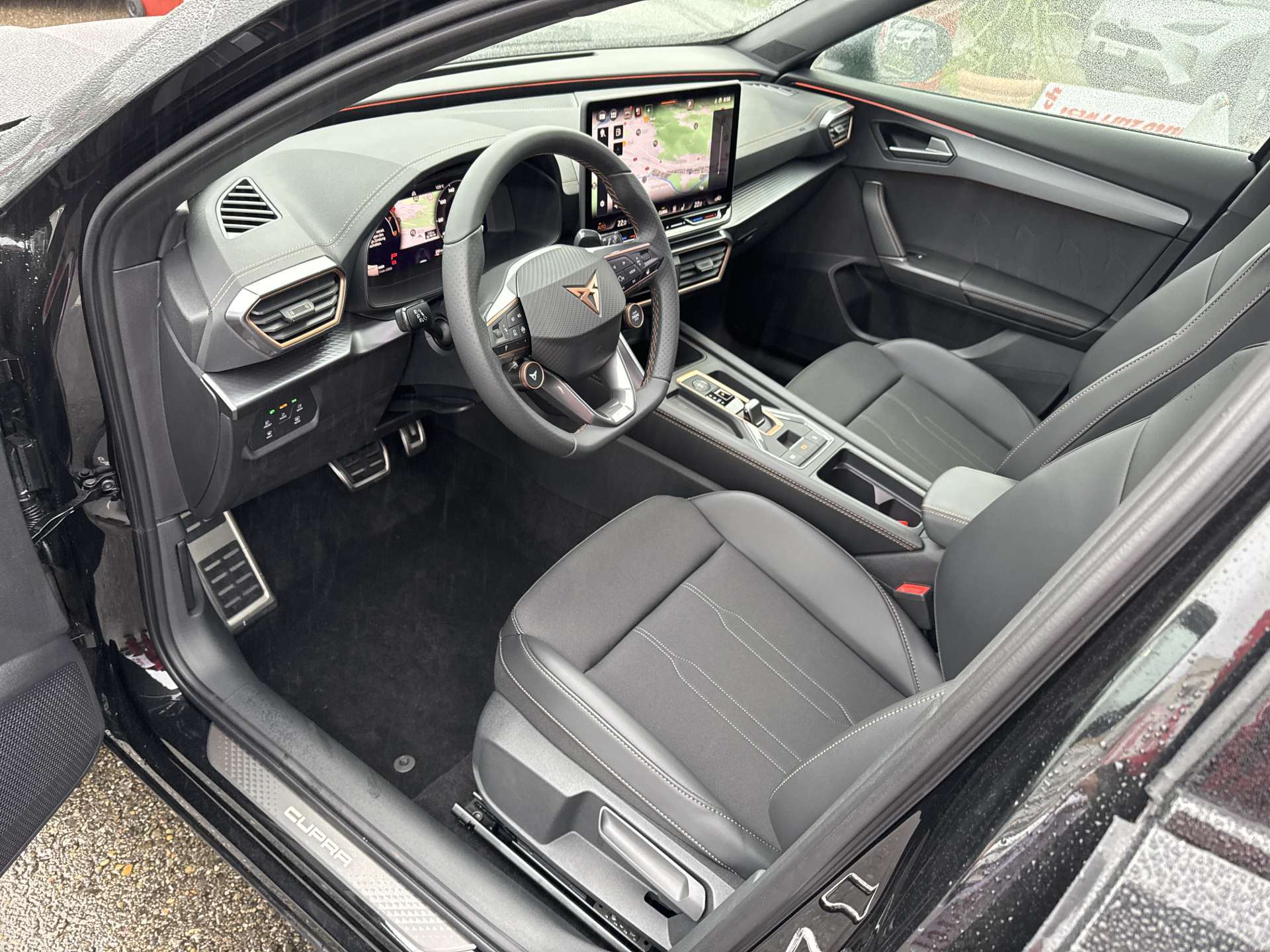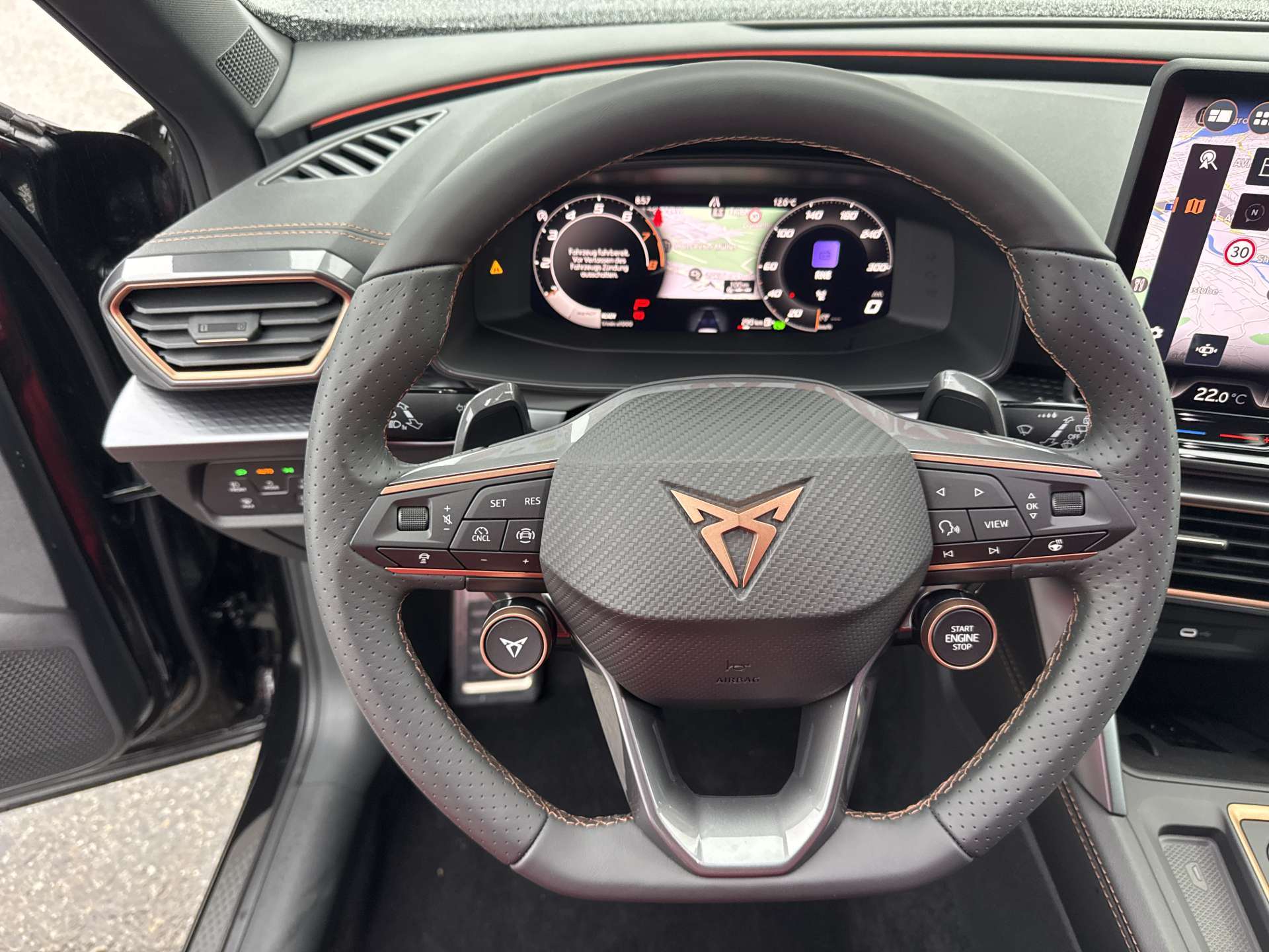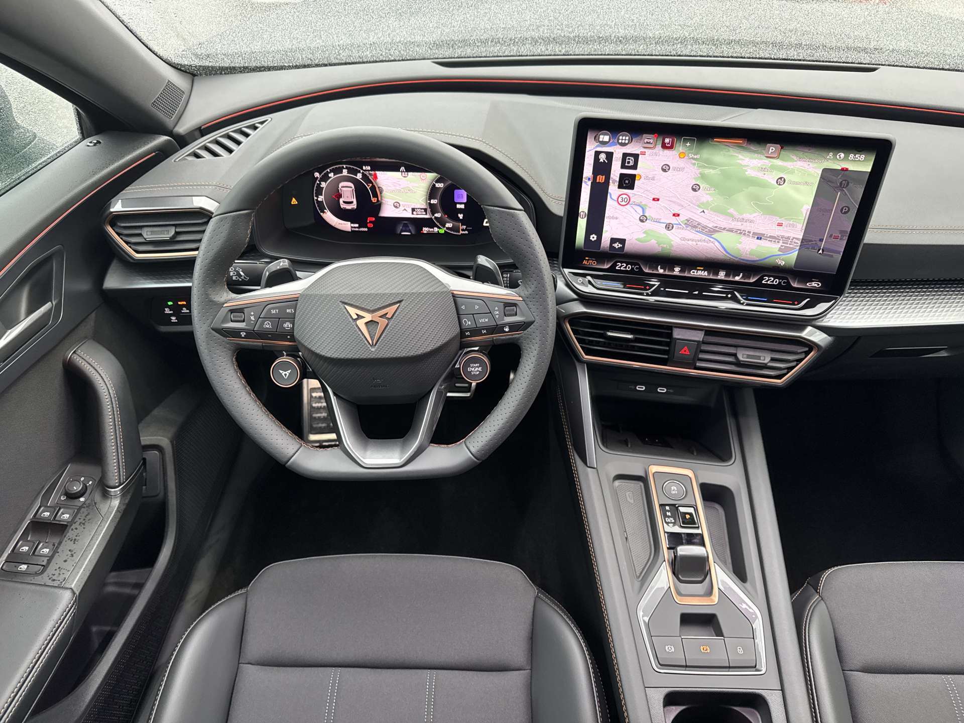 3-Punkt-Sicherheitsgurte auf allen Plätzen, Abgedunkelte Scheiben ab B-Säule hinten, ABS, EBV elektronische Bremskraft-verteilung, Airbag: Airbag Beifahrer deaktivierbar, Airbag: Airbag Fahrer und Beifahrer, Airbag: Kopfairbags vorne und hinten, Airbag: Seitenairbags für Fahrer und Beifahrer, Alarmanlage mit Innenraumüberwachung, Alarmanlage mit Innenraumüberwachung, Assist: Aufmerksamkeits- und Müdigkeitserkennung (ADA), Assist: Ausweichunterstützung / Abbiegeassistent, Assist: Automatische Distanzregelung ACC, Assist: City Notbremsfunktion, Assist: Einparkhilfe vorne und hinten, Assist: Elektronische Parkbremse mit Auto Hold Funktion, Assist: Exit Assist (Ausparkassistent), Assist: Exit Warning (Ausstiegswarner), Assist: Lane assist (Spurhalteassistent), Assist: Multifunktionskamera, Assist: Multikollisionsbremse, Assist: Parklenkassistent IPA (Intelligent Park Assist), Assist: Prädiktive Speedlimiter, Assist: PreCrash Sicherheitssystem, Assist: Regen-/Lichtsensor, Assist: Rückfahrkamera, Assist: Side Assist (Spurwechselassistent), Assist: Top View Camera (Rundumblick), Assist: Traction Control (TCS), Assist: Traffic sign recognition (Verkehrszeichenerkennung), Assist: Travel Assist, Assist: Umfeldbeobachtung Front-Assist, Aussenspiegel elektrisch einstell-, beheiz- und einklappbar, Aussenspiegel elektrisch einstell-, beheiz- und einklappbar mit Memory -Funktion, Aussenspiegel elektrisch einstell-, beheiz- und einklappbar mit Memory -Funktion, Aussenspiegel mit Beifahrerspiegelabsenkung, Aussenspiegel mit LED-Umfeldbeleuchtung, Automatisch abblendender Innenrückspiegel, Beleuchtete Sonnenblende links mit abdeckbarem Spiegel und Lasche, rechts mit abdeckbarem Spiegel, CUPRA Drive Profile, Dachhimmel Schwarz, Dachreling schwarz, Dekor: Dinamica Ambiente, Dekor: Metallized Ambiente, Elektrische Fensterheber vorne und hinten mit Komfortschaltung und Einklemmschutz, ESC mit EBA, DSR, XDS und Reifendruckkontrolle, Fahrwerk: Adaptive Fahrwerksregelung DCC, Fahrwerk: Progressivlenkung, Full Digital Cockpit, Fussmatten vorne und hinten, Garantie: Cupra 12 Jahre Gewährleistung gegen Karosserie-Durchrostung, Garantie: Cupra 3 Jahre Lack-Gewährleistung, Garantie: Cupra Garantie 2 Jahre ohne Kilometerbegrenzung, Getriebe: 7-Gang DSG, Gurtkontrolle, Heckklappe elektrisch öffnend "Virtual Pedal", Heckscheiben-Wisch-/Waschanlage mit Intervall, Kindersitzverankerung ISOFIX (äussere Plätze hinten), Klima: 3-Zonen Climatronic mit Fondraumbedienung, Lackierung: Uni-Lackierung, LED-Innenraumbeleuchtung mit Ambientebeleuchtung Smart Wraparound "Multicolor", LED-Innenraumbeleuchtung mit Ambientebeleuchtung"Monochrom", Lenkrad: Supersportlenkrad mit Start-/ Drive Profile-Knopfsystem und Schaltwippen, beheizbar, Licht: Coming-home-Funktion, Licht: Drittes Bremslicht, Licht: Durchgehende Full LED-Heckleuchten, Licht: Fernlicht-Assistent, Licht: LED Heckleuchten mit beleuchtetem 3D CUPRA Logo, Licht: LED-Heckleuchten mit dynamischem Blinklicht, Licht: LED-Nebelscheinwerfer mit Cornering-Funktion, Licht: LED-Scheinwerfer für Abblend- und Fernlicht, Licht: LED-Tagfahrlicht, Licht: Leuchtweitenregulierung dynamisch, Licht: Matrix LED Fernlicht, Licht: Matrix LED Scheinwerfer, Licht: Nebelschlussleuchte, Media: 12,9" Infotainment (MIB3), Media: 2 USB C Anschlüsse hinten und vorne, Media: 7 Lautsprecher, Media: CUPRA Connect Online Infotainment, Media: CUPRA Connect Remote & Access, Media: CUPRA Connect Safety & Services, Media: CUPRA Connectivity Box, Media: CUPRA FullLink, Media: CUPRA Navigationssystem, Media: DAB+ (Digital Audio Broadcasting), Media: Mobiltelefon Freisprechanlage Bluetooth, Media: Sprachsteuerung, Paket: EDGE, Paket: Fahrerassistenzpaket XL, Paket: INTELLIGENT DRIVE, Pyrotechnische Gurtstraffer und Gurtkraftbegrenzer, Räder: Alufelgen 8J x 18", "TEMPEST" Machined in Silver, Räder: Reifendruckkontrollsystem, Räder: Reifenreparatur-Set (Tire Fit), Schlüsselloses Schliess- und Startsystem (KESSY), Servolenkung mit geschwindigkeitsabhängiger Lenkkraftunterstützung, Sitze: 3 verstellbare Kopfstützen hinten, Sitze: CUPRA Sport Schalensitze in Dinamica "Black/Blue", Sitze: CUPRA Sport Schalensitze in Leder, Sitze: CUPRA Sportsitze in "Sharp Textil schwarz", Sitze: Elektrische Sitzverstellung mit Memory-Funktion für Fahrer- und Beifahrerseite, Sitze: Fahrersitz elektrisch einstellbar mit Memory-Funktion, Sitze: Geteilt abklappbare Rücksitzlehne 1/3 - 2/3, Sitze: Kopfstützen vorne (integrierte), Sitze: Lendenwirbelstütze Fahrer- und Beifahrerseite elektrisch einstellbar, Sitze: Lendenwirbelstütze Fahrerseite elektrisch einstellbar, Sitze: Mittelarmlehne hinten, Sitze: Mittelarmlehne vorne, Sitze: Ohne Dokumentenablage und Schublade unter den Vordersitzen, Sitze: Sitzheizung für Vordersitze, getrennt regelbar, Sitze: Vordersitze höhenverstellbar mit Lendenwirbelstütze, Stopp - Start- und Rekuperationssystem, Türgriffe in Wagenfarbe, Variabler Ladeboden, Vollverzinkte Karosserie, Wärmeschutzverglasung, Wegfahrsperre elektronisch, Zentralverriegelung "Keyless-Go", Zentralverriegelung mit Funkfernbedienung, 2 Funkschlüssel