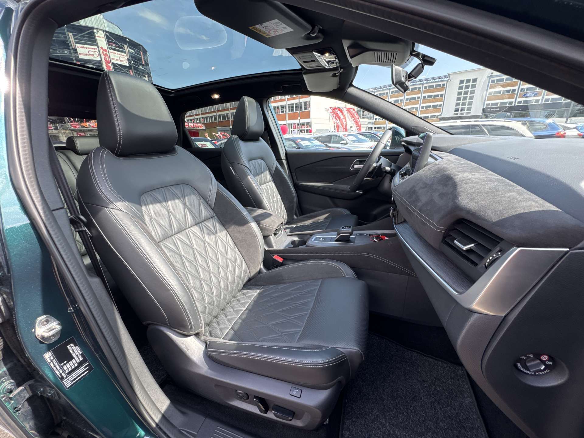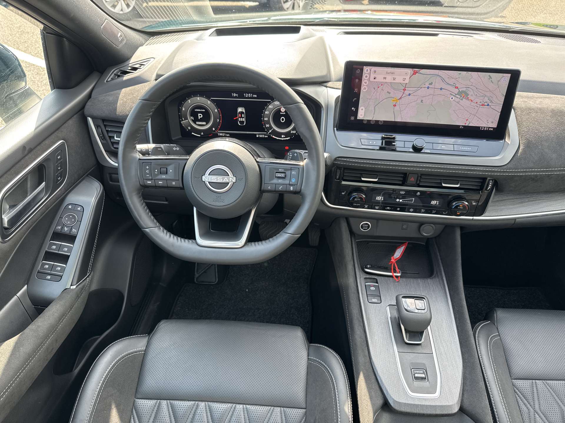 3-Punkt-Sicherheitsgurte auf allen Plätzen, 6 Verzurrösen im Kofferraum, Ablagen in den Türen, Airbag: Airbag Fahrer und Beifahrer, Airbag: Seitenairbag für Fahrer und Beifahrer, Airbag: Window-Kopfairbags vorne und hinten, Airbag: Zentralairbag, Ambiente-Beleuchtung, mehrfarbig, Mittelkonsole, oberer Türbereich vorne, Armaturenbrett,, Antiblockiersystem (ABS) mit elektronischer Bremskraftverteilung (EBD), Assist: Auto-Hold-Funktion, Assist: Berganfahr-Assistent, Assist: Einparkhilfe vorne und hinten, Assist: Elektronische Parkbremse (e-PKB) mit automatischer Deaktivierung beim Anfahren, Assist: Intelligente Müdigkeitserkennung, Assist: Intelligenter Adaptiver Geschwindigkeits- und Abstands-Assistent, Assist: Intelligenter autonomer Notbrems-Assistent hinten -, Assist: Intelligenter autonomer Notbrems-Assistent vorne mit Fussgänger-und Velofahrererkennung und-, Assist: Intelligenter Frontkollisionswarnungs-Assistent, Assist: Intelligenter Spurhalte-Assistent aktiv mit korrigierendem Bremseingriff, Assist: ProPILOT mit Navi-Link, Assist: Querverkehrswarner, hinten, Assist: Rückfahrkamera in Farbe, Assist: Totwinkel-Assistent aktiv mit korrigierendem Bremseingriff, Assist: Verkehrszeichenerkennung, Assist: Warnblinkautomatik, Ausklappbare Mittelarmlehne hinten mit 2 Getränkehaltern, Aussenspiegel automatisch einklappbar, Aussenspiegel rechts und links beheizbar und elektrisch verstellbar, Automatische Neigung der Aussenspiegel bei Rückwärtsfahrt, Beleuchtetes Handschuhfach, Dachhimmel schwarz, Dachreling silber, Drehzahlmesser, Elektrische Fensterheber vorne + hinten, Elektronisches Stabilitäts-Programm (ESP), Fahrer-Informationssystem mit 12.3"-TFT-Bildschirm, Fahrmodi: Standard, Sport, Eco, Snow, Off-Road, Flexi-Board: Modulares Verstausystem im Kofferraum, Frontscheibe, beheizbar (Thermaclear), Getriebe: Xtronic Automatikgetriebe, Heckklappe elektrisch sensorgesteuert, Heckscheiben-Wisch-/Waschanlage, Heckscheibenheizung, Induktives Smartphone-Ladegerät, Innenspiegel automatisch abblendbar, rahmenlos, INTELLIGENT KEY-, ISOFIX-Kindersitz-Befestigungspunkte auf den hinteren Sitzplätzen inkl. Top-Tether, Katalysator geregelt, Kleiderhaken im Fahrgastraum, Klima: 2-Zonen-Klimaautomatik, Kniepolsterung an der Mittelkonsole, Kofferraumbeleuchtung, Lackierung: Premiumlackierung Metallic, LED-Innenraumbeleuchtung im Fussraum und in den Türablagen hinten, Lenkrad: Lenkrad beheizbar, Lenkrad: Lenkrad und Schalthebelknauf, lederummantelt, Lenkrad: Lenkradfernbedienung für :, Lenkrad: Lenkradfernbedienung für ProPILOT mit Navi-Link, Lenkrad: Lenkradfernbedienung für:, Lenkrad: Schaltwippen, Lenksäule, höhen- und tiefenverstellbar, Leselampe, vorne und hinten, Licht: Dritte Bremsleuchte, Licht: Fahrlichtautomatik, Licht: LED-Blinker, Licht: LED-Nebelscheinwerfer, Licht: LED-Nebelschlussleuchte, Licht: LED-Rückfahrscheinwerfer, Licht: LED-Rückleuchten, Licht: Voll-LED-Scheinwerfer mit AFS, Media: 10.8"-Head-up-Display, Media: Bluetooth-Schnittstelle für Mobiltelefon und Audiostreaming, Media: BOSE Premium Soundsystem mit 10 Lautsprechern-, Media: Digitaler Radioempfang (DAB/DAB+), Media: Haifischantenne, Media: NissanConnect Navigationssystem:, Media: NissanConnect Services Navigation, Media: USB-Anschluss (Typ A und Typ C) hinten, Media: USB-Anschlüsse, 2x Typ C in der Mittelkonsole, Notruf und Pannenanruf (eCall), Paket: Design Paket, Panorama-Glasdach, Perimetrische Alarmanlage, Pollenfilter (Staubfilter), Polster: Ledersitze, Räder: 20"-Leichtmetallfelgen, Räder: Reifendruck-Kontrollsystem (TPMS), Räder: Reifenreparatur-Set, Scheibenwischer mit Intervall schaltung und Regensensor vorne, Servolenkung, Sitze: Beifahrersitz-, Sitze: Fahrersitz elektrisch einstellbar, Sitzfläche-Neigungsverstellung, Sitze: Fahrersitz-, Sitze: Kopfstützen auf allen Plätzen, Sitze: Rückenlehne asymmetrisch (60:40) umklappbar, Sitze: Vordersitze heizbar, Sonnenblende Fahrer und Beifahrerseite mit beleuchtetem Spiegel, Sonnenblenden mit Make-Up-Spiegel auf Fahrer- und Beifahrerseite, Sonnenbrillenfach, Steckdose im Kofferraum, Steckdose, 12 Volt, vorne, Stopp-/Start-System, Verdunkelte Seitenscheiben ab B-Säule, Warnsignal für nicht angelegte Sicherheitsgurte, Wegfahrsperre elektronisch, Zentralverriegelung mit Funkfernbedienung
