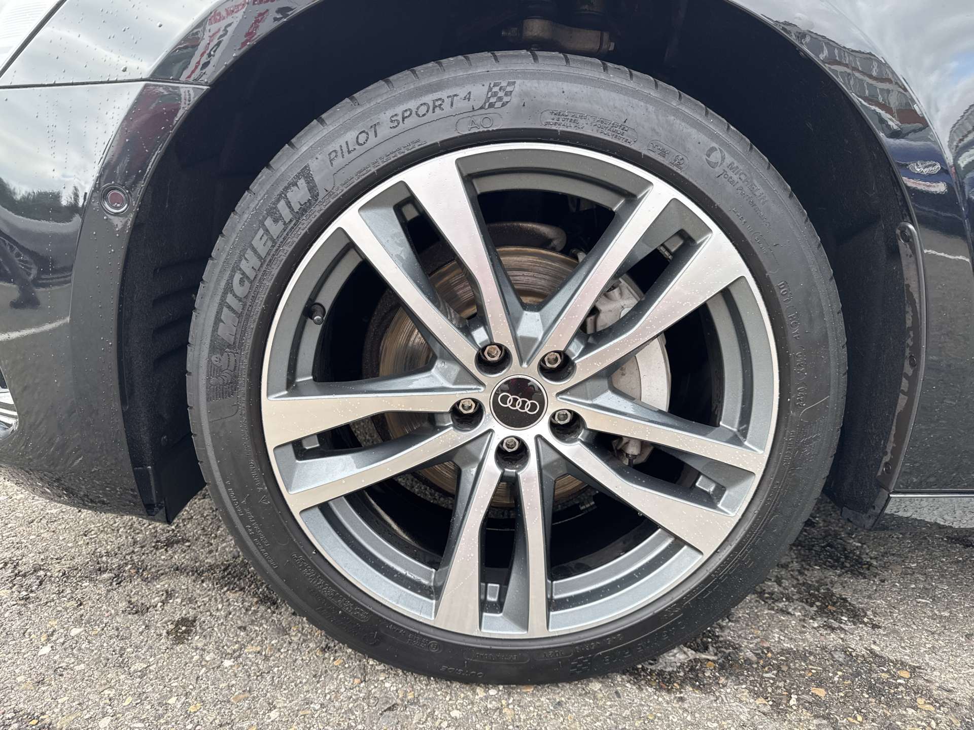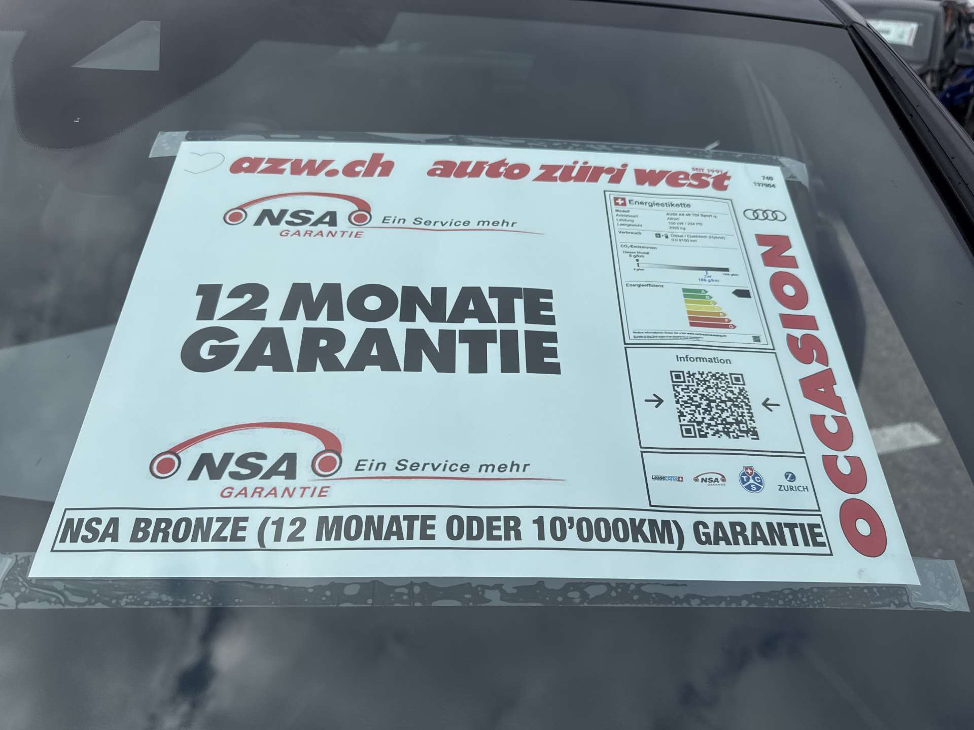 3-Punkt-Sicherheitsgurte auf allen Plätzen, ABS, AdBlue-Tank (12 Liter), Airbag: Airbag Beifahrer deaktivierbar, Airbag: Airbag Fahrer und Beifahrer, Airbag: Seitenairbags hinten mit Window-Kopfairbags, Airbag: Seitenairbags vorn und Kopfairbagsystem, Assist: Audi pre sense basic, Assist: Einparkhilfe plus, Assist: Geschwindigkeitsregelanlage mit Geschwindigkeitsbegrenzer, Assist: Spurverlassenswarnung, Audi drive select, Aussenspiegel elektrisch einstell-, beheiz- und anklappbar, Aussenspiegel in Wagenfarbe, Bordwerkzeug, Dachhimmel in Stoff mondsilber, Dekor: Bedientasten schwarz matt, Dekor: Dekoreinlagen Aluminium Fragment, Einstiegsleisten mit Aluminiumeinlegern vorne und hinten, Elektronisches Stabilitäts-Programm (ESP), Fahrer-Informationssystem mit Farbdisplay, Fahrwerk: Serienfahrwerk, Frontscheibe mit Wärmeschutzverglasung, Funkschlüssel, Gepäckraumklappe automatisch öffnend / manuelle Gepäckraumklappe, Getriebe: 7-Gang- Automat S tronic, Innenbeleuchtung, Innenspiegel automatisch abblendend, rahmenlos, Klima: 2-Zonen-Klimaautomatik, Komfortmittelarmlehne vorne, Kraftstoffbehälter (63 Liter), Lackierung: Uni-Lackierung, Lenkrad: Sportlederlenkrad mit Multifunktion und Schaltwippen, Licht: Drittes Bremslicht, Licht: LED Scheinwerfer, Licht: Nebelschlussleuchte, Media: Audi connect Navigation & Infotainment, Media: Audi connect Navigation & Infotainment plus, Media: Audi connect Notruf & Service mit Fahrzeugsteuerung, Media: Audi Sound System, Media: Digitaler Radioempfang, Media: MMI Navigation mit MMI touch response, Media: MMI Radio plus mit MMI touch response, Mild-Hybrid, Modellbezeichnung und Leistungs- / Technologie-Schriftzug, Nichtraucherausführung, Paket: Ablagepaket, Paket: Ambiente Lichtpaket, Paket: Glanzpaket, Partikelfilter und Oxydationskatalysator, Polster: Stoff Rhythmus, Progressivlenkung, Räder: Leichtmetallräder im 5-Arm-Design, Räder: Reifenreparatur-Set (Tire Fit), Reifendruck-Kontrollanzeige, Servolenkung, Sicherheitslenksäule, Sitze: 4-Wege-Lendenwirbelstütze für die Vordersitze, Sitze: Fondsitze 4+1 Sitzer, Sitze: Kindersitzbefestigung i-Size auf der Beifahrerseite und den äusseren Fondsitzen, Sitze: Kopfstützen, Sitze: Sportsitze vorne, Sitze: Vordersitze heizbar, Sitze: Vordersitze manuell verstellbar, Sonnenblende Fahrer und Beifahrerseite mit beleuchtetem Spiegel, Start-/Stopp-Automatik, Wärmeschutzverglasung seitlich und hinten, Warndreieck, Wegfahrsperre elektronisch, Zentralverriegelung mit Fernbedienung