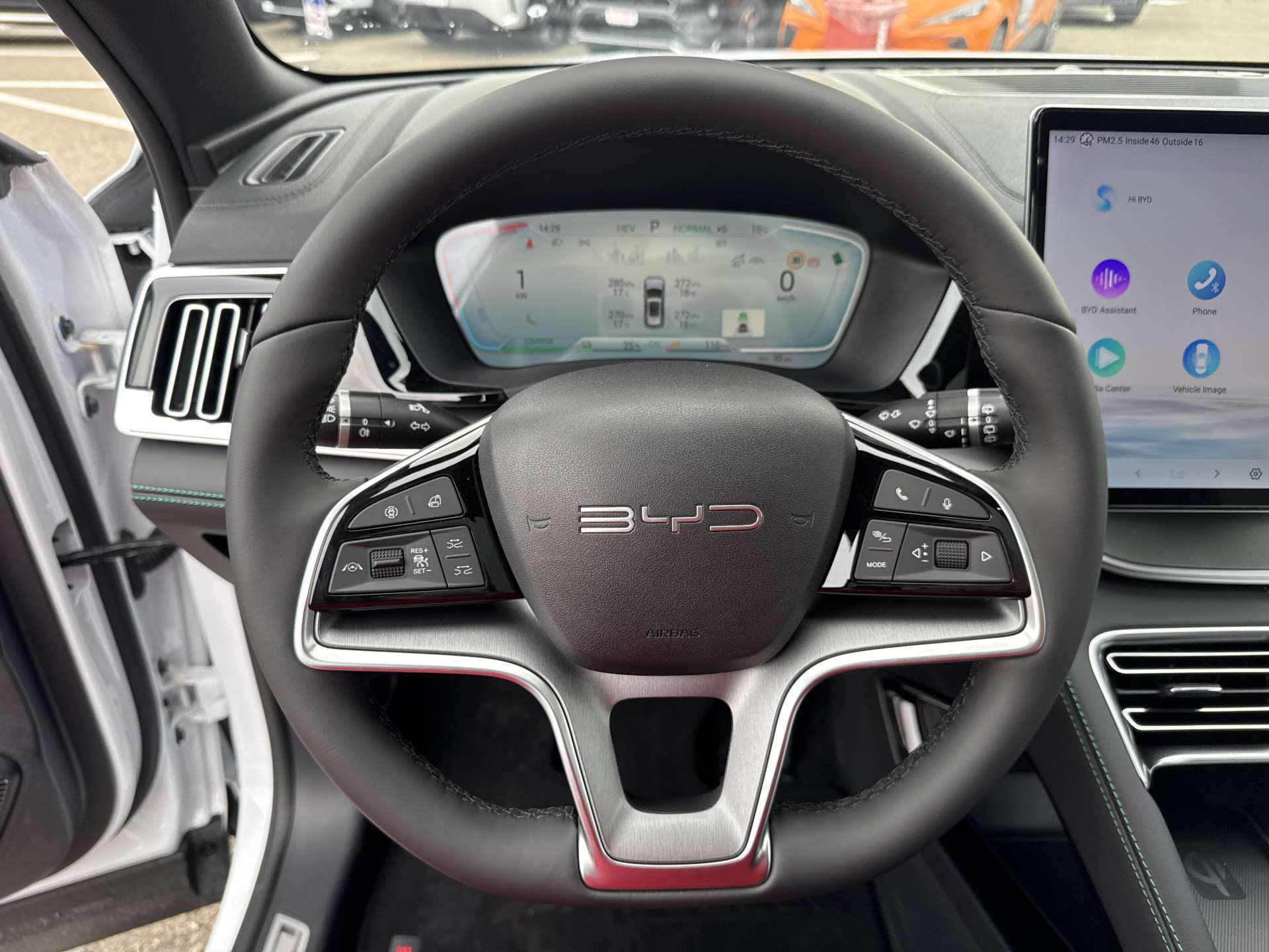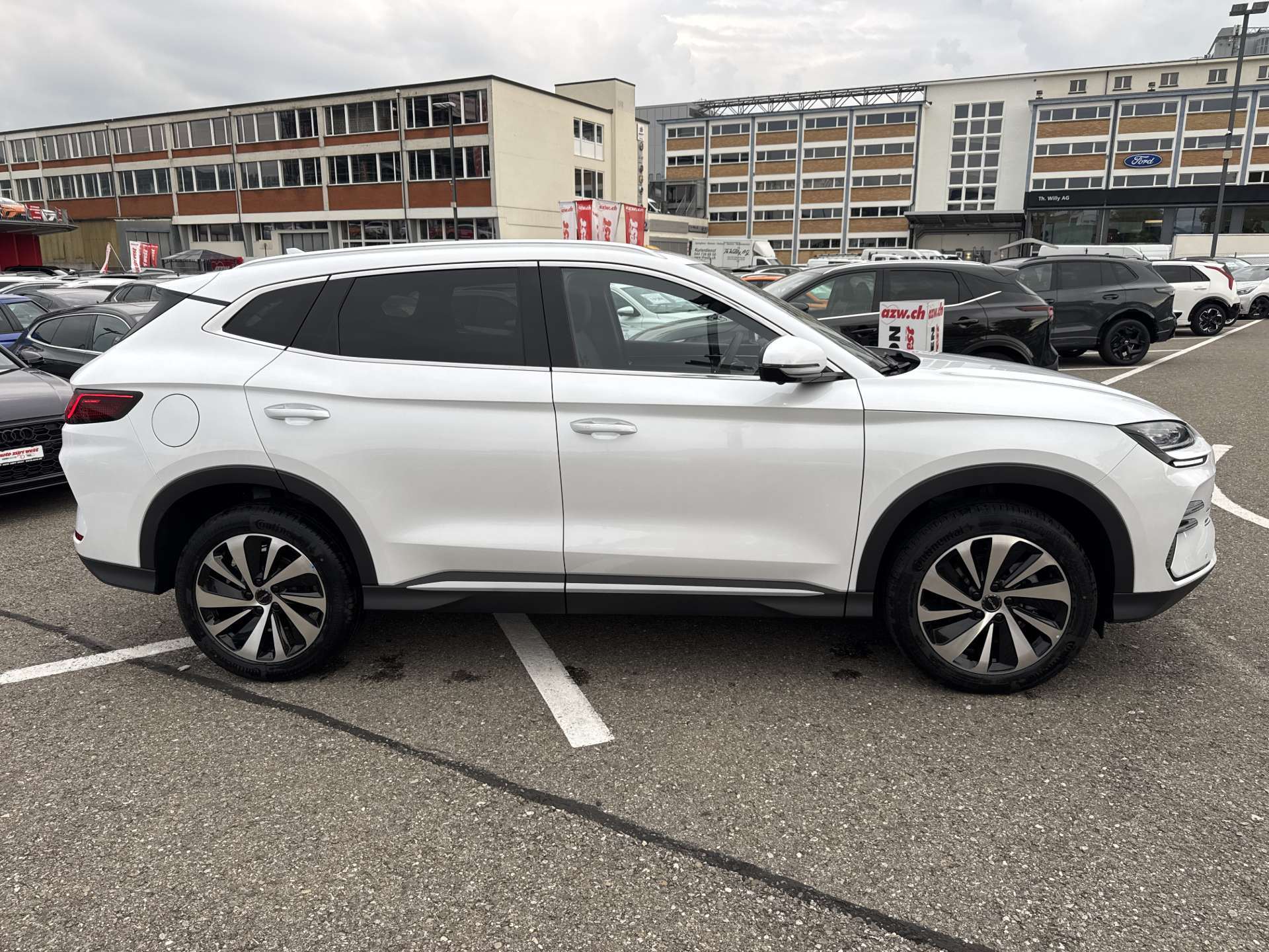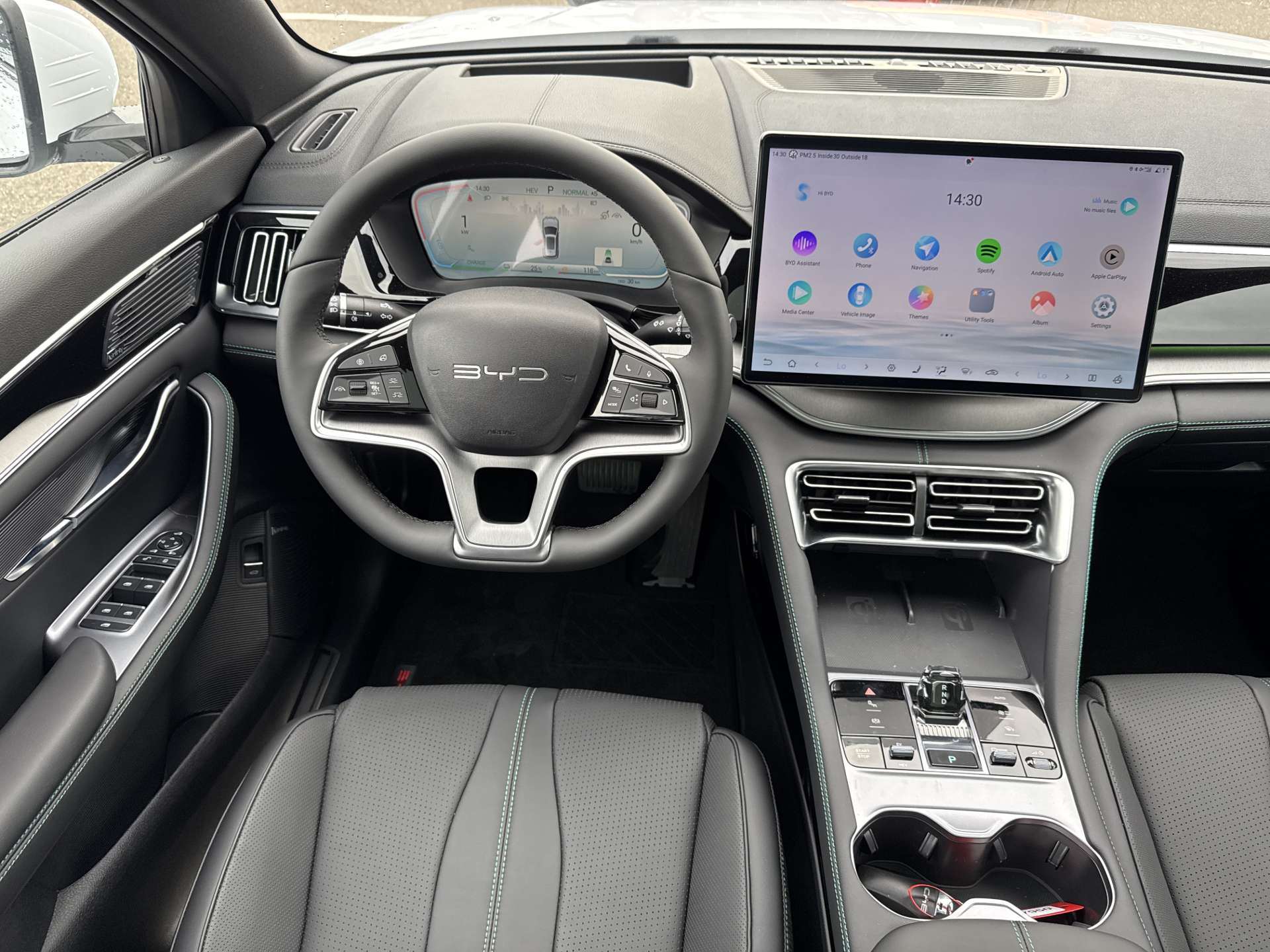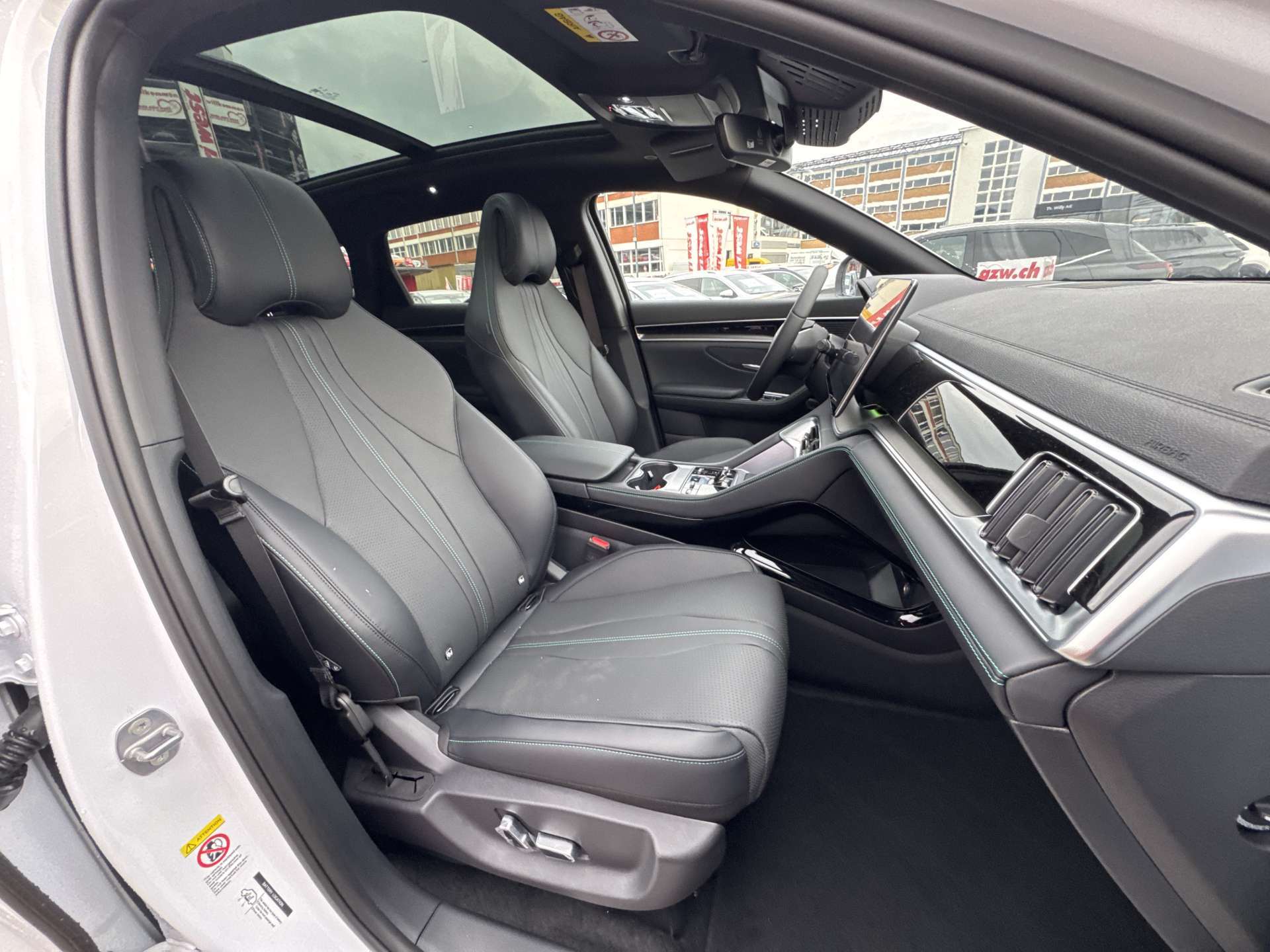 11kW On-Board Charger (OBC), 12-V-Stromanschluss, 2 x Smart Key, 4 x One-Touch-Fensterheber mit Einklemmschutzfunktion, Airbag: Fahrerairbag und Beifahrerairbag, Airbag: Frontairbag in der Mitte, Airbag: Seitenairbags vorn, Airbag: Vorhangairbags, Ambientebeleuchtung, mehrfarbig, Antiblockiersystem (ABS), Armlehne hinten, 2 Getränkehalter, Assist: Spurverlassenswarnung (LDW), Assist: 360° view camera, Assist: Adaptive Geschwindigkeitsregelung (ACC) & Intelligente Geschwindigkeitsregelung (ICC), Assist: Auto Hold, Assist: Automatische Notbremsung (AEB), Assist: Bergabfahrhilfe (HDC), Assist: Berganfahrassistent (HSA), Assist: Comfort Stop (CST), Assist: Elektrische Parkbremse (EPB), Assist: Heckkollisionswarnung (RCW), Assist: Hydraulischer Bremsassistent (HBA), Assist: Kindererkennung (CPD), Assist: Kontrollierte Verzögerung mit Feststellbremse (CDP), Assist: Müdigkeitserkennung für den Fahrer (DFW) und Aufmerksamkeitswarnung für den Fahrer (DFW), Assist: Parksensoren vorne und hinten, Assist: Querverkehrswarnung hinten (RCTA) & Querverkehrsbremse hinten (RCTB), Assist: Querverkehrswarnung vorn (FCTA) & Querverkehrsbremse vorn (FCTB), Assist: Spurhalteassistent (ELKA), Assist: Spurverlassensverhinderung (LDP), Assist: Spurwechselassistent (LCA), Assist: Toter-Winkel-Warnung (BSD), Assist: Traktionskontrolle (TCS), Assist: Überschlagskontrollsystem (RMI), Assist: Verkehrszeichenerkennung (TSR), Assist: Vorwärtskollisionswarnung (FCW), Aussenspiegel elektrisch verstellbar, elektrisch anklappbar, beheizbar, Automatisch abblendender Rückspiegel, Automatisches Verriegelungssystem, Bodenbeleuchtung vorne, Bremsüberbrückungssystem (BOS), Dachreling in Aluminium, Diebstahlsicherung, Dynamische Blinker, Elektrische Heckklappe, Elektronische Bremskraftverteilung (EBD), Elektronische Kindersicherung, ESP (Elektronisches Stabilitätsprogramm), Fahrmodus: Eco, Normal, Sport, Snow, Fahrwerk: Fahrdynamikregelung (VDC), Frontscheibe, Scheibenwischer mit Regensensor, Frontscheibe, UV-Schutz, Wärmedämmung, Schalldämmung, Fussraumbeleuchtung in den Aussenspiegeln, Garantie: Batterie-Garantie 8 Jahre oder 200'000 km, Garantie: Garantie 6 Jahre oder 150'000 km, Gepäckraumleuchte, Getriebe: Direktantrieb, kein Getriebe, Head-up-Display (HUD), ISOFIX und i-Size, Beifahrer- und äussere Rücksitze, Keyless entry & keyless start, Kindersicherung manuell, Klima: Belüftungsdüsen hinten, Kofferraum-Gepäckablage, Kraftbegrenzender Sicherheitsgurt auf dem mittleren Rücksitz, Lackierung: Metallic-Lackierung, LED-Leseleuchten hinten, LED-Leseleuchten vorn, Licht: Fernlichtassistent (HMA), Licht: Follow-me-Home, Licht: LED-Rückleuchten, Licht: LED-Scheinwerfer, automatisches Ein-/Ausschalten, Licht: LED-Tagfahrlicht, Licht: Nebelschlussleuchten, Media: 12,3" TFT-LCD-Instrumententafel, Media: 15,6" elektrisch drehbarer Touchscreen, Media: Android Auto & Apple CarPlay, Media: DAB+ & FM, Media: Infinity-Soundsystem, 10 Lautsprecher, Media: Integrierte 4G-Konnektivität2, Media: Intelligente Sprachsteuerung "Hallo, BYD", Media: Smartphone wireless charging, 2x 15 W, Media: USB-Anschlüsse hinten: 1 x 18W Typ C, 1 x 60 W Typ C, Media: USB-Anschlüsse vorn: 1 x 18W Typ C, 1 x 60 W Typ C, Mehrfarbige LED-Ladeanzeige, Mittelarmlehne hinten, 2 Getränkehalter, Mittelarmlehne vorn, 2 Getränkehalter, Notruf, Panoramadach, elektrisch verstellbares Sonnenschutzrollo, PM2.5 filter, PM2.5-Luftreinigungssystem, Privacy glass in fond, Räder: 19" Bicolor- Leichtmetallfelgen, Reifendruckkontrolle (TPMS), Servolenkung, Sitze: Beifahrersitz belüftet, beheizt, Sitze: Beifahrersitz, elektrisch verstellbar, 4-fach, Sitze: Fahrersitz belüftet, beheizt, gespeicherte Einstellung, Sitze: Fahrersitz und Beifahrer, integrierte Kopfstütze, Sitze: Fahrersitz, elektrisch verstellbar, 8-fach, Positionsspeicher, Sitze: Rücksitze 40:60 geteilt umklappbar, Sitze: Rücksitze, manuell einstellbare Kopfstütze, Türöffnungswarnung (DOW), Vier LED-Türleuchten, Vordersitz-Sonnenblenden mit beleuchtetem Schminkspiegel, Vorgespannte und kraftbegrenzende Sicherheitsgurte vorn, Wärmepumpe