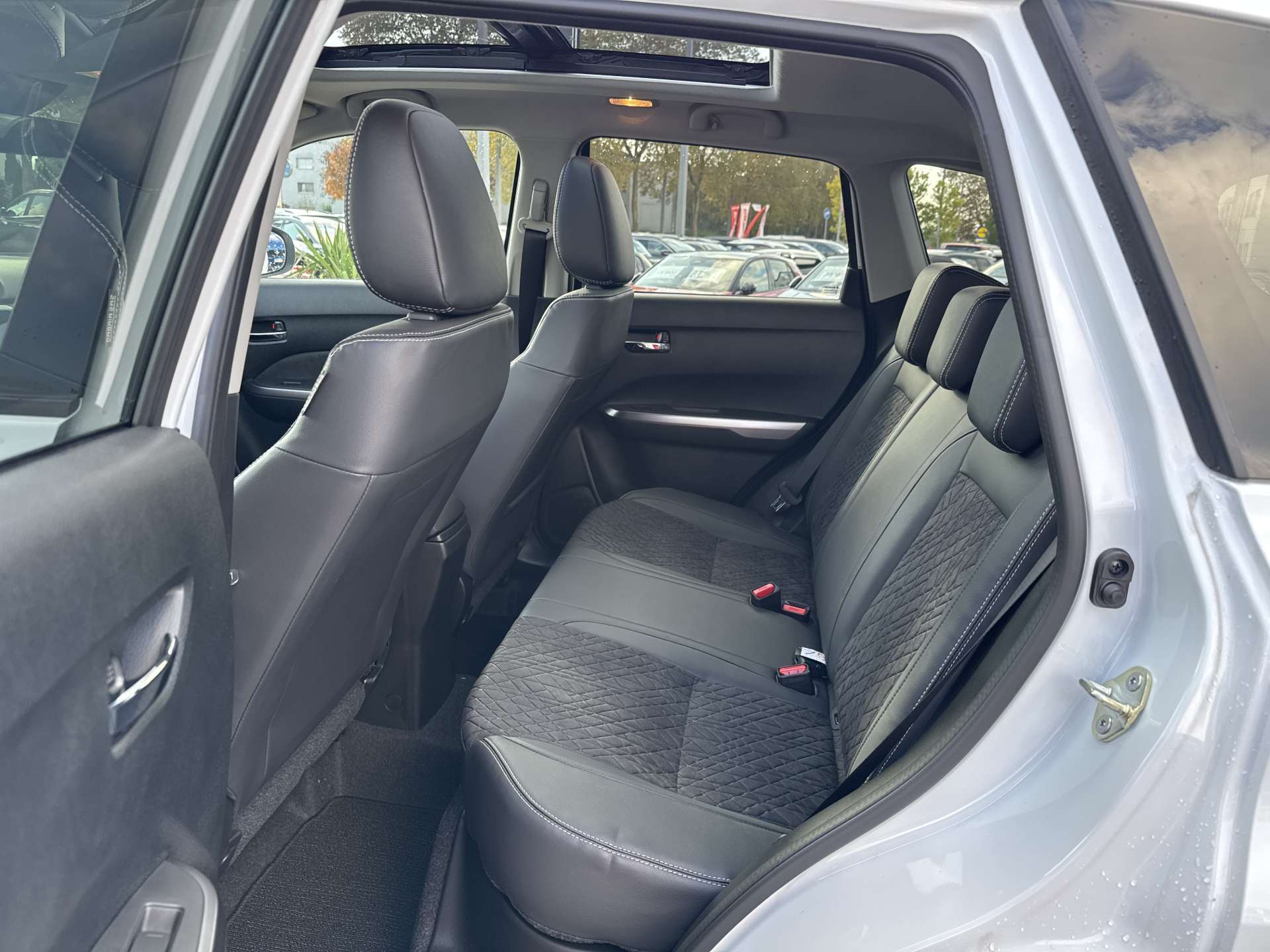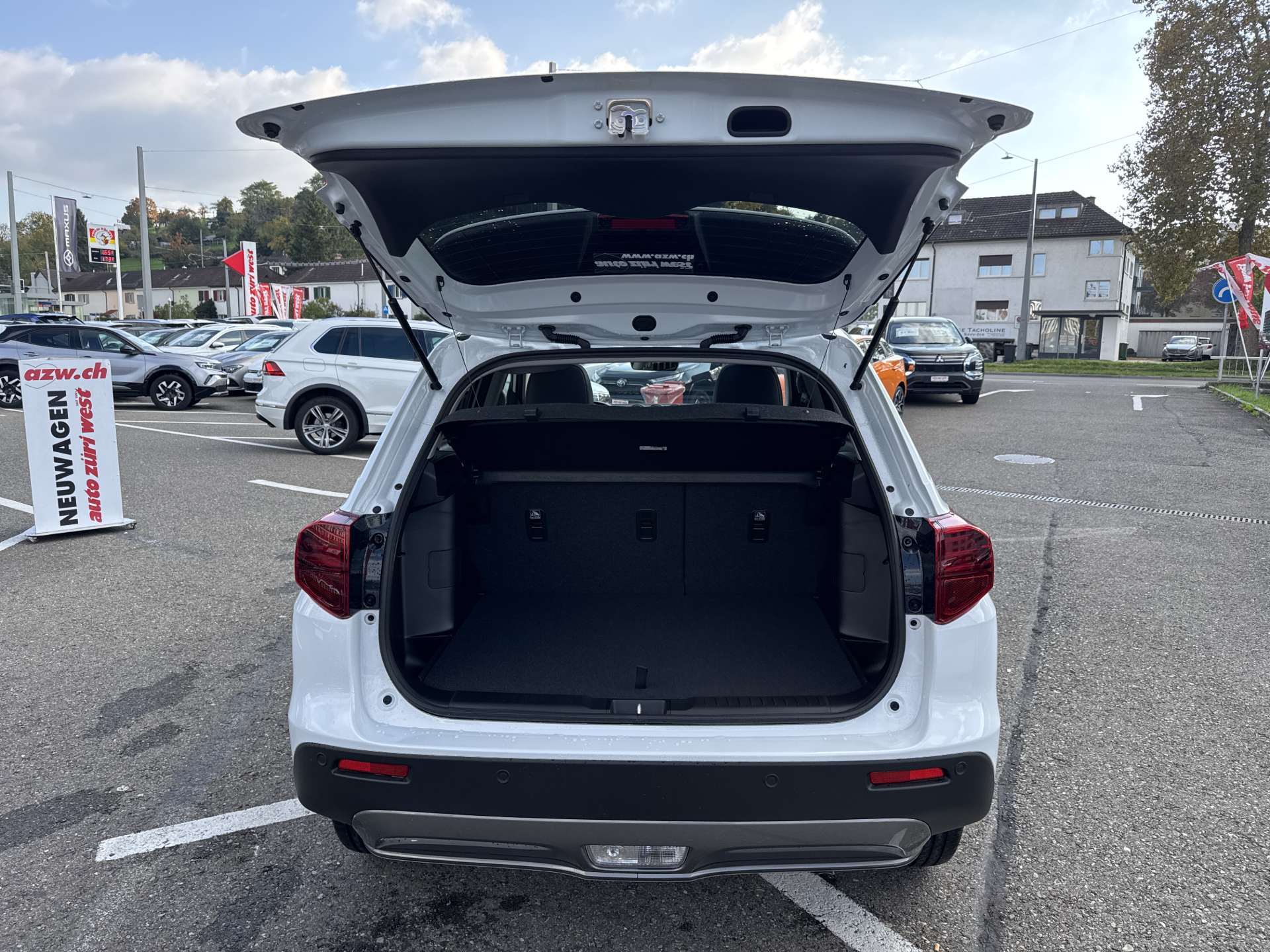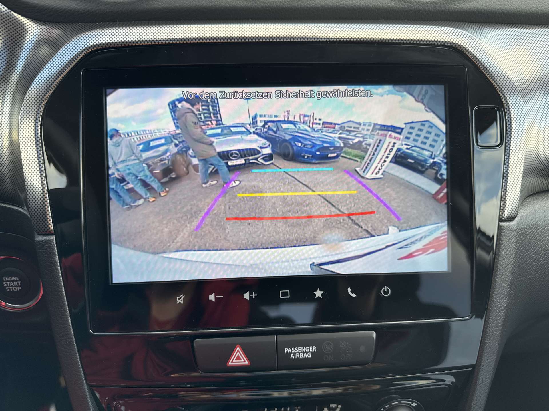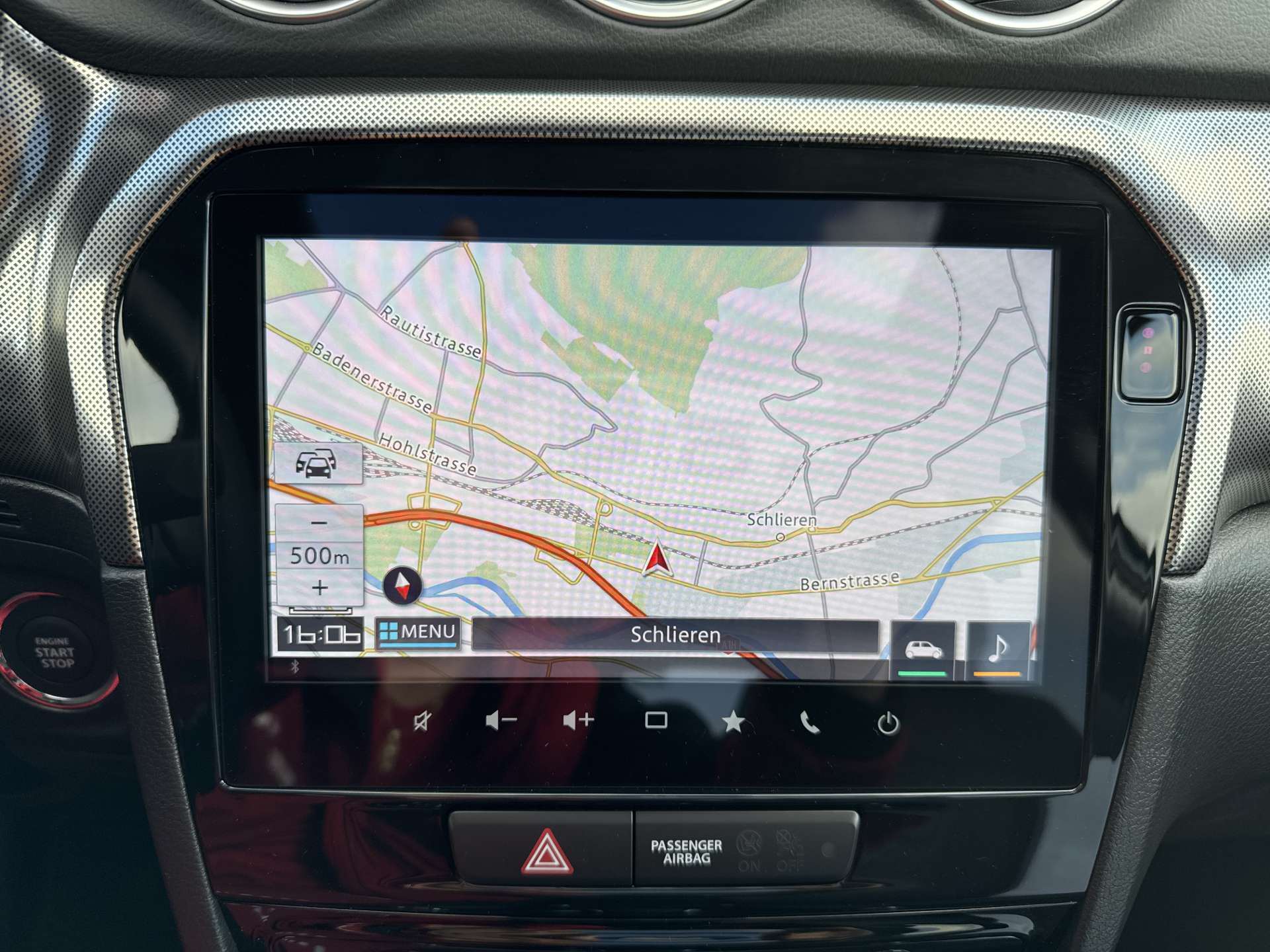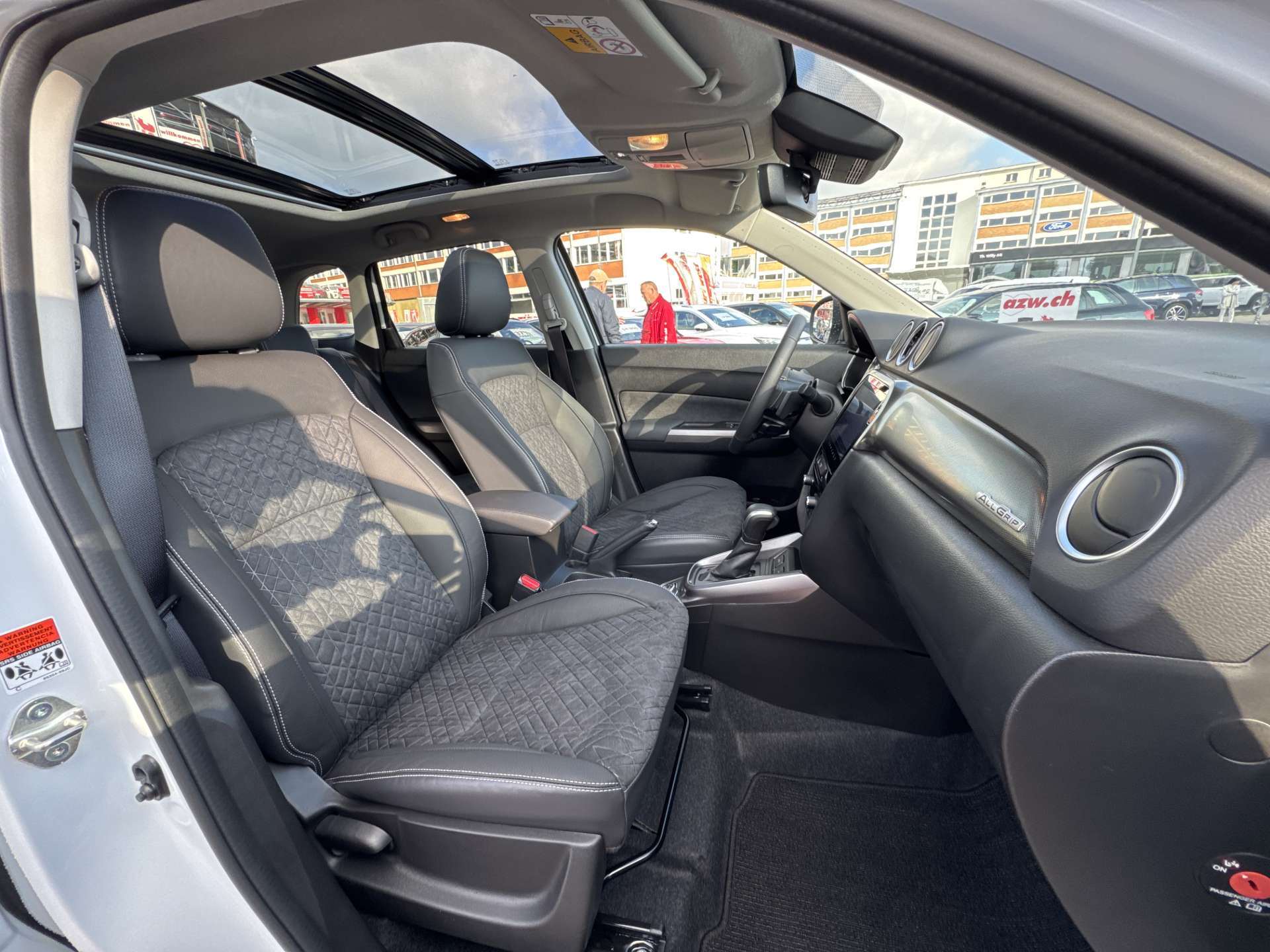 12 Volt-Steckdose, ABS mit elektronischer Bremskraftverteilung und Bremsassistent, Airbag: Airbag für Fahrer und Beifahrer (Beifahrerseite deaktivierbar), Airbag: Seitenairbags vorne, Airbag: Vorhangairbags, Assist: Adaptiver Tempomat, Assist: Aktiver Spurhalteassistent, Assist: Bergabfahrassistent, Assist: Berganfahrhilfe, Assist: eCall, Assist: Fahrerüberwachungssystem (DMS), Assist: Notbremssystem mit Kollisionswarner, Assist: Parksensoren hinten (akustisch), Assist: Parksensoren vorne (akustisch), Assist: Querverkehrswarner hinten, Assist: Rückfahrkamera, Assist: Spurleitassistent, Assist: Spurwechselassistent, Assist: Verkehrszeichenerkennung, Assist: Warnsystem für Müdigkeit und Aufmerksamkeit, Aussenspiegel mit integriertem Blinker, Bodenteppiche, Dachreling, Diverse Ablagefächer und Getränkehalter, Dreipunkt-Sicherheitsgurte auf allen Plätzen, Elektrisch verstell-, heiz- und einklappbare Aussenspiegel, Elektrische Fensterheber vorne + hinten, Elektrisches Panorama Hub-/Schiebedach, ESP mit Traktionskontrolle, Garantie: 3 Jahre oder 100'000 km, Getriebe: 6-Stufen-Automat sequentiell, Gurtstraffer und Gurtkraftbegrenzer vorne und hinten, Heckspoiler, Innenspiegel automatisch abblendbar, ISOFIX-Kindersitzverankerung, Keyless Start (schlüsselloses Einsteigen und Starten), Klima: Klimaautomatik mit Pollenfilter, Lackierung: Uni-Lackierung, Lenkrad: Bedientasten am Lenkrad für Audio und Telefon, Lenkrad: Lederlenkrad, Lenkrad: Lenkrad längs- und höhenverstellbar, Lenkrad: Schaltwippen am Lenkrad, Licht: LED Abblend-und Fernlicht, Licht: LED-Rückleuchten, Licht: Leuchtweitenregulierung automatisch, Licht: Lichtautomatik, Media: 2 Lautsprecher, Media: 9 Zoll Touchscreen-Multimediasystem mit Smartphone-Anbindung, Bluetooth und DAB+, Media: Hochtöner vorne, Media: USB-Anschluss für externe Audioquellen, Mittelarmlehne vorne, Multifunktionsdisplay, Polster: Veloursledersitze, Privacy Glass, Räder: Leichtmetallfelgen 17J 215/55 R17, Räder: Reifenreparatur-Set (Tire Fit), Radhausverbreiterung, Regensensor, Servolenkung, Sicherheitsgurte vorne höhenverstellbar, Sitze: Fahrersitz höhenverstellbar, Sitze: Rücksitzlehne separat umklappbar (60/40), Sitze: Sitzheizung vorne, Sitze: Vordersitze umklappbar, Sonnenblenden vorne mit Schminkspiegel, Start-/Stopp-Automatik, Suzuki Connect App (3 Jahre kostenlos), Zentralverriegelung mit Fernbedienung