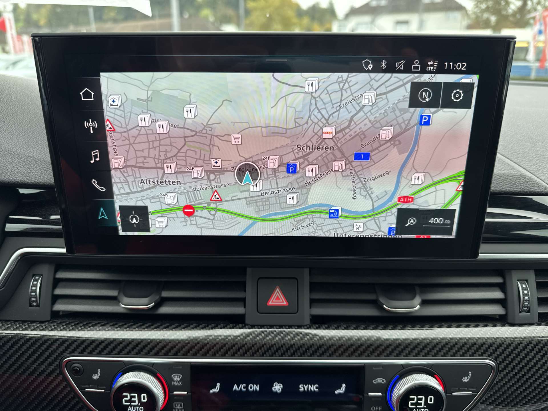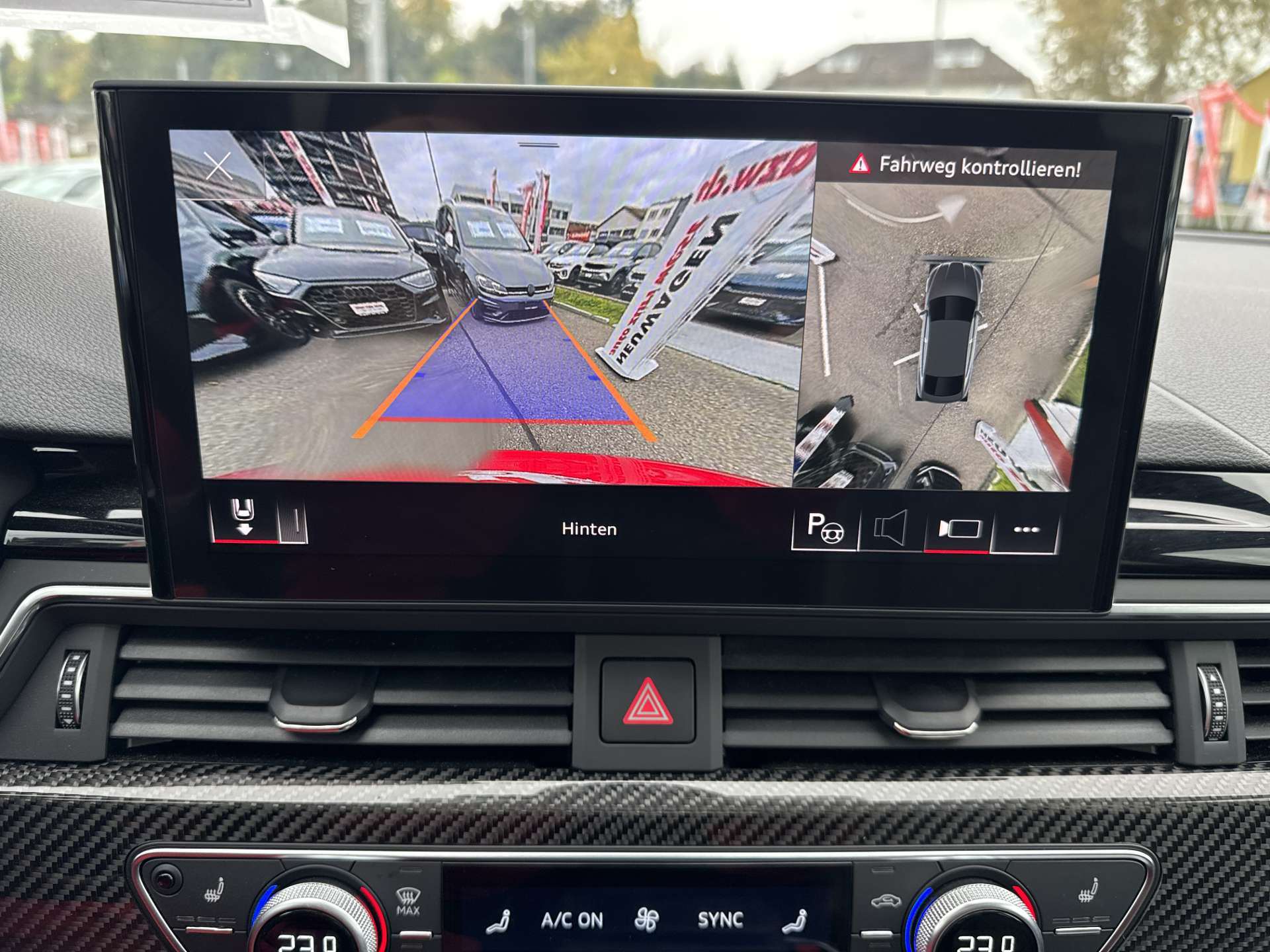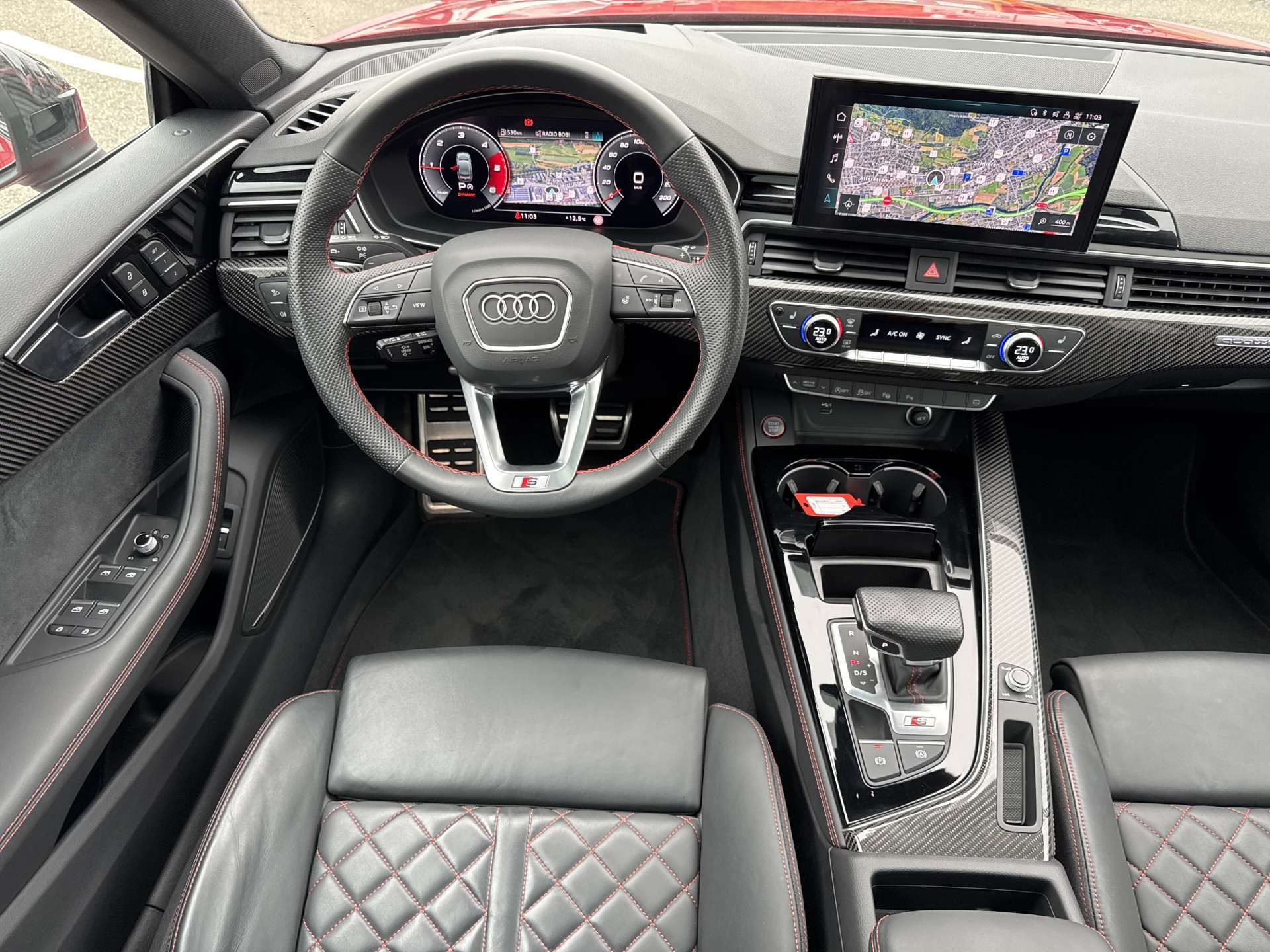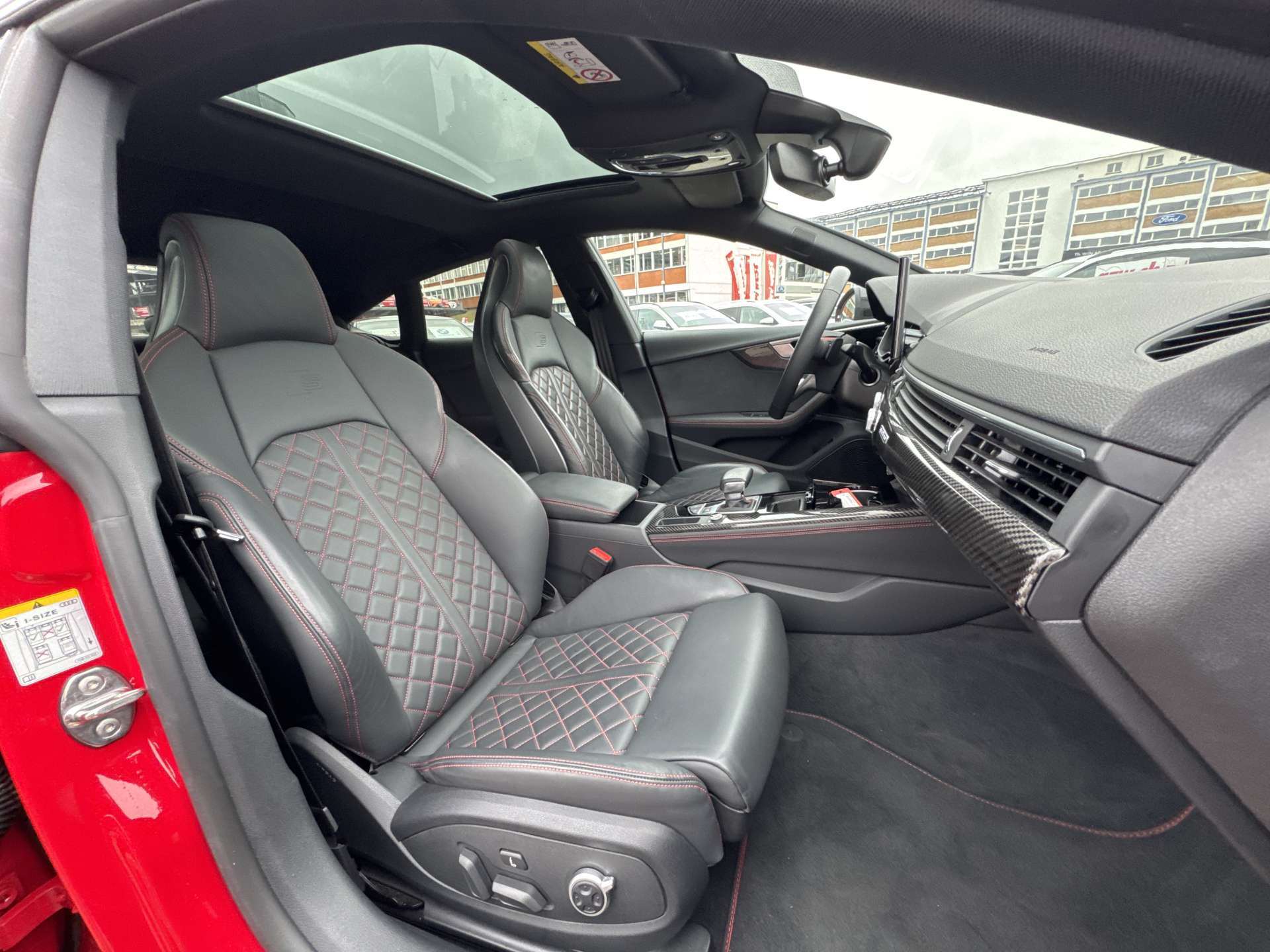 Räder: Aluminium-Gussräder Audi Sport - 20 Zoll - im 5-Doppelspeichen-Polygon-Design, Media: MMI Navigationssystem Plus mit MMI touch, Paket: Stylepaket Carbon, Polster: Leder Feinnappa, Panorama-Glasdach, quattro mit Sportdifferenzial, Assist: Umgebungskameras, Media: Bang & Olufsen Premium Soundsystem mit 3D Klang, Dynamiklenkung, Anhängevorrichtung abschwenkbar, Paket: Winterpaket, Frontscheibe in Akustikverglasung, Lenkrad: Lederlenkrad im 3-Speichen-Design mit Multifunktion plus und Lenkradheizung, Sitze: Sitzheizung vorne und hinten, Dekor: Dekoreinlagen Carbon Köper, Head-Up Display, Heckspoiler Carbon, Sitze: S-Sportsitze vorne, Lackierung: Metallic-Lackierung, Licht: Matrix LED-Scheinwerfer mit Audi Laserlicht, LED-Heckleuchten, Aussenspiegel in Carbon, Fahrwerk: S-Sportfahrwerk mit Dämpferregelung, Kontrastnähte in Rot Audi Sport, Getönte Scheiben Privacy, Aussenspiegel rechts und links beheizt, elektrisch verstell-/ und einklappbar mit Memory, Paket: Kontur-/Ambiente-Lichtpaket (mehrfarbig), Bremssättel rot lackiert, Sitze: Rücksitzanlage 3-sitzing, Dekor: Interieurelemente in Kunstleder, Assist: Parkassistent mit Einparkhilfe plus, Scheinwerfer-Waschanlage, Audi virtual cockpit plus, Garagentoröffner, Sitze: Lendenwirbelstütze, pneumatisch einstellbar mit Massagefunktion, Media: Audi Phone Box, Sitze: Vordersitze elektrisch verstellbar, Fahrersitz mit Memory-Funktion, AdBlue 14-Tank mit erhöhtem Füllvolumen, Media: Audi connect Navigation & Infotainment