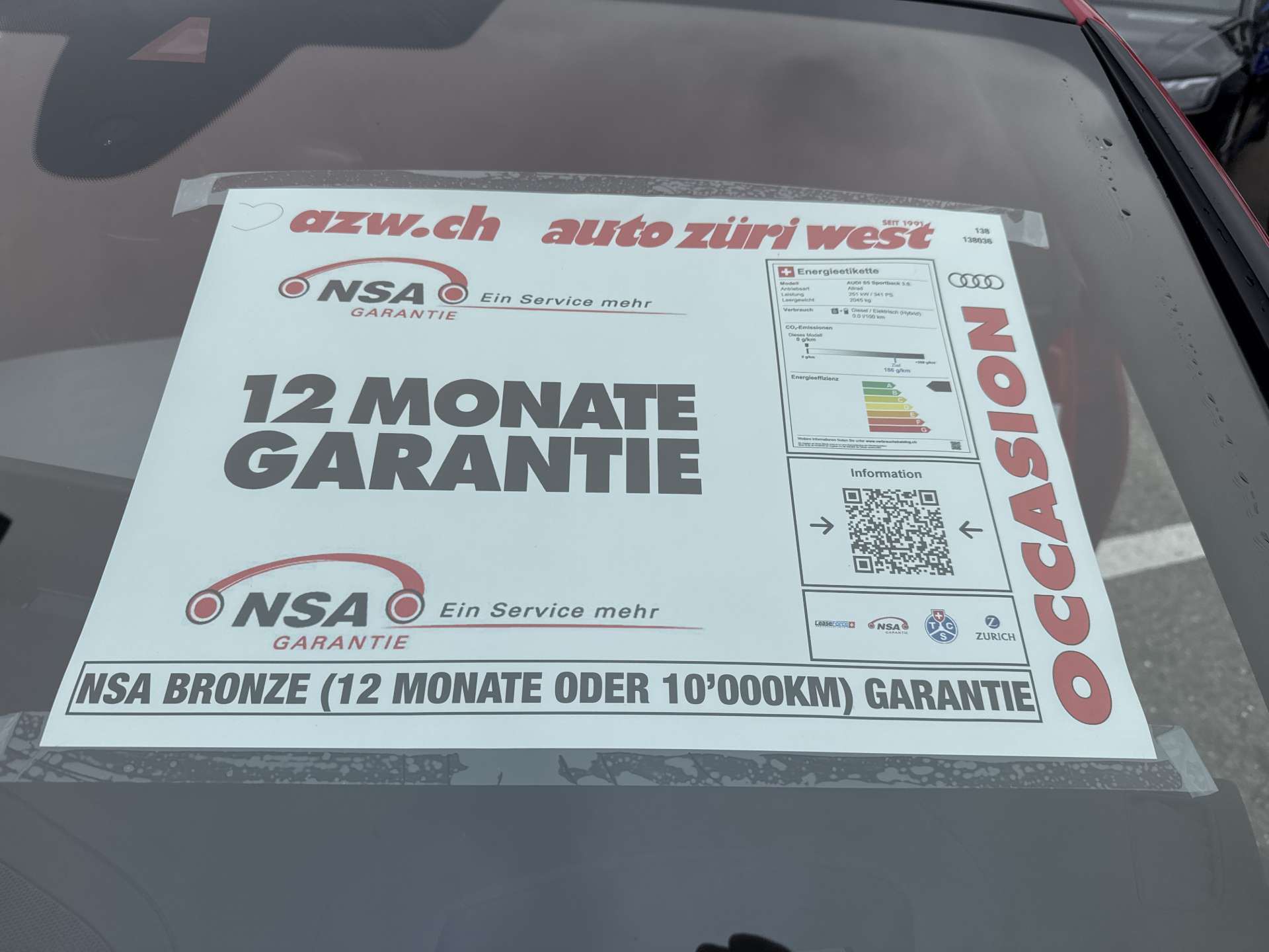 3-Punkt-Sicherheitsgurte auf allen Plätzen, ABS, EBD elektronische Bremskraftverteilung, AdBlue 14-Tank, Airbag: Airbag Beifahrer deaktivierbar, Airbag: Airbag Fahrer und Beifahrer, Airbag: Seitenairbags vorne, Airbag: Window-Kopfairbags, Akustikverglasung, Assist: Berganfahrassistent, Assist: Berganfahrassistent, Assist: Einparkhilfe plus, Assist: Kamerabasierte Verkehrszeichenerkennung, Assist: Rückfahrkamera, Assist: Spurverlassenswarnung, Audi drive select, Audi pre sense city, Aussenspiegel in Alu, Bordcomputer, Bremssättel schwarz lackiert, Dachhimmel schwarz, Dekor: Akzentflächen Glasoptik schwarz, Dekor: Dekoreinlagen in Aluminium matt gebürstet, Diebstahlwarnanlage, Diebstahlwarnanlage und Komfortschlüssel sensorgesteuerter Gepäckraumentriegelung, Drehzahlmesser, Einstiegsschienen beleuchtet mit Logo, Einstiegsschienen verchromt, Elektrische Kindersicherung, Elektronisches Stabilitäts-Programm (ESP), Fahrer-Informationssystem mit Farbdisplay, Fahrwerk: S-Sportfahrwerk, Gepäckraumklappe elektrisch öffnend und schliessend, Geschwindigkeitsregelanlage und Geschwindigkeitsbegrenzer, Getönte Scheiben, Gurtkontrolle, Gurtstraffer mit Gurtkraftbegrenzer, Gurtstraffer vorne und hinten, Heckscheiben-Wisch-/Waschanlage, Heckscheibenheizung, Innenraumbeleuchtung, ISOFIX Kindersitzvorrichtung, Klima: 3-Zonen-Klimatisierungsautomatik, Klima: Standheizung/-Lüftung, Kofferraummatte, Komfortschlüssel inklusive sensorgesteuerter Gepäckraumentriegelung, Kopfstützen hinten, Kopfstützen vorne höhenverstellbar, Lackierung: Uni-Lackierung, Lenkrad: Lederlenkrad im 3-Speichen-Design mit Multifunktion plus, Licht: Drittes Bremslicht, Licht: Matrix LED-Scheinwerfer mit LED-Heckleuchten und dynamischem Blinklicht, Licht: Nebelschlussleuchte, Media: 8 Lautsprecher, Media: Audi connect Notruf & Service mit Fahrzeugsteuerung, Media: Bluetooth-Schnittstelle, Media: Digitaler Radioempfang (DAB), Media: Vorbereitung Navigationsgerät-High für FOD-Funktion, Mittelarmlehne vorn in Kunstleder schwarz mit Kontrastnaht in Rot, Modellbezeichnungen (Logo & Model), Nichtraucherausführung, Paket: Ablagen- und Gepäckraumpaket, Paket: Assistenzpaket Parken, Paket: Glanzpaket, Paket: Komfortpaket Spiegel, Pedalerie und Fussstütze in Edelstahl, Polster: Mikrofaser Dinamica Frequenz/Leder-Kombination mit S-Prägung, Räder: Aluminium-Gussräder - 18 Zoll - im 5-Doppelspeichen-Design (S-Design), Räder: Reifendruck-Kontrollanzeige, Räder: Reifenreparatur-Set (Tire Fit), Servotronic, Sitze: Rücksitze geteilt abklappbar, Sitze: Sportsitze vorne, Sitze: Vordersitze elektrisch verstellbar, Sitze: Vordersitze heizbar, Sonnenblende links, Sonnenblende rechts, Stopp-/Start-System, Teppichfussmatten, Türgriffe aussen in Wagenfarbe, Verbandmaterial,Warndreieck und Warnveste, Wärmeschutzverglasung